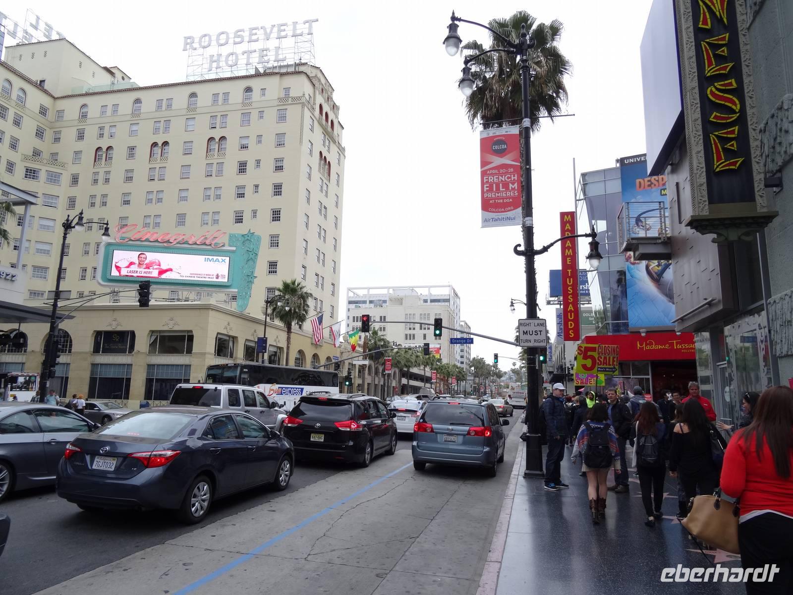 Aufgrund der Zeitumstellung waren die meisten bereits um vier Uhr das erste Mal wieder munter, was aber der Lust und Vorfreude auf die Entdeckungen des heutigen Tages keinen Abbruch tat. Nach einem ausgiebigen Frühstück mit Blick auf die Marina von Long Beach begannen wir unsere Stadtrundfahrt durch Los Angeles. Den ersten Stopp machten wir am El Pueblo de Los Angeles, dem historischen Zentrum und Gründungsort der Stadt im Jahre 1781. Ben machte uns mit den geschichtlichen Hintergründen vertraut, bevor wir uns die Calle Olvera, eine 1930 restaurierte Gasse im mexikanischen Stil sowie die architektonisch interessante Union Station, den 1939 erbauten Bahnhof, selbst anschauten. Im Anschluss fuhren wir am Civic Center, Amerikas zweitgrößtem Regierungskomplex, vorbei zum Los Angeles Music Center mit der von Frank Gehry 2003 erschaffenen futuristischen Walt Disney Concert Hall und dem Dorothy Chandler Konzertpavillion, bevor wir die im September 2002 erbaute katholischen Kathedrale "Our Lady of the Angels" mit ihrem 40 Meter hohem Glockenturm besuchten. An dem für Filmfreunde bekannten Westin Bonaventure Hotel vorbei ging unsere Tour weiter nach Hollywood, zum berühmten Hollywood Boulevard und dem Walk of Fame. Obwohl wir leider keine echten Filmstars zu sehen bekamen, nahmen wir am Grauman's Chinese Theatre (heute TCL Chinese Theatre) mit den Hand- und Fußabdrücken der Stars sowie auf der Treppe des Dolby Theater, dem Ort der jährlichen Oskar-Verleihung, ein wenig von dem Glanz und Glamour mit, der diesen Stätten innewohnt. Uns störten auch die in 3,50$ teure Faschingskostüme gekleideten "Darsteller" von bekannten Filmfiguren nicht, die allenthalben entlang des Walk of Fame versuchten, einen schnellen Dollar mit den zahlreichen Touristen zu verdienen. Auch hier galt: Leben und leben lassen. Noch schnell den Hollywood-Schriftzug fotografiert, im Hard Rock Café die Toiletten gecheckt und weiter ging es über den berühmten Sunset Boulevard und den Doheny Drive mit dem Wohnhaus von Marilyn Monroe nach Beverly Hills. Am Rodeo Drive konnten wir leider nicht halten, da keine Busparkplätze verfügbar waren, so dass wir unser Geld nicht bei Gucci und Armani lassen konnten und stattdessen das Viertel mit dem Bus durchfuhren. Außer jeder Menge Edelboutiquen gab es auch nicht wirklich viel zu sehen, da die Reichen und Schönen diskret einzukaufen pflegten. Am Beverly Wilshire Hotel vorbei, dem Schauplatz des Filmklassikers Pretty Woman, fuhren wir weiter zu den 20th Century Fox Studios, wo Milliardengewinne mit Filmen wie Titanic, Avatar und der Star Wars-Reihe gemacht wurden. Von der nahe gelegenen Century City, einem Komplex aus modernen Wohn- und Bürogebäuden, ging es weiter nach Marina Del Ray und Venice, zwei bekannten Stadtteilen von LA, die für ihren Lifestyle (Venice) und ihre Exklusivität (Marina Del Ray) bekannt sind. Wer sein Boot direkt vor dem Haus parken will, kommt hier an einem Liegeplatz nicht herum. Am frühen Nachmittag erreichten wir Santa Monica, ein beschauliches Plätzchen direkt am Pazifik in der gleichnamigen Bucht gelegen. Die Sonne verwöhnte uns mit angenehmen 20 Grad und wir bummelten als erstes über die Third Street Promenade, eine Fußgängerzone, die mit kleinen Läden und Restaurants zum shoppen und rasten einlud. Anschließend spazierten wir entlang der Strandpromenade zum Santa Monica Pier mit dem Pacifik Park, welcher durch sein Riesenrad schon weithin sichtbar war. Für uns Deutsche, die wir die schönen Seebrücken an der Ostseeküste kennen, ist der Santa Monica Pier keine wirkliche Offenbarung. Es ist, im Großen und Ganzen, ein Jahrmarkt, den man auf Stelzen ins Wasser gebaut hat. Aber wie uns der große Andrang lehrte: genau das wird hier gebraucht. Nachdem wir einer einsamen Robbe nachgeschaut und dem Treiben auf dem Pier beigewohnt hatten, begaben wir uns zum Abendessen in ein örtliches Grill & Steakhouse. Wir ließen den Tag bei einem schönen Stück Tilapiafisch, einer afrikanischen Buntbarschart, ausklingen, probierten dazu kalifornischen Wein und freuten uns auf die Highlights der nächsten Tage.