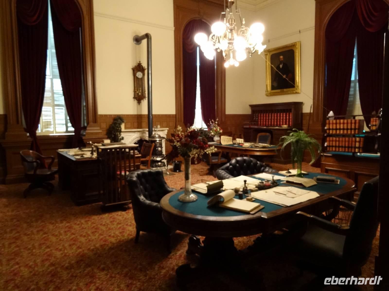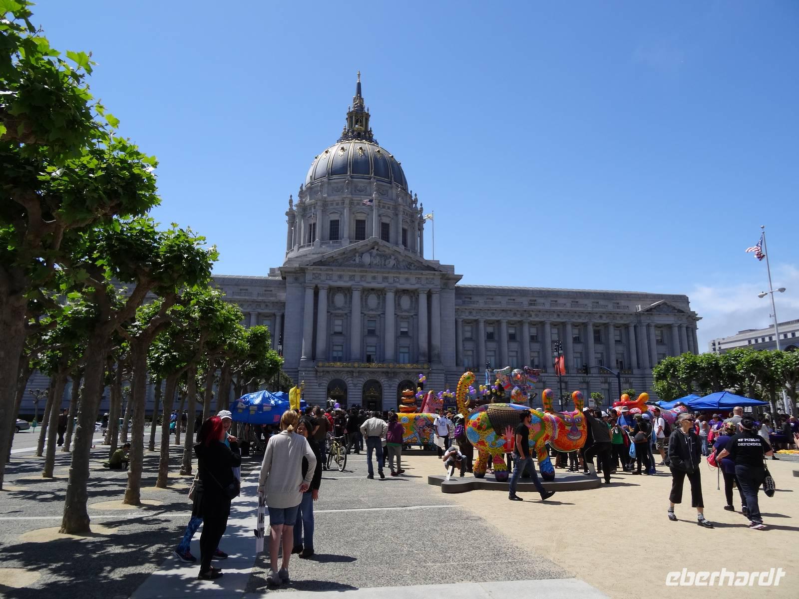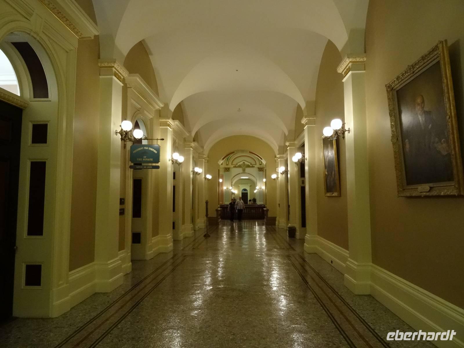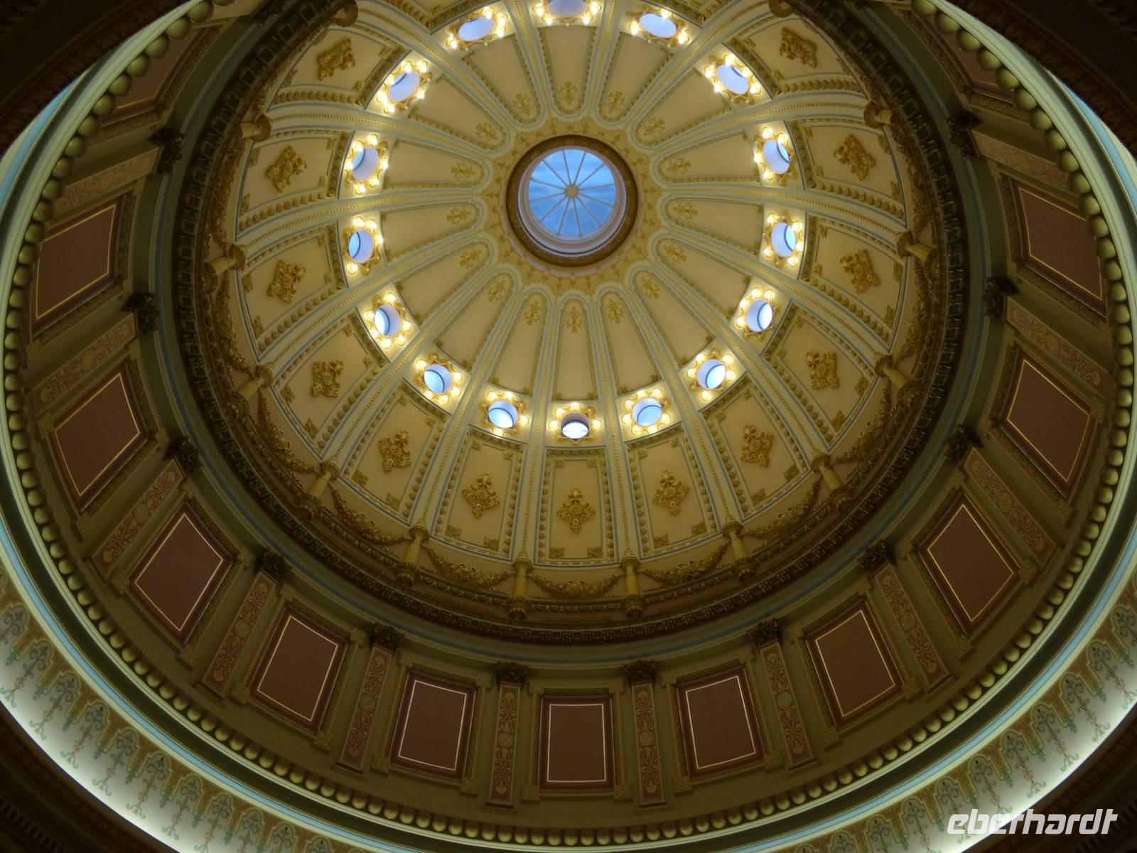 Wir verließen die Region um den Yosemite Nationalpark und fuhren den Merced River entlang durch die Ausläufer der Sierra Nevada. In der sich allmählich ändernden Landschaft nahmen die Farmen und Ranches wieder zu, denn immerhin ist die Landwirtschaft der viertwichtigste Wirtschaftszweig in Kalifornien. Darüber hinaus stammt das meiste Holz in den USA aus diesem Bundesstaat. Wenig später durchquerten wir das kleine Örtchen Mariposa, Ben erzählte uns derweil Wissenswertes über den Goldrausch in Kalifornien, der Mitte des neunzehnten Jahrhunderts diesen Landstrich in Aufruhr versetzte und Kalifornien den Beinamen „Golden State" einbrachte. Wir passierten die Stadt Merced und fuhren auf dem California Highway 99 durch das Sacramento-Tal gen Norden. Lodi ließen wir zugunsten von etwas mehr Zeit in Sacramento links liegen, machten unterwegs nochmal eine kurze Toilettenpause und erreichten die kalifornische Hauptstadt um die Mittagszeit. Unser erster Weg führte uns zum 1869 fertiggestellten Capitol, welches weithin sichtbar die Innenstadt dominiert. Nach dem üblichen Sicherheitsprozedere (Sicherheitsschleuse, Gepäckscanner) betraten wir das dem Capitol in Washington nachempfundene Gebäude, welches die Legislative des Staates Kalifornien und den Sitz des Gouverneurs beherbergt. Nach der Beendigung unseres Rundganges fuhren wir weiter nach Old Sacramento. Dieser 28-Hektar große und liebevoll sanierte Distrikt liegt am Sacramento River. Viele Touristen lassen sich hier inmitten der historischen Sehenswürdigkeiten in die Zeit des Goldrausches in Kalifornien und der Entstehung der transkontinentalen Eisenbahn zurück versetzen. Nach anderthalbstündigem Bummel durch die Gassen des Viertels setzten wir unseren Weg in Richtung Napa Valley fort. Das für seinen Weinbau bekannte Gebiet an der kalifornischen Westküste, das Dank seines mediterranen Klimas weltweit bekannte Weine hervorbringt, war Ziel unseres letzten Programmpunktes an diesem Tag. Wir besuchten die Cosentino Winery, ein kleines Weingut, welches auf zwei Hektar Fläche vor allem Chardonnay und Cabernet Sauvignon produziert. Bei einer kurzen Führung und der anschließenden Verkostung erfuhren wir mehr zum Anbau und der Herstellung kalifornischer Weine. Wir ließen den Tag bei einem schmackhaften Abendessen und anschließendem gemütlichen Beisammensitzen unter dem kalifornischen Abendhimmel ruhig ausklingen.