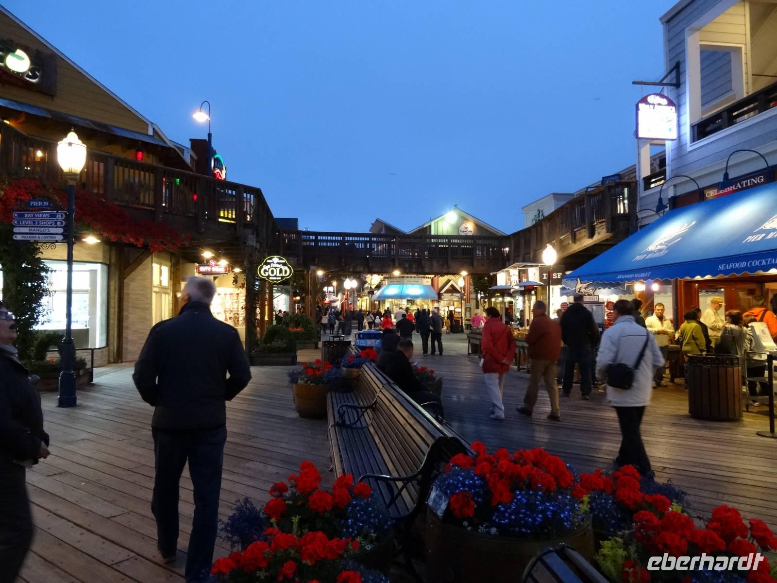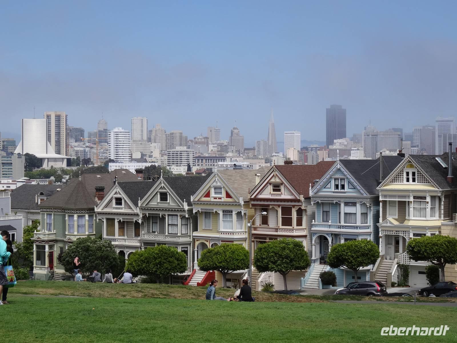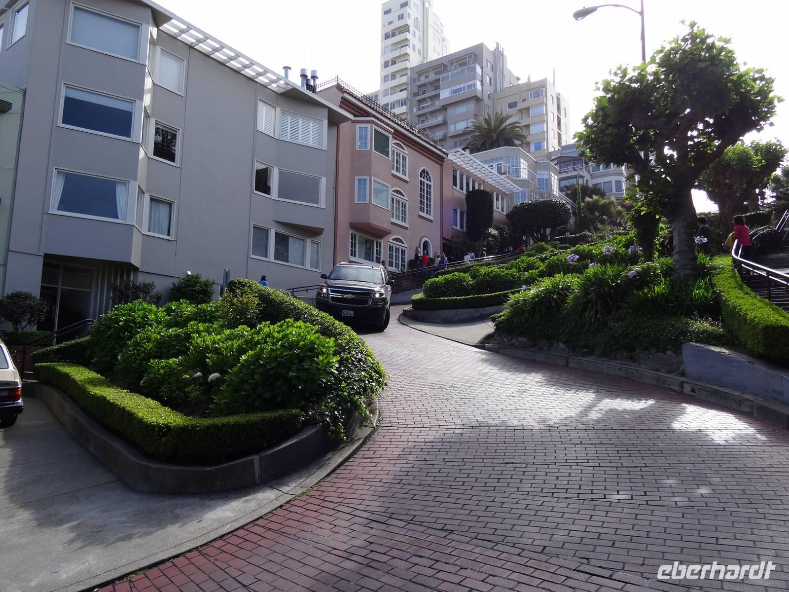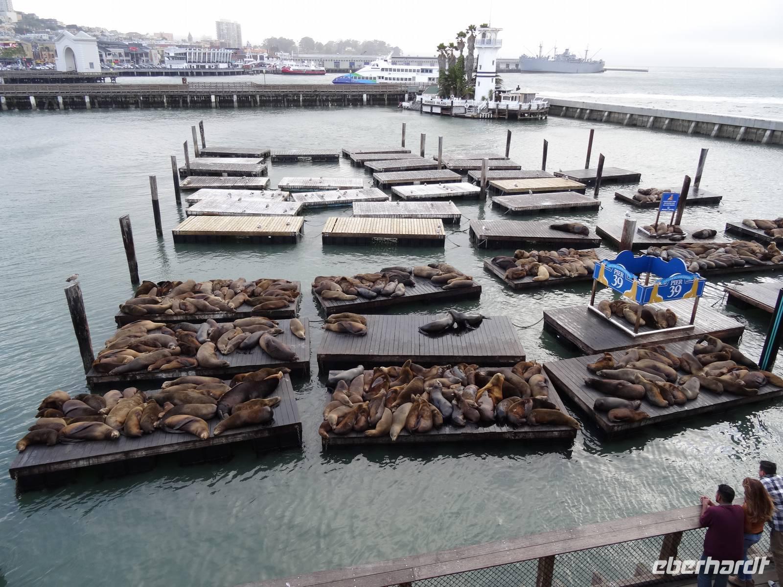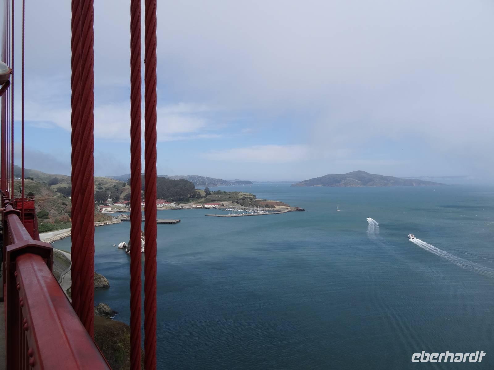 Die letzte Etappe unserer großen Entdeckungsreise durch den amerikanischen Westen begann mit einem wunderbaren Frühstück in unserem Hotel in American Canyon. Das vorletzte Mal hieß es Koffer packen und alles in unseren Bus verstauen. Bei bestem Wetter machten wir uns auf den Weg nach Muir Woods, dem nördlich von San Franzisco gelegenen Schutzgebiet der bekannten Küstenmammutbäume, den höchsten Bäumen der Erde. Wir erreichten den Park am zeitigen Vormittag, so dass der Besucherstrom aus dem Großraum San Francisco noch nicht eingesetzt hatte. Bei einem Spaziergang bestaunten wir die bis zu 115 Meter hoch wachsenden Bäume, die hier bis zu achthundert Jahre alt sind. Über Sausolito mit seinen noblen Häusern und vor Anker liegenden Yachten erreichten wir später das nördliche „Einfalltor" und wohl bekannteste Bauwerk San Franciscos, die Golden Gate Bridge. Doch leider lag dieses Reise-Highlight, auf das sich viele von uns so lange gefreut hatten, in einer dicken Nebelschicht verborgen. Kein Fernblick auf die berühmte, rostrot leuchtende Brücke war uns vergönnt. Da half es auch nicht, dass wir das 2,7 Kilometer lange Bauwerk zu Fuß überquerten und mit Händen fassen konnten. Das alles entscheidende Foto, „Mensch - vor, auf, neben oder unter der Brücke", in Millionen Fotosammlungen weltweit als Höhepunkt jahrelangen Reisens geführt, konnte nicht geschossen werden. Die Trauer darüber hielt aber nur einen Moment lang an, letztendlich freuten wir uns auf die weiteren Höhepunkte der einstigen Hippie-Metropole am pazifischen Ozean. Bei der obligatorischen Stadtrundfahrt lernten wir das Civic Centre mit dem Rathaus, den Alamo Square mit den farbenfrohen Painted Ladies, den hektischen Union Square, die Lombard Street mit dem kurvenreichsten Straßenteilstück der Welt, Chinatown, Little Italy und den Besuchermagnet Fisherman's Wharf kennen. Vor dem Abendessen in einem japanischen Restaurant am Pier 39 hatten wir noch Zeit, in den Geschäften zu bummeln und das rege Treiben an der Wasserfront, gegenüber der berühmten Gefängnisinsel Alcatraz, zu genießen. Die am Pier 39 „ansässige" Seelöwenkolonie ist dabei natürlich ein Besuchermagnet und blieb nicht unfotografiert. Leider hatte sich auch zum Abend hin die Sicht auf die Golden Gate Bridge nicht verbessert, so das uns als Trost nur der Blick auf die (ebenfalls) sehr schöne, aber farblich nicht so attraktive Bay Bridge blieb. Ein sehr frischer Wind, der in San Francisco durchaus zum Alltag gehört, vertrieb uns ein wenig die Lust, noch länger an der Fischerman's Wharf zu verweilen. Mark Twain hatte zum Wetter einmal im Spaß gesagt: „Der kälteste Winter, den ich jemals erlebt habe, war der Sommer in San Francisco". Wir mochten gar nicht daran denken, wenn der Mann Recht haben sollte. Zu der Trauer um die nicht sichtbare Brücke gesellte sich dann auch noch die Trauer um den Abschied unseres liebgewonnenen Reiseleiters und Busfahrers Ben. Heute war sein letzter Tag mit uns, er brachte uns noch ins Hotel und setzte dann seinen Weg in Richtung Los Angeles fort. Wir mussten alle das ein oder andere feuchte Auge trocknen, hatte uns Ben doch in den vierzehn Tagen unseres Zusammenseins mit seiner Sachkompetenz, seinem herzlichen Wesen und seiner heiteren Art unvergessliche Urlaubstage beschert. Nicht zuletzt dank seines Engagements war unsere Tour durch den Westen ein großes Abenteuer und ein unvergessliches Erlebnis. Den letzten Abend im Land der unbegrenzten Möglichkeiten schwelgten wir dann auch bei Bier und Wein in Anekdoten und Reiseerinnerungen.