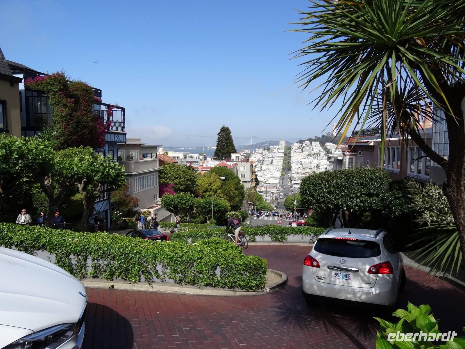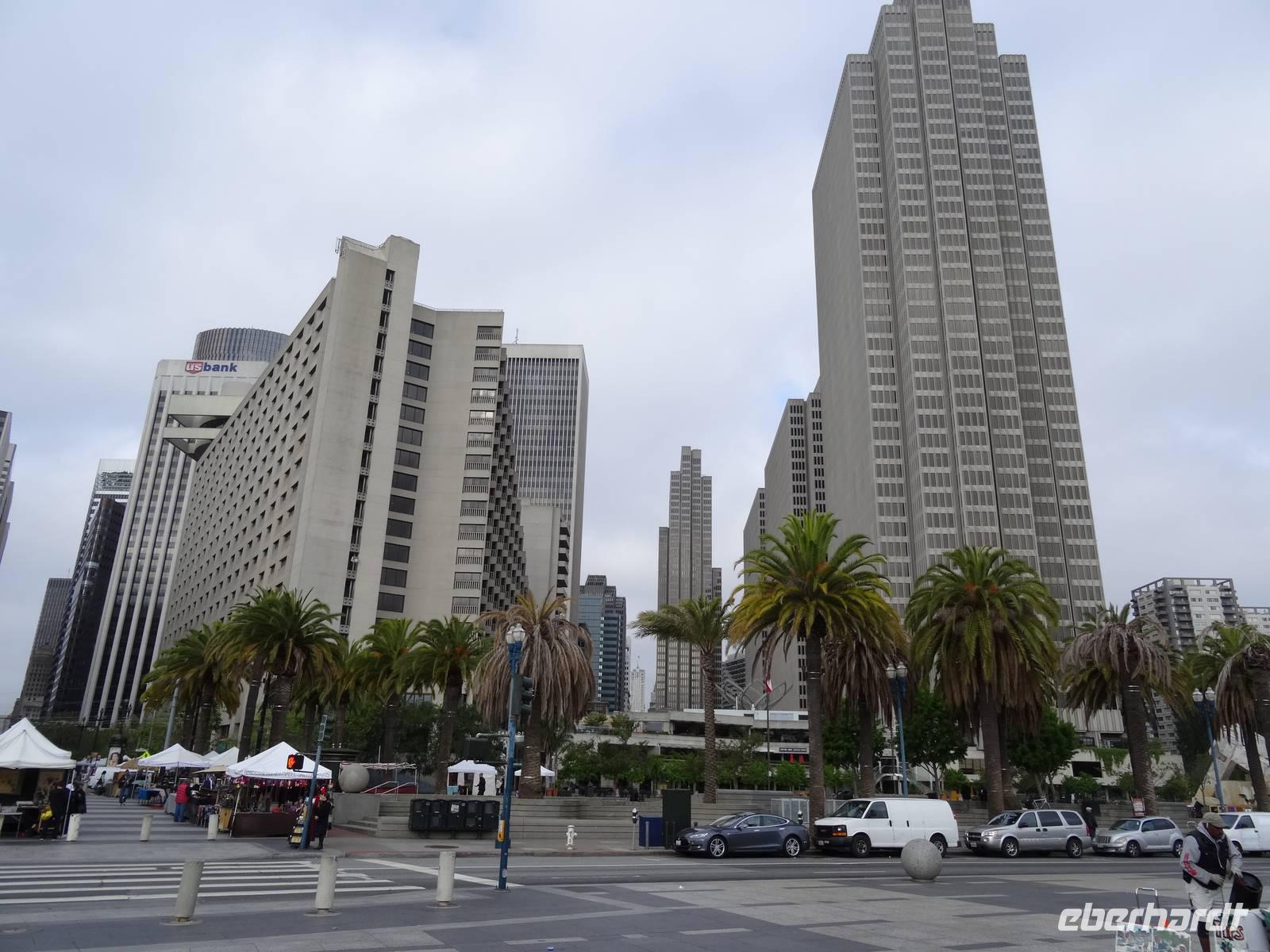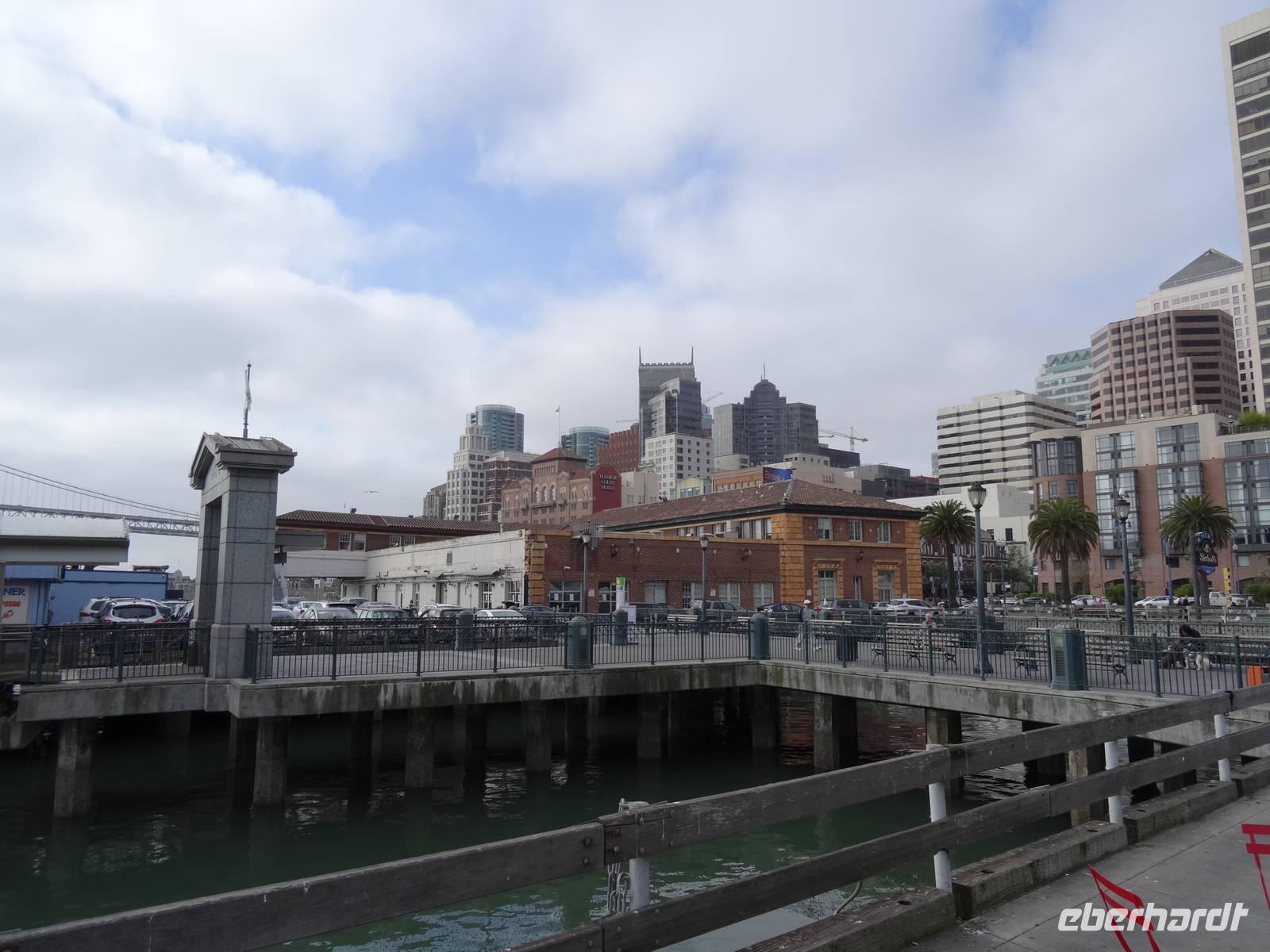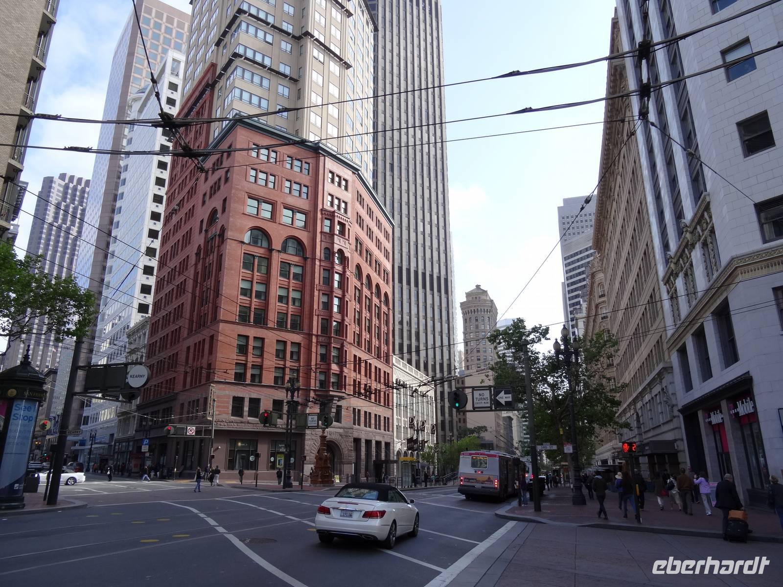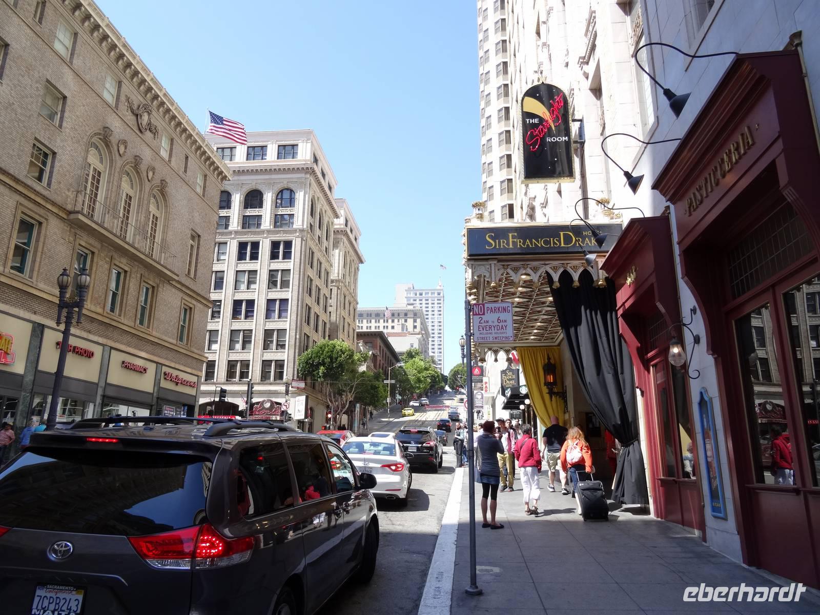 Bevor wir uns endgültig aus Kalifornien verabschiedeten, wollten wir die verbleibende Zeit bis zum Rückflug noch nutzen, um eine weitere weltberühmte Besonderheit in San Francisco kennenzulernen. Direkt ums Eck von unserem Hotel hatte eine der drei Cable-Car-Linien der Stadt ihren Endhaltepunkt. Nach einem ausgedehnten Frühstück schwangen wir uns im wahrsten Sinne des Wortes auf die Trittbretter der einzigen verbliebenen Kabelstraßenbahn der Welt, um im historischen Ambiente der heute nostalgisch anmutenden Vehikel durch die Stadt zu fahren. Die California-Street-Linie führte von unserem Hotel bis zum Ende des Finanzdistrikts, wo wir ausstiegen und das in der Nähe befindliche Embarcadero Ferry Terminal mit seinen kleinen Geschäften und dem angrenzenden Wochenmarkt besichtigten. Von hier aus hatten wir auch einen tollen Blick auf die Bay Bridge, die San Francisco mit der Nachbarstadt Oakland verbindet. Da das Wetter sehr schön war und wir noch Zeit bis zum Flughafentransfer hatten, spazierten wir die Market Street, eine der Hauptverkehrsadern der Stadt und gleichzeitig wichtige Einkaufs- und Geschäftsstraße, bis in Höhe Union Square entlang, um dann langsam den Rückweg zu unserem Hotel anzutreten. Am späten Vormittag hieß es dann endgültig Abschied nehmen, als uns der Bus in knapp fünfundzwanzig Minuten von Downtown San Francisco zum Internationalen Flughafen brachte. Nachdem wir eingecheckt und die obligatorische Sicherheitszeremonie hinter uns gebracht hatten, traten wir pünktlich und mit etwas Wehmut im Herzen den Heimflug an. Was wir aus dem Westen der USA mitnahmen, waren zwei überaus erlebnisreiche Wochen, angefüllt mit neuen Erfahrungen, vielen wunderbaren Momenten und eine Vielzahl von schönen Erinnerungen an die kulturelle und landschaftliche Vielfalt dieses einzigartigen Landstrichs. Wir verabschiedeten uns mit dem Gedanken, vielleicht irgendwann einmal ein „Welcome back" in unseren Ohren zu hören. Denn Raum für Entdeckungen ist noch immer genügend vorhanden...