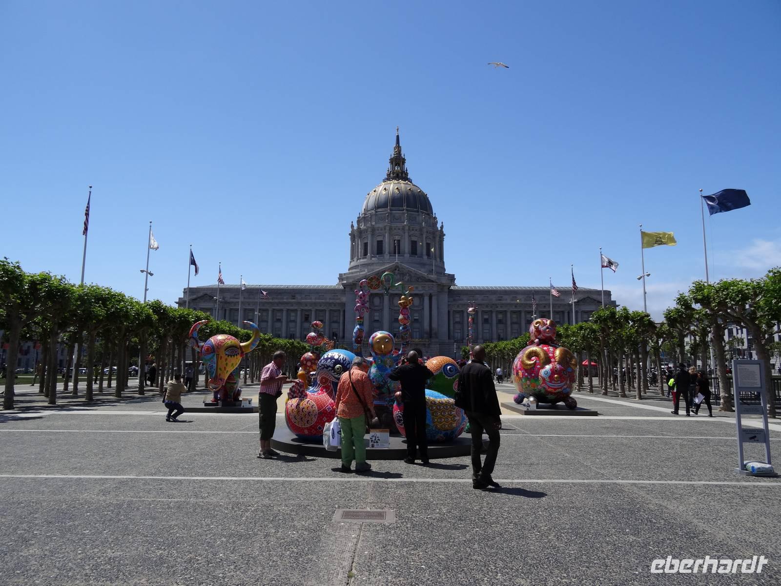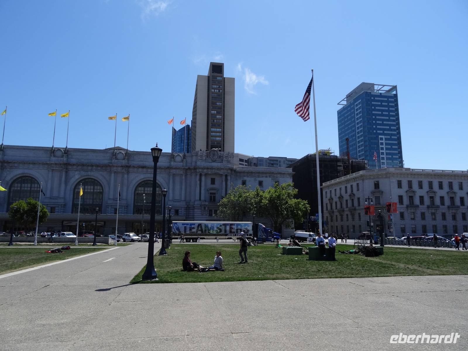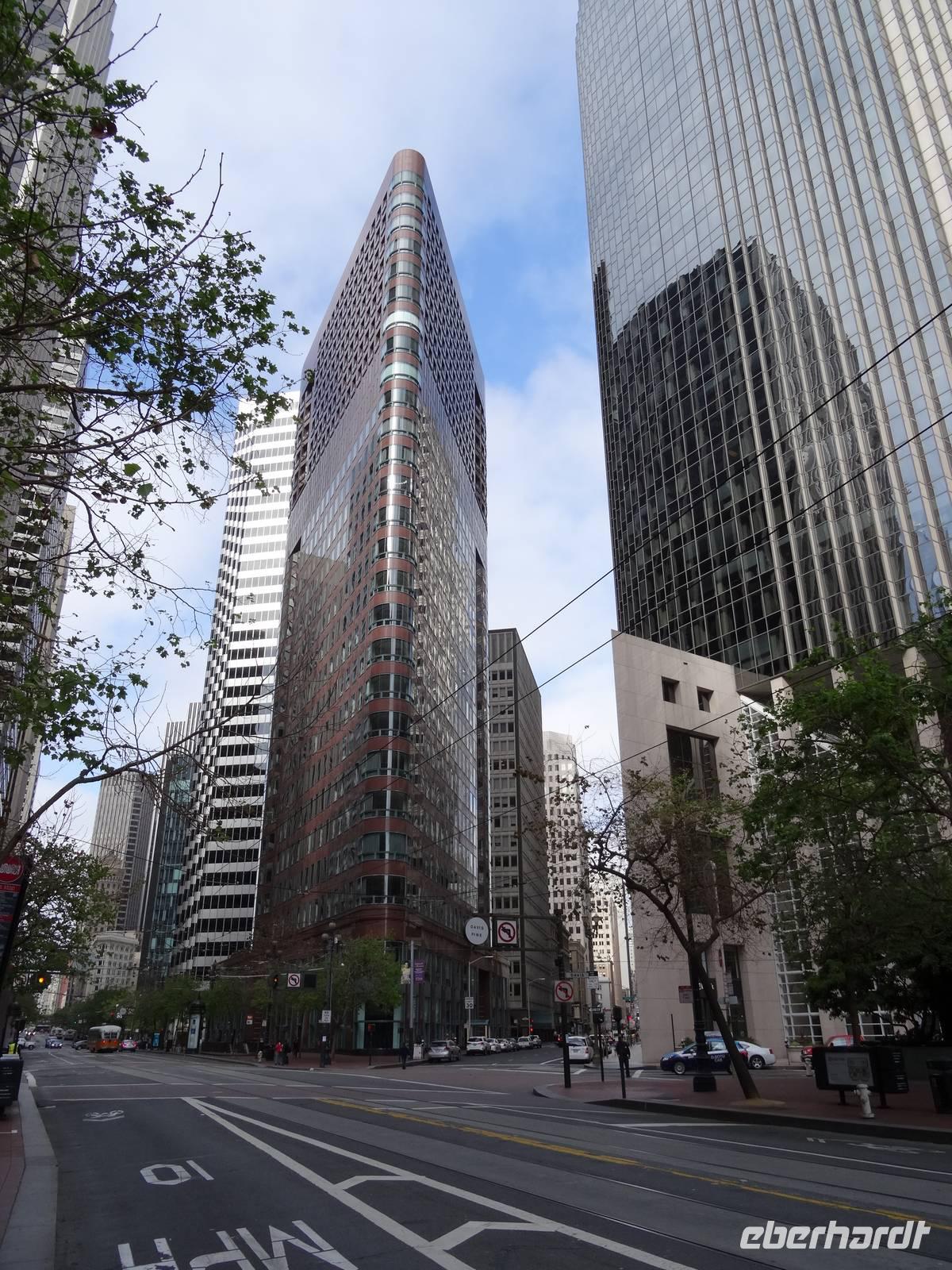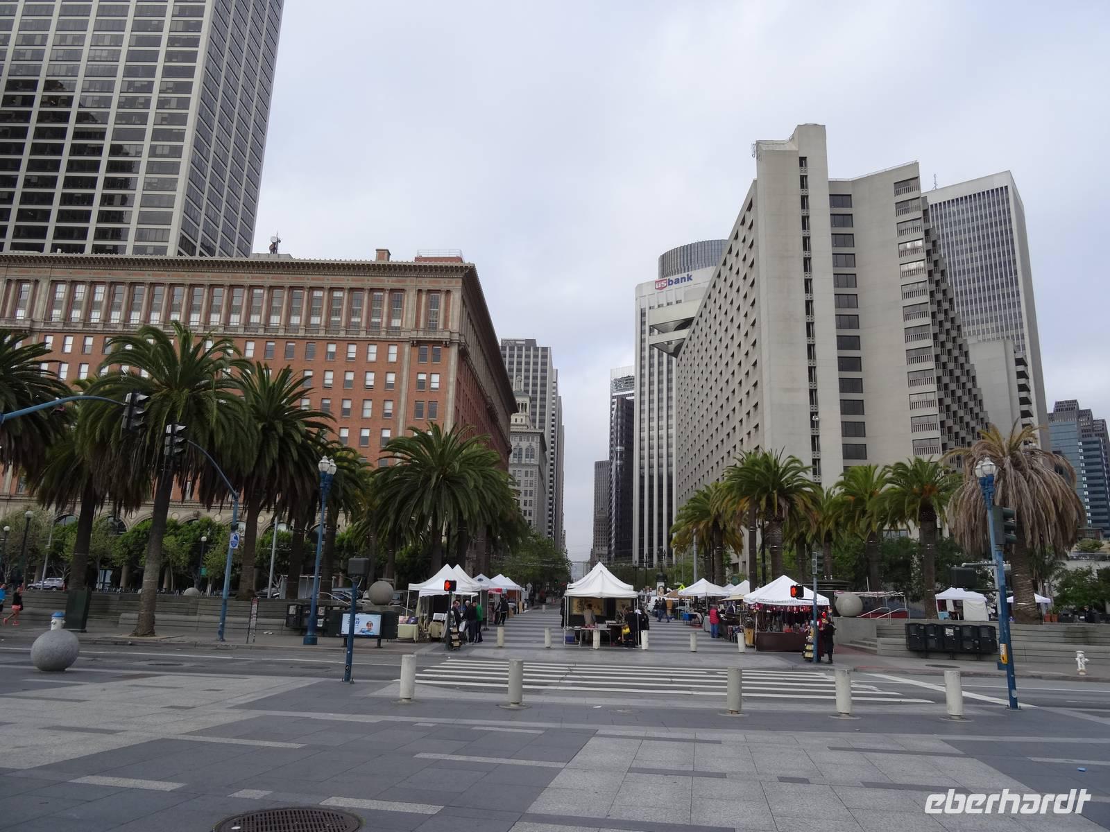 Bevor wir uns endgültig aus Kalifornien verabschiedeten, wollten wir die verbleibende Zeit bis zum Rückflug noch nutzen, um eine weitere weltberühmte Besonderheit in San Francisco kennenzulernen. Direkt ums Eck von unserem Hotel hatte eine der drei Cable-Car-Linien der Stadt ihren Endhaltepunkt. Nach einem ausgedehnten Frühstück schwangen wir uns im wahrsten Sinne des Wortes auf die Trittbretter der einzigen verbliebenen Kabelstraßenbahn der Welt, um im historischen Ambiente der heute nostalgisch anmutenden Vehikel durch die Stadt zu fahren. Die California-Street-Linie führte von unserem Hotel bis zum Ende des Finanzdistrikts, wo wir ausstiegen und das in der Nähe befindliche Embarcadero Ferry Terminal mit seinen kleinen Geschäften und dem angrenzenden Wochenmarkt besichtigten. Von hier aus hatten wir auch einen tollen Blick auf die Bay Bridge, die San Francisco mit der Nachbarstadt Oakland verbindet. Da das Wetter sehr schön war und wir noch Zeit bis zum Flughafentransfer hatten, spazierten wir die Market Street, eine der Hauptverkehrsadern der Stadt und gleichzeitig wichtige Einkaufs- und Geschäftsstraße, bis in Höhe Union Square entlang, um dann langsam den Rückweg zu unserem Hotel anzutreten. Am späten Vormittag hieß es dann endgültig Abschied nehmen, als uns der Bus in knapp fünfundzwanzig Minuten von Downtown San Francisco zum Internationalen Flughafen brachte. Nachdem wir eingecheckt und die obligatorische Sicherheitszeremonie hinter uns gebracht hatten, traten wir pünktlich und mit etwas Wehmut im Herzen den Heimflug an. Was wir aus dem Westen der USA mitnahmen, waren zwei überaus erlebnisreiche Wochen, angefüllt mit neuen Erfahrungen, vielen wunderbaren Momenten und eine Vielzahl von schönen Erinnerungen an die kulturelle und landschaftliche Vielfalt dieses einzigartigen Landstrichs. Wir verabschiedeten uns mit dem Gedanken, vielleicht irgendwann einmal ein „Welcome back" in unseren Ohren zu hören. Denn Raum für Entdeckungen ist noch immer genügend vorhanden...