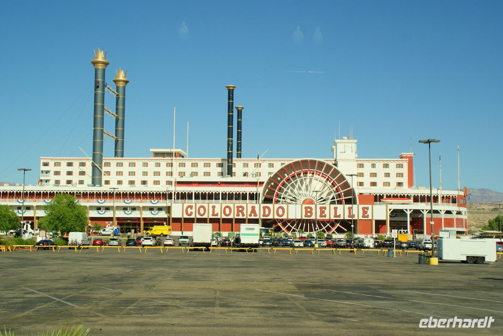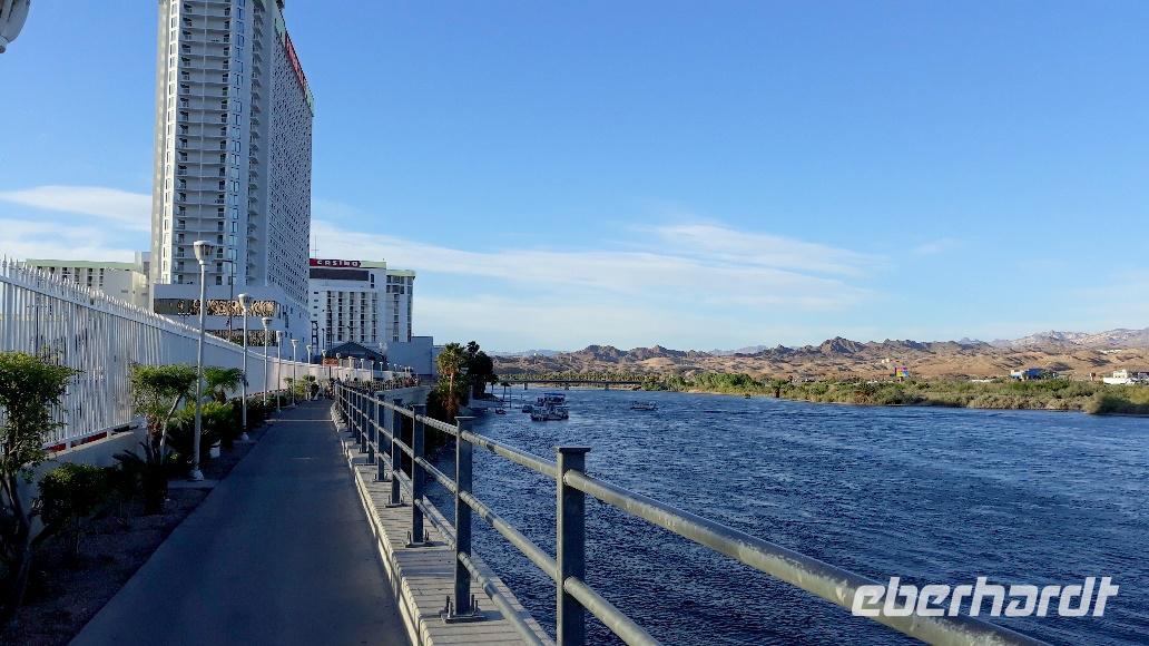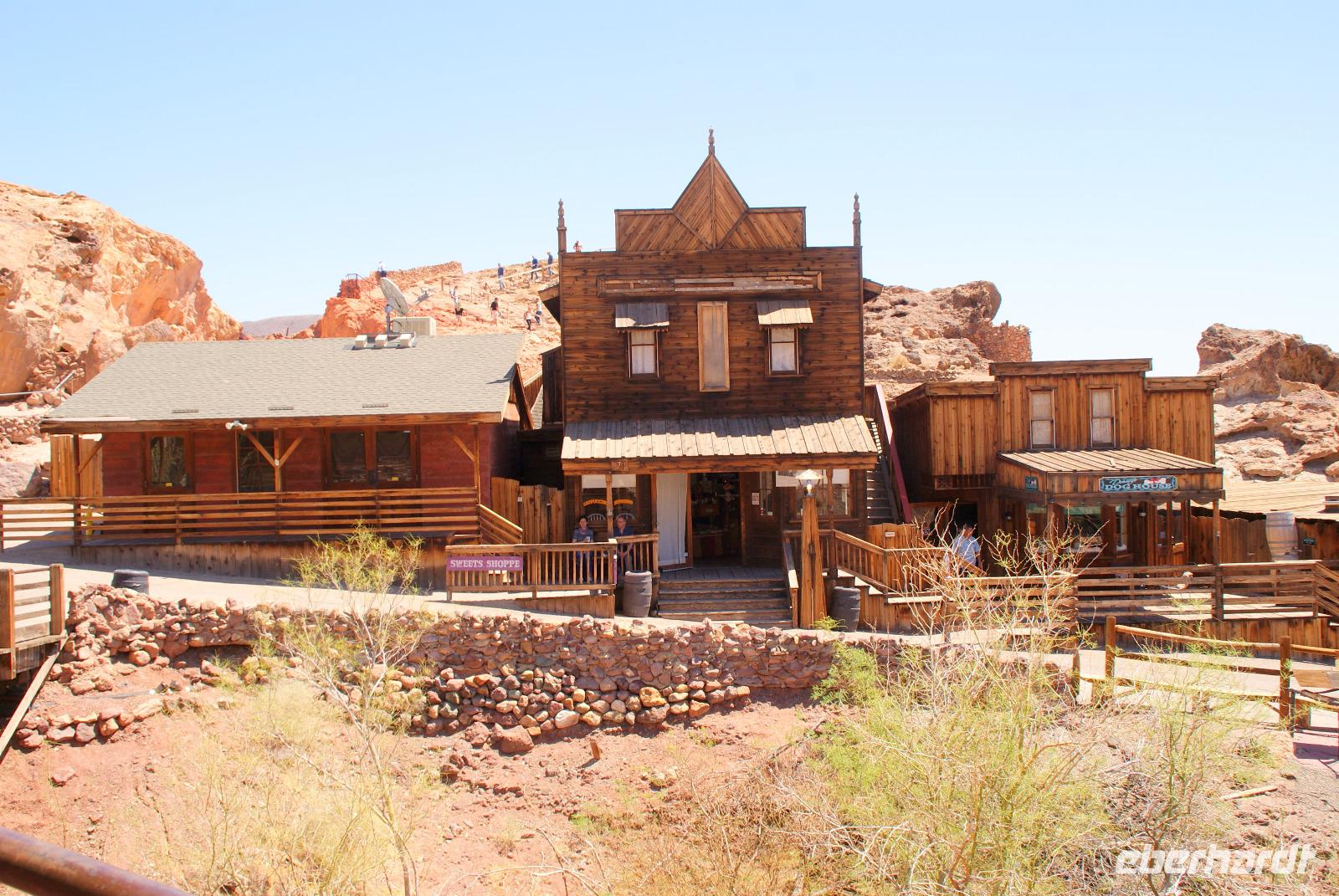 Nach einem leckeren gemeinsamen Frühstück verlassen wir Los Angeles und besuchen zunächst die Geisterstadt Calico, die von 1881 bis 1907 ein lebhaftes Städtchen war. Viele versuchten hier in den Silberminen ihr Glück und so entstand diese Wildwest-Stadt, die noch heute sehr gut erhalten uns in ihren Bann zieht. Wir fahren eine Runde mit der Odessa Eisenbahn und amüsieren uns über deren halsbrecherisches Tempo von satten 10 Km/h. Anschließend besichtigen wir die Stadt. Sehen die schöne alte Schule, diverse Saloons, das alte Rathaus, das Museum und diverse Krämerläden dürfen natürlich auch nicht fehlen. Verabschiedet werden wir vom ortsansässigen Sheriff, den wir netterweise zu einem Gruppenfoto überreden dürfen. Weiter geht es durch die Mojave Wüste nach Laughlin, welches am Colorado River liegt. Wir erreichen am Nachmittag die Spielerstadt und checken in unser Hotel Aquarius ein. Staunend sehen wir die vielen Besucher, auch „Snowbirds" genannt (Amerikaner, die hier in Ihren Wohnmobilen überwintern), die an den Spielautomaten kleben, ein Phänomen, was wir bis zum Schluss nicht verstehen wollen... Es bleibt noch Zeit für einen schönen Spaziergang am Colorado River entlang und so mancher landet im Automobilmuseum nebenan, welches Don Laughlin, Gründer der Stadt, einst ins Leben rief und dort so manches seiner Fahrzeuge der Öffentlichkeit zugänglich machte. Bei einem leckeren Abendessen und einem Besuch des Casinos lassen wir den erlebnisreichen Tag ausklingen.
