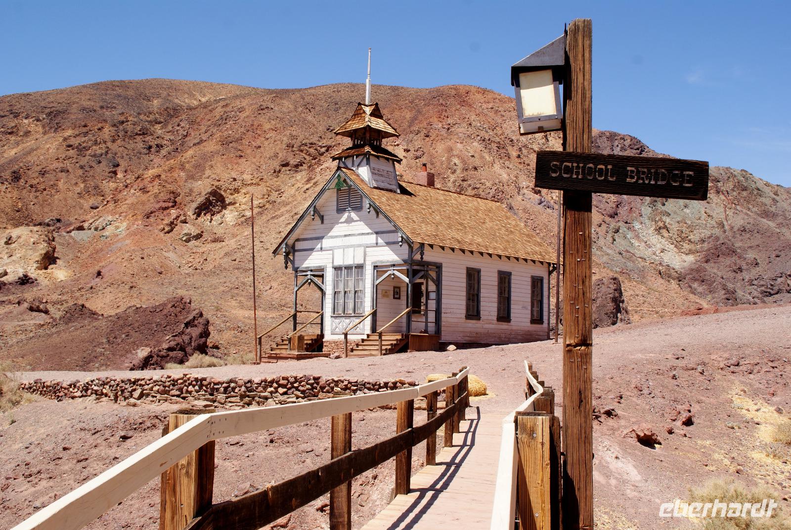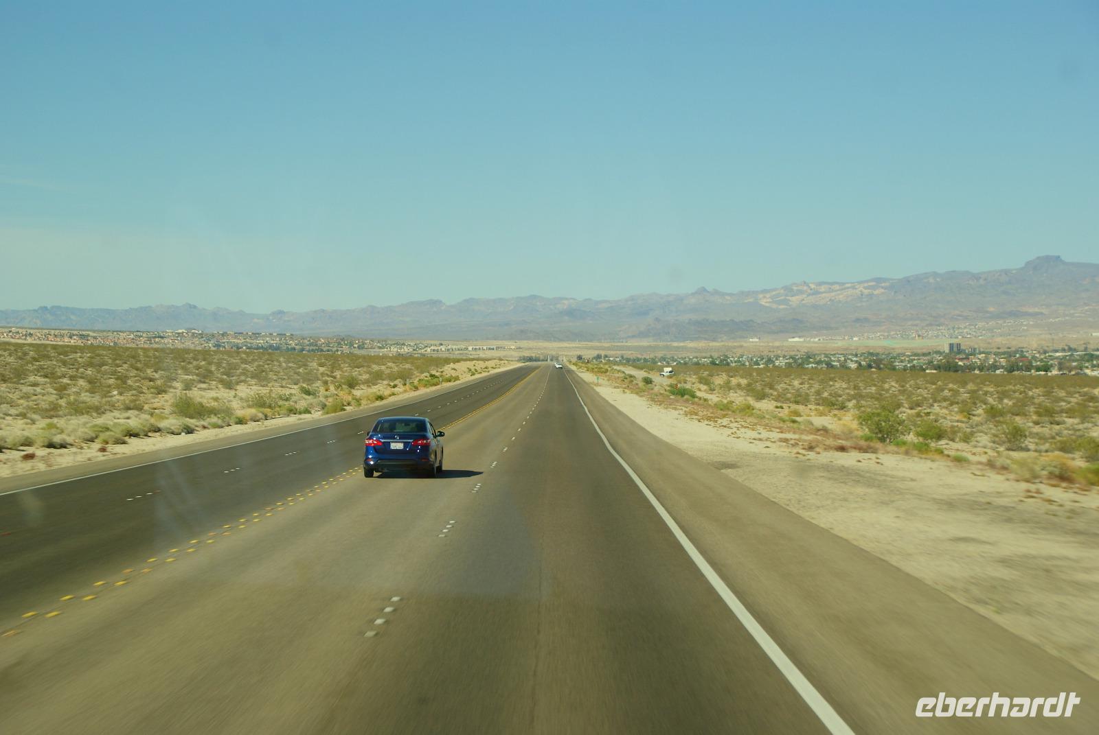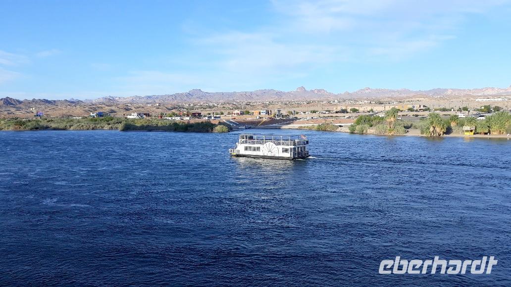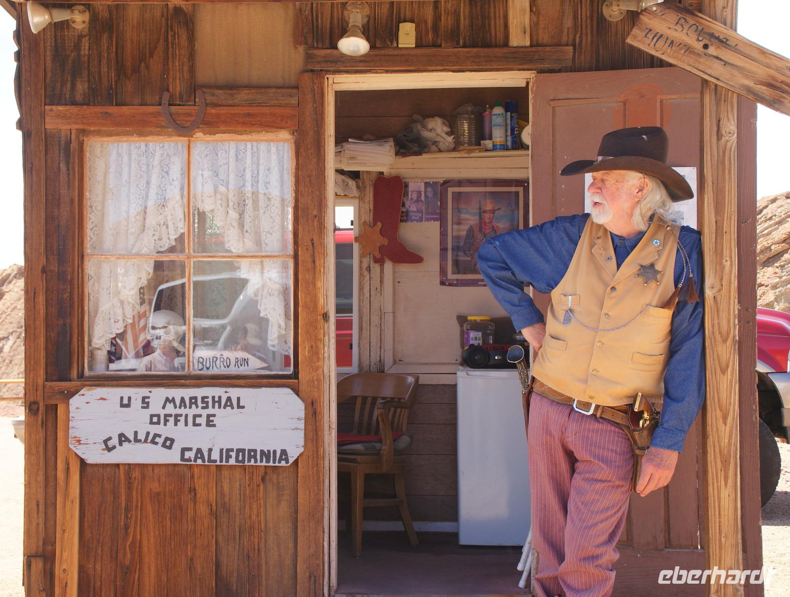 Nach einem leckeren gemeinsamen Frühstück verlassen wir Los Angeles und besuchen zunächst die Geisterstadt Calico, die von 1881 bis 1907 ein lebhaftes Städtchen war. Viele versuchten hier in den Silberminen ihr Glück und so entstand diese Wildwest-Stadt, die noch heute sehr gut erhalten uns in ihren Bann zieht. Wir fahren eine Runde mit der Odessa Eisenbahn und amüsieren uns über deren halsbrecherisches Tempo von satten 10 Km/h. Anschließend besichtigen wir die Stadt. Sehen die schöne alte Schule, diverse Saloons, das alte Rathaus, das Museum und diverse Krämerläden dürfen natürlich auch nicht fehlen. Verabschiedet werden wir vom ortsansässigen Sheriff, den wir netterweise zu einem Gruppenfoto überreden dürfen. Weiter geht es durch die Mojave Wüste nach Laughlin, welches am Colorado River liegt. Wir erreichen am Nachmittag die Spielerstadt und checken in unser Hotel Aquarius ein. Staunend sehen wir die vielen Besucher, auch „Snowbirds" genannt (Amerikaner, die hier in Ihren Wohnmobilen überwintern), die an den Spielautomaten kleben, ein Phänomen, was wir bis zum Schluss nicht verstehen wollen... Es bleibt noch Zeit für einen schönen Spaziergang am Colorado River entlang und so mancher landet im Automobilmuseum nebenan, welches Don Laughlin, Gründer der Stadt, einst ins Leben rief und dort so manches seiner Fahrzeuge der Öffentlichkeit zugänglich machte. Bei einem leckeren Abendessen und einem Besuch des Casinos lassen wir den erlebnisreichen Tag ausklingen.