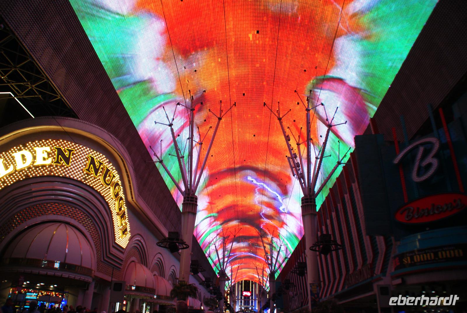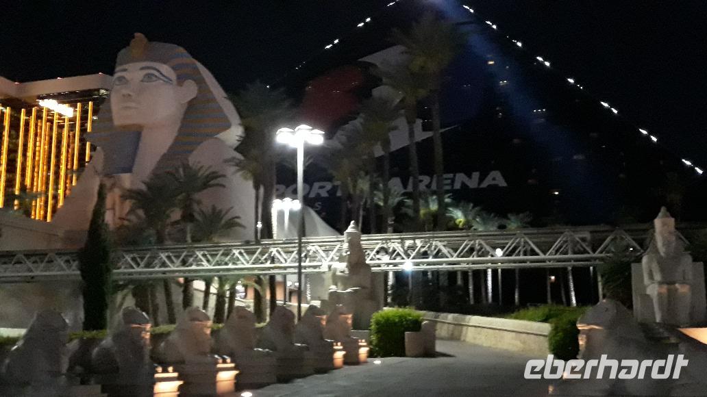 Ein sehr kühler Morgen bei 3 Grad erwartet uns, als wir uns zum Frühstück aufmachen. Anschließend fahren wir zunächst durch die Mojave Wüste, halten an der White Mountain Trading Post für Kaffee und das Notwendige, danach geht die Fahrt weiter durch den Zion Nationalpark und sind erneut sprachlos über dessen Schönheit. Bei diversen Fotostopps u.a. den Schachbrettfelsen erfahren wir, dass diese Musterung horizontal durch Wind und vertikal durch Wasserablauf entstanden ist. Danach erfolgt eine Kuriosität. Wir müssen einen Tunnel passieren, der für unser Fahrzeug zu niedrig ist. Prompt wird auf der anderen Seite der Gegenverkehr gesperrt und wir dürfen exklusiv und alleine in der Mitte des Tunnels unseres Weges ziehen... Als Nächstes halten wir am Giant Arch und bestaunen die Musterung des Felsens, der an der Seite wie ein Bogen aussieht. Wir verlassen den Park und machen unsere Mittagspause in St. George, wo jeder nach Lust und Laune shoppen und/oder mittagessen kann. Wir schmunzeln über Chris Aussage, dass wir nun den Bundesstaat Utah verlassen und den Bundesstaat Nevada betreten. Dazu meint er kommen wir vom Himmel zu Sodom und Gomorra...was das bedeuten soll, werden wir am Abend in Las Vegas noch erleben. In Nevada sind nämlich Dinge erlaubt, die in anderen Bundesstaaten untersagt sind. Beispiel hierfür sind Alkohol auf der Straße, Glücksspiel, Marihuana, Prostitution, etc. Am frühen Nachmittag erreichen wir die Spielerstadt Las Vegas. Wir erfahren, dass diese durch den Bau des Hoover Damms 1932 und 1940 dort das erste Spielkasino entstand. Heute fasst die Stadt 1,3 Mio. EW und unzählige Besucher, die Jahr für Jahr hier ihr Glücok versuchen wollen. Wir besuchen das Caesars Palace und spazieren hindurch, staunen über den künstlichen Himmel, die nicht enden wollenden Geschäfte. Weiter gehen unsere Erkundungen zu „The Venetian" nach Venedig und wir staunen nicht schlecht über den Markusplatz, die Gondeln, die auf richtigen Kanälen fahren, etc. Eine verrückte Welt, Europa auf einer Straße greifbar. Natürlich darf ein Fotostopp am berühmten „Welcome to Las Vegas" Schild nicht fehlen. Es erfolgt ein Zwischenstopp in unserem imposanten Hotel Luxor und nachdem wir ein tolles Abendbuffet genossen haben, geht es weiter zum Nachtleben der Stadt. Wir besuchen die Fremont Street und laufen durch eine Art Fußgängerzone, deren Himmel überdacht ist und täglich um 20.00 Uhr eine tolle Lichtershow bietet. Auch die bunte Mischung der Besucher und Akteure vor Ort fesselt uns und wir verstehen nun, was mit Sodom und Gomorra gemeint sein könnte. Auf unserer Weiterfahrt zum Las Vegas Strip kommen wir an unzähligen Hochzeitskapellen vorbei und sehen sogar eine, bei der man im Auto sitzend in Windeseile getraut werden kann. Abschließend sehen wir das Spektakel der Wasserspiele des Bellagio Hotels und spazieren dann den Strip entlang. Der ein oder andere genießt ein kühles Bier, bei 27 Grad Außentemperatur zur späteren Stunde sicher eine gute Idee...andere versuchen ihr Glück beim Spiel oder spazieren zurück zum Hotel. Ein erneut sehr abwechslungsreicher Tag voller schöner Erlebnisse neigt sich dem Ende. Gute Nacht Las Vegas...die vielen Eindrücke müssen wir erst mal verdauen.