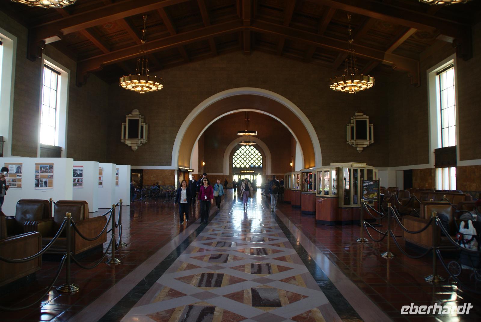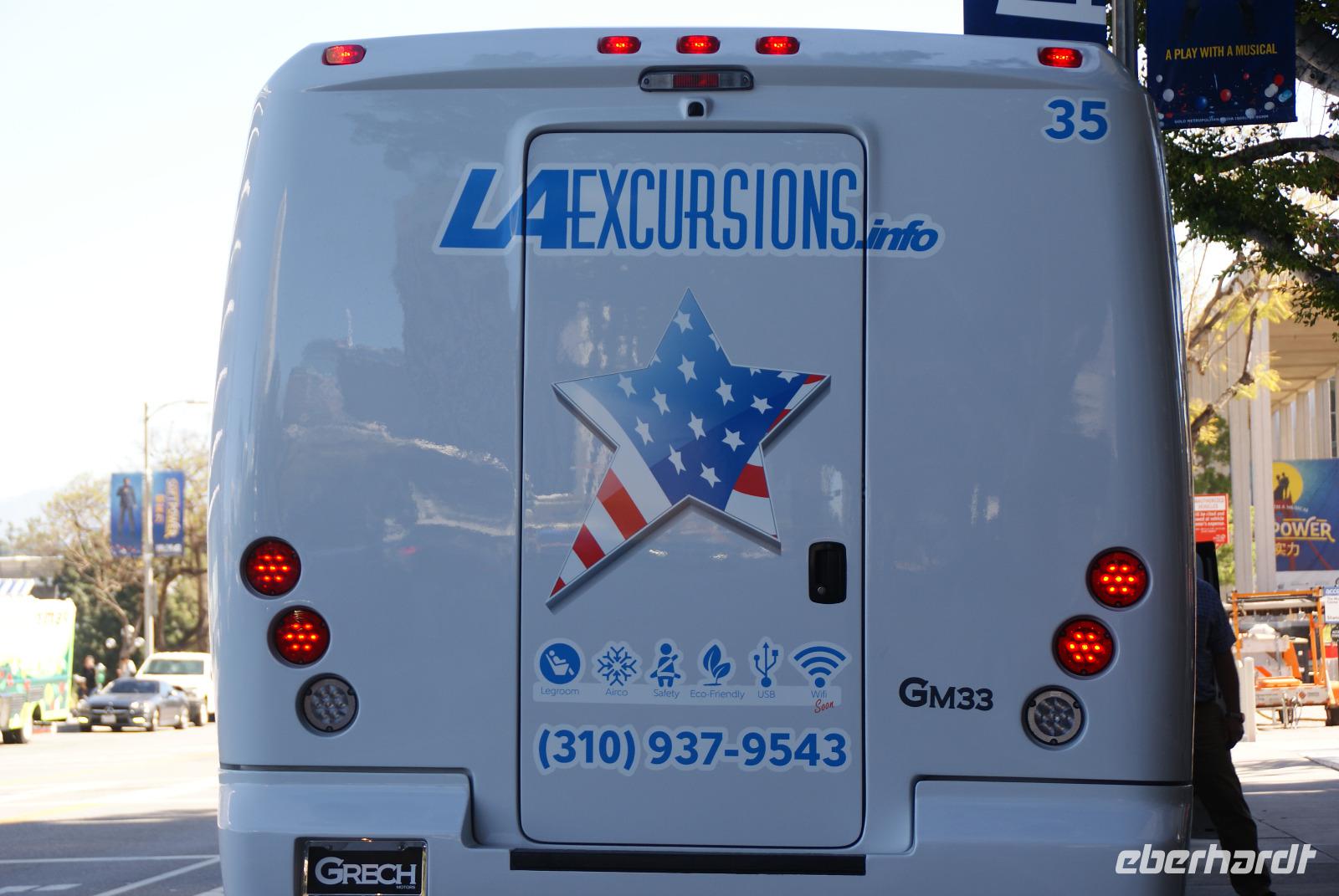 Geschlafen wie die Steine treffen wir uns gut gelaunt zum reichhaltigen Frühstück unseres Hotels. Auf der Hinfahrt nach Los Angeles nutzt Chris den Verkehr vor uns und erzählt uns viel Interessantes über die Stadt der Engel. So wurde Los Angeles im Jahr 1781 von 30 Franziskanermönchen gegründet und ist heute zu einer grünen Stadt mit 17 Mio. Einwohnern herangewachsen. Wir erfahren, dass es in Kalifornien ca. 480 Erdbeben pro Jahr gibt, was auch begründet, warum es keine U-Bahn gibt und die Bahn nur oberirdisch fahren darf. Los Angeles liegt zwischen der Sierra Nevada und dem Pazifik und amüsiert hören wir, dass es möglich ist, morgens zum Strand zu gehen und nachmittags in den Bergen, beispielsweise dem 3500 m hohem Big Bear Mountain, Skifahren kann. Eine interessante Mischung! Auch industriell wird hier einiges geboten, unter viel anderem werden hier so gegensätzliche Produkte wie Kampfflugzeuge und auch Barbiepuppen hergestellt. Chris berichtet, dass der Staat Kalifornien von „Caldo Forno"kommt und „heißer Ofen" bedeutet. Auf unserer Stadtrundfahrt sehen wir das Convention Center, das Messegelände der Stadt, Staples Center, wo viele Basketball-und Eishockeyspiele stattfinden, sehen Down Town mit den Wolkenkratzern. Einen Fotostopp machen wir am Disney Theater und dem Rathaus mit beeindruckendem Brunnen davor. Weiter geht es zur Olvera Street, dem Ort, wo Los Angeles als erstes besiedelt wurde. Natürlich dürfen wir nicht den wunderschönen Bahnhof „Union Station" verpassen und sind beeindruckt vom gepflegten und historischen Ambiente. Unseren Mittagsstopp machen wir in Hollywood und lassen das bunte Treiben auf uns wirken. Wir bestaunen den „Walk of fame" mit all seinen Sternen, sehen die Hand-und Fußabdrücke vieler Persönlichkeiten, das Man's Chinese Theatre und natürlich darf ein Foto mit dem berühmten Hollywood Schild im Hintergrund nicht fehlen. Weiter geht es den Sunset Boulevard entlang Richtung Beverly Hills. Netterweise dürfen wir am noch existierenden Haus von Marilyn Monroe kurz aussteigen und ein Foto machen. Ebenso stoppen wir am Beverly Hills Schild, leider dürfen Busse nicht mehr in die Straßen der Schönen und Reichen hineinfahren, was wiederum auch verständlich ist. Nachmittags überrascht uns Eberhardt mit einer Einladung zum Getty Center und wir genießen von dort die fantastische Sicht auf Los Angeles, wo uns dessen Dimensionen erst so richtig bewusst werden. Jeder nutzt die Freizeit im Getty Center nach Lust und Laune und schaut sich die interessanten Exponate an. Wir genießen das herrliche Wetter, die tolle Kulisse, das Ambiente des Museums und begeben uns danach zurück zum Hotel. Die verbleibende Freizeit nutzen wir für einen Bummel entlang der 3rd Street mit netter Fußgängerzone und treffen uns zum Abendessen im „Daily Grill" wieder. Ein leckeres 3-Gang Menü und ein Spaziergang am Santa Monica Pier mancher Gäste runden den Abend ab. So viele schöne Erlebnisse lassen uns bald einschlummern und von den nächsten Tagen unserer aufregenden Reise träumen.