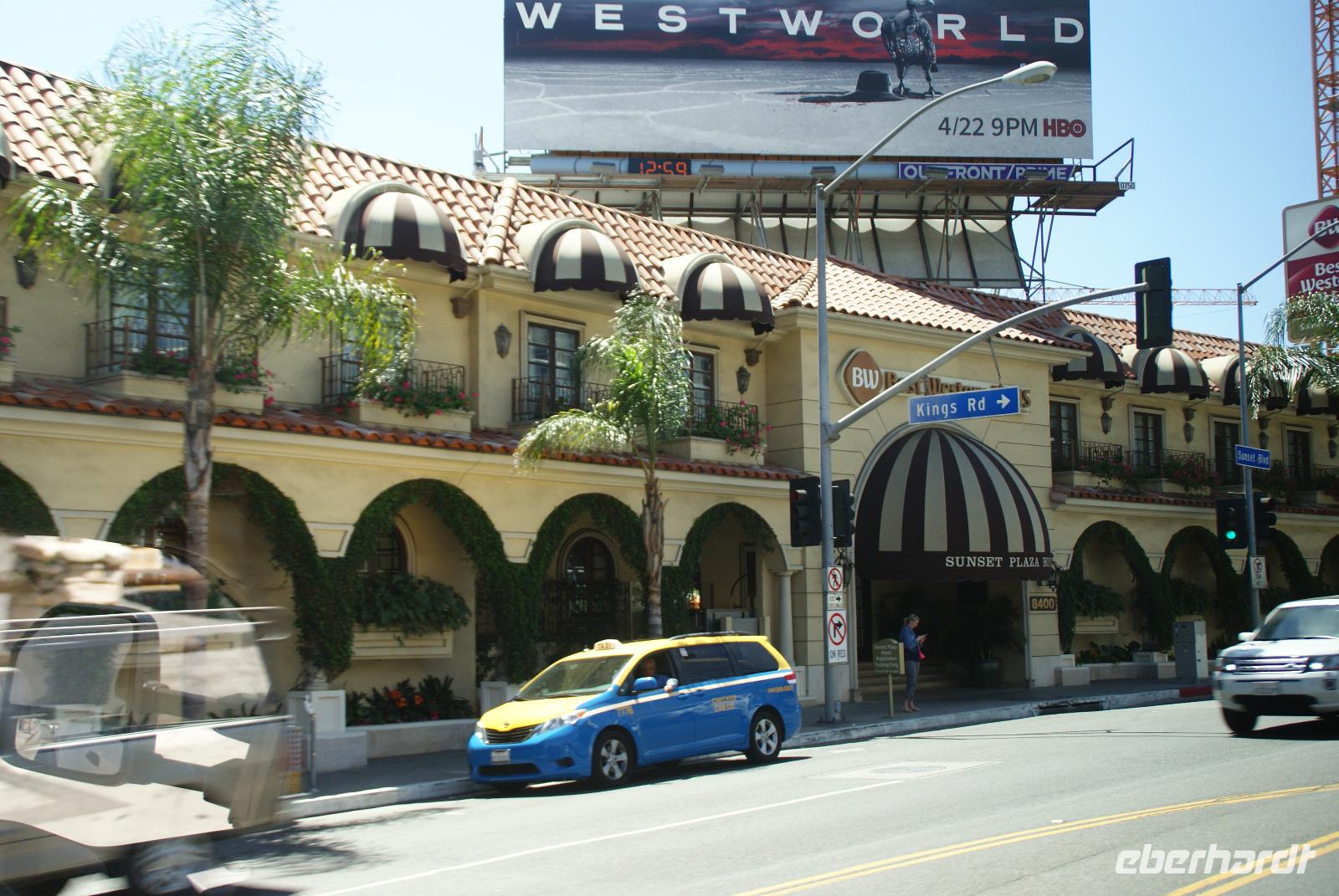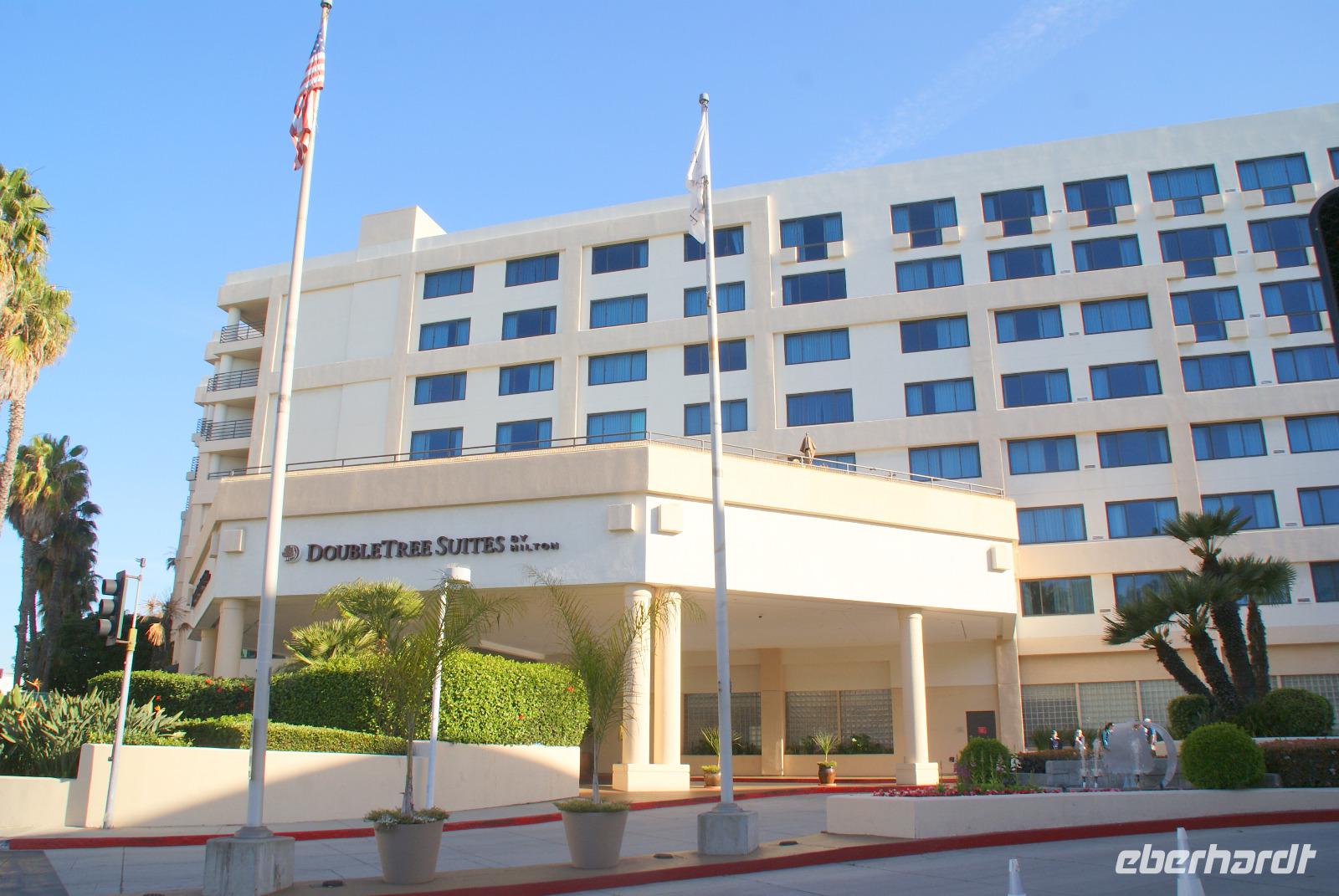 Heute Morgen trifft sich unsere Reisegruppe, die aus allen Teilen Deutschlands in Frankfurt zusammenkommt, zum Abflug nach Los Angeles. Nach einem reibungslosen und absolut ruhigen Flug erreichen wir 12 Stunden später die Vereinigten Staaten von Amerika. Am Flughafen Los Angeles angekommen, werden wir freundlich von unserem Reiseleiter und Fahrer Chris begrüßt, der uns bereits auf dem Weg zu unserem Doubletree Hotel in Santa Monica so manches Wissenswerte zu Los Angeles und seiner Person erzählt. Wir erfahren, dass er 25 Jahre bei der USA Army in Heidelberg stationiert war, 6 Sprachen spricht und Deutsch so gut wie perfektioniert hat. Nach dem Check-in schließen sich mir Susanne Schirmann, Eberhardt Reisebegleitung, einige Gäste an, um zum schönen Santa Monica Pier zu spazieren. Bei voller Sonne und sehr milden Temperaturen haben wir jedoch nicht mit dem starken Wind gerechnet, der uns förmlich davon weht. So belassen wir es bei einem kurzen Spaziergang, fotografieren das Ende der berühmten Route 66 und schlendern zurück zum Hotel. Es erwartet uns ja noch unser Willkommens-Abendessen im „M Street Kitchen" Restaurant. Wir sitzen in gemütlicher Runde bei einem köstlichen 4-Gänge-Menü und lassen den ersten Abend unserer Reise ausklingen. Danach sind wir nun wirklich bettreif und versuchen uns von den 9 Stunden Zeitverschiebung unbeeindruckt zu lassen.... Gute Nacht, Stadt der Engel!