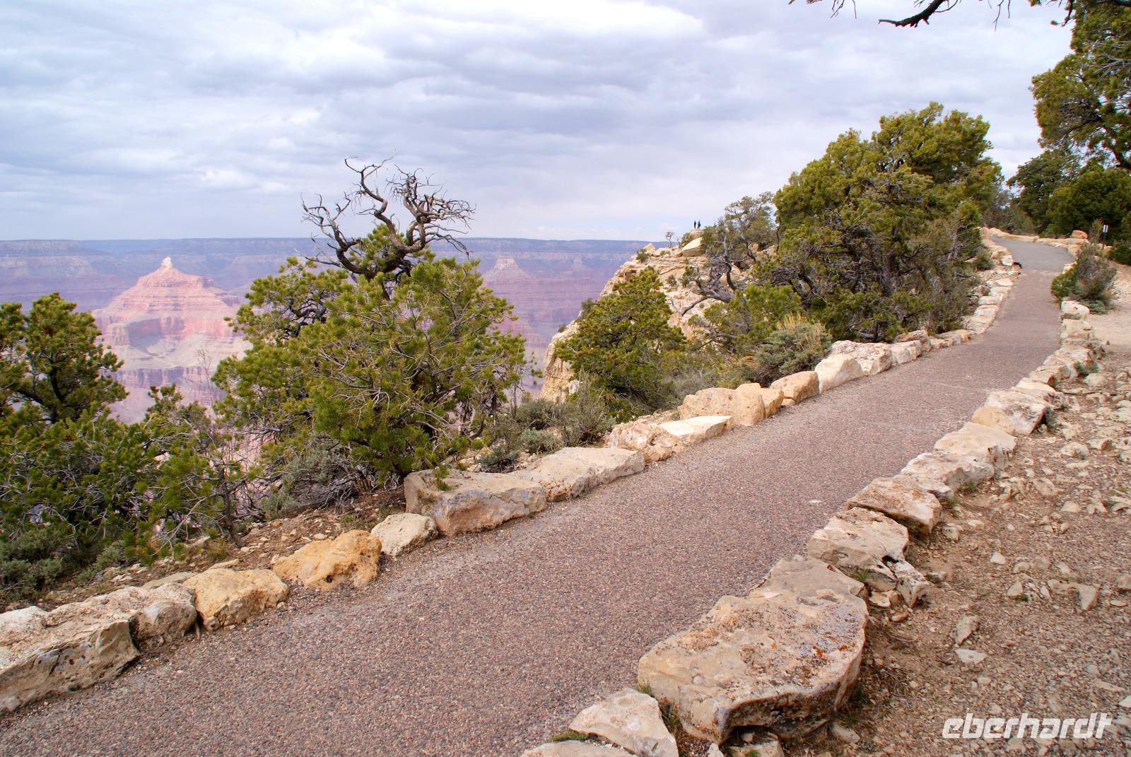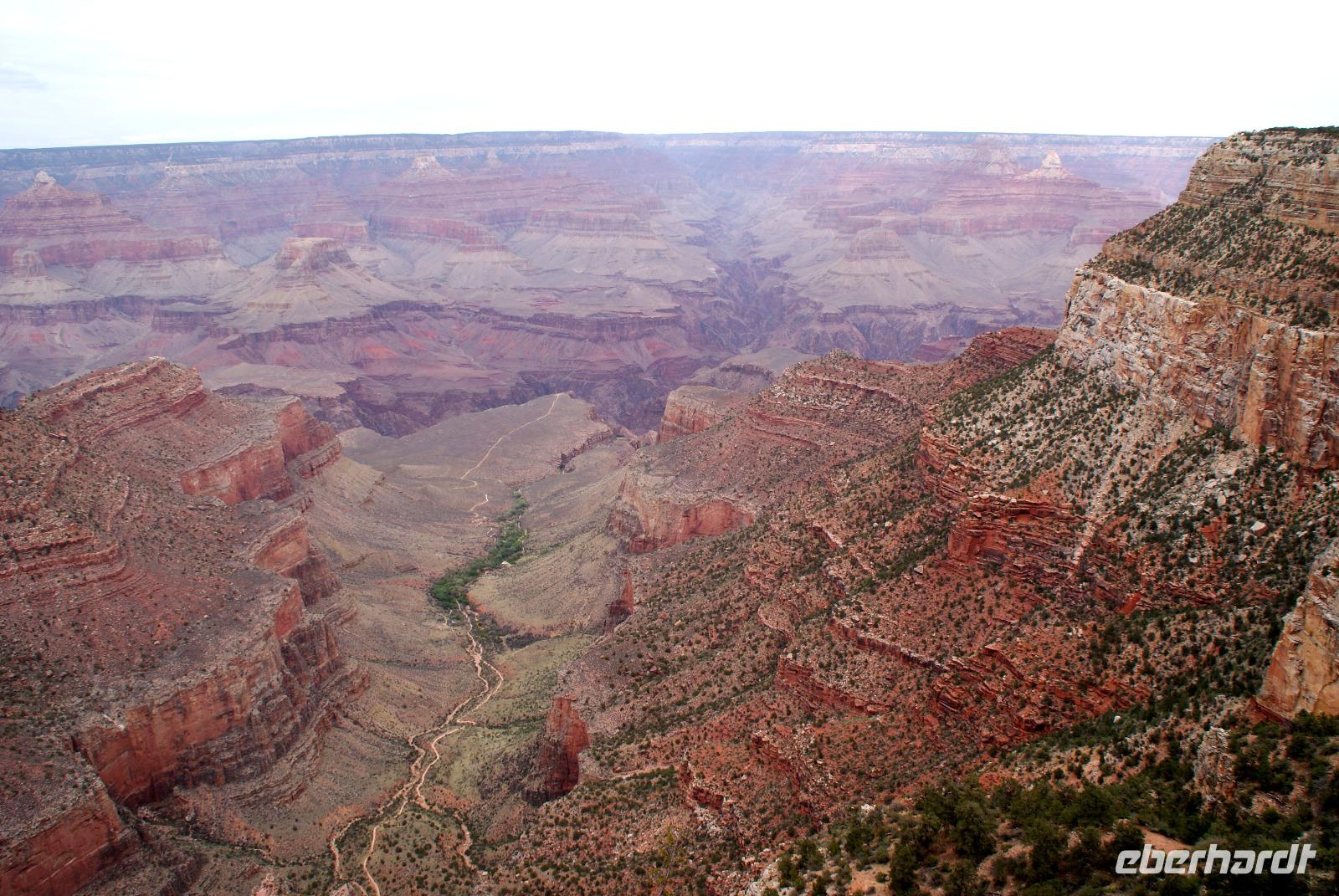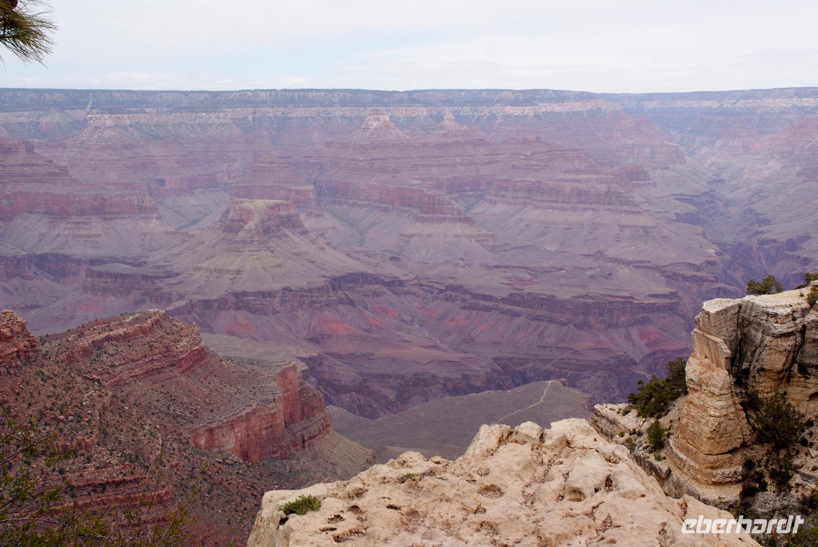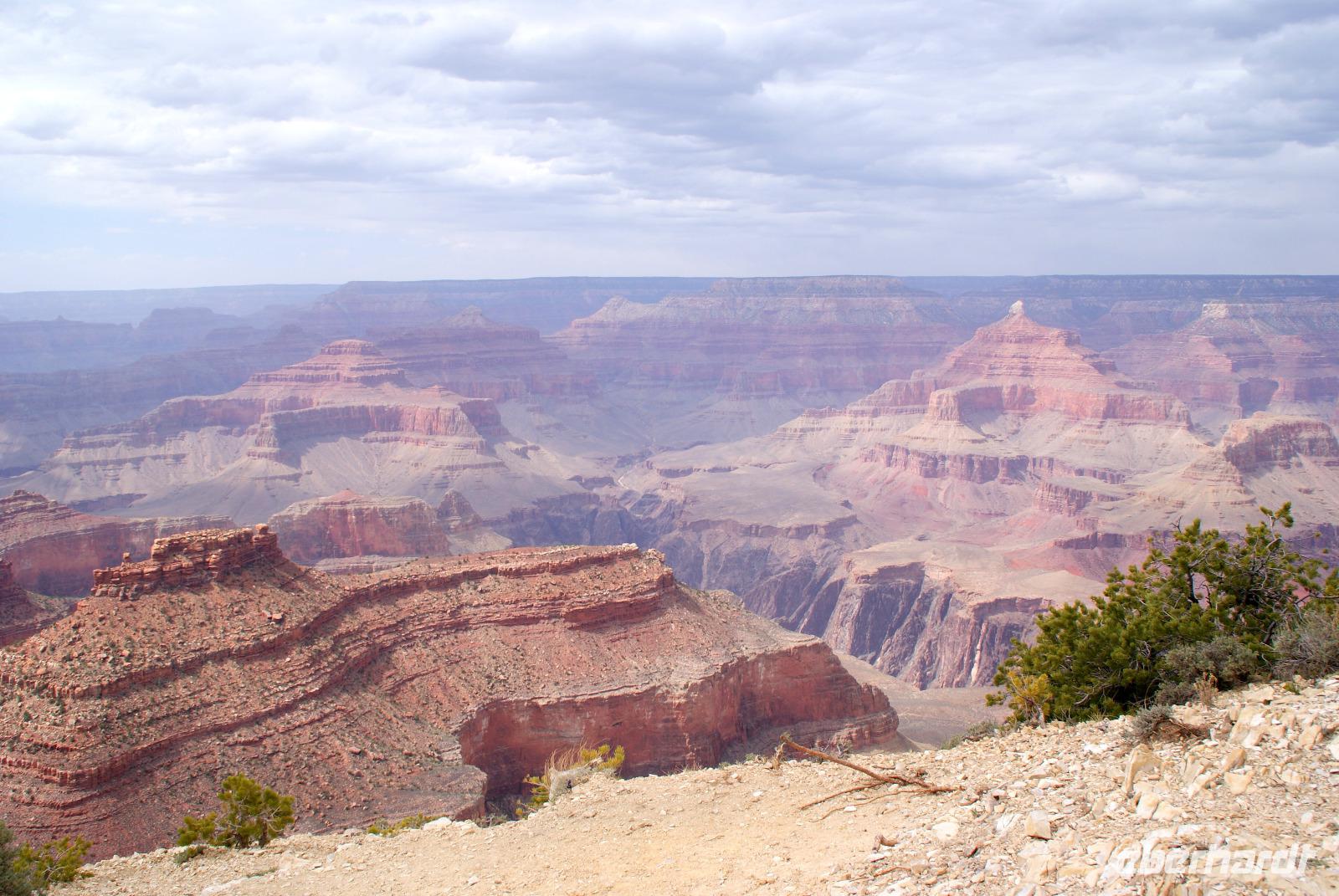 Nachdem wir ein gutes Frühstück mit Sekt genossen haben, werden wir förmlich aus dem Hotel geweht. Ein stürmischer Abschied, wir verlassen Laughlin und begeben uns bald auf die weltberühmte Route 66, die 3945 Km lang ist und von Chicago bis Santa Monica führt. Unsere Herzen schlagen höher, als wir im wunderschönen Örtchen Seligman halten, welches einst von der jüdischen Familie Seligman gegründet wurde. Hier gibt es unzählige Fotomotive... Oldtimer und Kuriositäten überall, wir können uns nicht satt sehen, hier könnten wir noch viel länger bleiben. Alles weist auf die Route 66 hin und wir könnten endlos Souvenirs erwerben. Aber der Grand Canyon ruft und wir haben noch viel vor heute. Auf dem Weg dorthin erklärt uns Chris viel Interessantes, was aufgrund des Baus der Route 66, der „Mutterstraße der Vereinigten Staaten" alles entstand. Von Mc Donalds, über Hilton's Holiday Inn bis Samuel Philipps, der die Tankstellen erfand. Unser Reiseleiter ist einfach unschlagbar und zieht uns mit seinen Ausführungen immer wieder in seinen Bann. Am Grand Canyon angekommen fahren wir zunächst zu unserem geplanten Helikopterflug...leider geht es heute aufgrund starken Windes nichts und unsere Flüge werden auf den nächsten Tag verschoben. Somit beginnen wir nach unserer Mittagspause mit der 2-stündigen Wanderung auf dem „Rim-Trail" entlang der Kante des Grand Canyons. Wir sind uns alle einig. Was für eine Kulisse, welch ein Anblick, einfach atemberaubend. Niemand hätte es sich in Natura so gewaltig vorgestellt. Unvergessliche Stunden spazieren wir und es entstehen nicht enden wollende Aufnahmen. Abschließend entdecken wir noch einen Condor auf einem Felsvorsprung, welch ein Erlebnis. Komplett beeindruckt verlassen wir den Grand Canyon, der die Schlucht des Colorado Rivers, 350 Km lang und 29 Km breit ist. Nach dem Check-in in der Red Feather Lodge treffen wir uns im Big E Steakhouse and Saloon zum Abendessen. Ein schöner Tag neigt sich dem Ende und wir drücken uns allen die Daumen, dass wir am nächsten Morgen fliegen können.