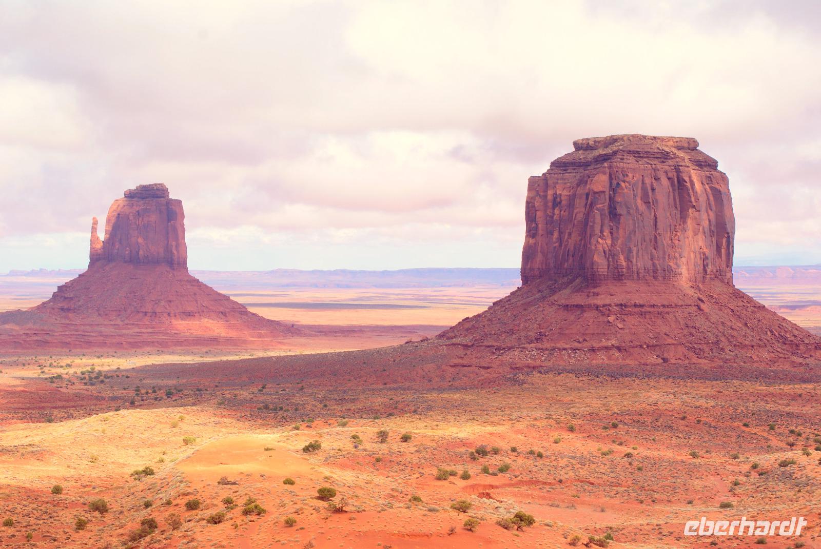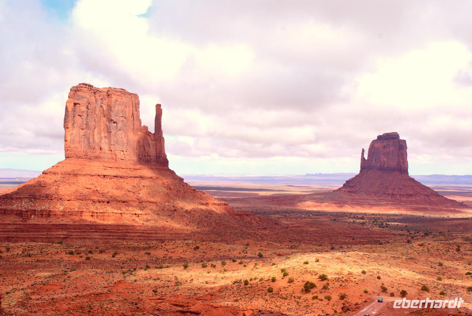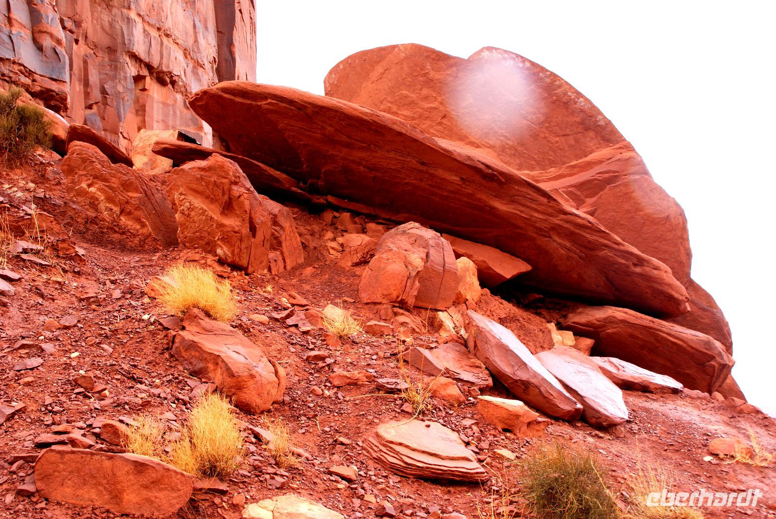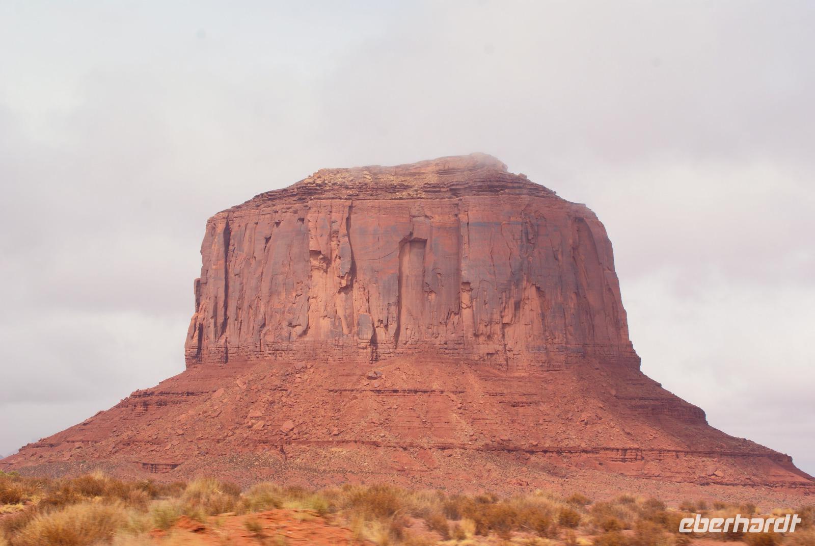 Leider lassen es die heutigen Wetterverhältnisse auch nicht zu, dass wir fliegen können und so reisen wir nach einem schönen Frühstück im Plaza Bonita ab. Wir sehen den Grand Canyon in tiefstem Nebel, bei Außentemperatur von 0 Grad und leichtem Schneefall. Entlang der Painted Desert, der farbigen Wüste geht die Reise weiter und es erfolgt ein Fotostopp mit Blick auf den Little Colorado. Auch die heutige Fahrt unterhält uns Chris mit seinem ungemeinen Wissen. So erfahren wir, dass es in Amerika 460 First Nations (Indianerstämme) gibt und er berichtet uns über die eher traurige Geschichte der damaligen Konflikte mit der Urbevölkerung und den weißen Siedlern, welche zu den Reservatsgründungen im Jahre 1878 führte. Am frühen Nachmittag erreichen wir das Monument Valley, welches den Navajo Indianern gehört und somit kein Nationalpark ist. Dicke Wolken und Regen empfangen uns, als wir uns auf die 1.5-stündige Jeeptour begeben. Irgendwann hat Petrus mit uns ein Einsehen, der Himmel reißt auf und wir können endlich doch noch tolle Aufnahmen von dieser grandiosen Kulisse machen. Eine wahre Traumlandschaft, deren Schönheit sich nun so richtig entfalten kann. Auf der Weiterfahrt nach Moab halten wir noch am sogenannten „Forrest Gump Point", an dem eine berühmte Filmszene entstand. Ein letzter Blick auf das Monument Valley in der Ferne mit der weiten Landschaft davor und wir sind froh, dies hautnah erlebt zu haben. Ein schönes Abendessen im Eddie McStiff's Microbrewery rundet den erlebnisreichen Tag ab.