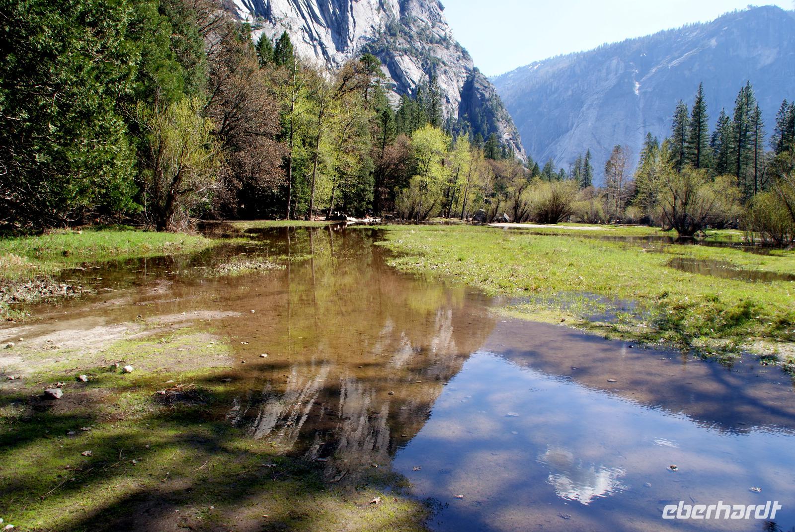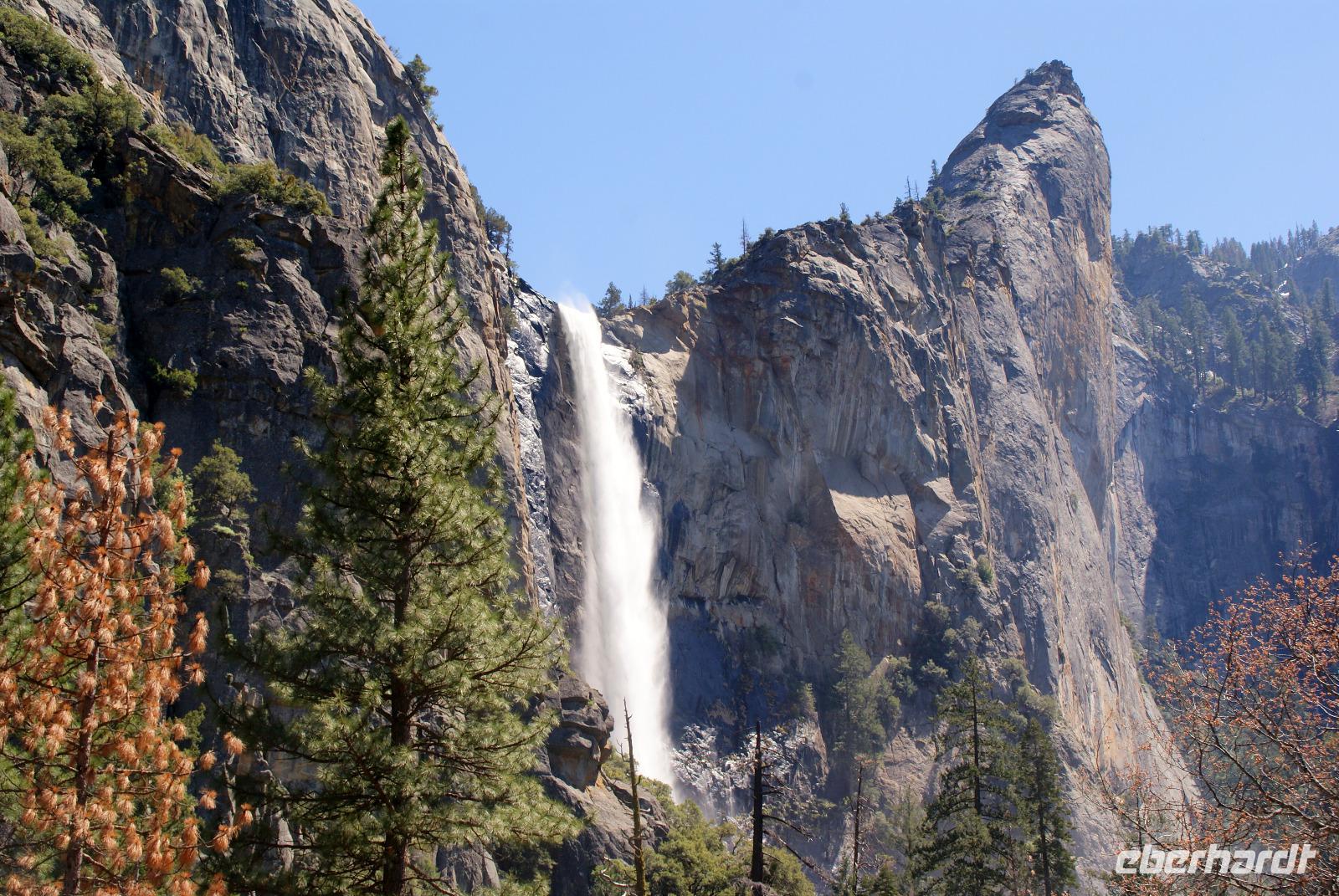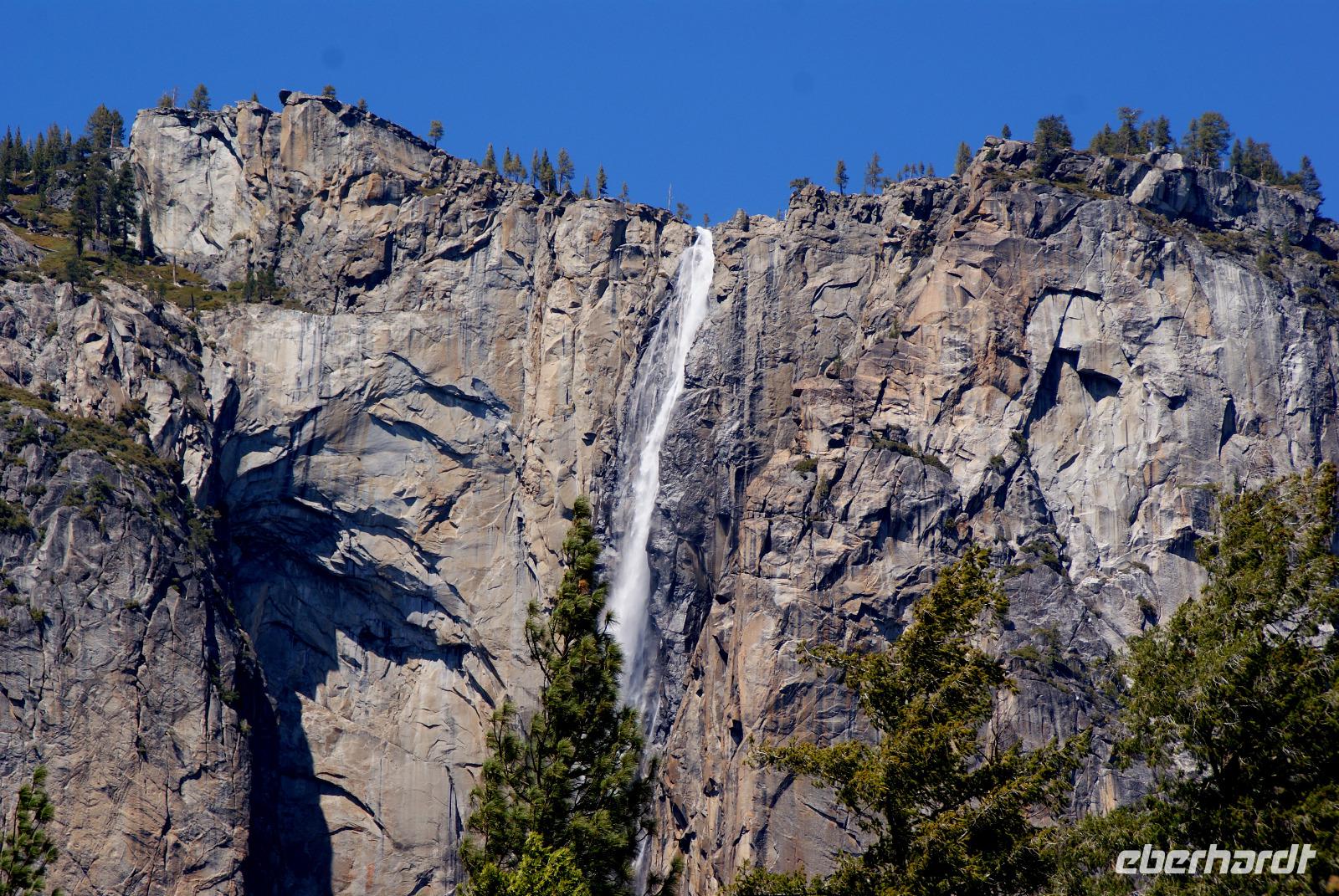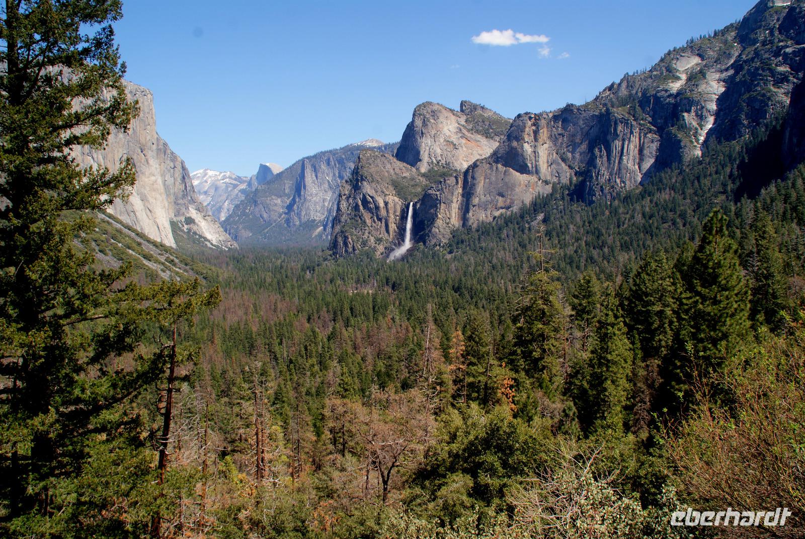 Nachdem wir heute Morgen „im eigenen Salon" gefrühstückt haben, verlassen wir Bakersfield und fahren wir wieder durch das San Joaquin Valley und Chris erläutert, warum die hier wachsenden Nüsse wie Macadamia, Pistazien, Mandeln eher hochpreisig sind. Beim Anbau der Nussbäume vergehen ca. 12 Jahre, ehe diese profitabel werden und man zum ersten Mal ernten kann und daraufhin können diese nur 12-15 Jahr genutzt werden. Im Vergleich dazu brauchen Orangenbäume gerade mal nur 3 Jahre und sie können 30-40 Jahre genutzt werden. Wir fahren vorbei an Fresno, welches für Landwirtschaft und Maschinenbau bekannt ist. In Oakhurst halten wir an einem großen Supermarkt und kaufen wir für unser heutiges von Eberhardt organisiertes Mittagspicknick ein. Im Anschluss fahren wir zum Nationalpark. Wir erfahren, dass Yosemite ursprünglich in der Indianersprache einen anderen Namen, nämlich Land der Bären hatte. Jedoch verstanden die damaligen französischen Pelzjäger im Jahre 1830 es falsch und machten daraus Yosemite. Es war Abraham Lincoln, der das Yosemite Gebiet (auf einen Antrag auf Naturgebiet von Mr. Stanford) zum ersten Nationalpark der Vereinigten Staaten erklären ließ. Noch in der heutigen Zeit tragen die Parkranger eine Uniform, die an die Kavalleriekleidung von 1902 erinnert. Unser Mittagspicknick nehmen wir am Wawona Fluss ein und Chris zeigt uns einen super idyllischen Picknickplatz. Es fehlt uns an nichts und wir speisen fürstlich bei Wein, Bier, Säften und köstlichen Speisen. Bis zu unserer heutigen Wanderung zum Spiegelsee legen wir noch etliche Fotostopps ein und sind erneut tief beeindruckt von der Schönheit des Yosemite Nationalparks. Unzählige Wasserfälle links und rechts unseres Weges, wie beispielsweise die Yosemite Falls mit 700 m Höhe führen unsere Fahrt schließlich zum Ausgangspunkt der Wanderung. Ein schöner Spaziergang durch die Natur bringt uns zum Mirror Lake, der leider sehr wenig Wasser führt. Zurück von unserer Wanderung stoßen wir mit den restlichen Getränken auf einen tollen Tag an und lassen den letzten Wasserfall auf uns wirken, bevor es zu unserer heutigen Unterkunft, der Cedar Lodge, geht. Mitten in der Natur des Nationalparks wohnt es sich besonders idyllisch und so lassen wir den Abend in der Bar beim Abendessen und kühlem Bier oder einfach vor unseren Zimmern auf den Terrassen ausklingen.