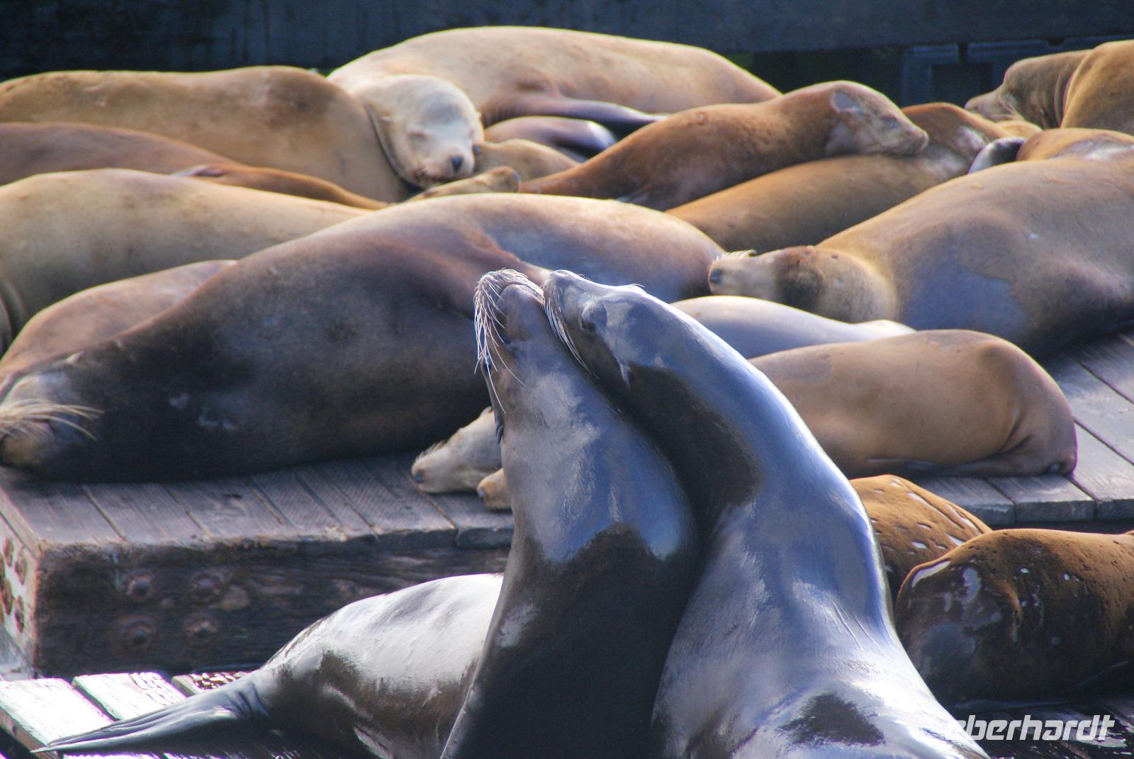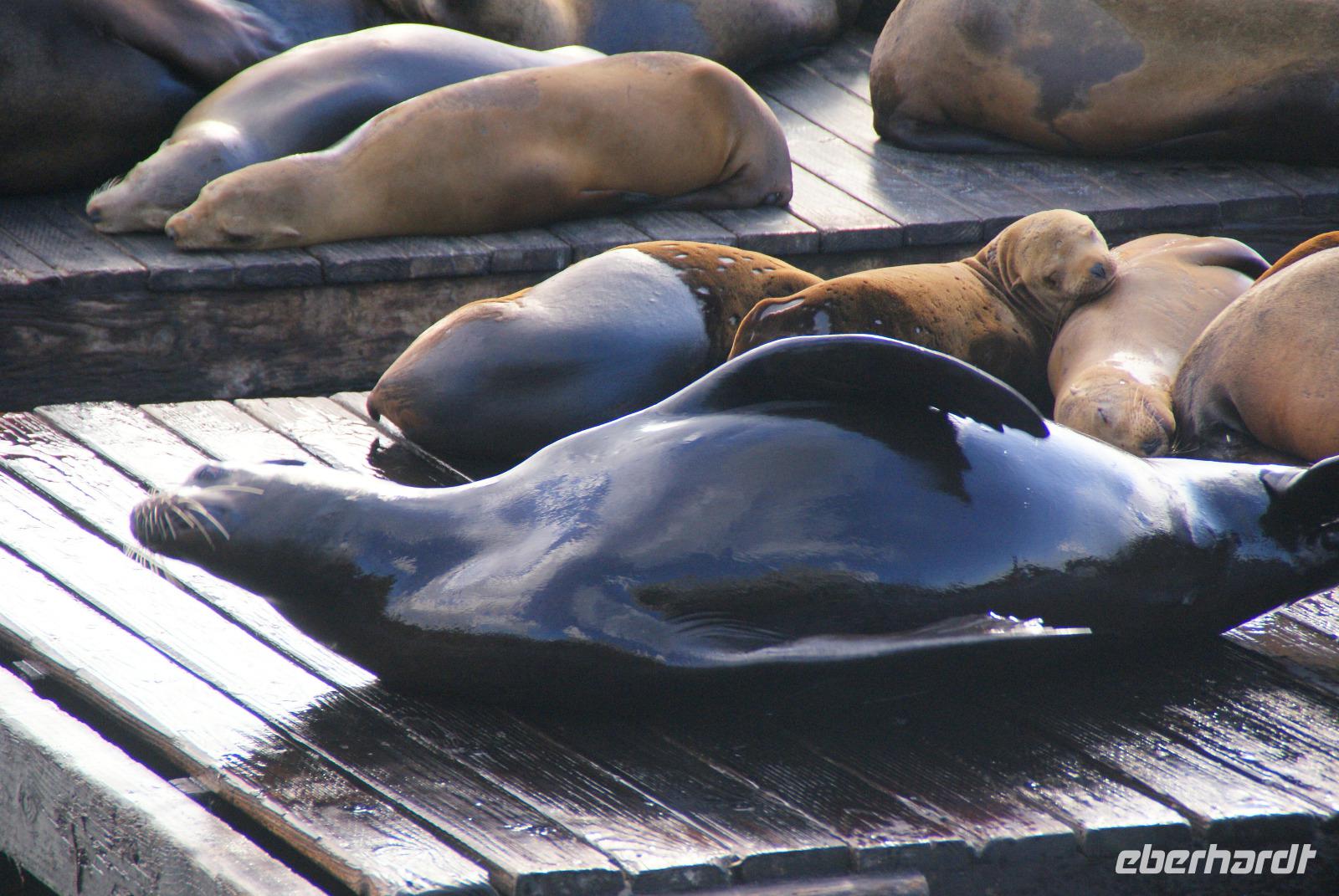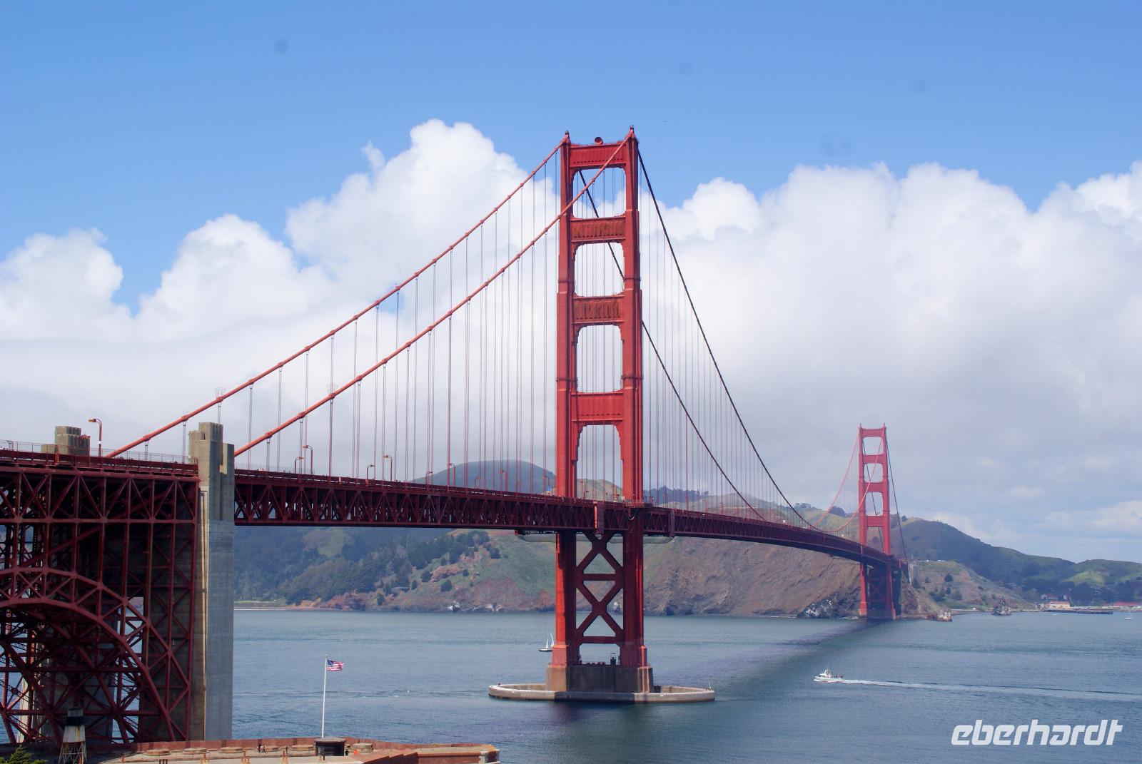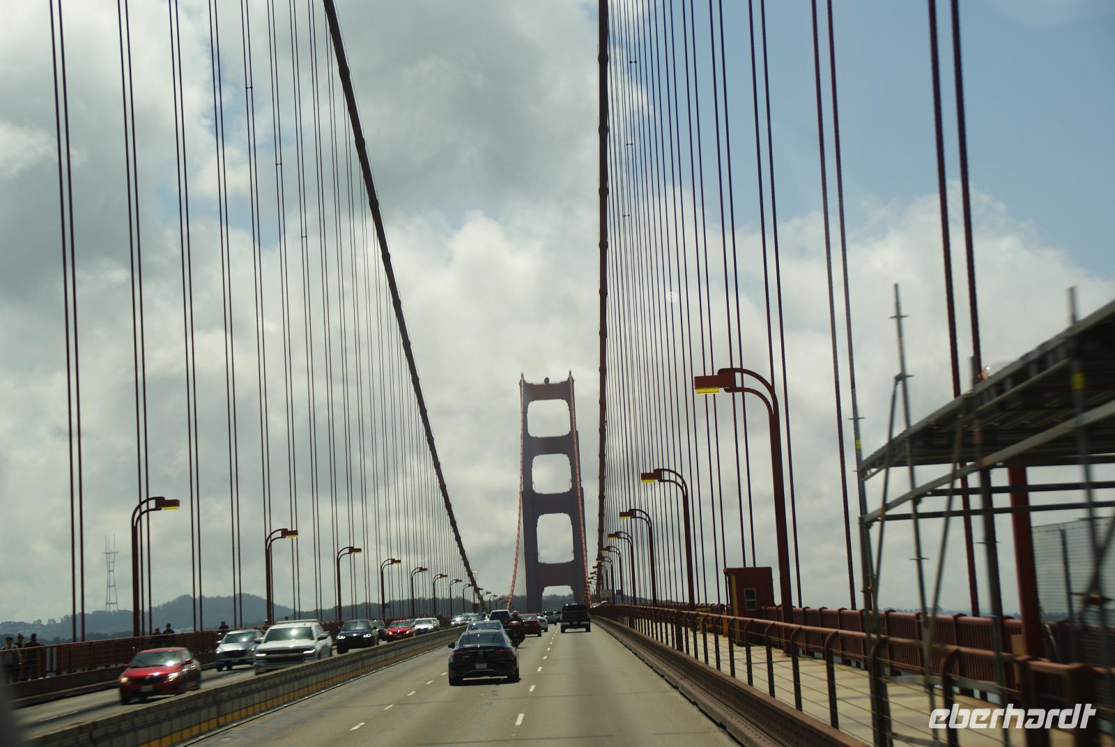 Nachdem wir gemütlich gefrühstückt haben, geht unsere Weiterreise zunächst nach Muir Woods, wo eine idyllische Wanderung vorbei an den berühmten Redwoods, den Seqoia trees (Mammutbäume) erfolgt. Wir tauchen in diese herrliche Natur ein und bestaunen diese so besonderen Riesen, die uns sicherlich viel über vergangene Tage erzählen könnten und deren Dimensionen wir kaum erfassen können. Im Anschluss fahren wir nach Sausalito, die Stadt, die San Francisco gegenüber liegt und erhaschen bereits einen ersten Blick auf San Francisco, welches jenseits der San Francisco Bay liegt. Nachdem wir Zeit zum Mittagessen und flanieren hatten, fahren wir gemeinsam über die weltberühmte Golden Gate Bridge und erfahren, dass deren besondere Farbe im Grunde nur die Grundierung ist, bei der man es letztendlich belassen hat. Am Visitor Center haben wir ausreichend Gelegenheit, das Wahrzeichen San Franciscos aus allen Perspektiven ausreichend zu fotografieren und natürlich darf bei der Kulisse und dem wunderbaren Wetter mit blauem Himmel und weißen Wolken ein Gruppenfoto nicht fehlen. Danach führt uns Chris auf Citytour. Wir sind begeistert, was diese fassettenreiche Stadt zu bieten hat. Wir fahren durch Chinatown und erfahren, dass sich bedingt durch den einstigen Eisenbahnbau die größten Chinatowns der USA in New York und San Francisco befinden. Beide Städte sind Anfangs-und Endpunkt der ersten Eisenbahnstrecke. Wir sehen die Transamerica Pyramide, das Finanzviertel, die Market Street und den Union Square. Ein Fotostopp am stattlichen Rathaus darf natürlich nicht fehlen. Es folgt ein Besuch der St. Marie´s Cathedrale, die 1986 gebaut und von Papst Johannes Paul dem 2. Eingeweiht wurde. Abschließend folgt die Auffahrt zu den Twin Peaks, wo wir hoch oberhalb der Stadt einen gigantischen Ausblick auf ganz San Francisco und der davor liegenden Bucht haben. Eine unvergessliche Kulisse, bei der man die Stadt im Gesamten sehr gut erfassen kann. Zurück zum Hotel geht es durch den Golden Gate Park, der grünen Lunge der Stadt, der herrlich angelegt zum Verweilen einlädt. Nachdem wir eingecheckt und uns erfrischt haben, geht es weiter zum Abendprogramm mit Abendessen im Hana Zen an der bekannten Fisherman's Warf. Am Pier 39 flanieren wir entlang, sehen die imposanten Seelöwen auf den Plattformen und amüsieren uns über deren lautstarkes Miteinander. Bei einem letzten schönen Abendessen mit unglaublichem Blick auf die San Francisco Bay mit Golden Gate Bridge und Alcatraz nutzen wir die Gelegenheit, um uns bei unserem einzigartigen Reiseleiter und Fahrer Chris zu bedanken. Wir übergeben das gesammelte Trinkgeld und natürlich wollen wir uns nicht verabschieden, ohne Chris nicht wirklich mal mit Schürze zu sehen (Liebe Gäste, ihr wisst schon). Ein schöner Abend geht zu Ende und müde fallen wir alle in unsere Betten.