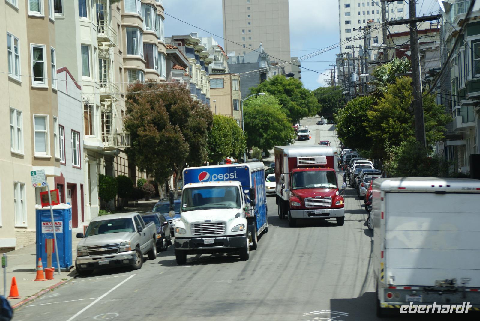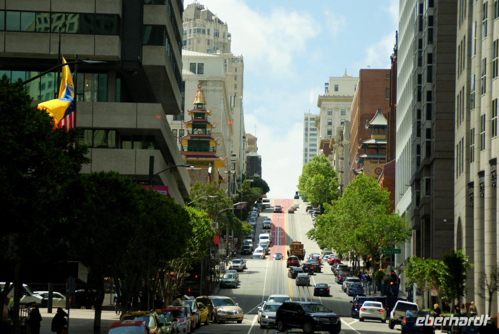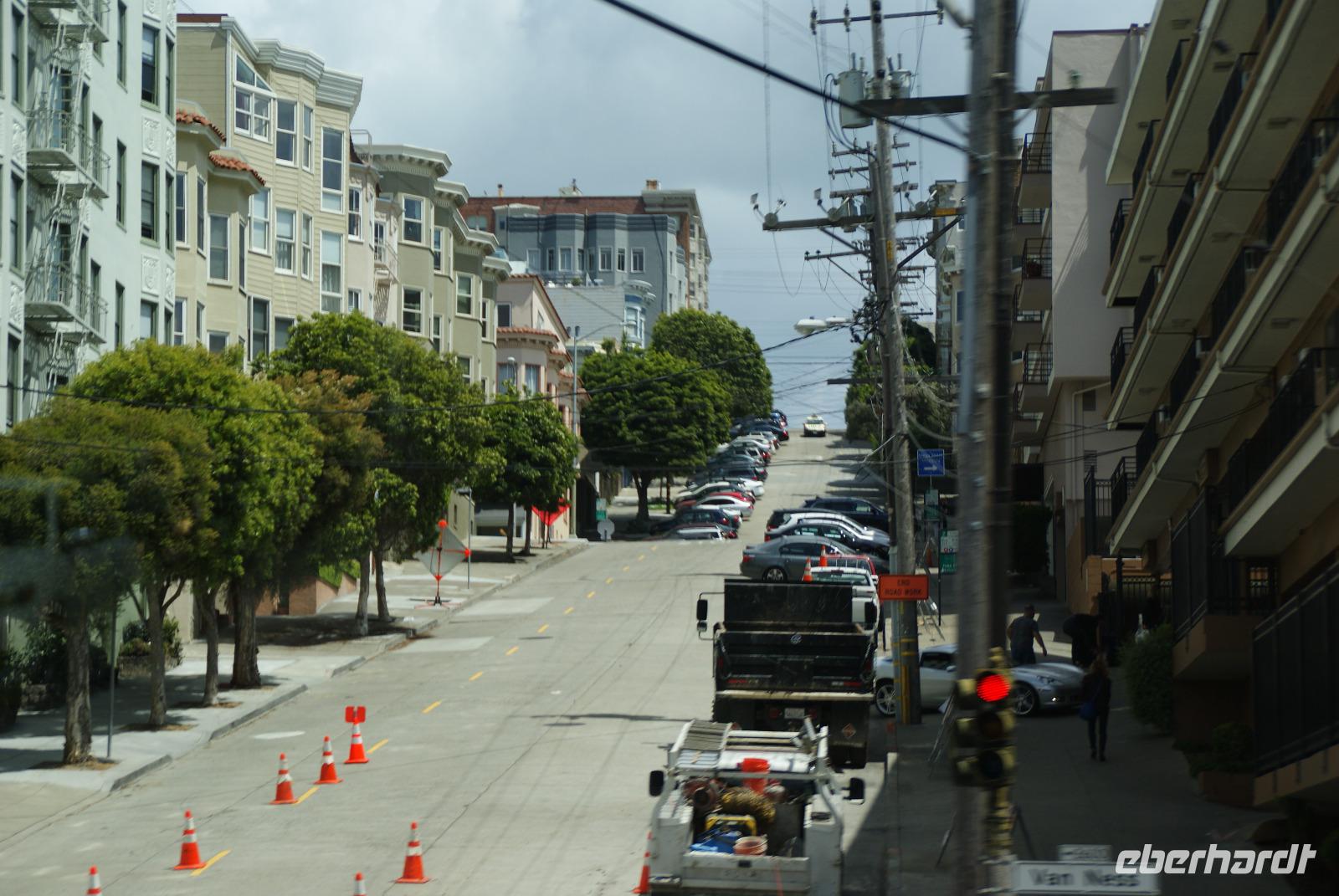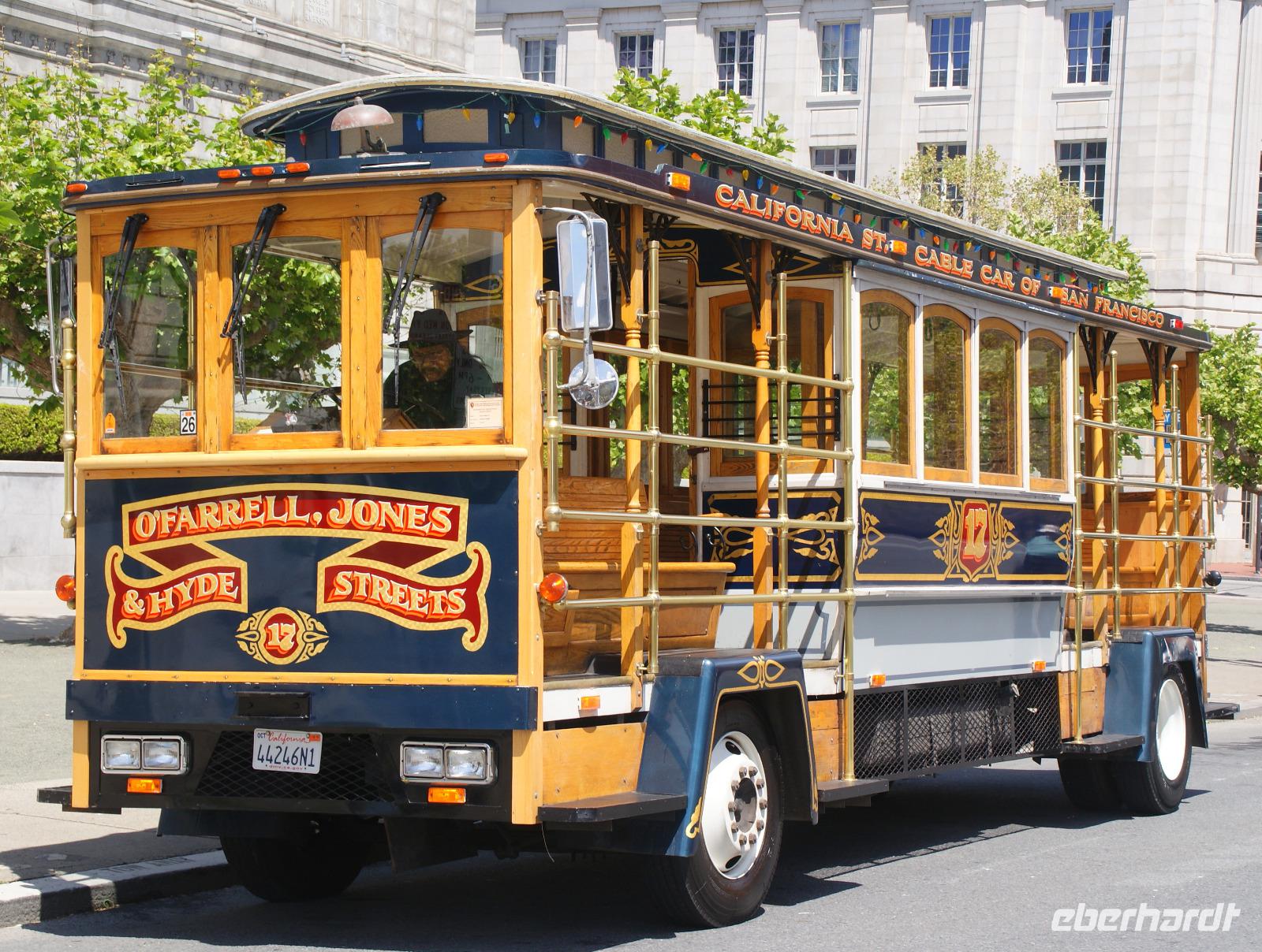 Heute lassen wir es etwas ruhiger angehen und können zur späteren Zeit ein schönes Frühstück genießen. Bevor es zum Flughafen geht, gibt es für unsere Eberhardt Gäste noch eine letzte Überraschung. Wir fahren gemeinsam mit der berühmten Cable Car, die direkt neben unserem Hotel hält. So fahren wir beinahe exklusiv bis zu deren Endhaltestelle, an der Chris wieder mit unserem Hab und Gut auf uns wartet. Ein tolles, abschließendes Erlebnis. Noch ein letzter Fotostopp seitlich der Bay Bridge auf die tolle Skyline von San Francisco und dann müssen wir uns am Flughafen leider von unserem sehr liebgewordenen Reiseleiter, Fahrer und Mann für wirklich alle Fälle Chris Raeymaekers verabschieden. Wir sind uns alle einig, einen besseren Reiseleiter, Fahrer und Entertainer hätten wir uns nicht wünschen können. Er hat uns besonders informativ und unterhaltsam durch sein Land, die Vereinigten Staaten, geführt und uns seine Kultur um einiges näher gebracht. Er wird sicher mit seiner besonderen Art und Weise unvergessen bleiben. Wenn es ihn nicht schon gäbe, man hätte ihn glatt erfinden müssen! Somit 1000 Dank für eine ganz besondere Zeit! Abschließend ein großes Dankeschön an unsere ebenfalls besonders nette Reisegruppe. Ihr habt alle zusammen diese Reise zu einem unvergesslichen Erlebnis gemacht. Jeder besonders auf seine Art habt ihr zu einer harmonischen Gemeinschaft zusammengefunden und wir haben gemeinsam viel gesehen, erlebt und noch mehr gelacht. Ich würde mich sehr freuen, euch bei weiteren Eberhardt Reisen wiederzusehen! Es gibt noch so viel zu entdecken, bleibt weiterhin reisefreudig! Herzliche Grüße Susanne Schirmann, Eberhardt TRAVEL Reisebegleitung und Chris, Reiseleiter, Fahrer und Mann für alle Fälle!