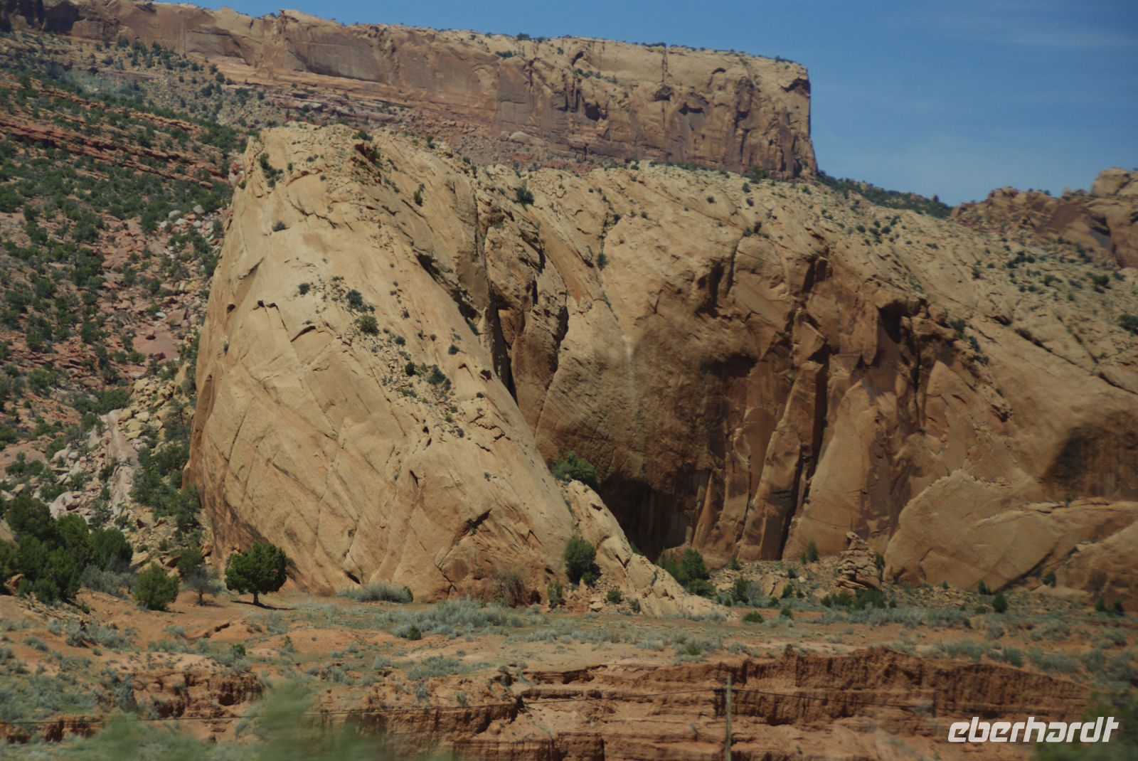 Den heutigen Tag nutzen wir, um hier im Bundesstaat Utah den Arch Nationalpark mit seinen vielen, besonderen Bögen zu besuchen. Vorher kaufen wir noch für unser Mittagspicknick am Dead Horse Point im örtlichen Supermarkt ein. Wir haben heute wieder beste Voraussetzungen, Traumwetter, wolkenloser Himmel und Sonne satt, dazu milde 23 Grad. Am Visitor’s Center des Nationalparks machen wir einen kurzen Halt und begeben uns dann zunächst zur „Park Avenue“, wo wir einen ersten schönen Eindruck des vor uns liegenden Nationalparks gewinnen können. Chris gibt uns letzte Vorsichtsmaßnahmen mit auf den Weg. Somit halten wir Abstand zu Kakteen, in die wir nicht hineinfassen und Löcher, in die wir nicht hineintreten oder greifen sollen. Frei nach dem Motto: man weiß ja nie, wer da schon so wohnt… Weiter geht es zur „The Windows Section“ und erwandern das North und South Window, den Double Arch und die Elefantenparade. Die Arches (Bögen) entstehen und entstanden durch härtere und weichere Gesteinsschichten, denen der Wind zusetzt und mit der Zeit Löcher entstehen. Anschließend spazieren wir zum noch Aussichtspunkt des Delicate Arch, dem berühmten Bogen, den man auf dem Kennzeichen des Bundesstaates Utah sieht. Ein schöner Spaziergang mit atemberaubender Kulisse rundet unseren Aufenthalt im Arch Nationalpark ab. Anschließend fahren wir zum sogenannten Dead Horse Point. Einst trieben die Menschen Wildpferde bis hierher, mit der Absicht, diese einzufangen und zu zähmen. Die, die sich nicht fangen ließen, stürzten hier 600 m in die Tiefe, in der sich auch der Colorado River durch die Schlucht windet. Eine unglaubliche Kulisse, zu der wir unser Mittagspicknick genießen können. Zurück in Moab nutzen wir ein paar freie Nachmittagsstunden am schönen Pool des Hotels oder schlendern durch den Ort, bevor wir zum Abendessen in das Steak& Waffle House einkehren. Hier ist heute exklusiv für uns Eberhardt Gäste gedeckt, da das Lokal aktuell abends aufgrund Personalmangels geschlossen hat. Somit haben wir alle Aufmerksamkeit auf uns und genießen ein leckeres Gericht und hausgemachten Zitronenkuchen.
