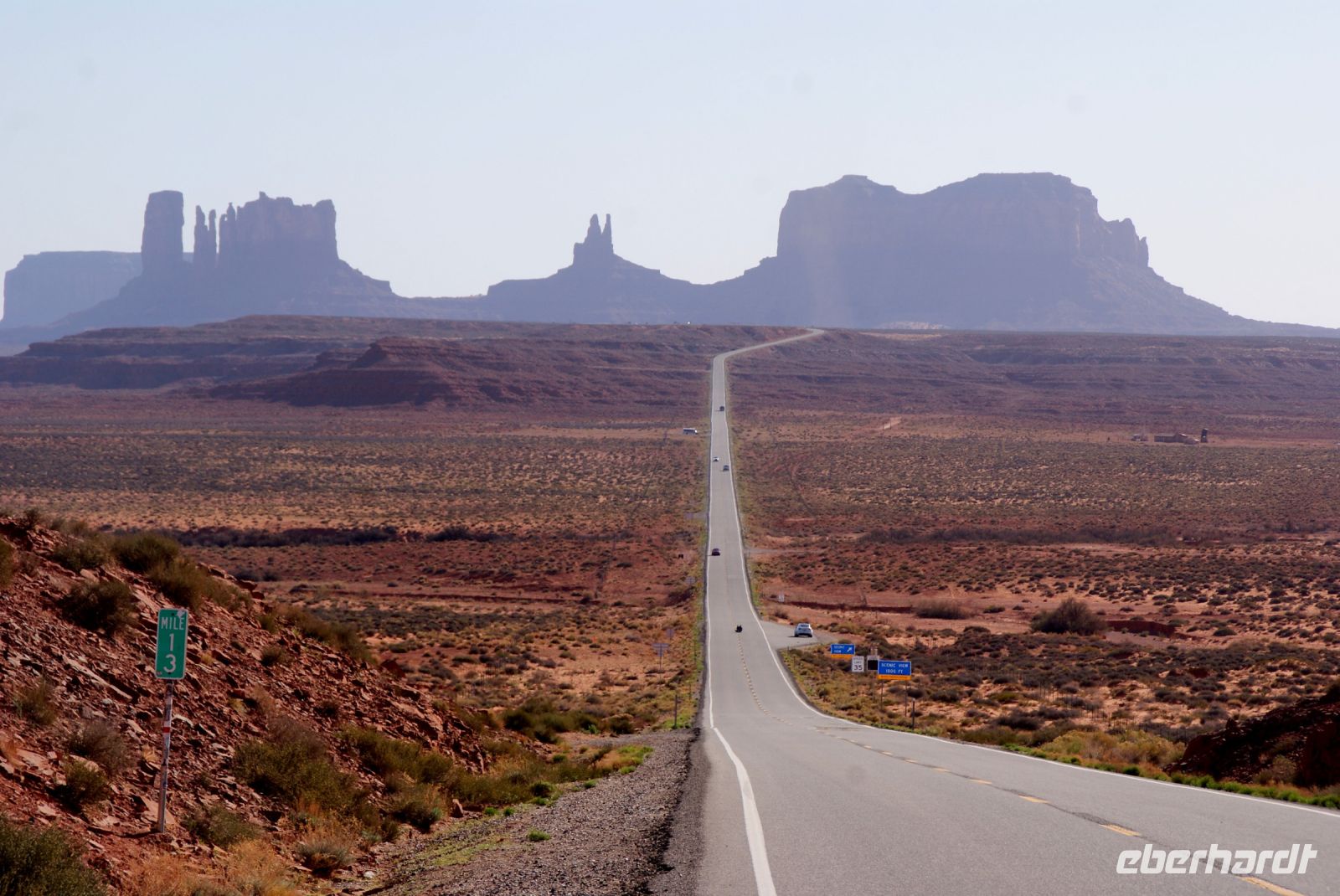 Bevor wir uns zu den Helikopterflügen begeben, genießen wir ein herrliches Frühstück im Plaza Bonita und erfreuen uns nochmals an der netten mexikanischen Atmosphäre. Heute stehen alle Zeichen für einen Flug über den Grand Canyon, blauer Himmel, Sonnenschein und kaum Wind. So starten zwei Helikopter mit unseren Gästen pünktlich zu einem eindrucksvollen, dreißigminütigen Rundflug, der dritte Helikopter muss aufgrund technischer Probleme am Boden auf einen anderen Helikopter umsteigen. Jedoch auch diese Gäste erleben einen wunderschönen Flug und viele strahlende Gesichter kehren wieder voller Eindrücke zurück. Um zum Monument Valley zu gelangen, müssen wir erneut durch den Grand Canyon Nationalpark hindurch und halten nochmals für einen letzten Fotostopp. Am Nachmittag erreichen wir das weltberühmte Monument Valley, welches jeder von uns schon aus zahlreichen Western oder der Werbung kennt. Neue Fahrzeuge erwarten uns und auf zwei Jeeps verteilt, genießen wir mit viel Frischluft die Fahrt über das weitläufige Gelände. Das Monument Valley ist auf vier Bundesstaaten verteilt: Utah, Arizona, New Mexico und Colorado. Es ist kein Nationalpark wie so viele andere Naturschauspiele und gehört stattdessen den Navajo Indianern. Diese sind der Meinung, dass die Ansammlung der Monumente die Geister ihrer Vorfahren und somit ein heiliger Ort sind. Unsere beiden Jeepfahrer Stanley und Harrison, beide ebenfalls Navajos, führen uns an die verschiedenen Plätze und bei Traumwetter entstehen die herrlichsten Aufnahmen. Den Abschluss unseres Nachmittagsprogramms bildet ein Fotostopp am sogenannten „Forrest Gump Point“, aus gleichnamigem Film und letzter Filmszene. Von hier hat man nochmals einen traumhaften Blick auf das in der Ferne liegende Monument Valley. Am Abend erreichen wir die Kleinstadt Moab, wo wir für zwei Nächte bleiben werden. Ein leckeres Abendessen erfolgt im Moab Grill, wo wir von einer super netten Bedienung aus Kapstadt/Südafrika betreut und verköstigt werden.