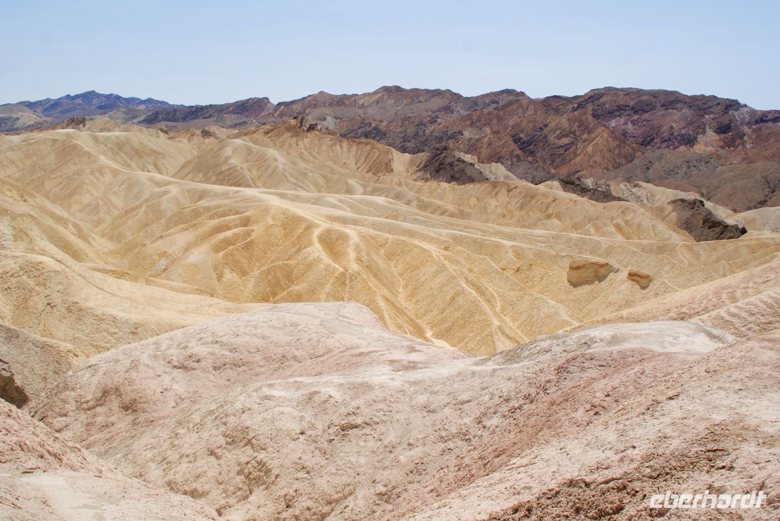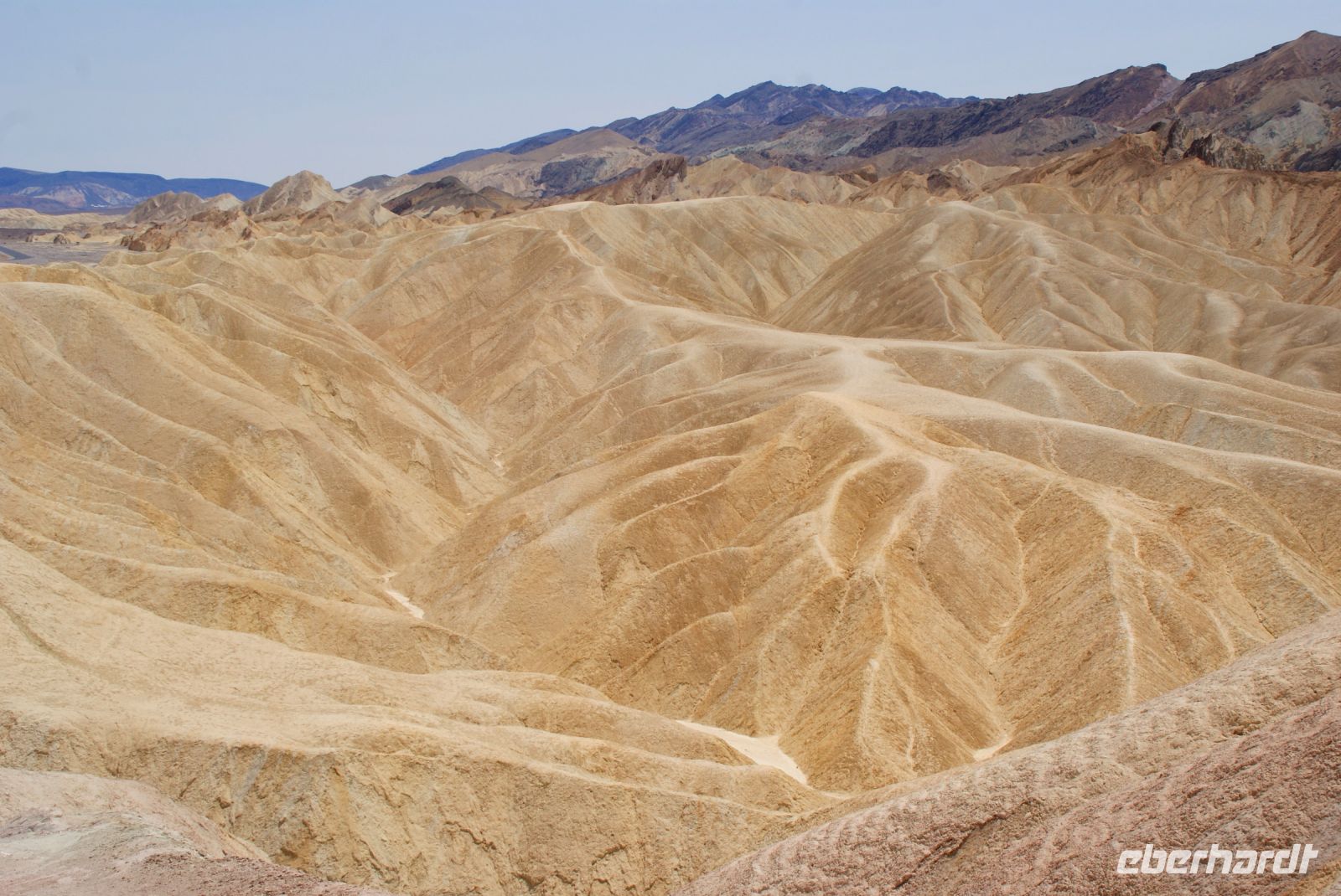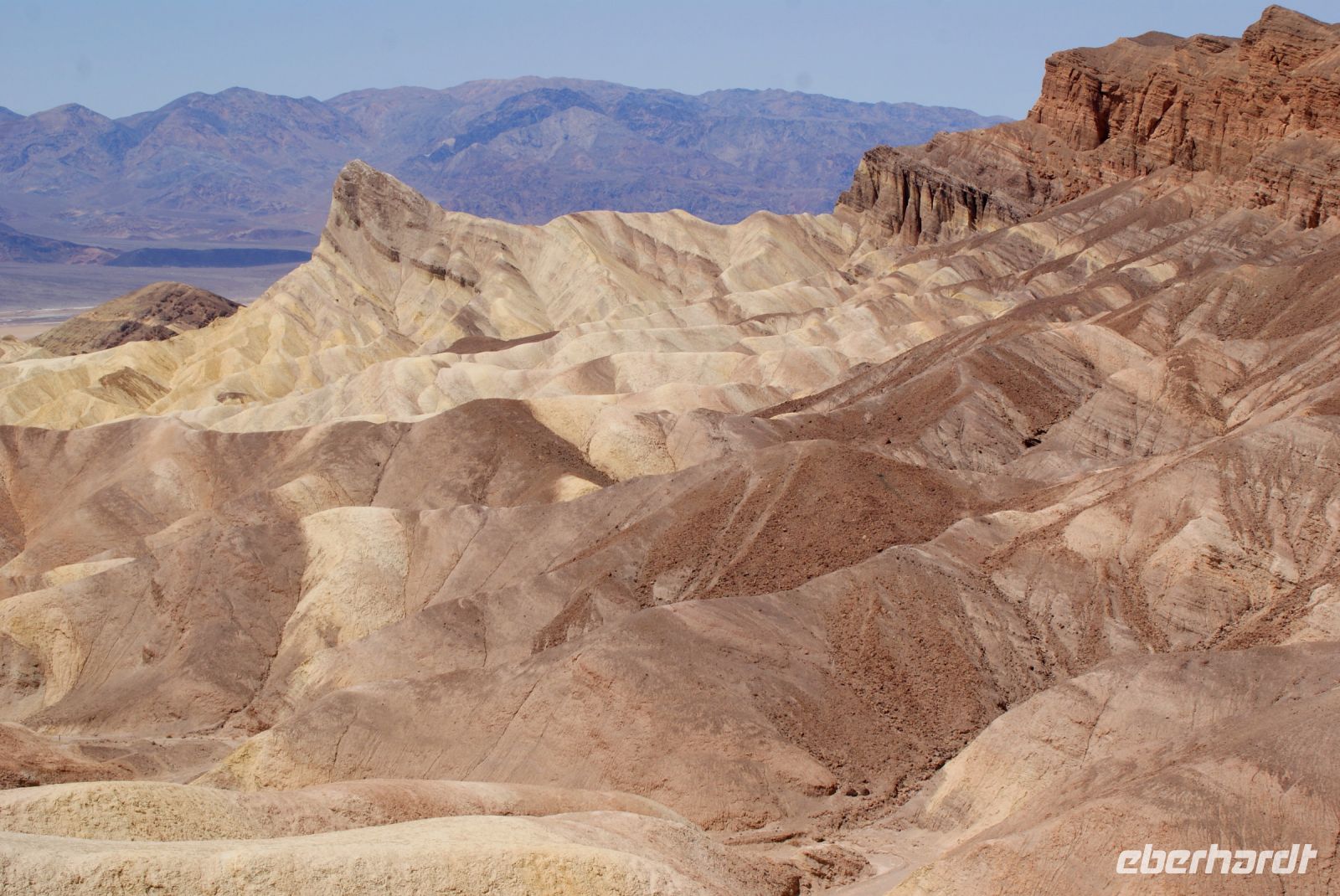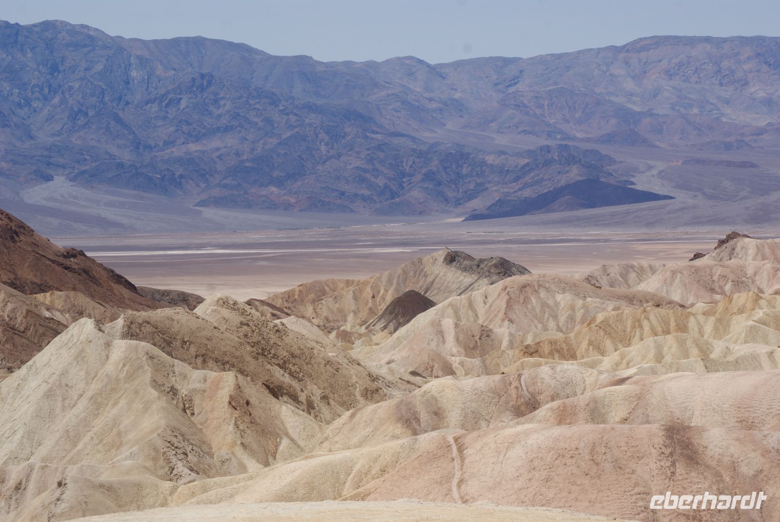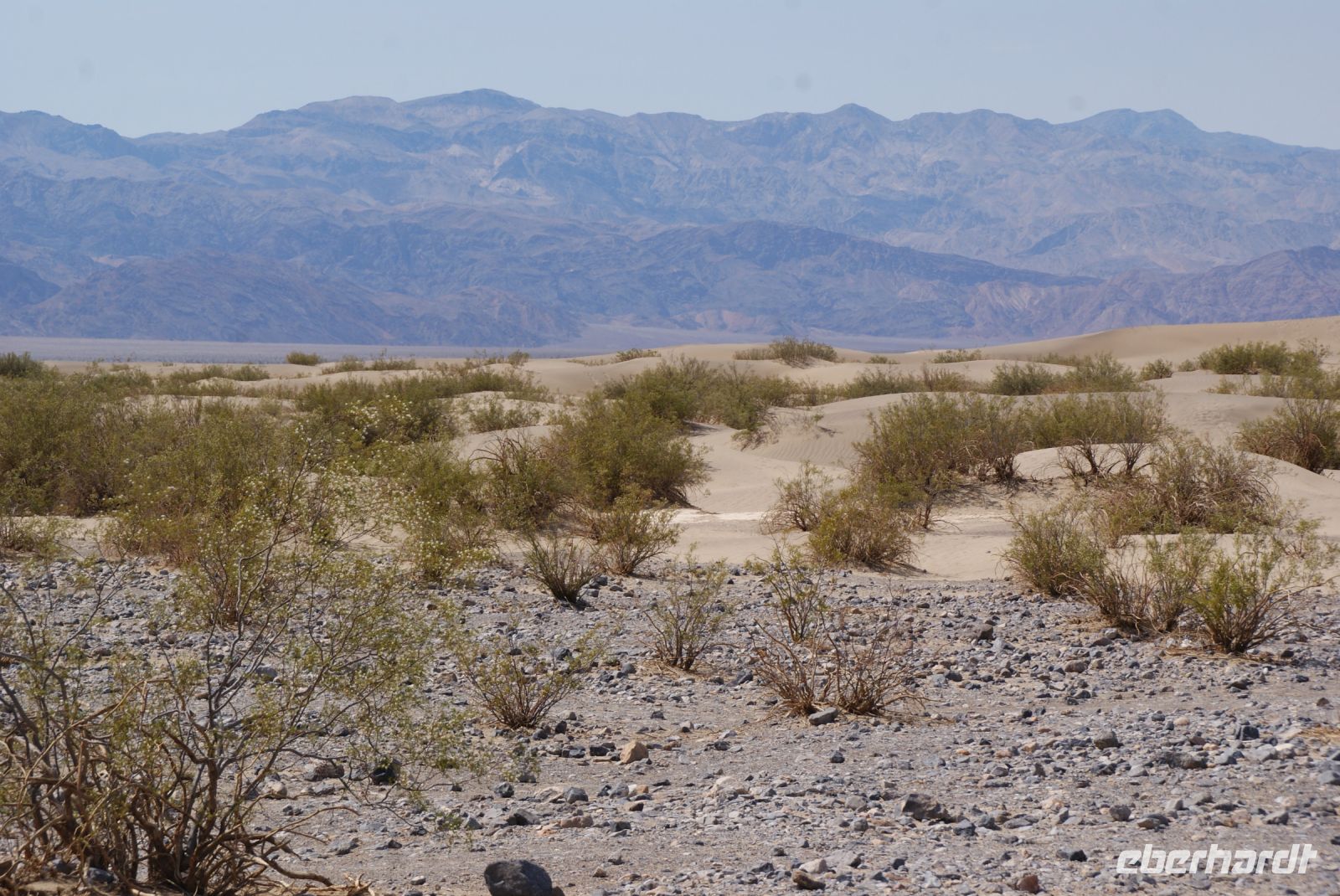 Heute Morgen genießen wir erst mal genüsslich das gigantische Buffet des Luxor Hotels, bevor wir Las Vegas Lebewohl sagen. Natürlich dürfen wir die Stadt nicht verlassen, ohne am berühmte „Welcome to Las Vegas“ Schild ein Foto von uns zu machen. Mit Blick auf den schneebedeckten Mount Charleston und somit das Skigebiet der Region verlassen wir Vegas und starten Richtung Death Valley, das Tal des Todes. Die Landschaft ändert sich und nun sehen wir zahlenreiche sogenannte „Joshua trees“, Yuca-artige Pflanzen, die ihren Namen einst durch Mormonen erhielten. Die Fahrtzeit nutzt Chris, um uns die Entstehung der amerikanischen Flagge zu erklären. Diese besteht aus den Farben Rot, Blau und Weiss, stellvertretend für die drei Gründerstaaten England, Frankreich und den Niederlanden. Die dreizehn Streifen stehen für die dreizehn Gründerstaaten und 50 Sterne repräsentieren die 50 Staaten, zu denen bald noch ein weiterer, Puerto Rico, hinzukommen wird. Den nächsten Halt unternehmen wir im Ort Amargosa, einer einstigen „Boomtown“ und heute beinah Geisterstadt mit nur noch vier Einwohnern. Skurilerweise steht in diesem „Nest“ ein Opernhaus, welches noch immer zeitweise in Betrieb ist. Wir erfahren, dass hier einst Alfred Hitchcock im einzigen Motel des Ortes nächtigte und aufgrund einer wahren Geschichte der Film „Psycho“ entstand, dessen Begebenheiten sich hier ähnlich abgespielt haben sollen. Gegen Mittag erreichen wir das „Tal des Todes“/Death Valley. Am „ Zabriskies Point“ angekommen, gibt es einen 360° Blick über das Tal des Todes. Unser Mittagsstopp erfolgt heute im frisch renovierten Gelände von Furnace Creek, wo es Picknickmöglichkeiten und natürlich auch das ein oder andere Souvenir im General Store zu erstehen gibt. Im Anschluss geht die Reise weiter und Chris erklärt uns, dass hier Filmszenen wie u.a. Star Wars und die Mumie gedreht wurden. Für den nächsten Fotostopp halten wir bei Stovepipe Wells, spazieren zu den hiesigen Dünen, nicht ohne vorher vor Klapperschlangen gewarnt zu werden. Um das Death Valley zu verlassen, fahren wir durch das Paramint Valley (Tal) und sehen uns umrahmt von Bergen. Zur Linken die sogenannten Funeral Mountains (die Beerdigungsberge) und zur Rechten die Paramint Mountains. Eine unglaubliche Weite um uns herum und ein nicht enden wollendes Tal vor uns. Nachmittags halten wir in einem Nest namens Trona, welches beinahe menschenleer erscheint und viele Häuser verlassen ihr Dasein fristen. Nach Verlassen der Wüste freuen wir uns über die Durchfahrt des San Joaquin Valleys, welches 800 Km lang und bis zu 150 Km breit ist. Landwirtschaft und Viehzucht werden hier betrieben und das satte Grün, die Hügel, Bäume, Tiere sind eine Wohltat für uns. Am Abend speisen wir in einem Familienrestaurant Golden Coral mit für uns ungewöhnlichem Ambiente, übernachten in Bakersfield und freuen uns auf den morgigen Tag wieder zurück in der Natur im Yosemite Nationalpark.