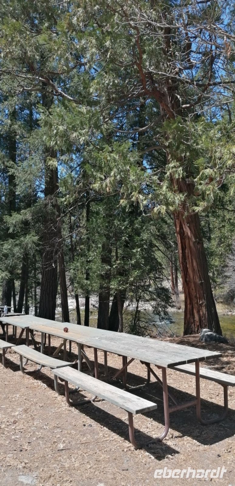 Die heutige Reise führt uns zum ältesten Nationalpark der USA –Yosemite. Zunächst kaufen wir für unser heutiges von Eberhardt TRAVEL organisiertes Mittagspicknick ein. Im Anschluss fahren wir zum Nationalpark. Wir erfahren, dass Yosemite ursprünglich in der Indianersprache einen anderen Namen, nämlich Land der Bären hatte. Jedoch verstanden die damaligen französischen Pelzjäger im Jahre 1830 es falsch und machten daraus Yosemite. Es war Abraham Lincoln, der das Yosemite Gebiet (auf einen Antrag auf Naturgebiet von Mr. Stanford) zum ersten Nationalpark der Vereinigten Staaten erklären ließ. Noch in der heutigen Zeit tragen die Parkranger eine Uniform, die an die Kavalleriekleidung von 1902 erinnert. Wir halten an diversen Aussichtspunkten und sind begeistert von der wunderschönen Kulisse um uns herum. Rechts der Brautschleierwasserfall, in der Mitte thront „El Capitan“, ein riesiges Bergmassiv, alles eingebettet in üppiger Natur. Unser Mittagspicknick nehmen wir am Wawona Fluss ein, an einem super idyllischen Picknickplatz. Wir speisen fürstlich bei Wein, Bier, Prosecco, Säften und köstlichen Speisen. Die anschließende Wanderung entlang des Yosemite Wasserfalls über die „swinging bridge“, den „wet lands“, entlang des Merced Rivers zeigt uns viel von der Schönheit des Yosemite Nationalparks und wir genießen den schönen Spaziergang mitten durch die Natur des Parks. Zurück von unserer Wanderung stoßen wir mit den restlichen Getränken und übrigen Speisen auf einen tollen Tag an und lassen den letzten Wasserfall auf uns wirken, bevor es zu unserer heutigen Unterkunft, der Cedar Lodge, geht. Mitten im Nationalpark wohnt es sich besonders idyllisch und so lassen wir den Abend in der Bar beim kühlen Bier oder einfach vor unseren Zimmern mit Blick in die Bergwelt ausklingen.