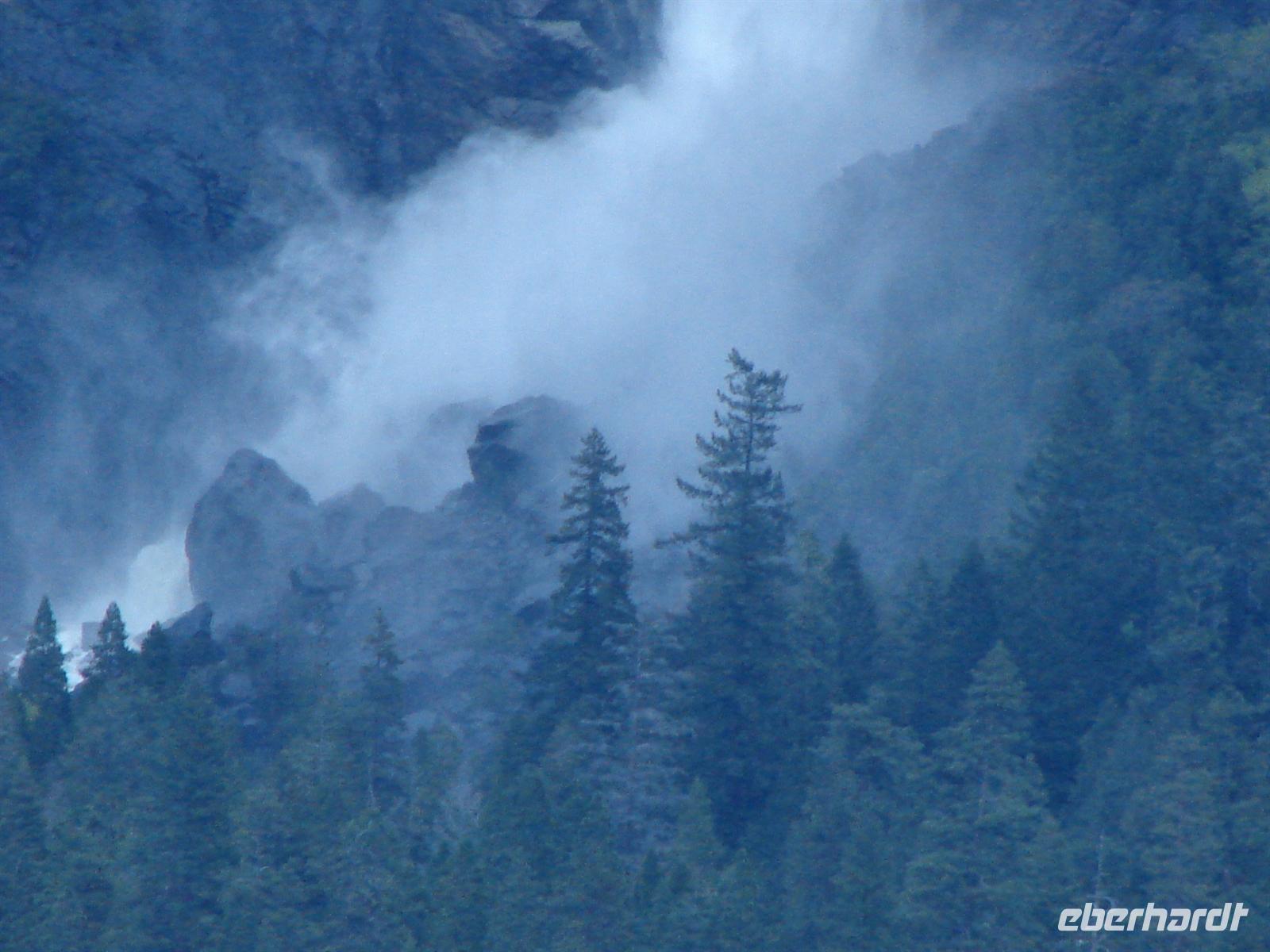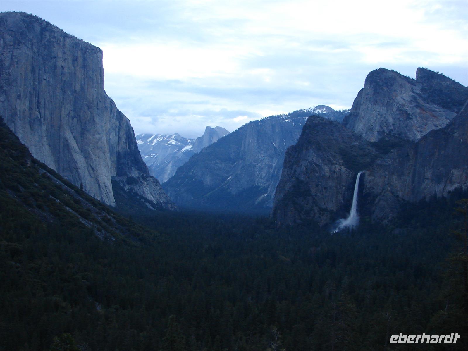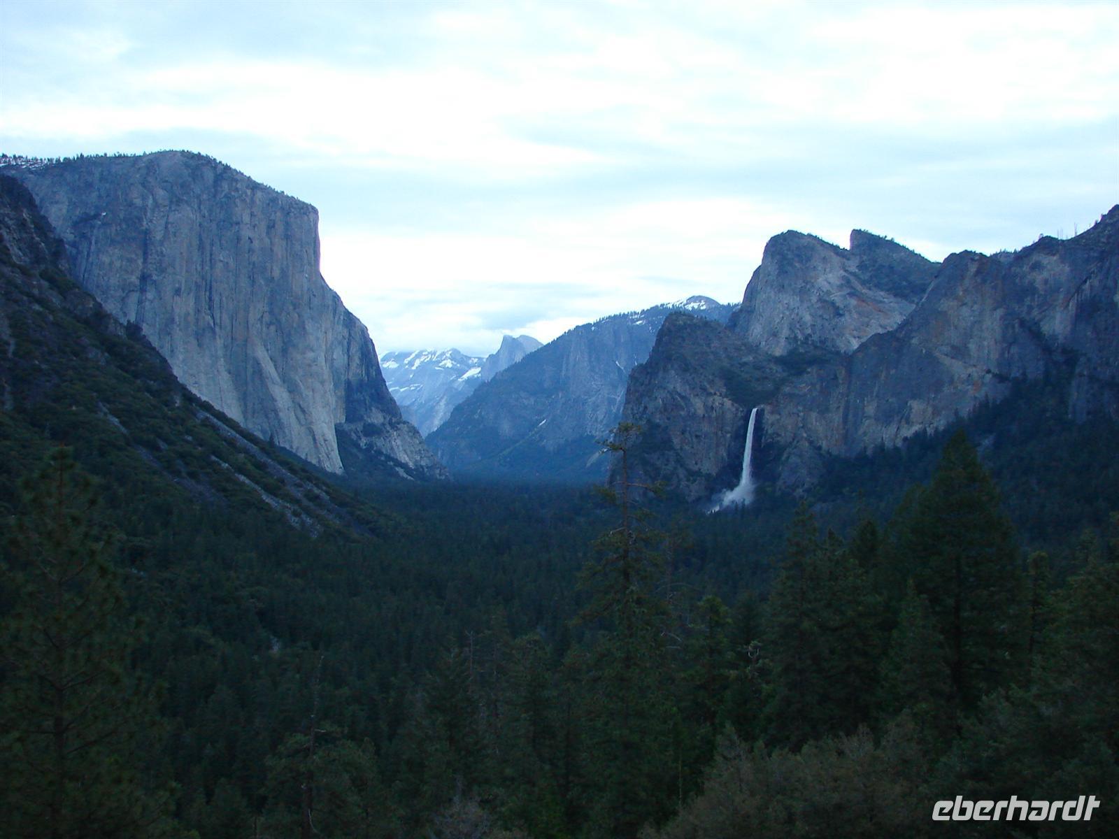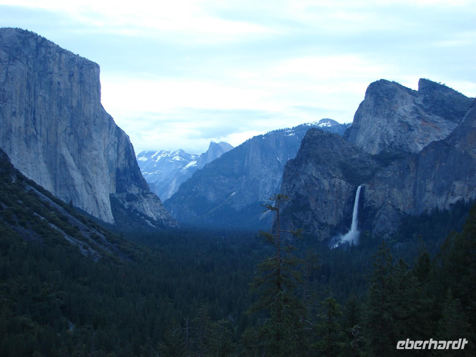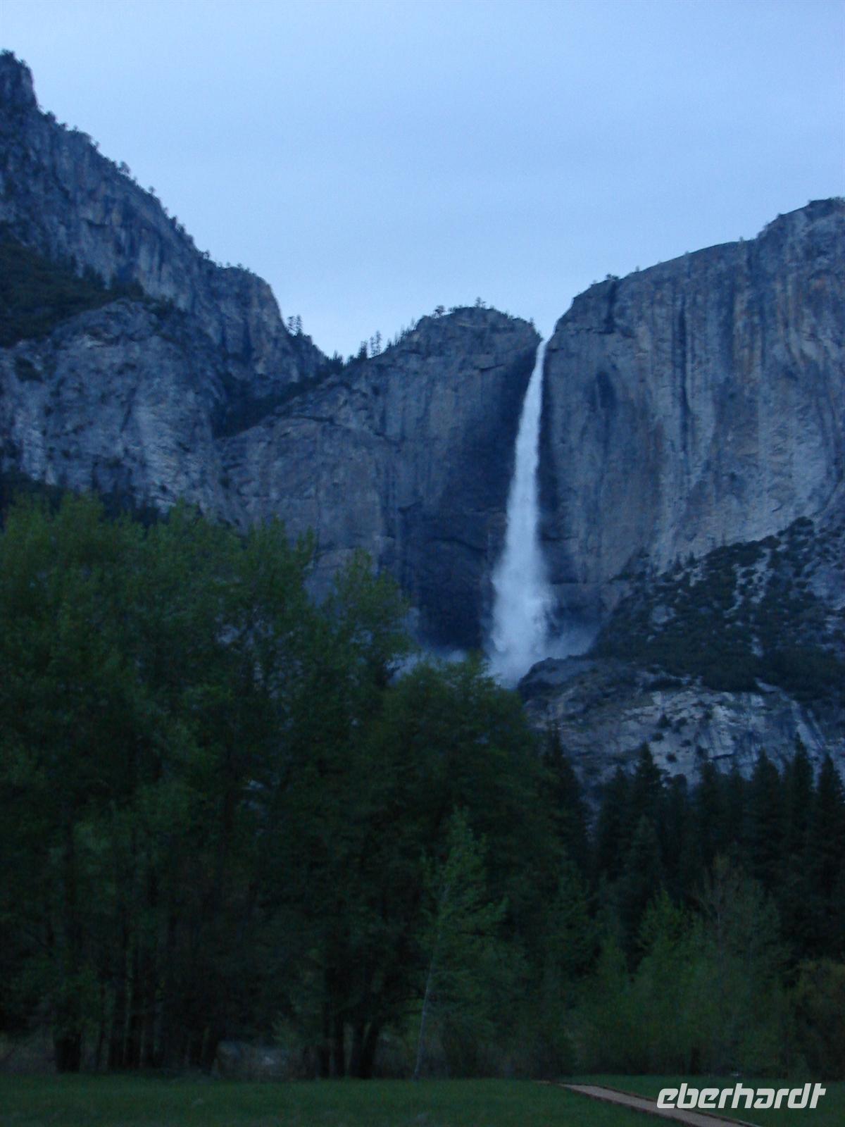 Nach dem Frühstück musste uns Margaruite mitteilen, dass leider noch alle Wege zu den Mammutbäumen im Yosemite NP gesperrt sind. Kurzfristig planten wir gemeinsam um und nahmen den Vorschlag, stattdessen zum Sequoia NP zu fahren, an. Spätestens als wir die ersten Mammutbäume sahen und vor dem offiziellen Weihnachtsbaum der Vereinigten Staaten standen, hat keiner von uns den Umweg bereut. Und am späten Nachmittag im Yosemite NP angekommen, konnten wir auch mit eigenen Augen sehen, dass die Wege noch gesperrt sind. Dafür nutzten wir die Zeit im Yosemite für ein gemütliches Barbeque. Auch hier zeigte sich wieder, was für ein „Perle“ Juvelyn, unsere Busfahrerin, war. Mit frisch gegrillten Steaks und einem zünftigen kalifornischen Wein schlemmten wir so richtig. Bereits in der Dämmerung erlebten wir die tosenden Wasserfälle des Yosemite Nationalparks und blickten auf den „El Capitan“, den bekanntesten Kletterfelsen. Unvorstellbar, dass die Wasserfälle im Sommer gar nicht existieren.