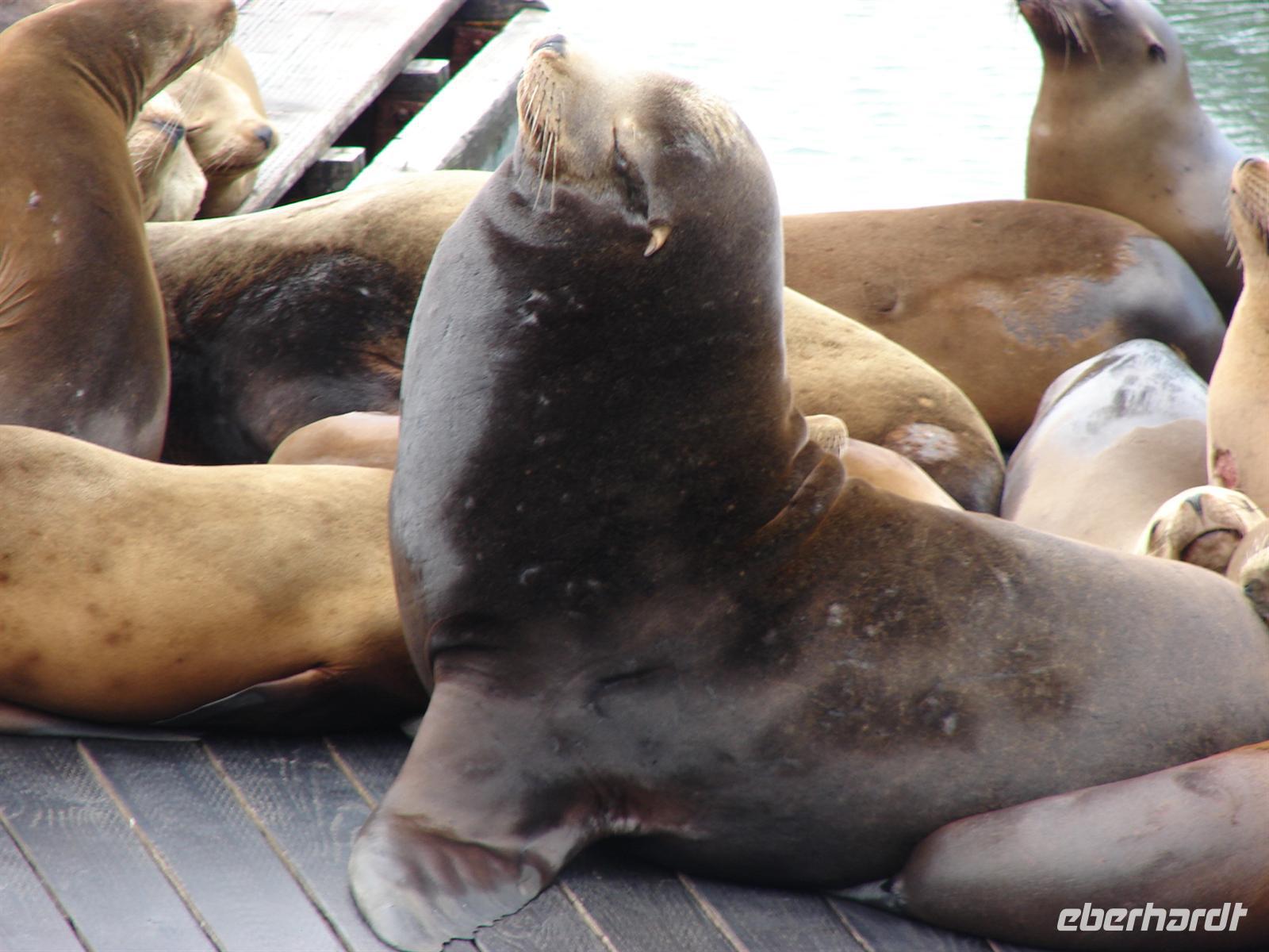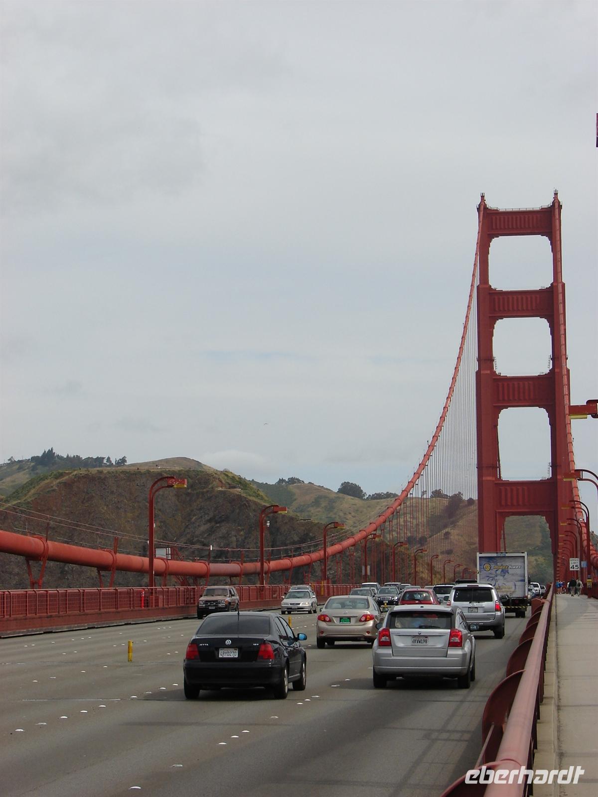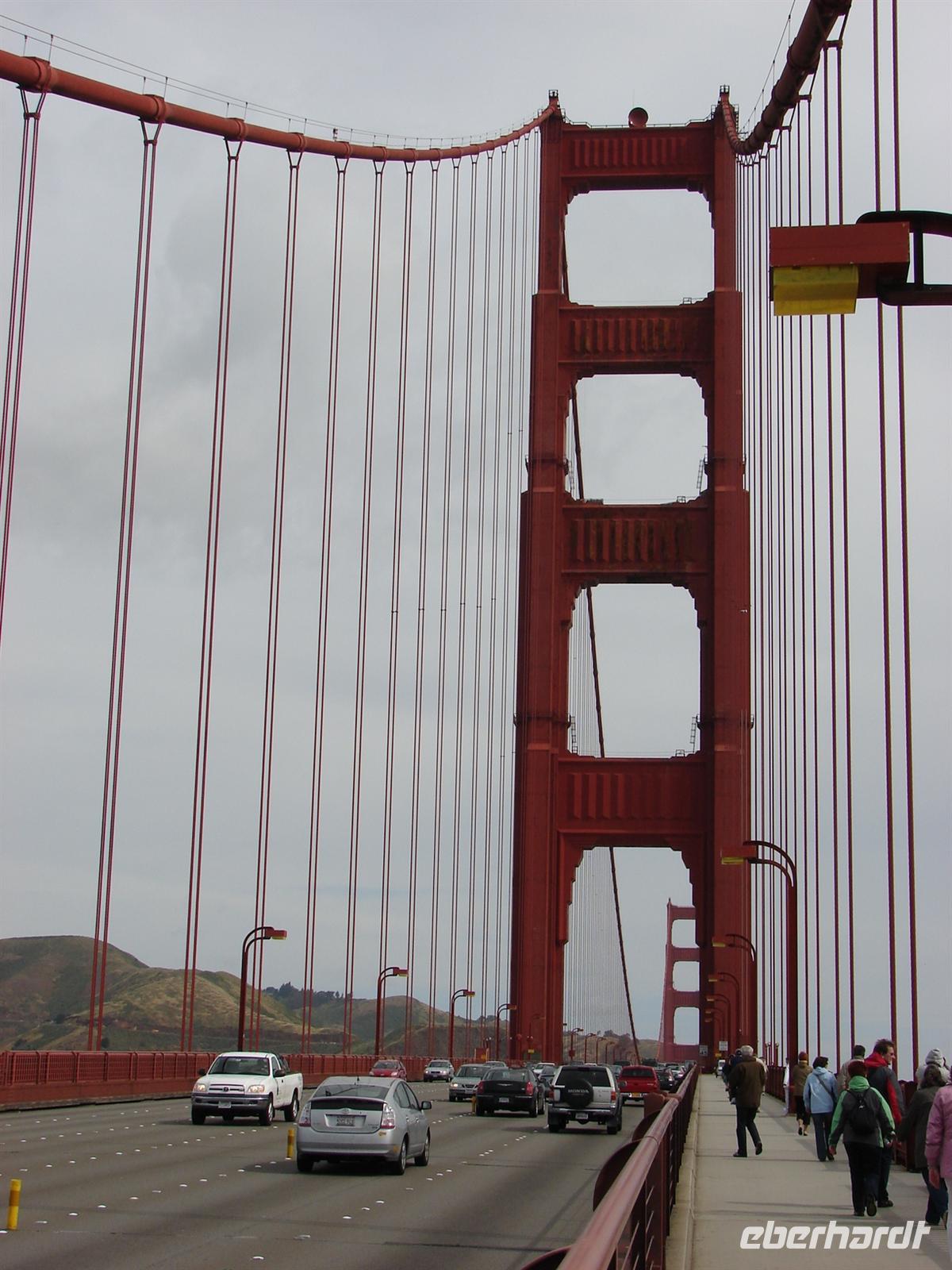 Auch heute stand wieder ein abwechslungsreiches Programm auf dem Plan. Erst einmal hieß es zeitig aufstehen, denn wir mussten bereits um 8.00 Uhr zur Cable Car gehen, um lange Wartezeiten zu vermeiden. Mit dem Wahrzeichen San Franciscos ging es bergauf und bergab bis zu unserem Ziel, der kurvenreichsten Straße der Welt, der Lombard-Street. Hier wartete unser Bus auf uns, um uns zum nächsten Höhepunkt unserer Reise, der Golden Gate Bridge, zu bringen. Da das Wetter es gut mit uns meinte, konnten wir sogar über die Brücke laufen. Immer wieder hielten wir an, um das Erlebnis zu genießen. Am anderen Ende der Brücke entdeckten wir das nette Städtchen Sausalito. Nach einer kleinen Mittagspause nahmen wir die Fähre nach San Francisco zurück. Am Nachmittag hatte jeder Zeit für eigene Entdeckungen in San Francisco. So sahen wir den Seelöwen zu, stiegen auf den Coit Tower und bummelten einfach durch die Stadt.