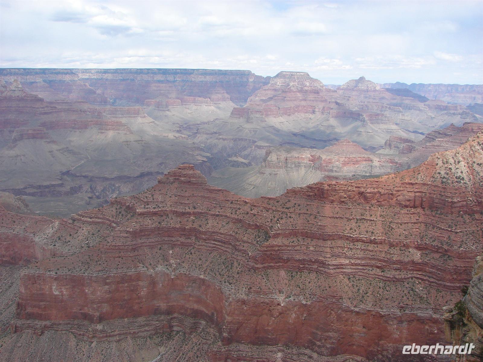 Heute war „Männertag“ - bereits am Morgen gratulierten wir unseren Mitreisenden zu ihrem „Ehrentag“ und ich versprach den Herren natürlich auch eine kleine Überraschung im Laufe des Tages. Ansonsten sollte der Tag ganz im Zeichen des einzigartigen Grand Canyons stehen. Aber zuerst fuhren wir nochmal auf der Route 66 und schnupperten etwas 60ger Jahre Flair in Seligman. So mancher wurde wehmütig, als er die Oldtimer sah. Zum Mittagessen wurden wir die höchste Klasse des amerikanischen Genusses eingeführt - es ging zu McDonalds. Zum Erstaunen gab es nicht nur ungesunde Burger, sondern auch Salat oder Wraps. Am Nachmittag erreichten wir dann endlich den Grand Canyon. Schon als Margaruite während der Fahrt den Grand Canyon am Horizont ankündigte, schauten alle ganz gespannt. Und dann war es endlich soweit: in seiner ganzen Pracht erstreckte sich das Naturwunder zu unseren Füßen. Wir spazierten entlang der Abbruchkante und staunten bei jedem Aussichtspunkt neu über den grandiosen Ausblick. Man konnte gar nicht genug fotografieren… Und dann hieß es um 16.00 Uhr auf zum Höhepunkt, dem Rundflug über den Grand Canyon. Mit kleinen Maschinen, in der jeder einen Fensterplatz hatte, starteten wir zu einem unbeschreiblichen Erlebnis. Bevor es zum Check In ins Hotel ging, erlebten wir den Grand Canyon dann nochmal aus einer ganz anderen Sicht. Im IMAX Kino in 3 D-Format reisten wir gemeinsam mit dem einarmigen Entdecker John Wesley Powell direkt auf dem Colorado River durch den Canyon - da konnte einem schon etwas schummrig werden.