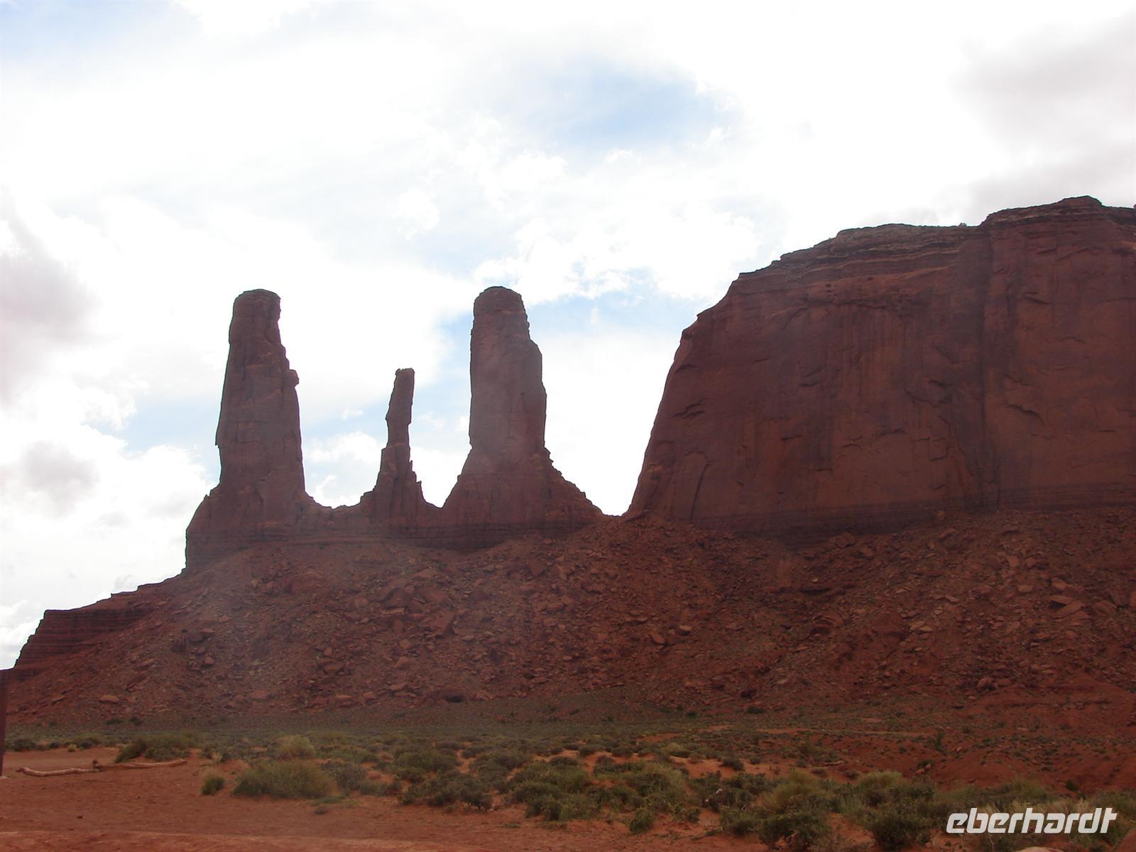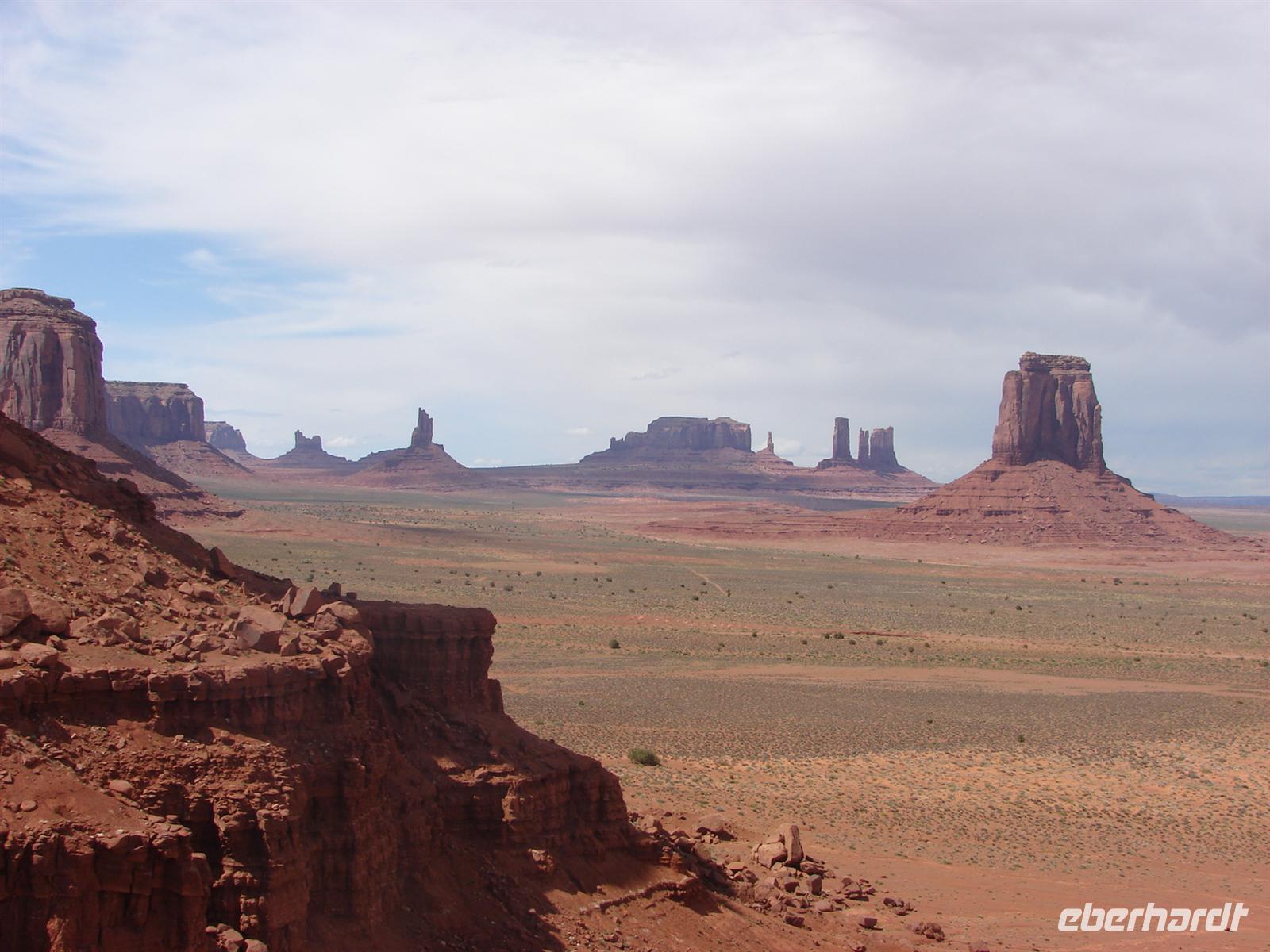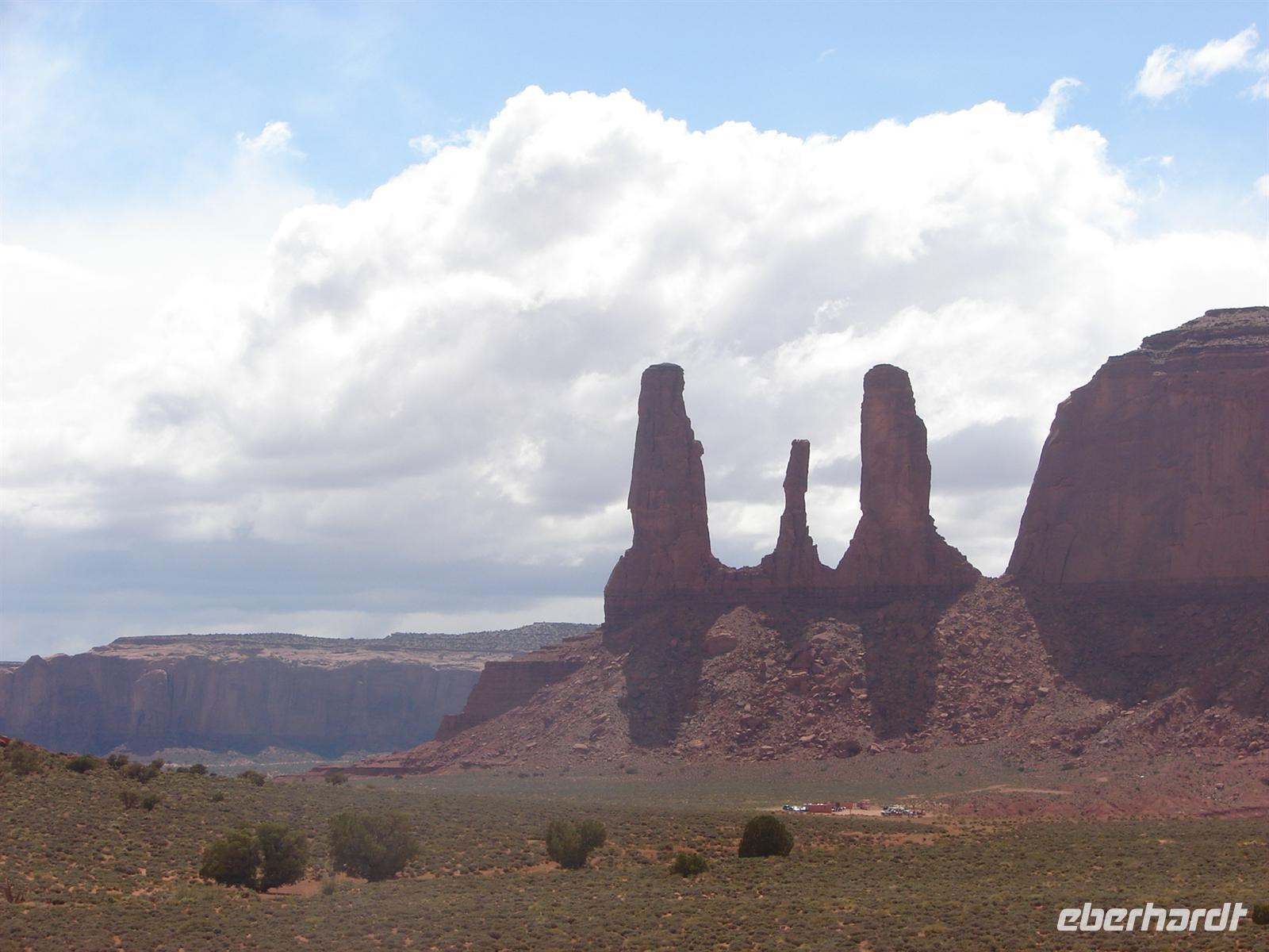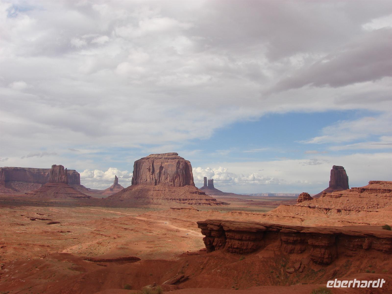 Leider mussten wir heute vom Grand Canyon Abschied nehmen, aber ein neuer Tag mit wiederum vielen Erlebnissen wartete auf uns. Zuerst machten wir noch einen kurzen Stop am Desert View und erklommen den Desert View Watch Tower. Von oben hatte man einen letzten, wunderbaren Blick über den Grand Canyon. Und dann ging es direkt zum Monument Valley. Bevor wir zum Jeep Abenteuer starteten, stärkten wir uns noch mit „lecker“ Navajo Tacos, die einfach riesig waren. Da es beim Mittagessen noch zu regnen anfing, fragten sich viele ganz bang, wie wird das Wetter direkt im Monument Valley sein? Pünktlich zum Start der Jeep Safari hörte es auf zu regnen und es lugte ab und zu sogar die Sonne hervor. Von den Navajo-Indianern wurden wir mit Jeeps, auf denen jeweils 12 Gäste Platz nehmen konnten, zu den Highlights gefahren. Und wieder staunten wir nur so, welche Gesteinsformationen die Natur geschaffen hatte. Und am Ende gab es natürlich auch noch das bekannte „Marlboro-Foto“. Am späten Abend kamen wir voller Eindrücke in Moab, der amerikanischen Hauptstadt des Mountainbikings an. Schon unterwegs hatte es wieder zu regnen begonnen und das mitten in der Wüste! Da unser Abendessen in einem netten mexikanischen Restaurant reserviert war, konnte uns der Regen nichts anhaben. Kaum zu schaffen, waren die riesigen Portionen und wir ließen uns das Corona Bier schmecken.