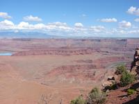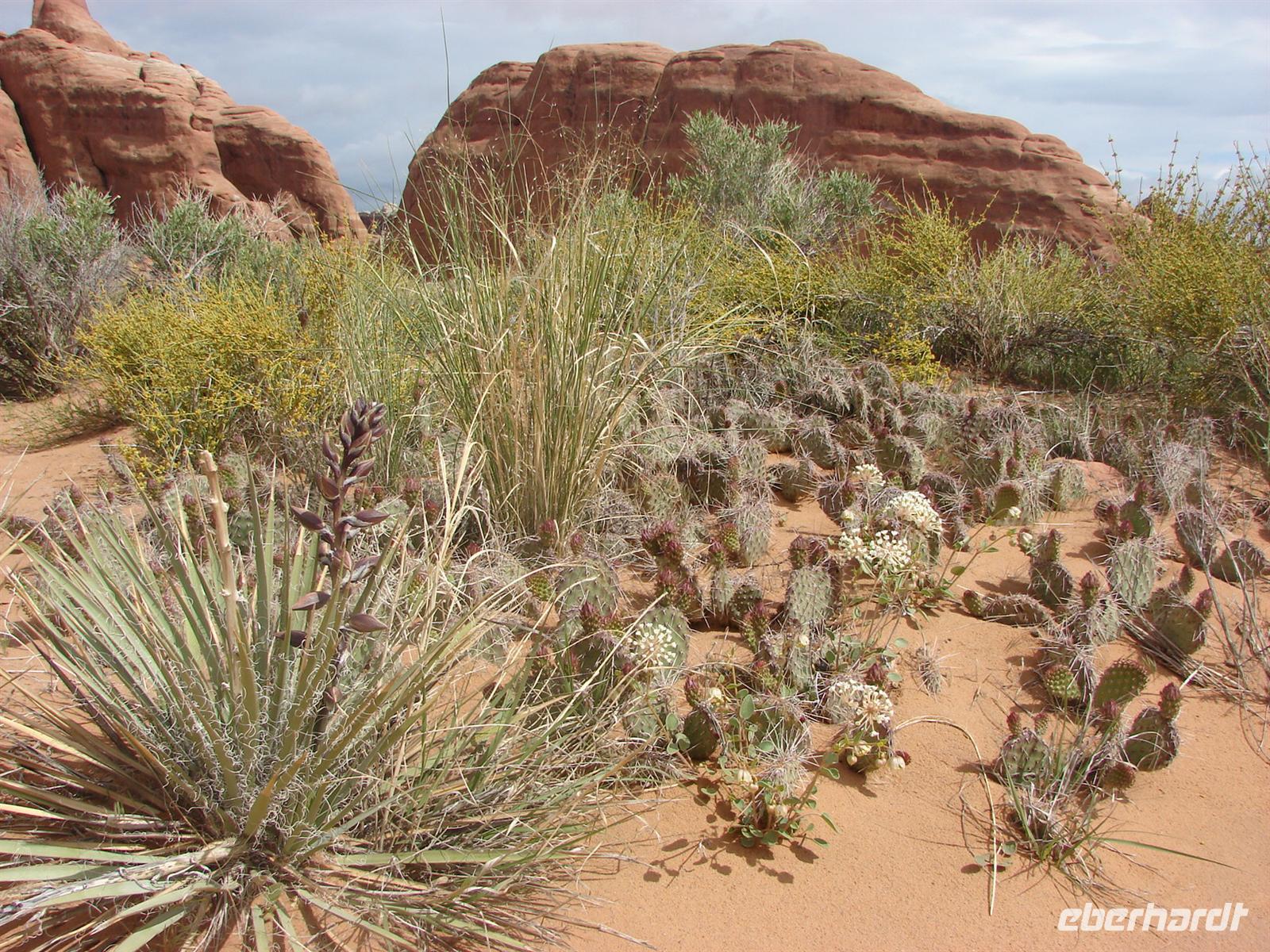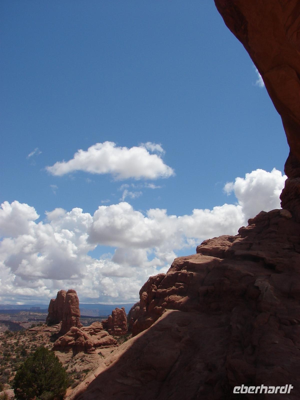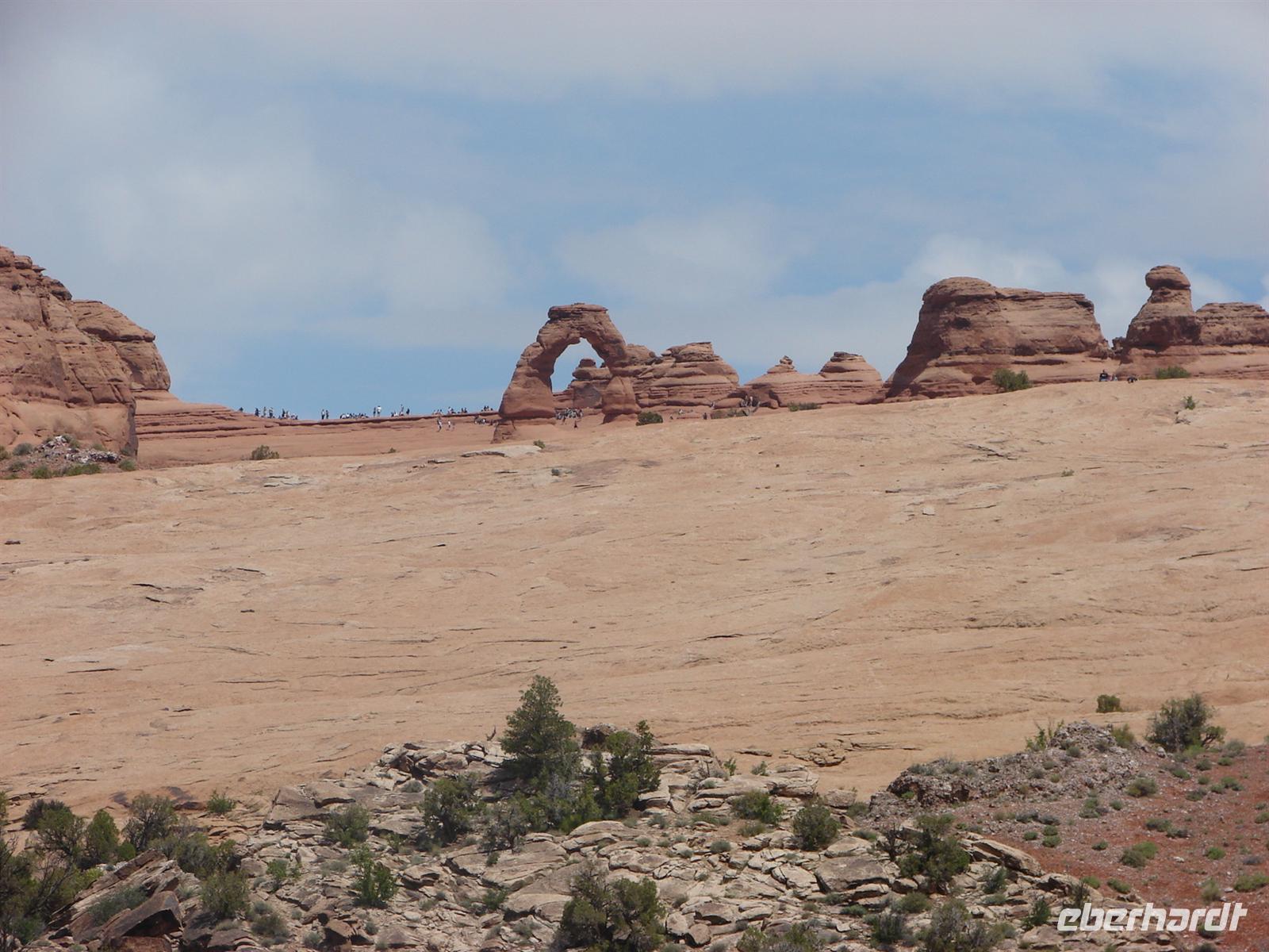 Besonders gespannt waren wir heute auf das kontinentale Frühstück, welches uns Margaruite angekündigt hatte. Es ist schon ungewöhnlich von Papptellern mit Plastebesteck zu essen. Aber da für das Frühstück nur für uns auch Käse und Wurst organisiert waren, nahmen wir die amerikanische Eigenheit hin und starteten ausgelassen in den Tag, denn auch die Sonne schien heute endlich wieder. Bevor wir zum Arches NP fuhren, legten wir noch einen kurzen Stop beim Supermarkt ein. Unsere Reiseleiterin hatte uns für Mittag ein Picknick angekündigt und jeder kaufte noch einige Kleinigkeiten dazu ein. Bei einer kleinen Wanderung durch den Arches Nationalpark erkundeten wir den Devils Garden und wurden am Ende des Weges mit einem tollen Ausblick auf den Landscape Arch belohnt. Unterwegs entdeckten wir außerdem so manche interessante Pflanze oder beobachteten die wieselflinken Geckos. Anschließend hatten wir noch Zeit für einen kurzen Fotostop am Delicate Arch und schauten durch die sogenannten „Nord- & Südfenster“. Wie versprochen picknickten wir direkt am Fluss, ließen uns die rustikale Mahlzeit schmecken und waren erstaunt, wie gut unsere Busfahrerin Juvelyn vorbereitet war. Da fehlte nicht einmal die Tischdecke für den Picknickplatz. Am Nachmittag standen die Canyonlands auf dem Programm. Unbeschreiblich ist der Ausblick vom Death Horse Point auf den ca. 600 m tiefer gelegenen Colorado River. Abends nutzen wir die Möglichkeit, individuell im netten Städtchen Moab ein paar Souvenirs einzukaufen oder in einem der zahlreichen Restaurants zu essen.