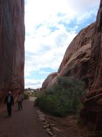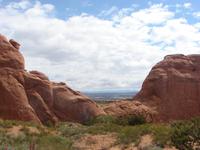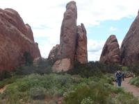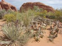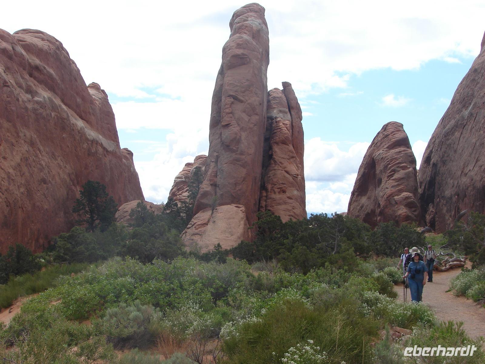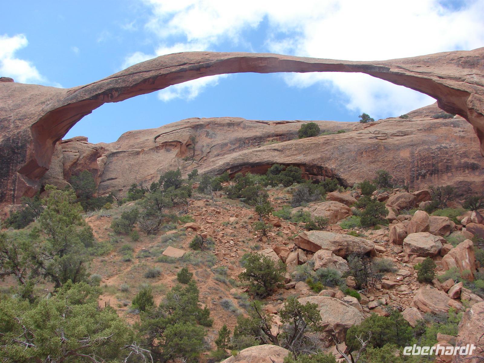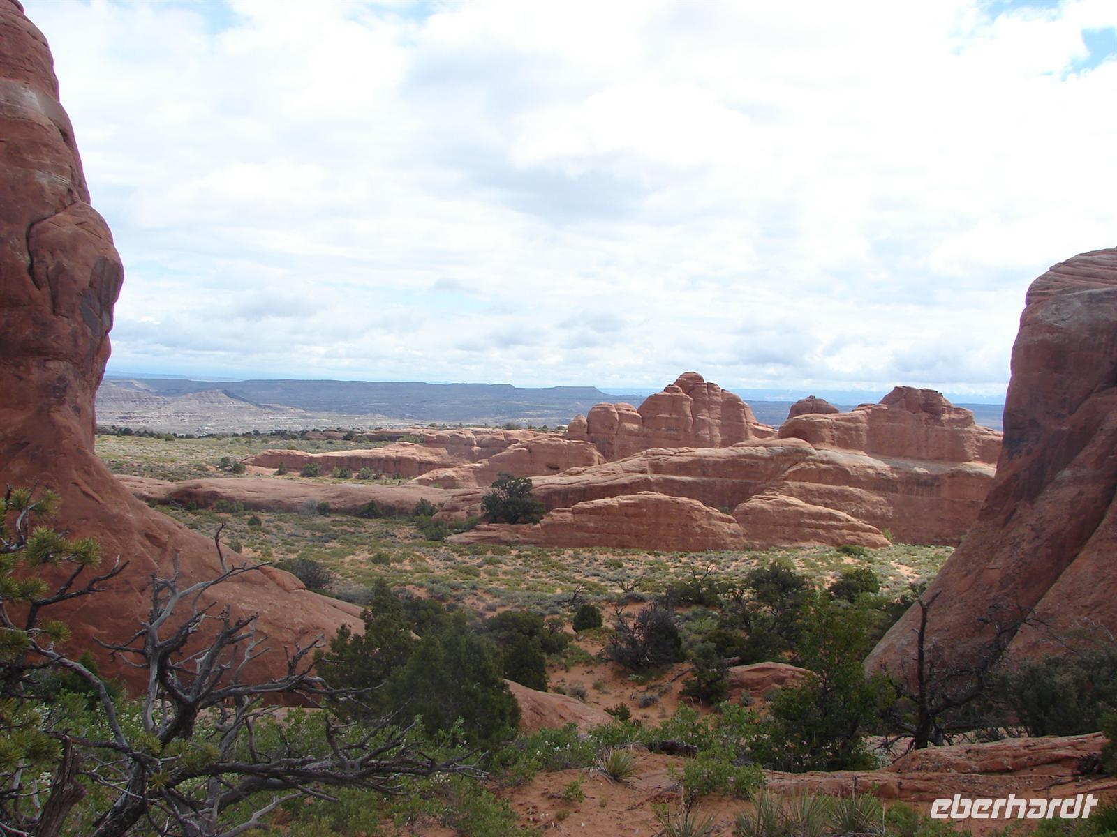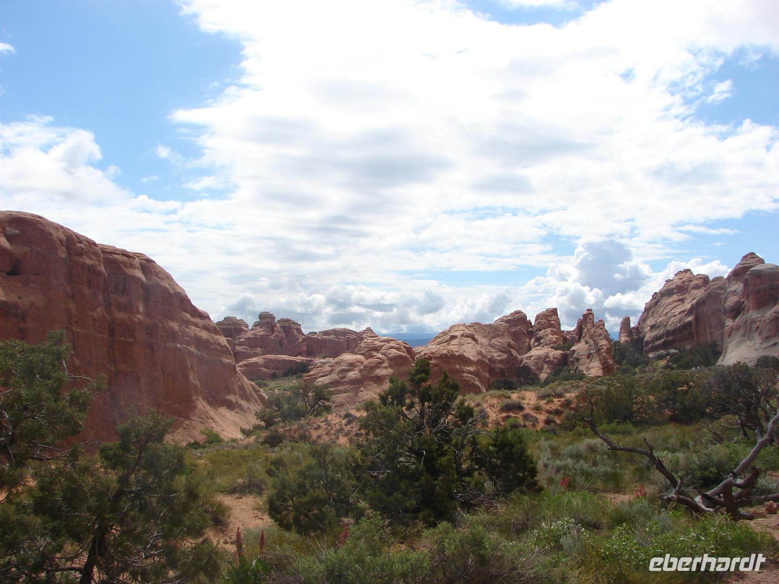 Besonders gespannt waren wir heute auf das kontinentale Frühstück, welches uns Margaruite angekündigt hatte. Es ist schon ungewöhnlich von Papptellern mit Plastebesteck zu essen. Aber da für das Frühstück nur für uns auch Käse und Wurst organisiert waren, nahmen wir die amerikanische Eigenheit hin und starteten ausgelassen in den Tag, denn auch die Sonne schien heute endlich wieder. Bevor wir zum Arches NP fuhren, legten wir noch einen kurzen Stop beim Supermarkt ein. Unsere Reiseleiterin hatte uns für Mittag ein Picknick angekündigt und jeder kaufte noch einige Kleinigkeiten dazu ein. Bei einer kleinen Wanderung durch den Arches Nationalpark erkundeten wir den Devils Garden und wurden am Ende des Weges mit einem tollen Ausblick auf den Landscape Arch belohnt. Unterwegs entdeckten wir außerdem so manche interessante Pflanze oder beobachteten die wieselflinken Geckos. Anschließend hatten wir noch Zeit für einen kurzen Fotostop am Delicate Arch und schauten durch die sogenannten „Nord- & Südfenster“. Wie versprochen picknickten wir direkt am Fluss, ließen uns die rustikale Mahlzeit schmecken und waren erstaunt, wie gut unsere Busfahrerin Juvelyn vorbereitet war. Da fehlte nicht einmal die Tischdecke für den Picknickplatz. Am Nachmittag standen die Canyonlands auf dem Programm. Unbeschreiblich ist der Ausblick vom Death Horse Point auf den ca. 600 m tiefer gelegenen Colorado River. Abends nutzen wir die Möglichkeit, individuell im netten Städtchen Moab ein paar Souvenirs einzukaufen oder in einem der zahlreichen Restaurants zu essen.