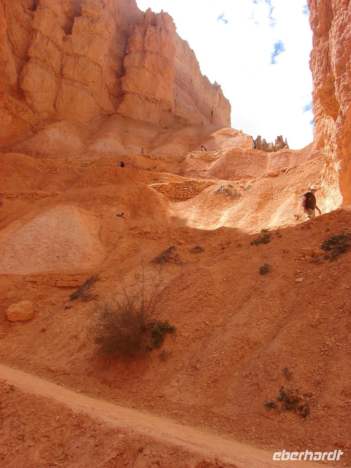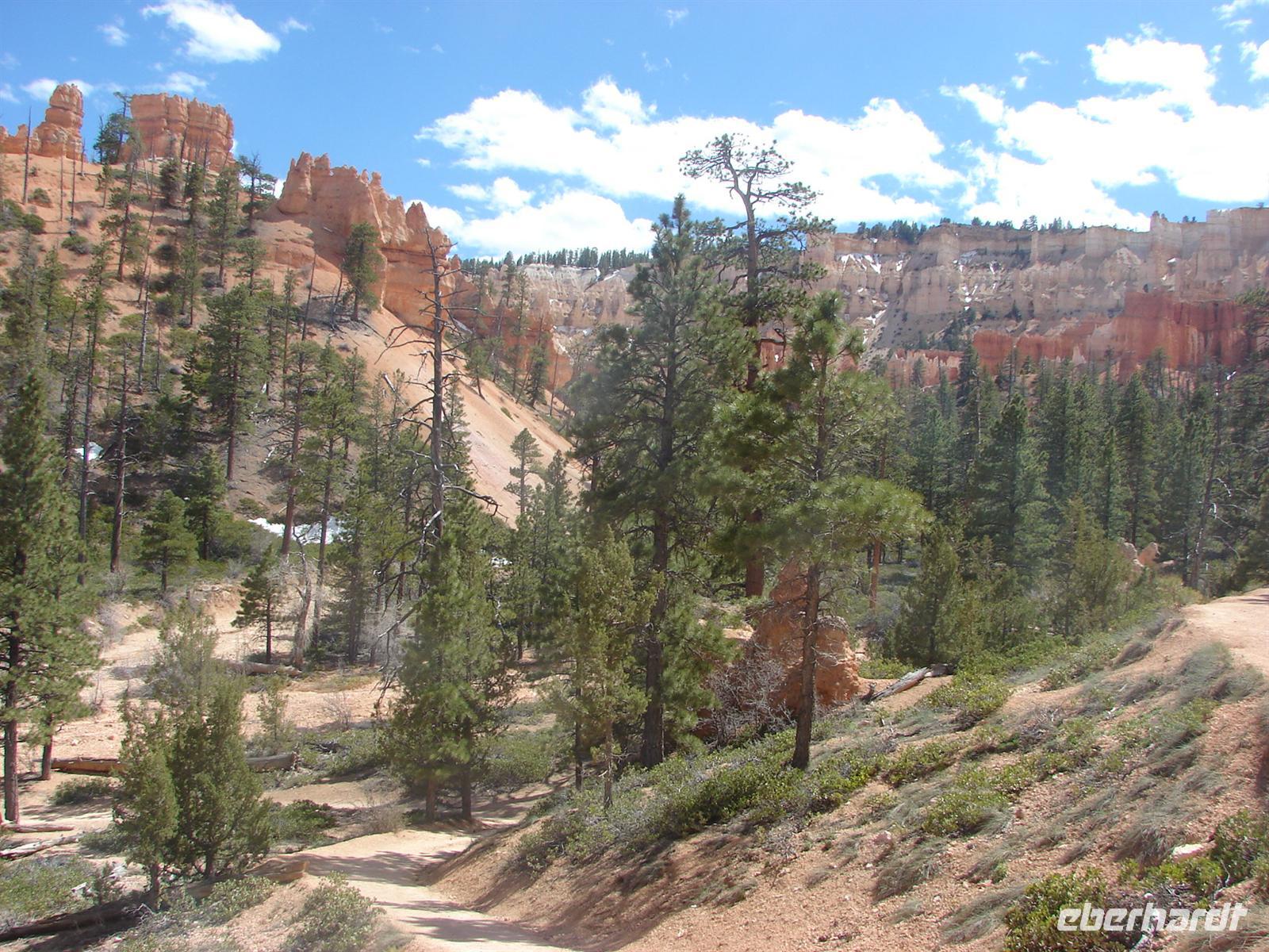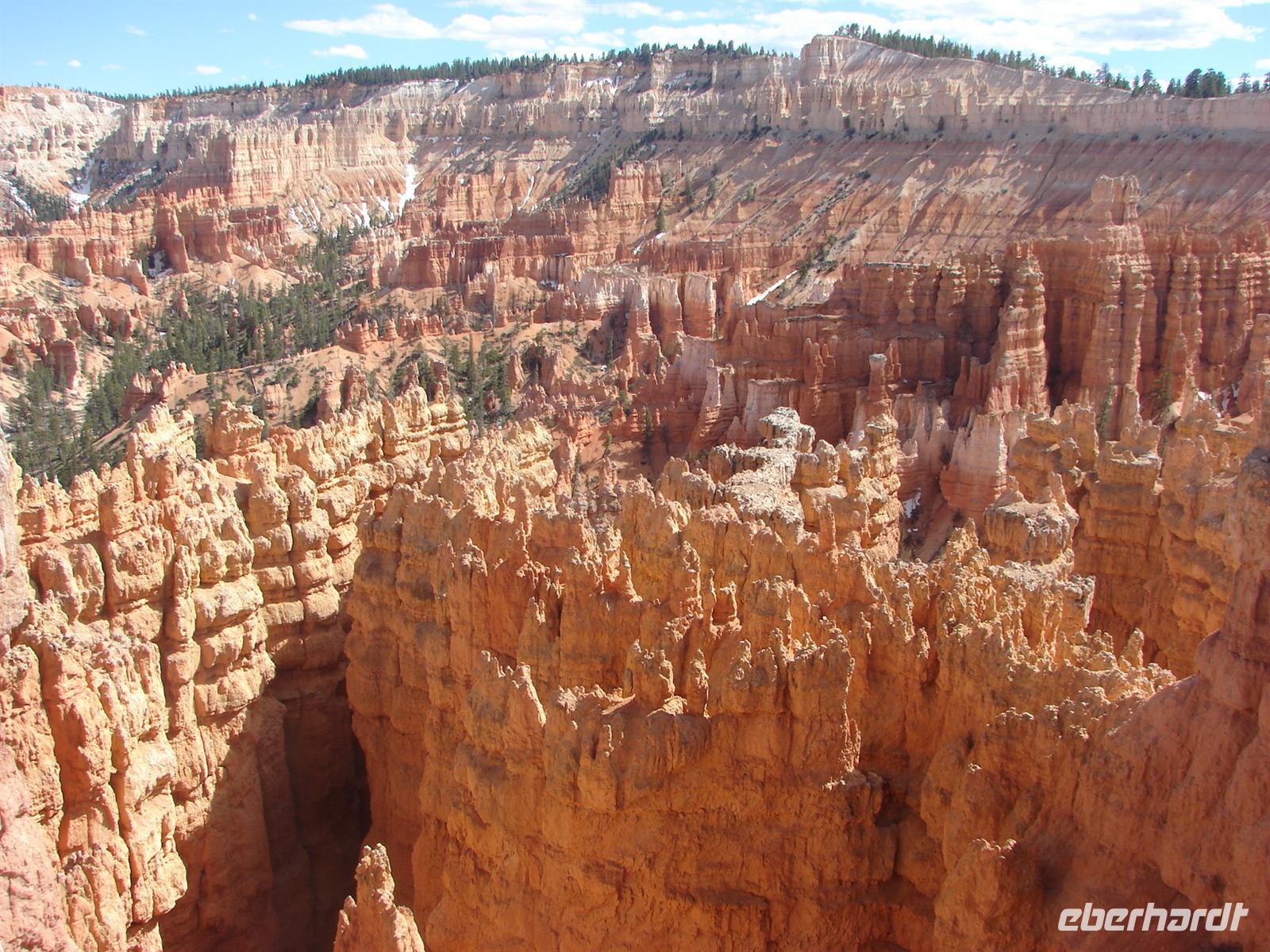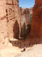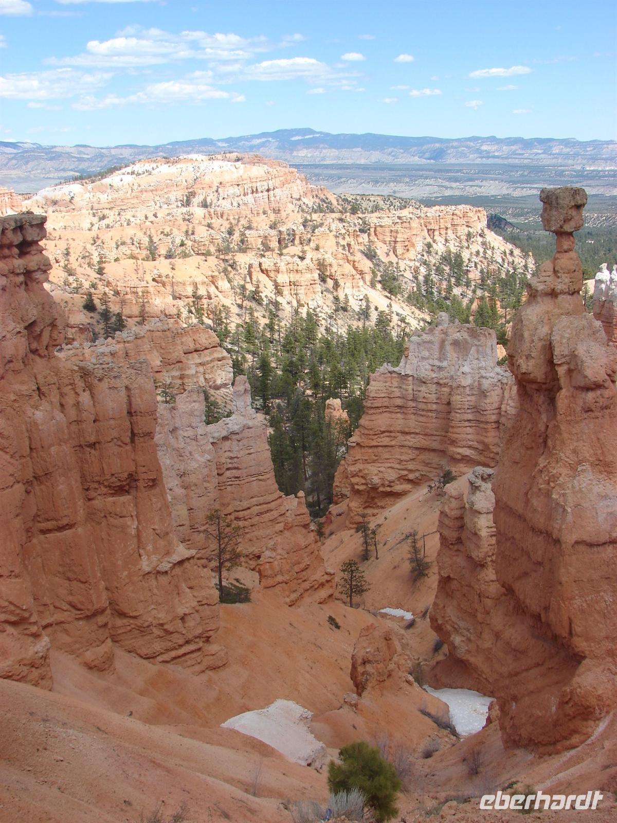 Nach den unendlich vielfältigen Eindrücken der vergangenen Tage, konnte es kaum noch eine weitere Steigerung geben - aber wir hatten nicht mit der Faszination des Bryce Canyon gerechnet. Schon am ersten Aussichtspunkt, waren wir absolut von dem uns gebotenen Panorama überwältigt. Als wir dann noch näher an den Canyon fuhren und auf dem Spaziergang entlang des Canyons in die Tiefe schauen konnten, waren alle beeindruckt. Und es lag sogar noch Schnee, das hatten wir überhaupt nicht erwartet! Einige Gäste nahmen sogar den unwegsamen Abstieg in den Canyons in Angriff und wurden mit einer ganz anderen Sichtweise belohnt. Aber auch der steile Aufstieg musste wieder geschafft werden - für unsere gutdurchtrainierten Gäste war das kein Problem.