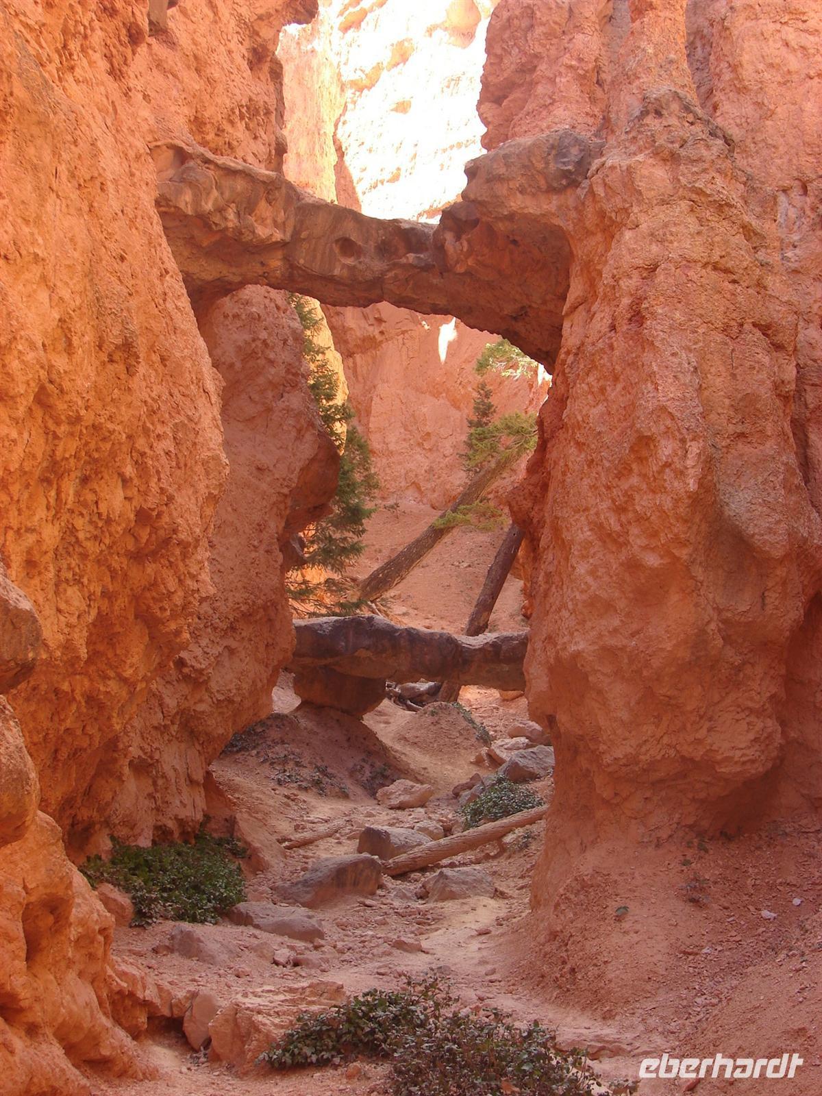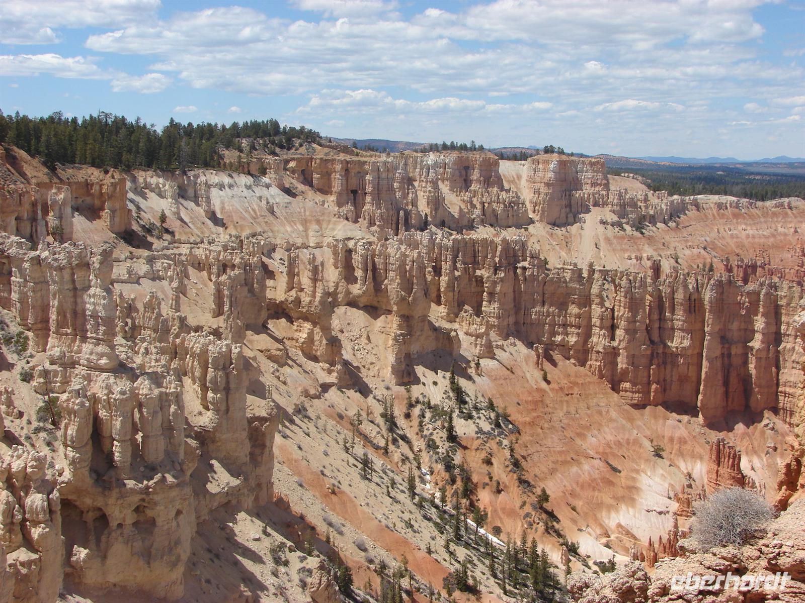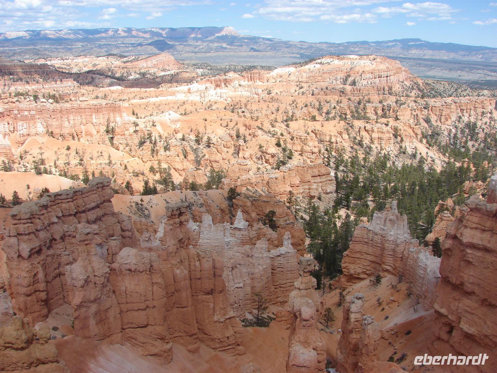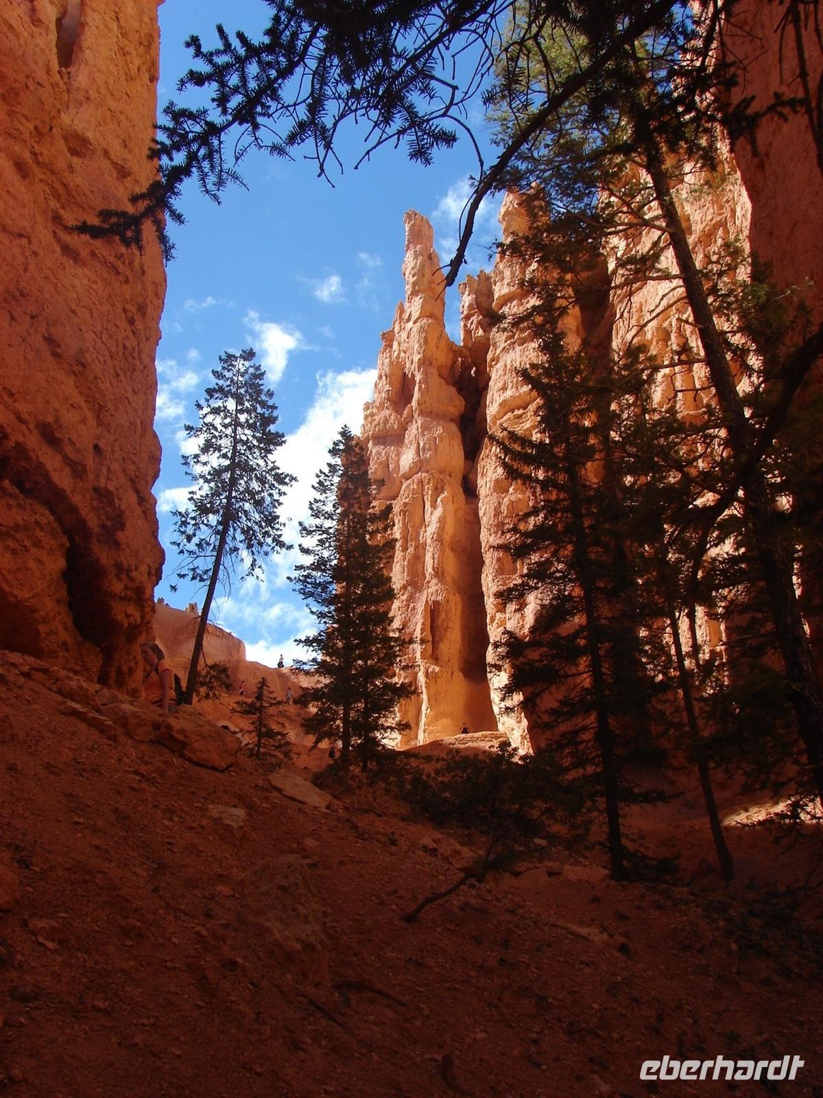 Nach den unendlich vielfältigen Eindrücken der vergangenen Tage, konnte es kaum noch eine weitere Steigerung geben - aber wir hatten nicht mit der Faszination des Bryce Canyon gerechnet. Schon am ersten Aussichtspunkt, waren wir absolut von dem uns gebotenen Panorama überwältigt. Als wir dann noch näher an den Canyon fuhren und auf dem Spaziergang entlang des Canyons in die Tiefe schauen konnten, waren alle beeindruckt. Und es lag sogar noch Schnee, das hatten wir überhaupt nicht erwartet! Einige Gäste nahmen sogar den unwegsamen Abstieg in den Canyons in Angriff und wurden mit einer ganz anderen Sichtweise belohnt. Aber auch der steile Aufstieg musste wieder geschafft werden - für unsere gutdurchtrainierten Gäste war das kein Problem.