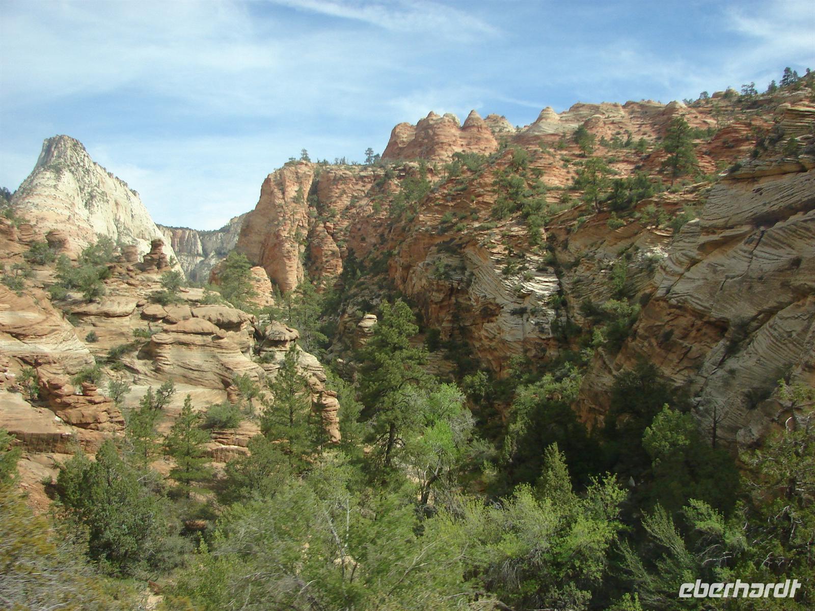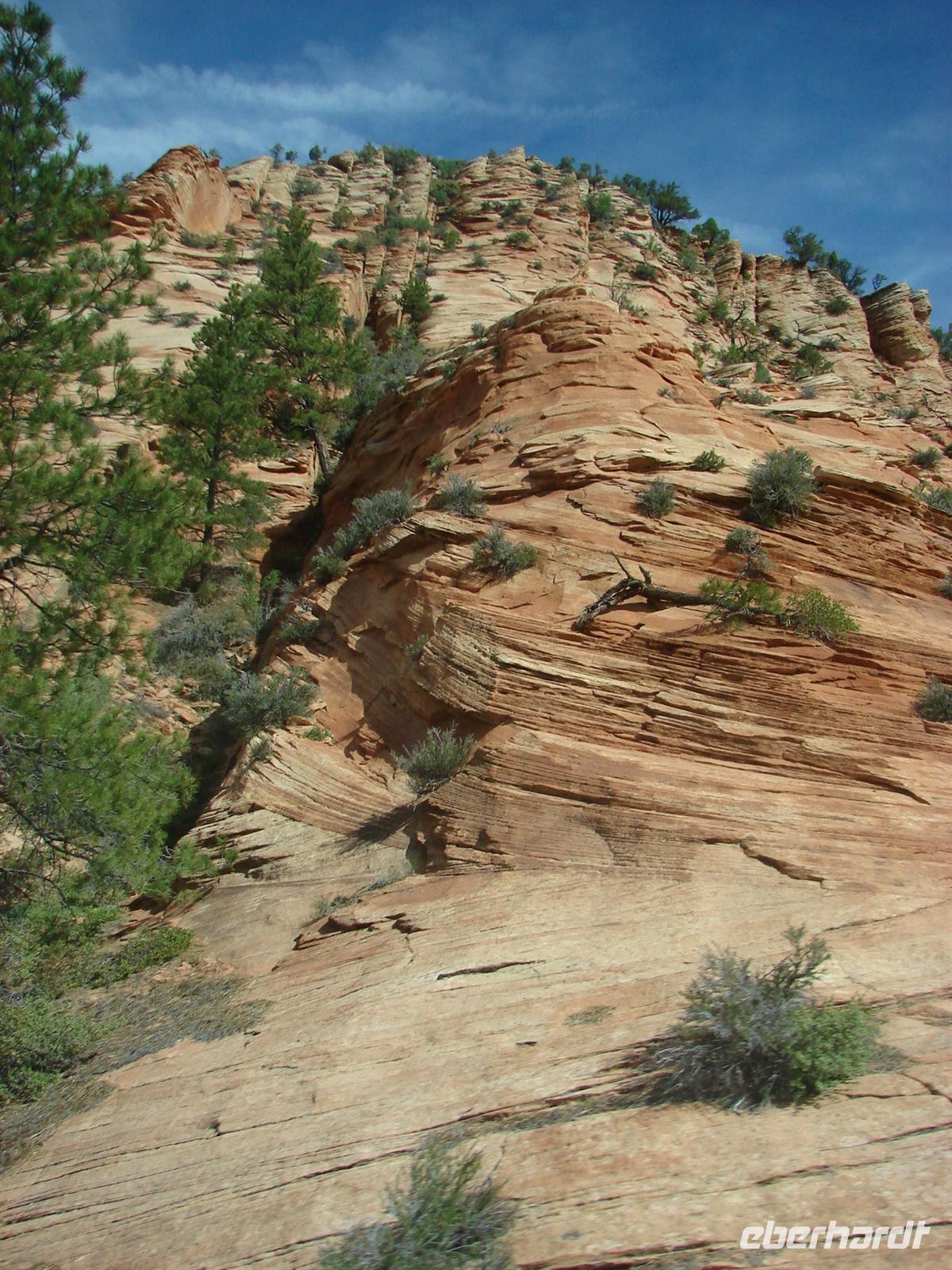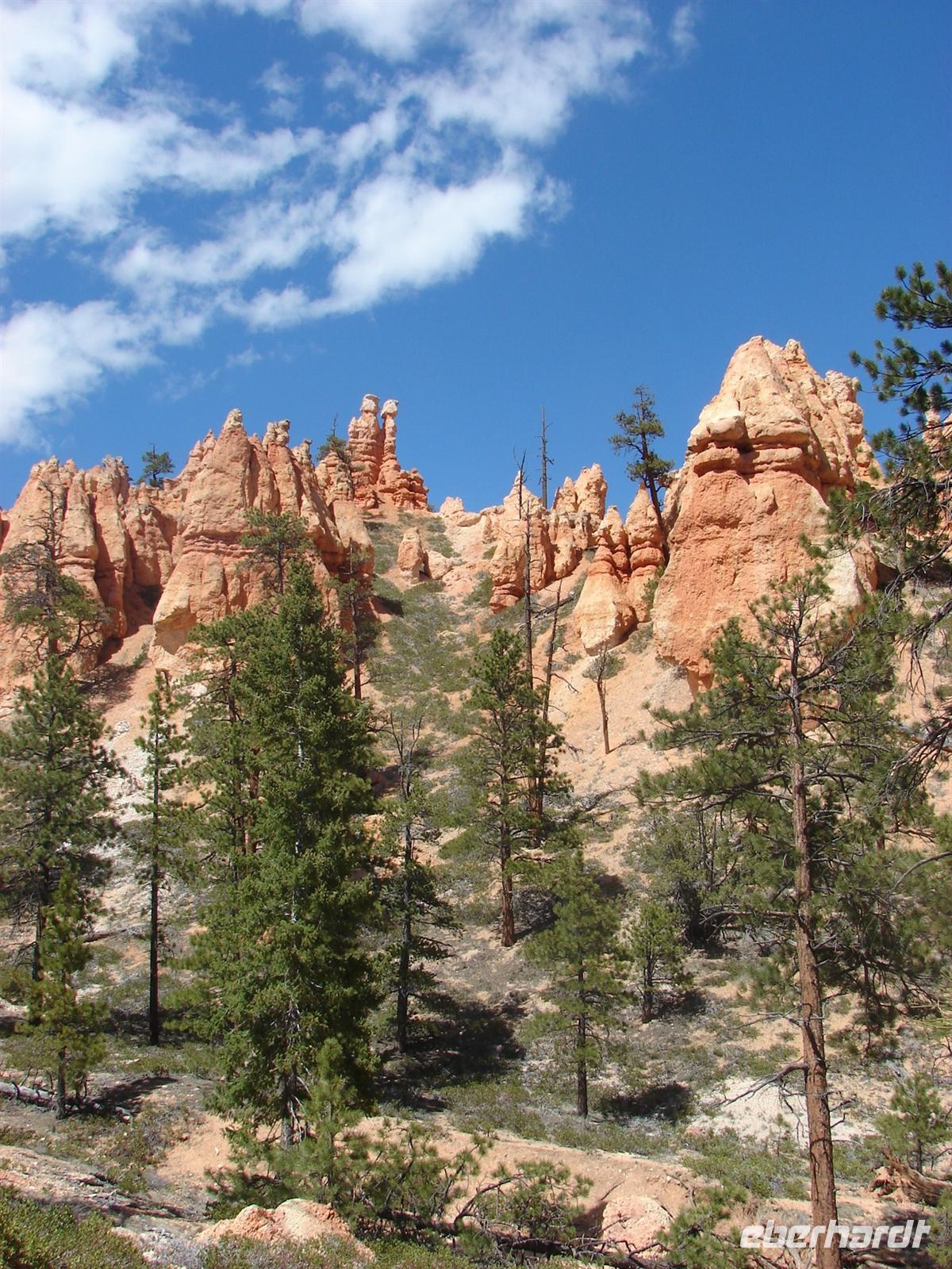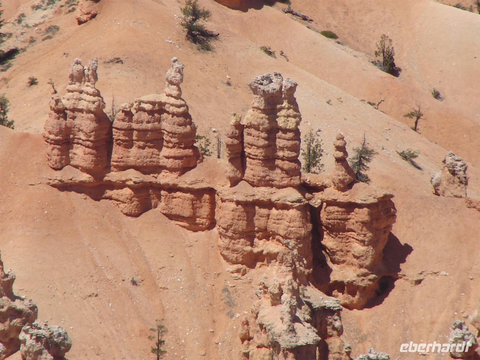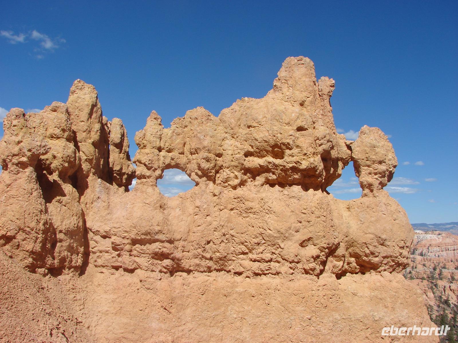 Nach den unendlich vielfältigen Eindrücken der vergangenen Tage, konnte es kaum noch eine weitere Steigerung geben - aber wir hatten nicht mit der Faszination des Bryce Canyon gerechnet. Schon am ersten Aussichtspunkt, waren wir absolut von dem uns gebotenen Panorama überwältigt. Als wir dann noch näher an den Canyon fuhren und auf dem Spaziergang entlang des Canyons in die Tiefe schauen konnten, waren alle beeindruckt. Und es lag sogar noch Schnee, das hatten wir überhaupt nicht erwartet! Einige Gäste nahmen sogar den unwegsamen Abstieg in den Canyons in Angriff und wurden mit einer ganz anderen Sichtweise belohnt. Aber auch der steile Aufstieg musste wieder geschafft werden - für unsere gutdurchtrainierten Gäste war das kein Problem.