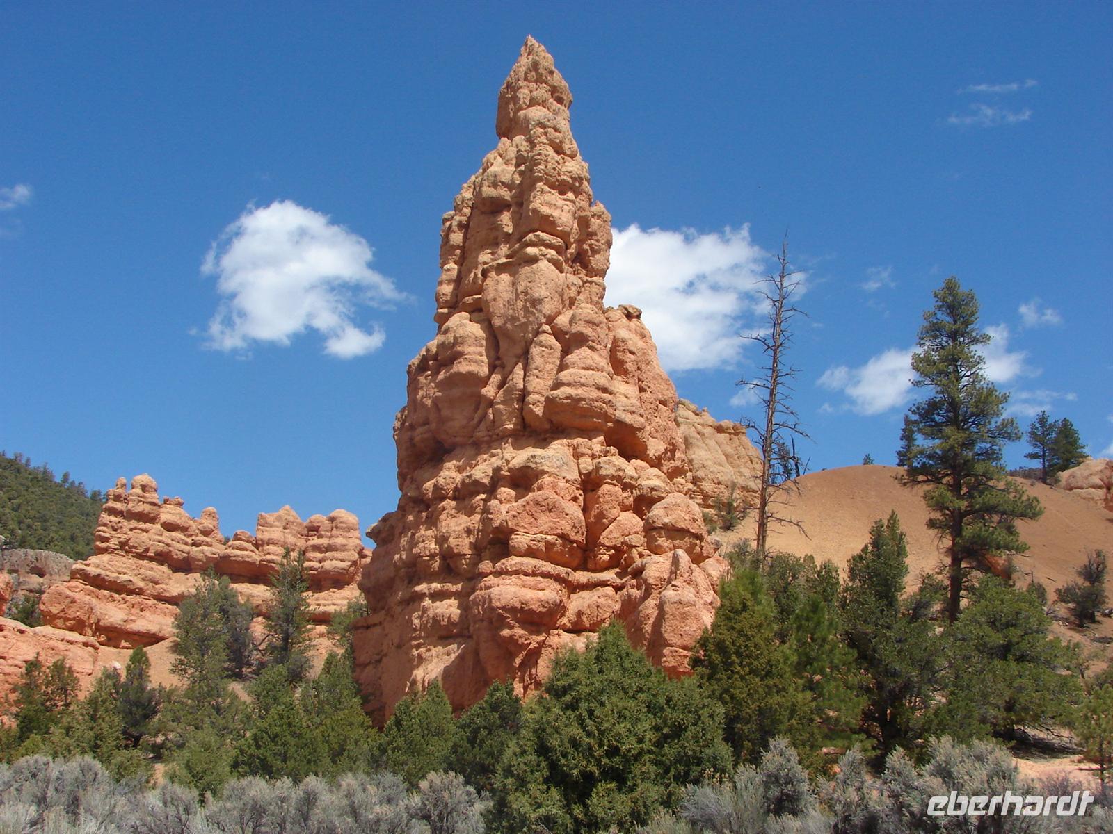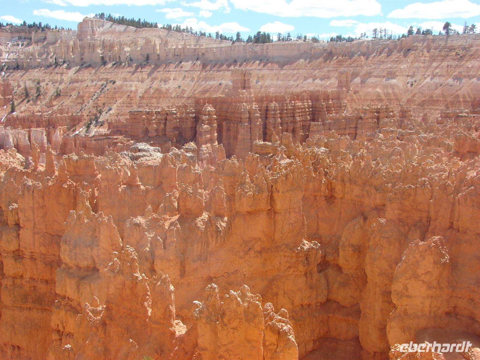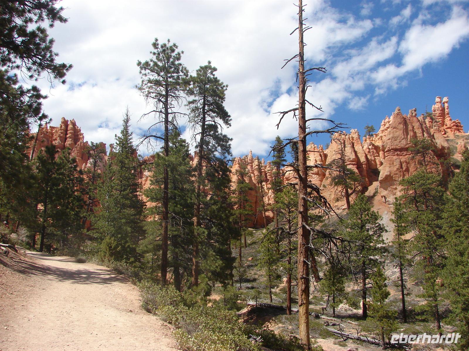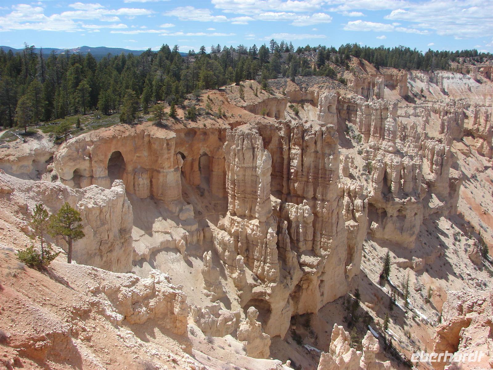 Nach den unendlich vielfältigen Eindrücken der vergangenen Tage, konnte es kaum noch eine weitere Steigerung geben - aber wir hatten nicht mit der Faszination des Bryce Canyon gerechnet. Schon am ersten Aussichtspunkt, waren wir absolut von dem uns gebotenen Panorama überwältigt. Als wir dann noch näher an den Canyon fuhren und auf dem Spaziergang entlang des Canyons in die Tiefe schauen konnten, waren alle beeindruckt. Und es lag sogar noch Schnee, das hatten wir überhaupt nicht erwartet! Einige Gäste nahmen sogar den unwegsamen Abstieg in den Canyons in Angriff und wurden mit einer ganz anderen Sichtweise belohnt. Aber auch der steile Aufstieg musste wieder geschafft werden - für unsere gutdurchtrainierten Gäste war das kein Problem.