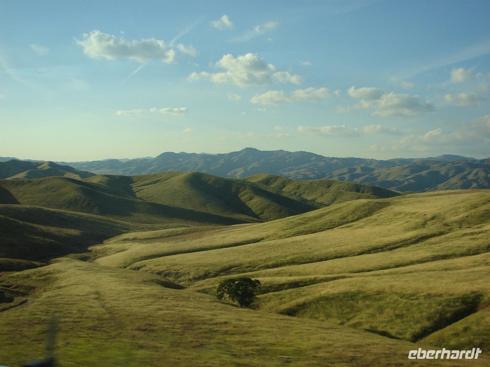 Leider mussten wir heute schon von Las Vegas Abschied nehmen. Eine lange Tagesetappe lag vor uns. Auf dem Weg zum Yosemite Nationalpark übernachteten wir in Bakersfield. Aber zuerst waren wir auf das Tal des Todes, das Death Valley, gespannt. So viel hatten wir schon davon gehört und doch waren wir von den Landschaftsformationen, die wir vom Zabriskie Point aus sahen, fasziniert. Nur gut, dass es im Frühjahr noch nicht ganz so heiß war, wir konnten sogar am Badwater Point, dem tiefsten Punkt, ein wenig durch die Salzpfanne spazieren. Am Nachmittag staunten wir nicht schlecht als uns ein Düsenjet überholte - Margaruite erzählte uns, dass sich die Piloten daraus ab und zu einen Spaß machten, Touristen zu ärgern. Beim kleinen Reise-Quiz vertrieben wir uns etwas die lange Fahrzeit. Natürlich gab es auch kleine Preise zu gewinnen.