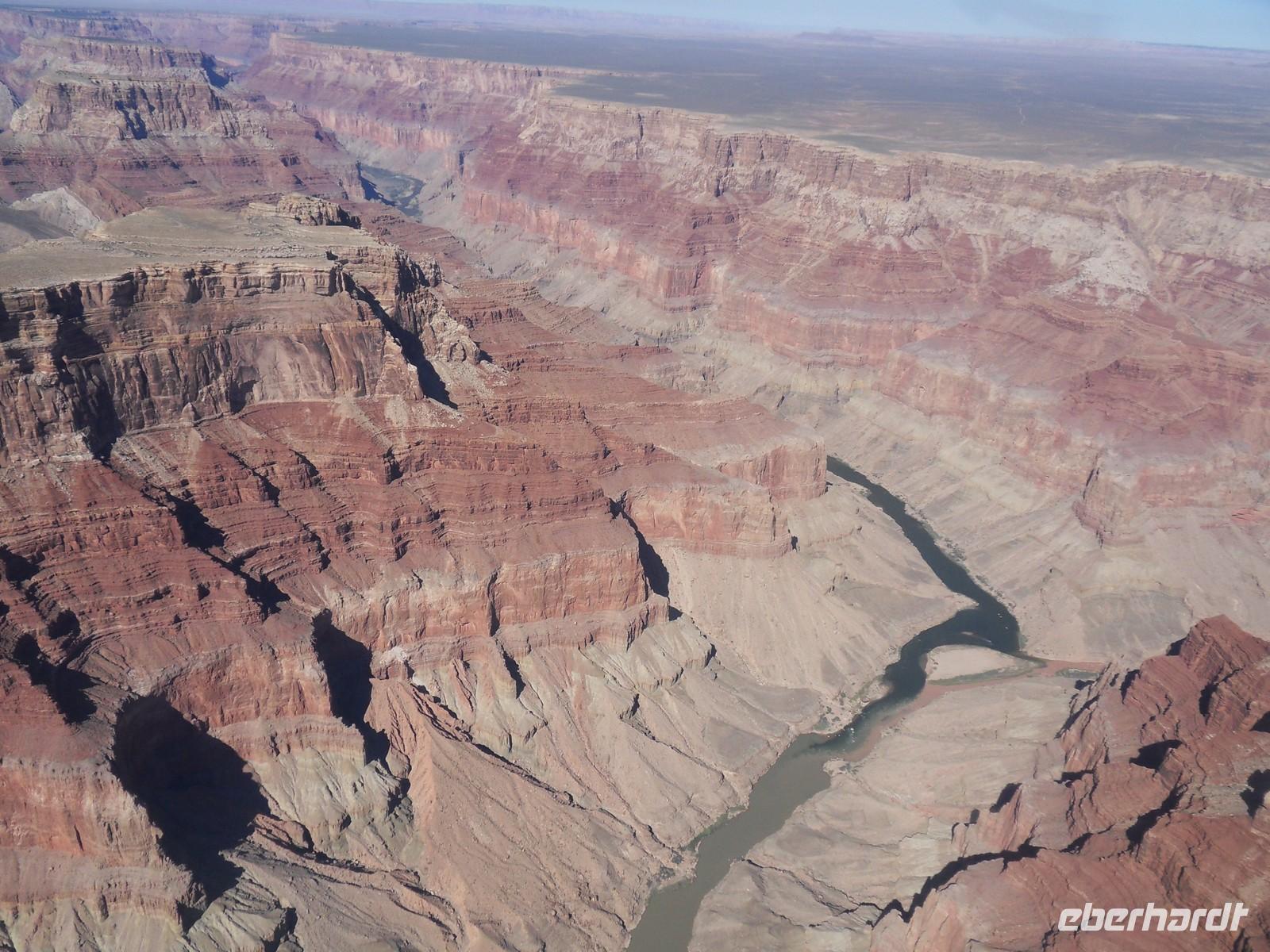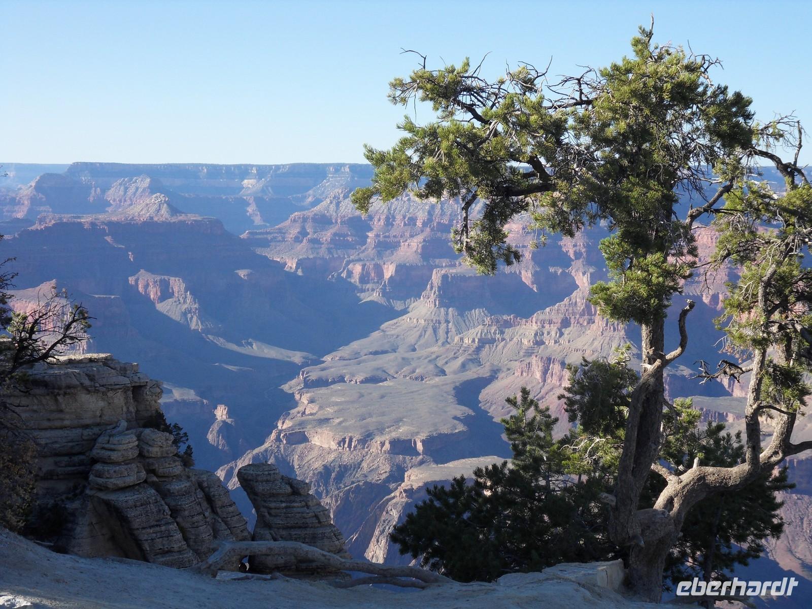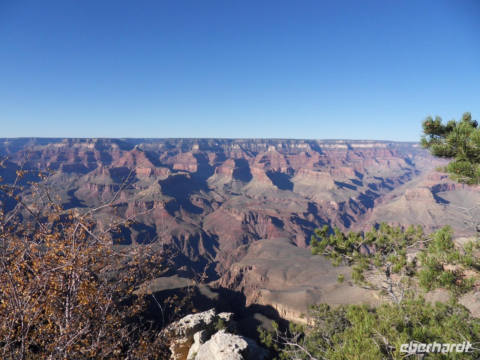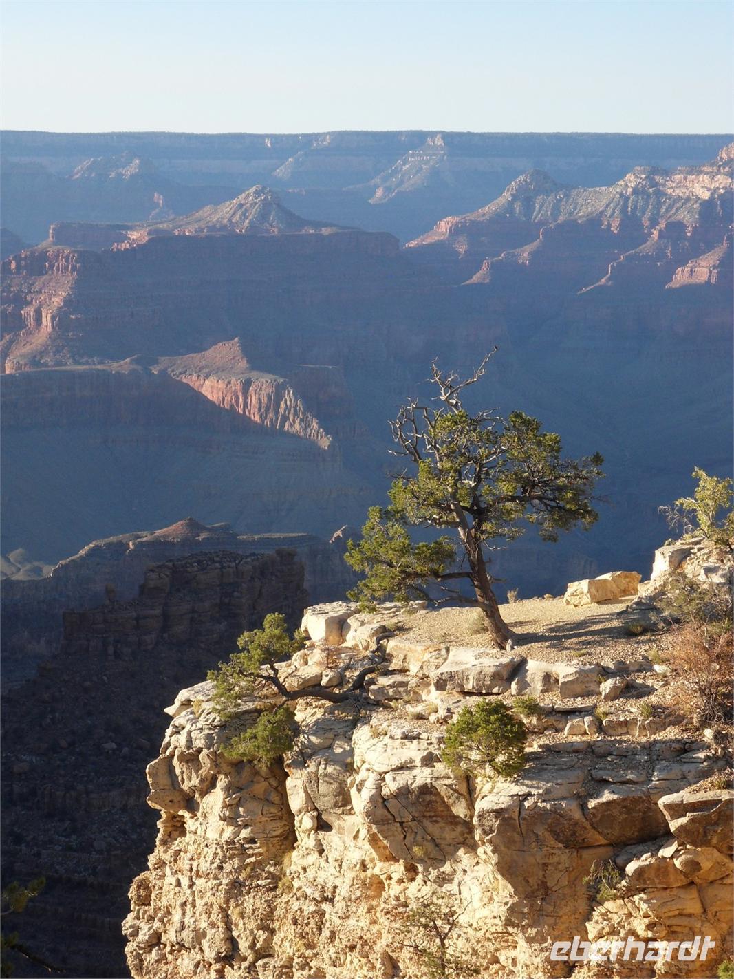Der heutige Morgen begann feucht-fröhlich, denn zum Frühstücksbuffet gehörte hier in Laughlin gleich ein Glas Sekt, was man aber selbstverständlich nicht trinken musste. Mit gepackten Koffern ging es dann weiter über den Colorado-Fluss hinein nach Arizona. Nach einer Buskontrolle fuhren wir u.a. durch den Ort Kingman. Hier gibt es Motels wie in Filmen, wo man sein Auto direkt vor der Zimmertür parken kann, doch diese sollten wir während unserer Rundreise noch öfter sehen. Schließlich hielten wir in Seligman an der Route 66, wo man Souvenirs der berühmten Straße erstehen, aber auch Oldtimer und mit etwas Glück sogar einen Motorradfahrer sehen konnte. Weiter ging es dann zu einem der Höhepunkte der Reise. Auf uns wartete der Grand Canyon, den viele von uns „von oben“ sehen wollten. So wurde unsere Reisegruppe auf 2 Flugzeuge aufgeteilt. Der Rundflug, bei dem wir atemberaubende Ausblicke hatten, dauerte ca. 45 Minuten und war sicher für alle von uns ein unvergessliches Erlebnis. An Nachmittag legten wir dann an einem Supermarkt/Cafeteria eine Mittagspause ein, bevor wir ca. 3 Stunden in gemütlichem Tempo und mit vielen Fotostopps am Grand Canyon entlang spazierten. Als es dunkel wird, machen wir uns auf den kurzen Weg zu unserem Hotel. Nach dem Abendessen hatten wir hier die Möglichkeit, im IMAX-Kino nebenan einen 40-minütigen Film über das Innere des Grand Canyon zu sehen, der beinahe ebenso beeindruckend ist wie das Original vom Rand aus und aus der Luft. Zudem erfuhren wir auch Wissenswertes über die früheren Bewohner des Canyons sowie seine „Entdecker“, die mit Booten zu Expeditionen aufbrachen.
