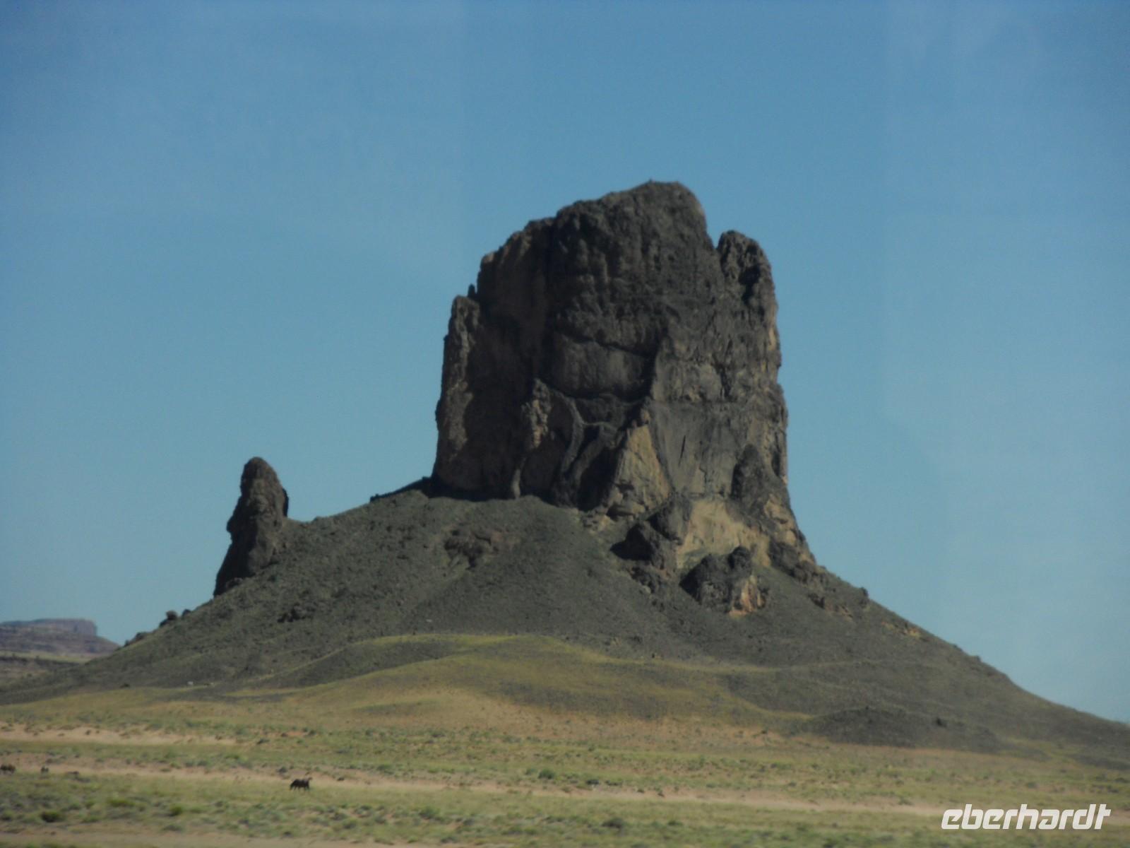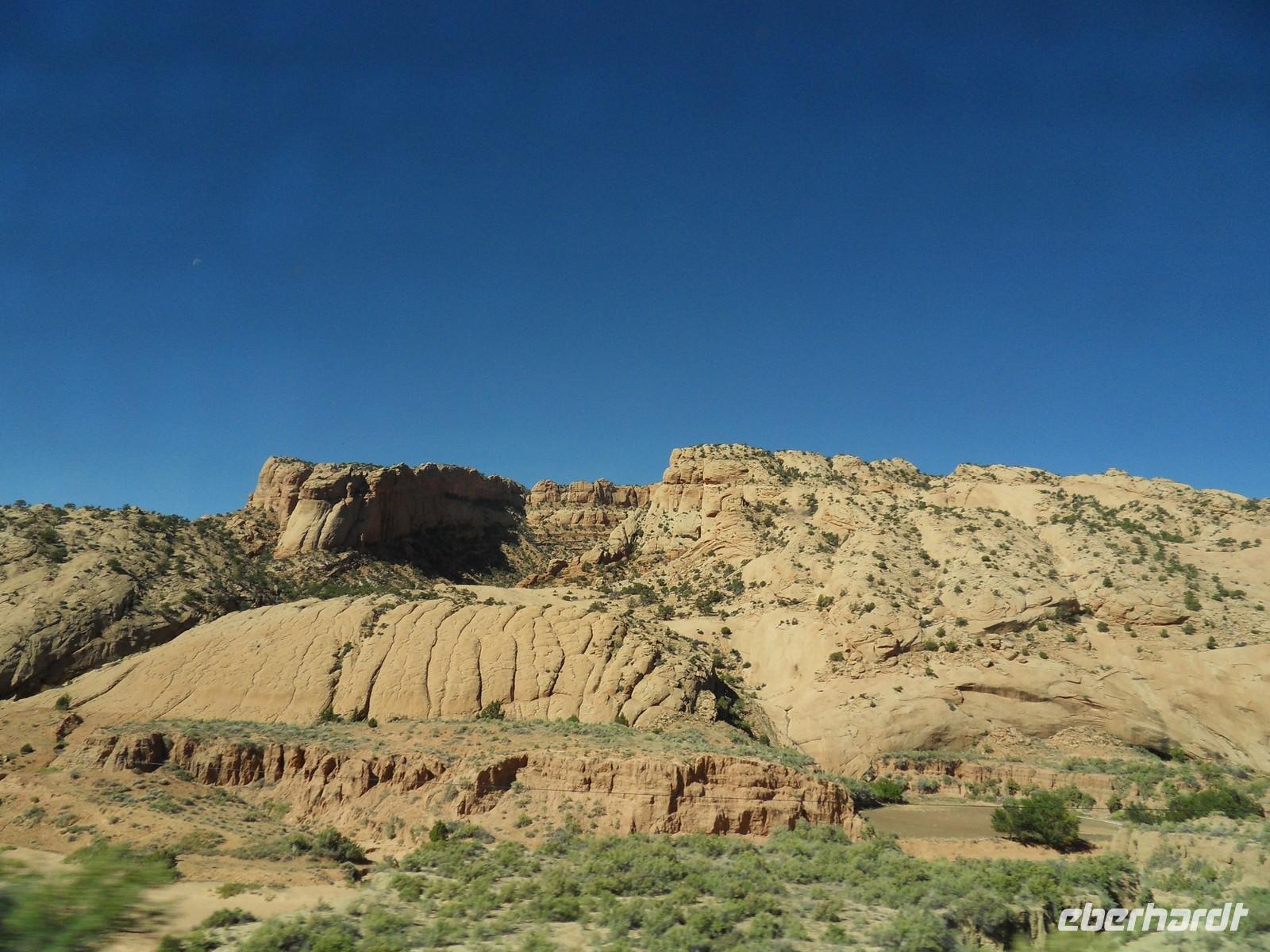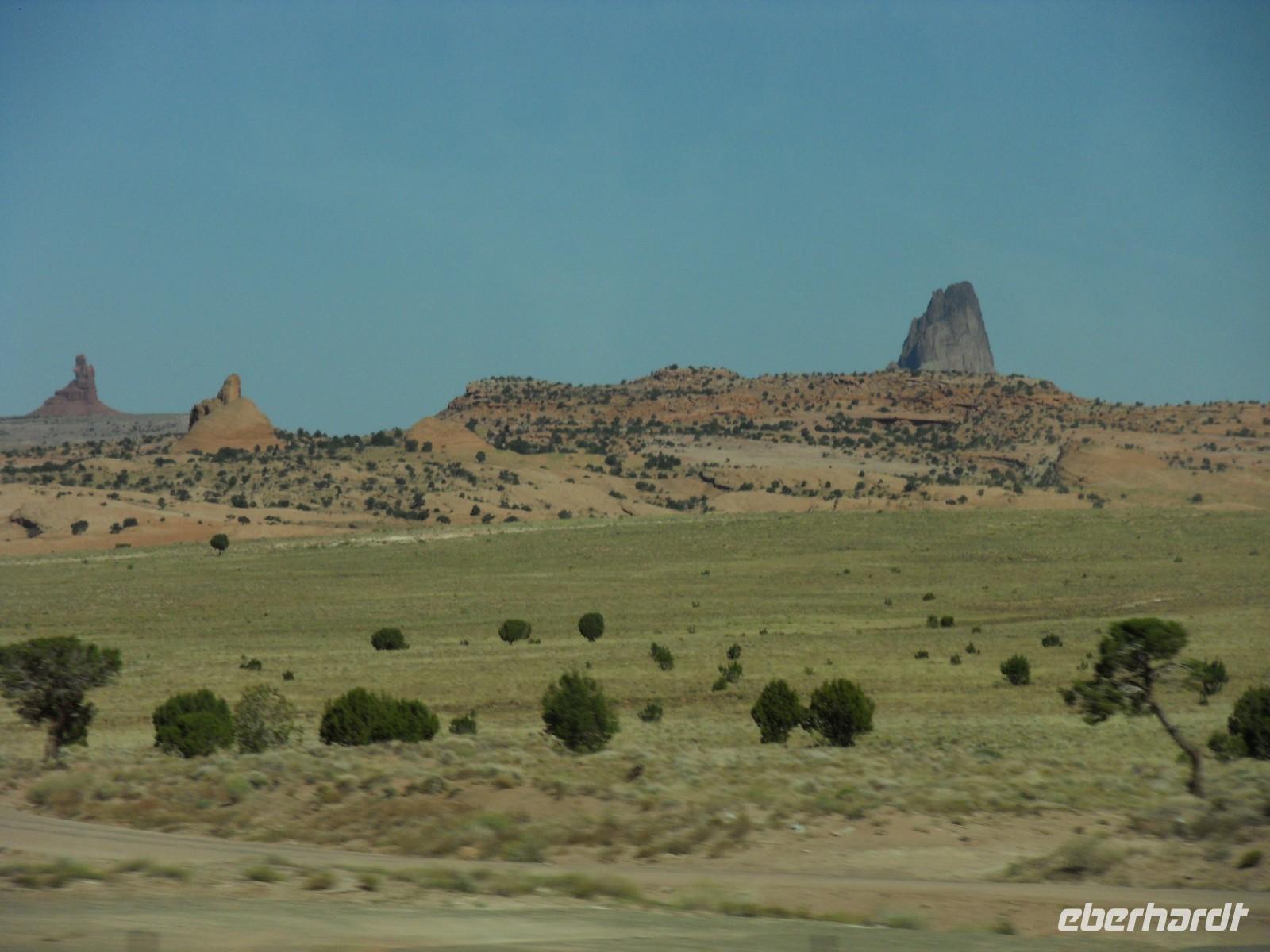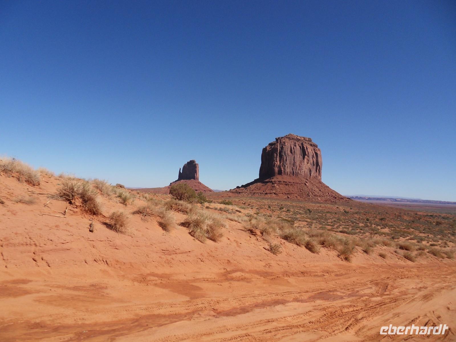 Am Morgen erwartete uns ein erneuter Abstecher zum Grand Canyon, den wir nun wieder in einem ganz anderen Farb- und Lichtspiel bewundern durften. So machten wir einen Stopp am Aussichtspunkt „Desert View“, der auch einen Aussichtsturm besitzt. Danach fuhren wir weiter in Richtung Monument Valley, wobei wir durch das Navajo-Reservat und die sogenannte „painted desert“ mit ihren beeindruckenden Felsformationen und Farbschichten fuhren. Die Fahrt wurde uns von Marguerite zusätzlich verkürzt, indem wir mehr über das Leben der Indianer im Reservat erfuhren und uns danach passend zur Landschaft traditionelle indianische Musik sowie Westernfilmtitel anhörten. Im Monument Valley angekommen, dass sich im Bundesstaat Utah befindet, stiegen wir auf zwei Jeeps um, mit denen uns zwei Navajo-Indianer näher an die tollen Felsformationen brachten. Direkt an einer riesigen Felswand gab es dann zum Mittag ein Essen der Indianer: frittierte Brote mit Bohnen, Käse, Tomaten, Oliven und Zwiebeln. Unser letzter Fotostopp bringt uns zur Aussicht, die uns aus der Werbung nur allzu bekannt vorkommt: für 2 US-Dollar kann man sich hier mit Lasso und Cowboyhut ganz wie der „Marlboro-Mann“ auf einem Pferd fotografieren lassen. Nachdem ich einige unserer Gäste dabei fotografiert hatte, wollte ich selbst auch ein solches Bild, doch leider verletzte ich mir beim Aufsteigen das Knie, so dass ich nach einem Krankenhausbesuch am nächsten Tag die Reisegruppe nun für die restlichen Tage mit Kniebandage und auf Krücken begleitete. Mit den Jeeps fahren wir zurück zum Ausgangspunkt, wo Dennis mit dem Bus auf uns wartet. Im Dunkeln erreichen wir die typisch amerikanische Bar „Frankie D‘s“ in Moab, wo wir heute unser Abendessen einnehmen. Hier werden uns riesige Steaks serviert und viele unserer Gäste freuen sich, dass sie auch einmal eine typische Bar von innen sehen. Danach fahren wir nur noch wenige Minuten bis zu unserem Hotel Aarchway Inn, wo wir die nächsten zwei Nächte bleiben.