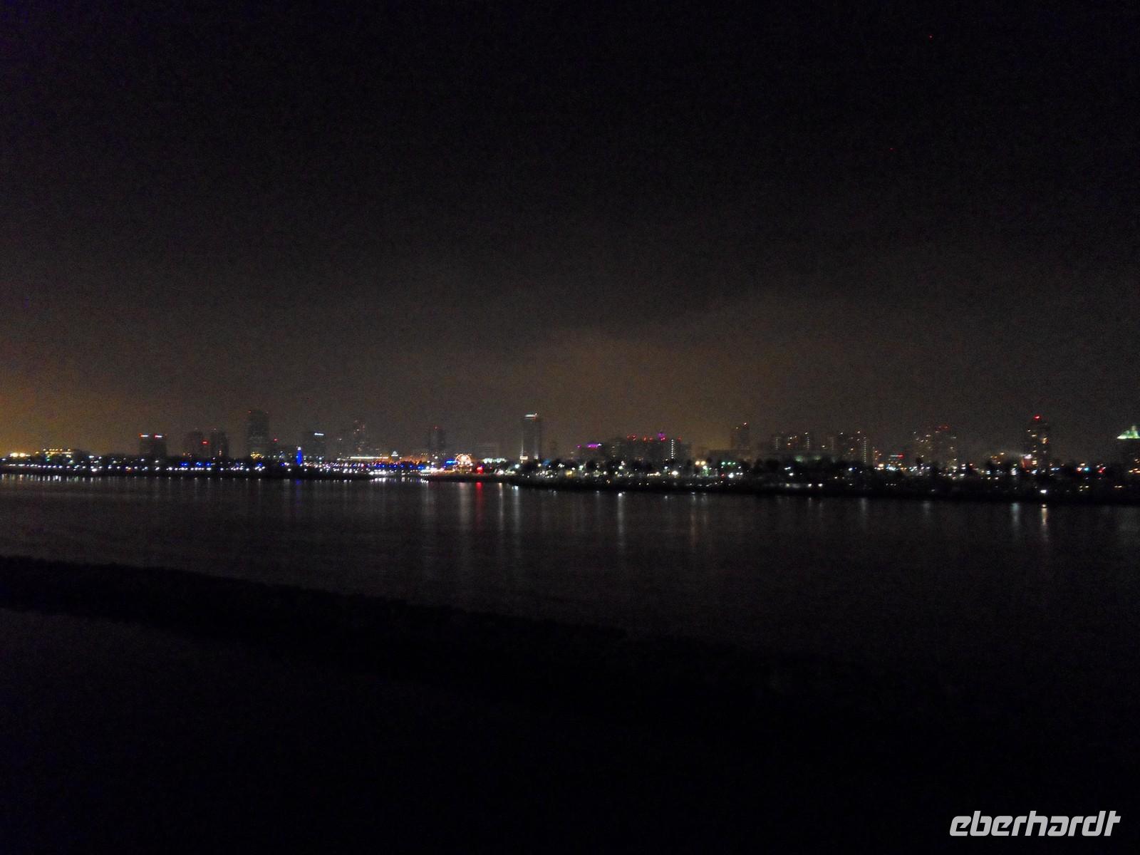 Der erste Morgen in Amerika begann mit einem leckeren Frühstück auf dem Promenadendeck, doch leider hing der Nebel noch zu tief, so dass der Ausblick auf Los Angeles leider nicht vielversprechend aussah. Doch kaum waren wir unterwegs in die Stadt, zog der Himmel auf, um uns mit feinstem kalifornischen Wetter gütlich zu stimmen. Wie unsere örtliche Reiseleiterin Marguerite erklärte, sei es jeden Morgen so nebelig, da kalte Luft vom Pazifik hereinkäme, so dass sich erst am Vormittag die Sicht bessert und man letzten Endes ein Klima hat, dass dem in Südfrankreich sehr ähnlich ist. Wir erfahren aber auch mehr über unser Hotelschiff, die Queen Mary, die 1936 erstmals in See stach und insgesamt 1001 Atlantiküberquerungen gemeistert hat. Über den Freeway, in unserem Fall einem 5-spurigen Highway, fahren wir nach L.A., dass eigentlich aus 86 kleinen Städtchen besteht. Da wir auch nicht alleine in einem Auto fahren, dürfen wir guten Gewissens die „Diamant-Lane“ benutzen. Zuerst fahren wir nach Hollywood, wo wir den berühmten Schriftzug auf dem Hügel sehen können, aber auch vorbei am Kodak Theater (berühmt als Veranstaltungsort der Oscar-Verleihungen) zum Walk of Fame kommen. Hier haben wir etwas Freizeit, um uns nach den Sternen bekannter Schauspieler, Musiker oder Regisseure umzuschauen. Vor dem Man’s Chinese Theater konnten wir auch die berühmten Hand- und Fußabdrücke, z.B. von Bette Davis oder Fred Astaire, entdecken. Am Nachmittag hatten wir dann die Wahl zwischen dem Besuch der Universal-Filmstudios oder Santa Monica mit seinen berühmten Stränden. Abends ging es dann gemeinsam nach Beverly Hills, wo wir am Rodeo Drive vorbei an zahllosen Edelboutiquen und Designer-Läden entlang fuhren. Hier konnte man sich wie „Pretty Woman“ höchstpersönlich fühlen. Gleich nebenan wurden wir im Restaurant McCornick zum Abendessen in gemütlicher Atmosphäre erwartet. Bei einer Auswahl zwischen 3 Hauptgerichten war auch hier für jeden etwas dabei. Im Anschluss wurden wir gut gesättigt von unserem Busfahrer Dennis zurück zur Queen Mary gefahren.
