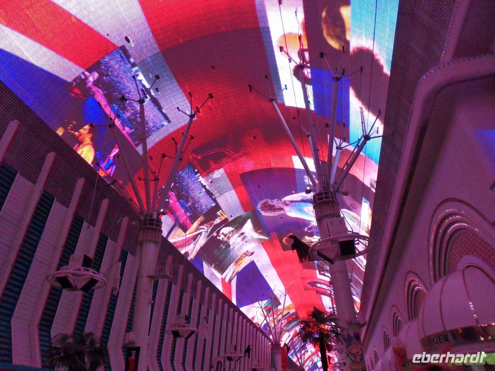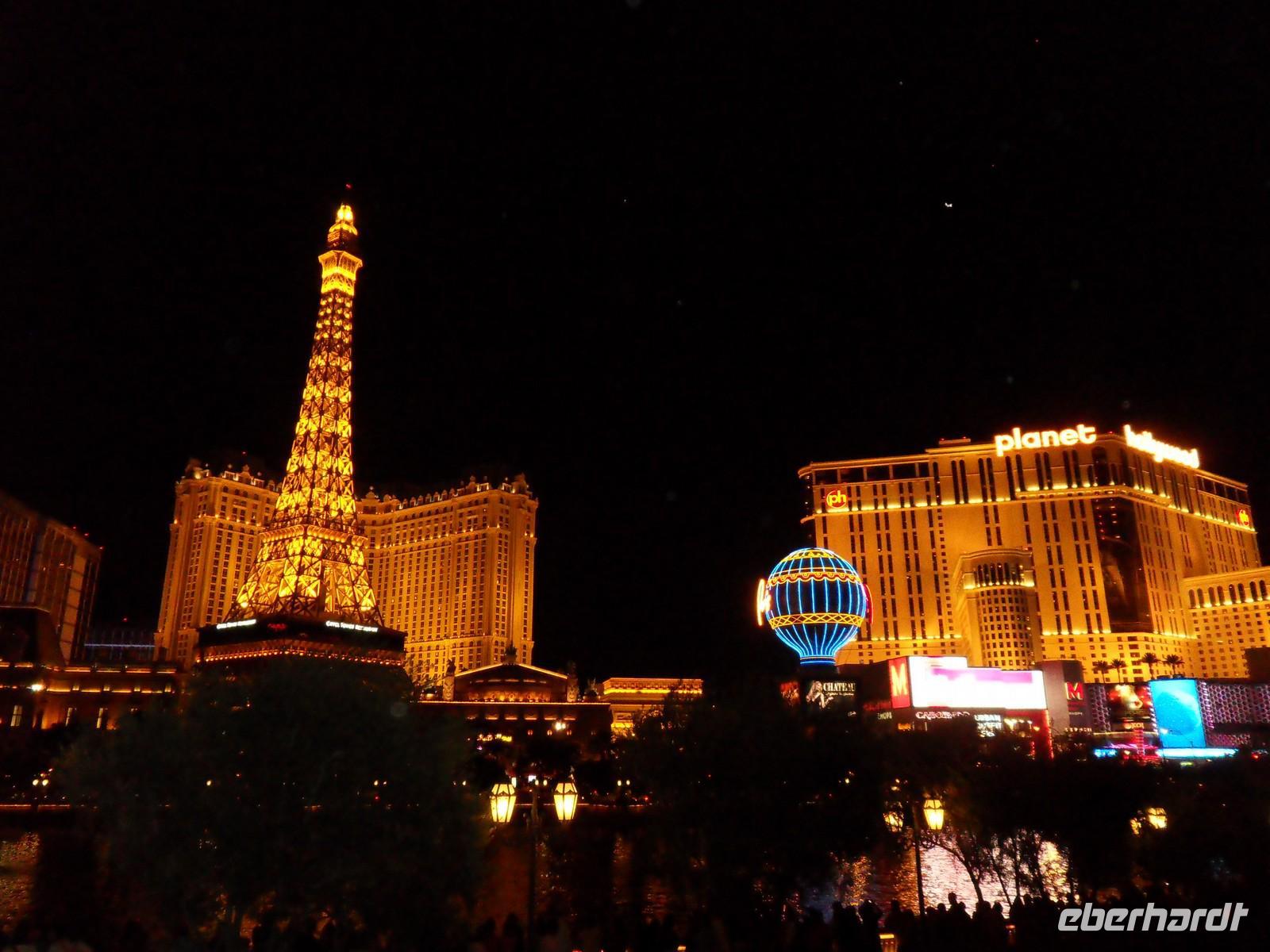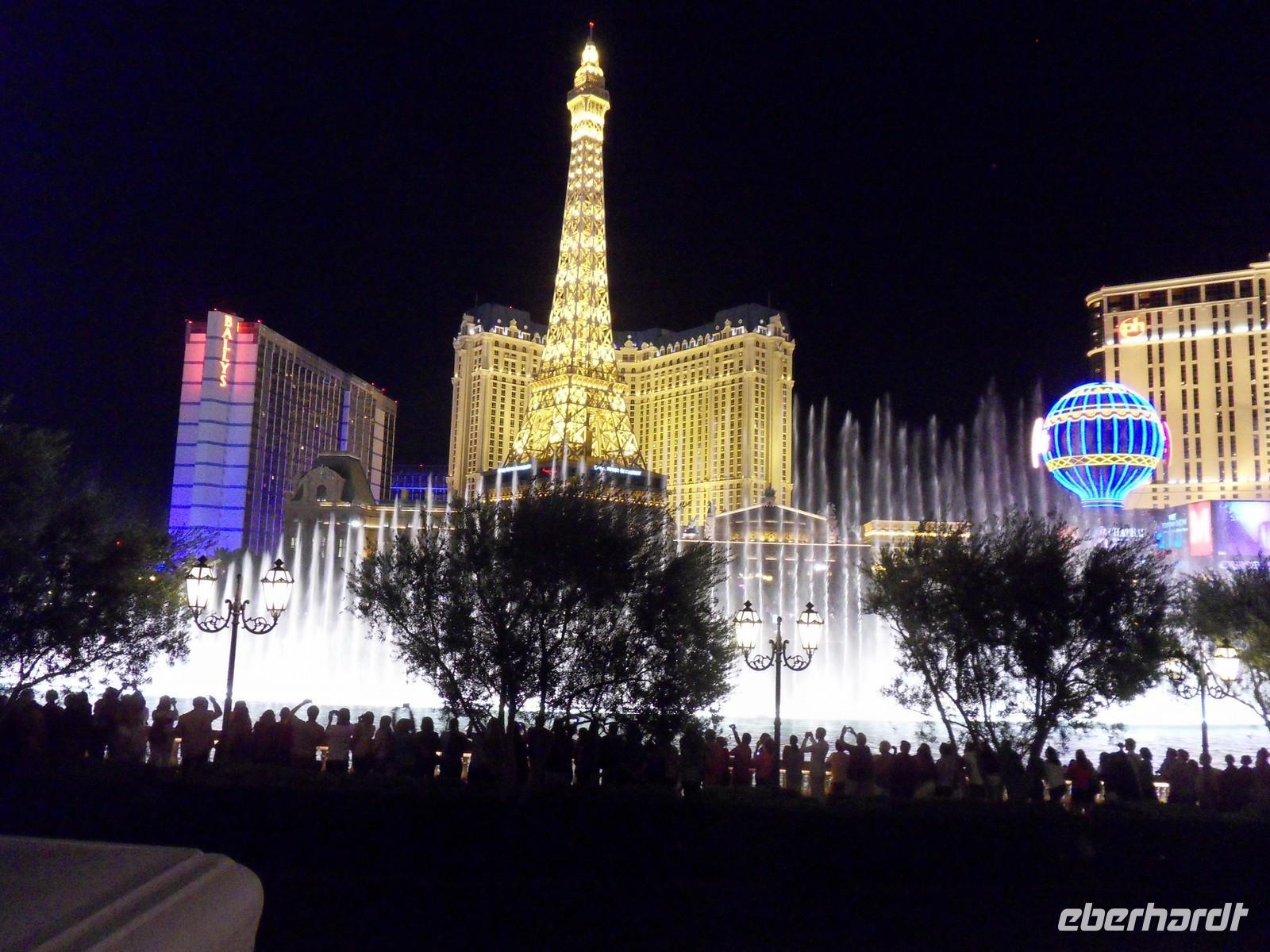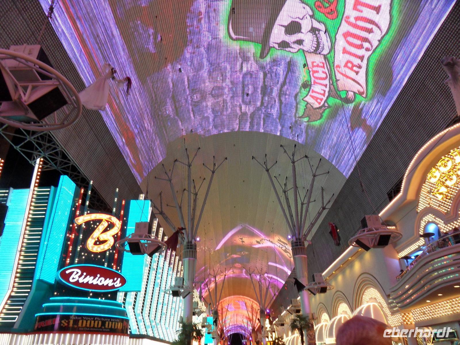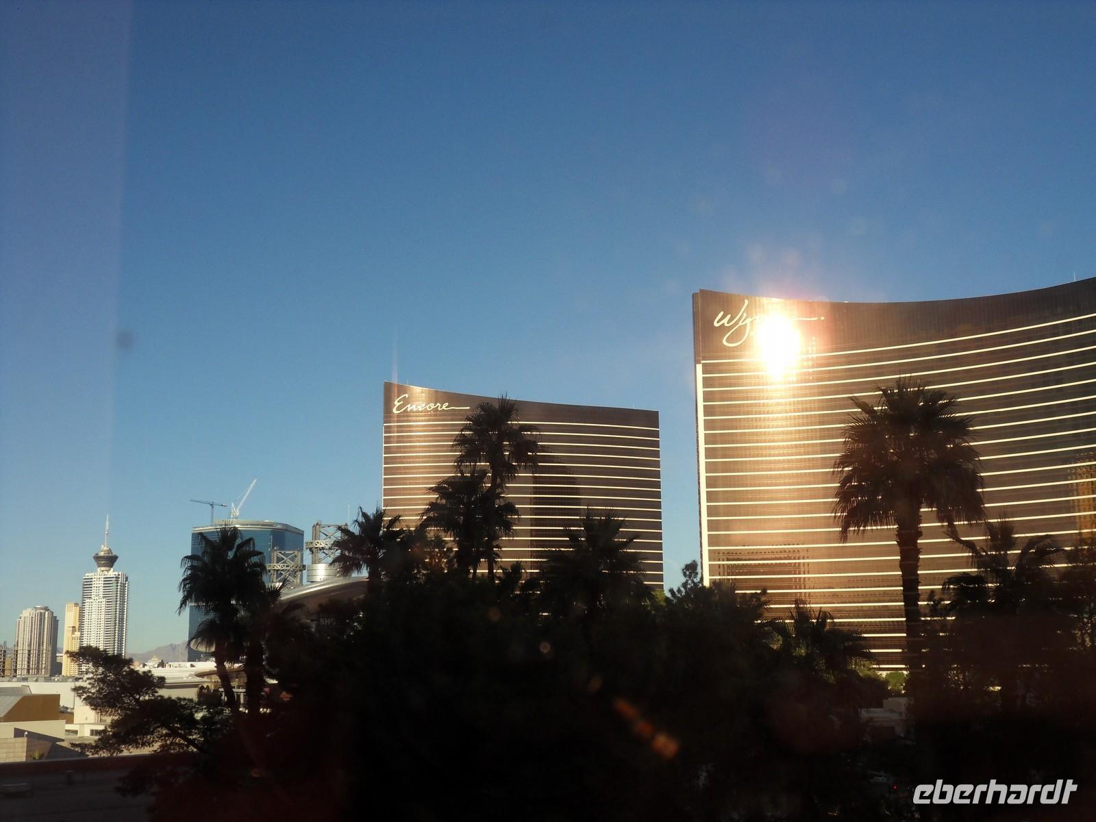 Nach dem Frühstück fuhren wir heute in den Zion-Nationalpark. Am „Checkerboard Mesa“ legten wir einen Fotostopp ein, so dass wir auch hier wieder andere Felsarten fotografisch festhalten konnten. Danach fuhren wir langsam durch die engen Straßen des Nationalparks. Unterwegs entdeckten wir „Schafe mit großen Hörnern“, die aber leider immer viel zu schnell verschwunden waren, sei es, weil sie sich versteckten oder weil der Bus dort nicht für ein Foto halten konnte. Nach der Fahrt durch einen zwei Kilometer langen Tunnel wurden wir dafür mit dem Blick auf den „großen weißen Thron“, einen riesigen Felsen, belohnt. Bei einem Fotostopp konnten wir so auch einen Kletterer an einer steilen Felswand entdecken, in der wir gerade den Tunnel durchquert hatten. An einer Raststätte am Zion-Nationalpark legten wir eine kleine Mittagspause ein, wobei wir aber kaum etwas gegessen haben, denn heute Abend wartete ein zeitiges Abendessen in Las Vegas auf uns. Die dreistündige Fahrt verkürzte uns Marguerite, in dem sie uns von der amerikanischen Tradition des „Thanksgiving“ und von Pocahontas erzählte. In Las Vegas angekommen besuchten wir das Outlet-Center am Rande der Stadt, wo viele Gäste die Gelegenheit nutzen um bei Levi’s nach Jeanshosen für sich oder ihre Lieben daheim zu schauen. Am Nachmittag erreichten wir dann unser Hotel Treasure Island, doch leider waren bei unserer Ankunft nur die Hälfte aller Zimmer bezugsfertig, so dass einige Gäste ca. 30 Minuten auf ihre Zimmerschlüssel warten mussten. 17.30 Uhr trafen wir uns dann zum Abendessen, wobei wir von einer riesigen Buffetauswahl überrascht wurden. So gestärkt konnte unsere Las Vegas-bei-Nacht-Tour beginnen. Zunächst zu Fuß liefen wir zu den Hotels, die unserem nahe waren. Dabei sahen wir das Wynn-Hotel, das Palazzo-Hotel, das Venetian mit dem künstlichen Himmel über den Gassen und Kanälen von Venedig, und später dann mit dem Bus das Märchenschloss Excalibur, die „ägyptische“ Pyramide des Hotels Luxor, aber auch die Fontänenshow vor dem Hotel Bellagio, von wo aus man einen tollen Blick auf den Eiffelturm hat. Anschließend fuhren wir entlang des „Strip“ vorbei an den zahlreichen Hochzeitskapellen und dem Stratosphere Tower bis nach Downtown zur Freemont Street. Hier sehen wir auf einer riesigen, die Einkaufsstraße überspannenden Leinwand eine tolle Show zur Band Queen, wobei natürlich auch Klassiker wie „We are the champions“ und „We will rock you“ nicht fehlen durften. Gut gelaunt fuhren wir nach ca. vierstündiger Tour durch Las Vegas zurück zum Hotel.