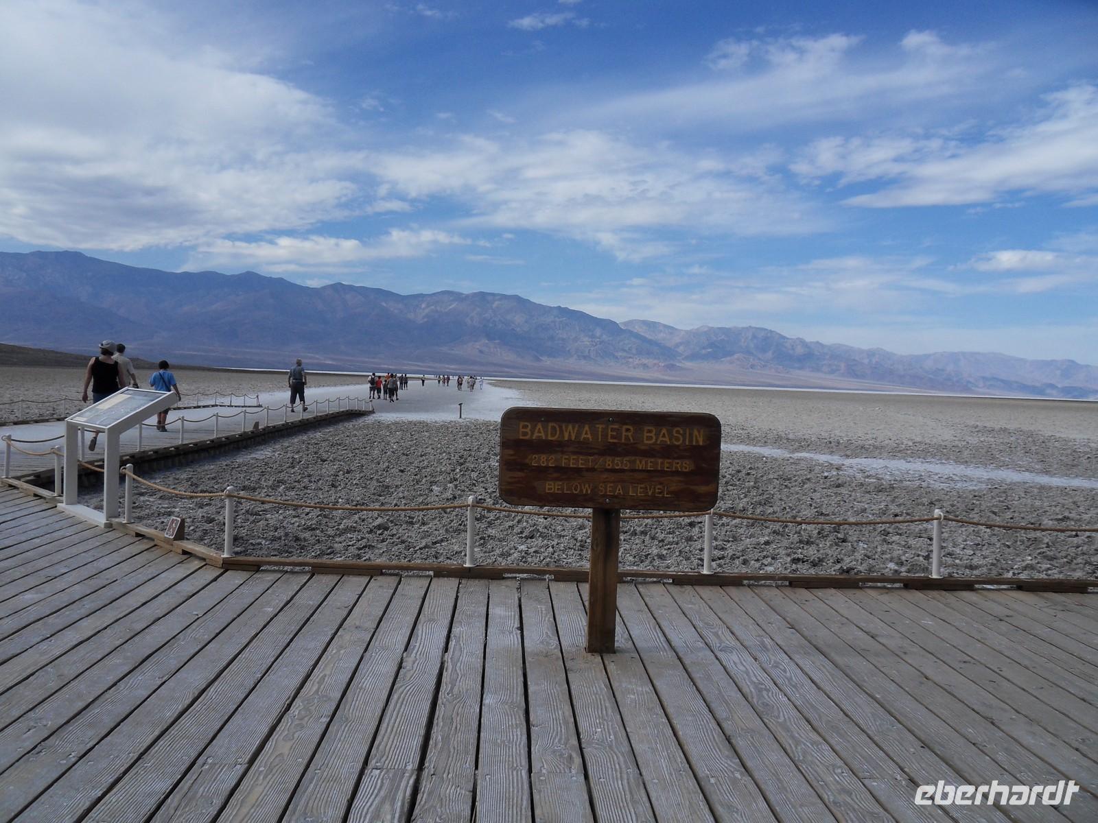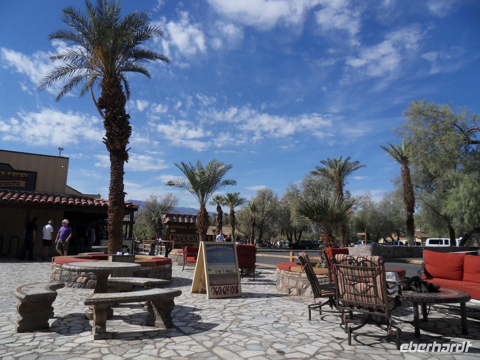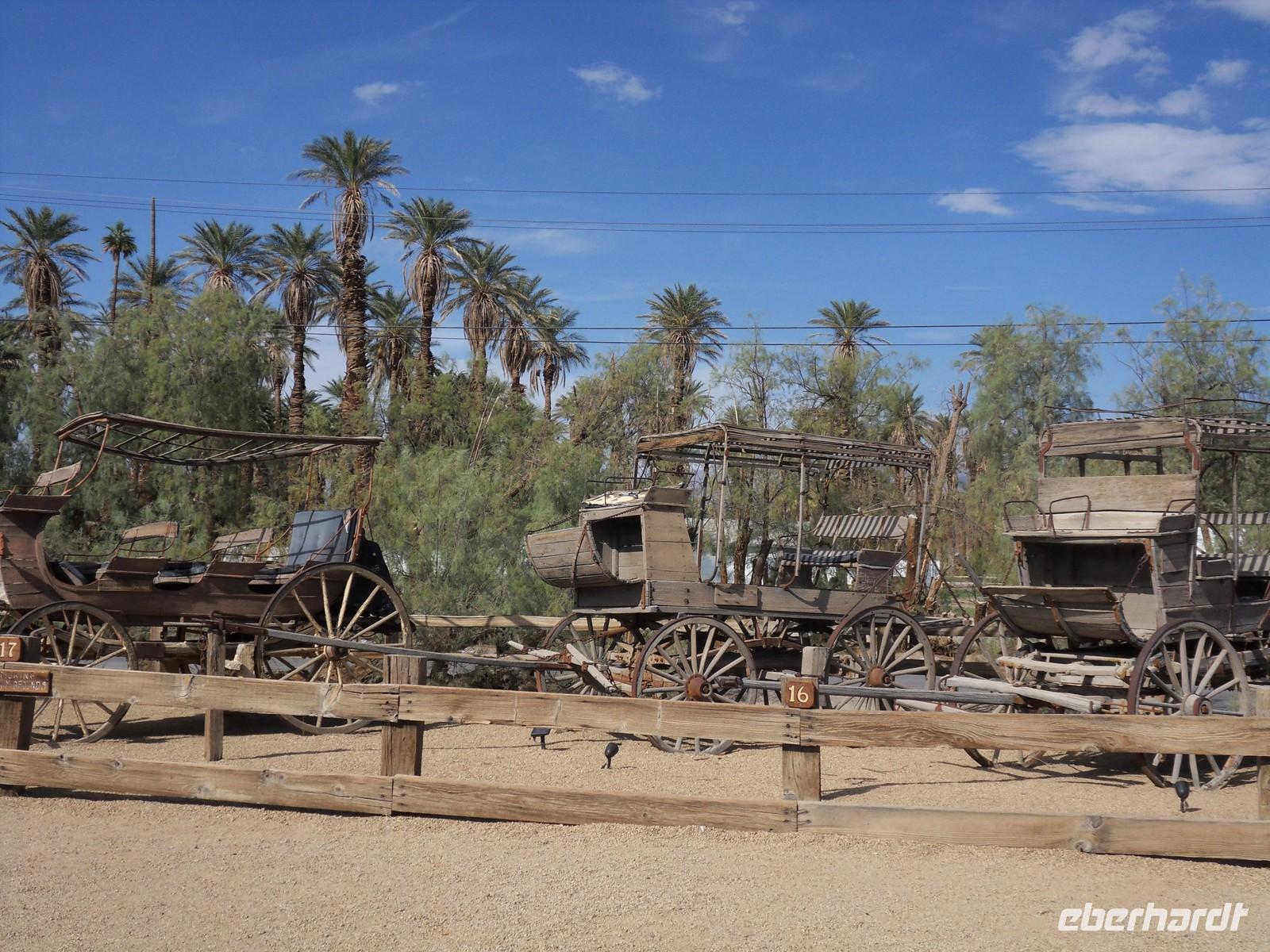 Leider mussten wir uns heute schon wieder von Las Vegas verabschieden. Am Vormittag fuhren wir zunächst nach Pahrump, wo wir uns in einem Supermarkt Verpflegung für die Mittagspause holen konnten. Anschließend ging es weiter zum heißesten und trockensten Tal der USA, dem Tal des Todes. Am Zabriskie Point legten wir einen Fotostopp ein, von wo aus man einen tollen Blick auf das „Death Valley“ hatte. Weiter ging es danach zum Badwater Point, dem tiefsten Punkt der USA 86 Meter unter dem Meeresspiegel. Hier konnte man auf einer „Salzstraße“ laufen und an Informationstafeln noch mehr über die Temperaturen im Tal des Todes oder die Salzablagerungen erfahren. Am frühen Nachmittag erreichten wir die Furnace Creek Ranch, wo wir unsere Mittagspause machten. Neben einem Restaurant konnte man hier auch in einem Geschäft stöbern oder sich auf dem Gelände alte Planwagen und Landwirtschaftsgegenstände anschauen. Die anschließende lange Fahrtstrecke bis Bakersfield verging dank Musikuntermalung und dem Touristengebet auch einigermaßen zügig, doch waren wir auch froh, endlich im Trout’s angekommen zu sein, wo wir am heutigen Abend unterhalten und verköstigt werden sollten. Der Chef grillte dazu hinter der Theke selbst die Steaks und dazu gab es Brötchen, Bohnen und Salat. Obwohl die Steaks nicht die besten waren, wurde der Abend durch die Countrymusik-Karaoke der Stammgäste und Mitarbeiter der Bar ein voller Erfolg. Die Musik war so mitreißend, dass fast alle Gäste über mehrere Stunden hinweg das Tanzbein schwangen. Nach einer kurzen Fahrt von 20 Minuten erreichten wir am späten Abend unser Hotel in Bakersfield.