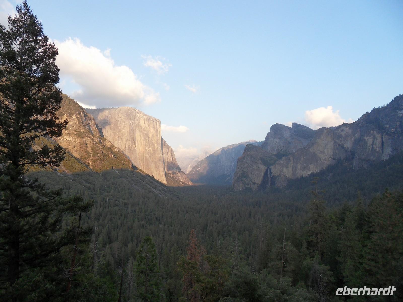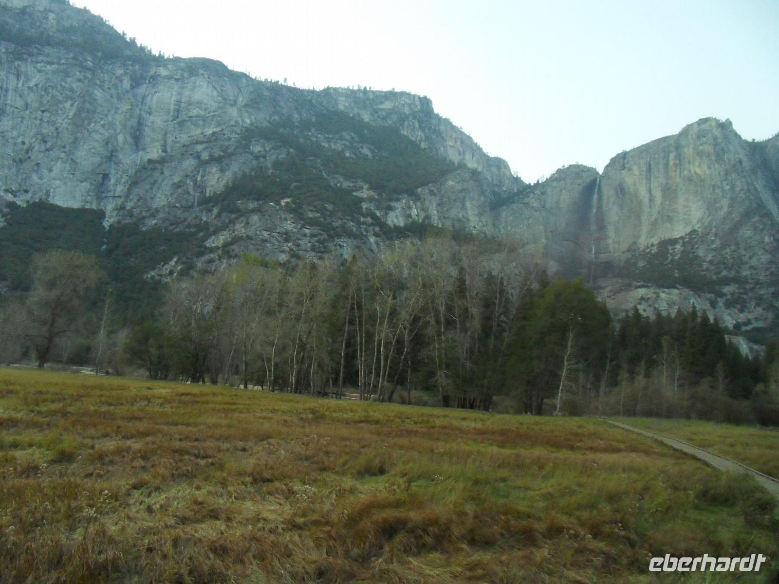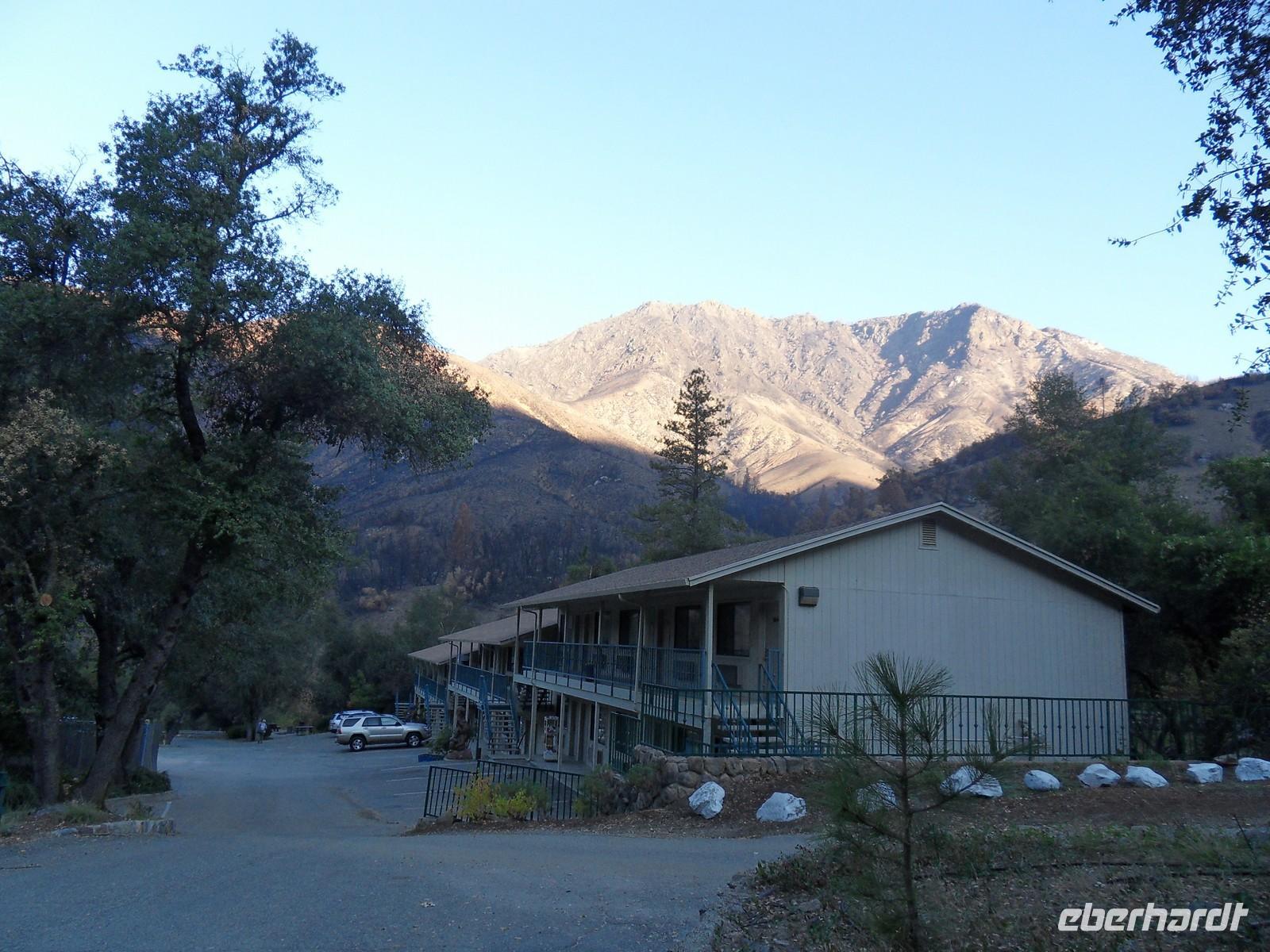 Das Frühstück fand heute für uns ungewöhnlich in einer Art Konferenzsaal statt. Dank Marguerite gab es aber keine Eier und Speck, sondern zur Abwechslung verschiedene Käsesorten und Obst sowie Toast. Dann ging es los in Richtung des nächsten und letzten Nationalparks auf unserer Liste - es wartete der Yosemite-Nationalpark. Auf dem Weg dahin erzählt uns Marguerite mehr über die Landwirtschaft in Kalifornien, aber auch über die Bürgerrechtsbewegung in den USA. An einer kleinen Käsefabrik (Bravo Farms) legen wir eine kleine Pause ein. Gegen Mittag erreichen wir den Supermarkt Raley’s, wo Dennis und Marguerite alles Nötige für ein leckeres Picknick im Yosemite-Nationalpark einkaufen. Im Nationalpark angekommen nehmen wir einen örtlichen Shuttlebus, der uns in die Nähe der Mammutbäume bringt, von wo aus es noch ein ganzes Stück bergauf geht, doch auch unterwegs sind immer wieder noch stehende oder schon umgestürzte Mammutbäume zu bestaunen. Am Nachmittag sind wir wieder da, wo wir unseren Bus verlassen hatten, doch es war nicht wiederzuerkennen. In unserer Abwesenheit hatte Dennis, unser Busfahrer, alles für ein unvergessliches Picknick ausgepackt und die Grills angeworfen. So konnten wir mitten in der Natur, aber doch an Tischen und auf Bänken sitzend, ein grandioses Picknick mit Steaks, frischem Salat, leckerem Baguette und Wein genießen. Nach dem Picknick fuhren wir dann weiter durch den Nationalpark und machten noch Fotostopps, so dass wir z.B. den „Kapitän“, oder den Wasserfall „Brautschleier“ sehen und festhalten konnten. Im Dunkeln erreichten wir unser Hotel, das Cedar Lodge Resort, wo man den Abend zum Ausruhen, für einen kleinen Spaziergang oder für ein Getränk im Haupthaus nutzen konnte.