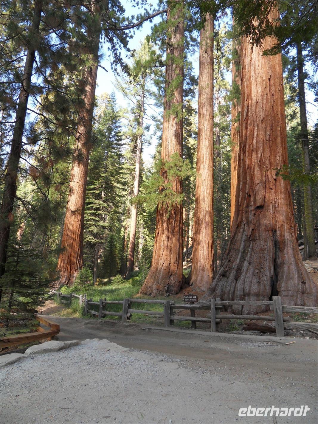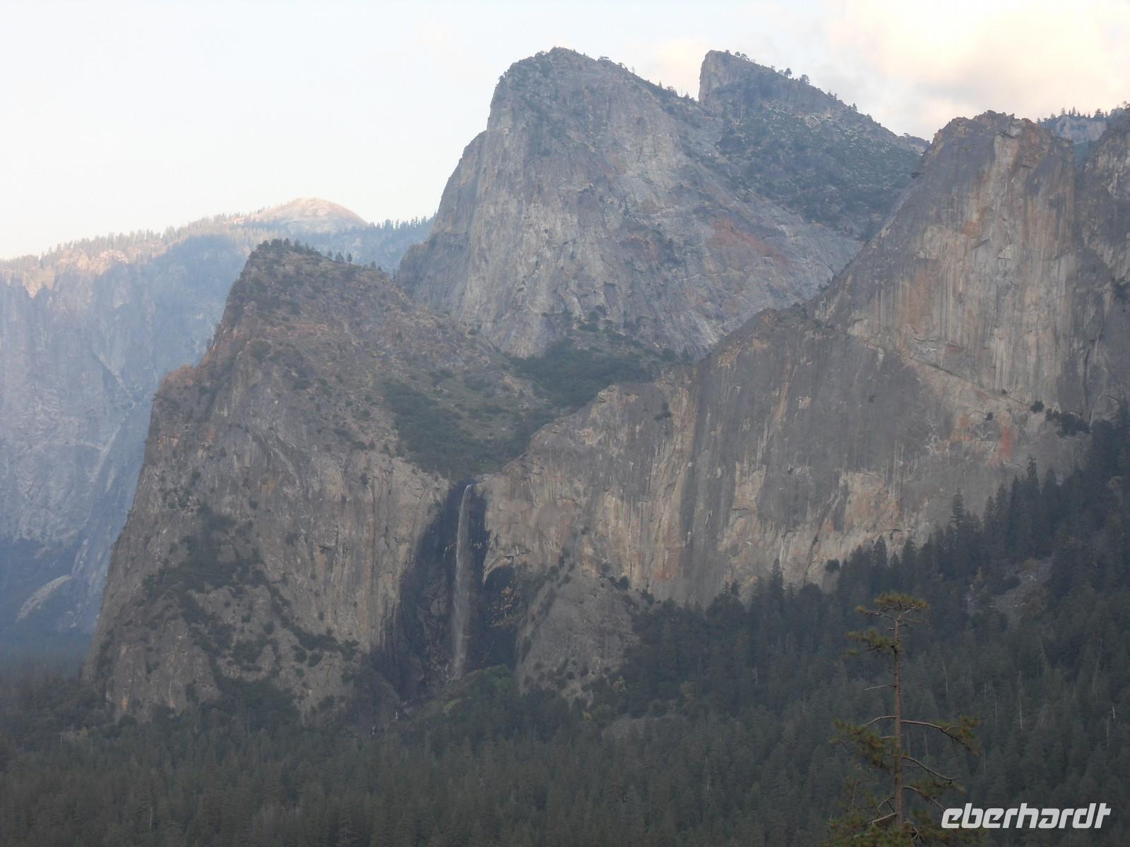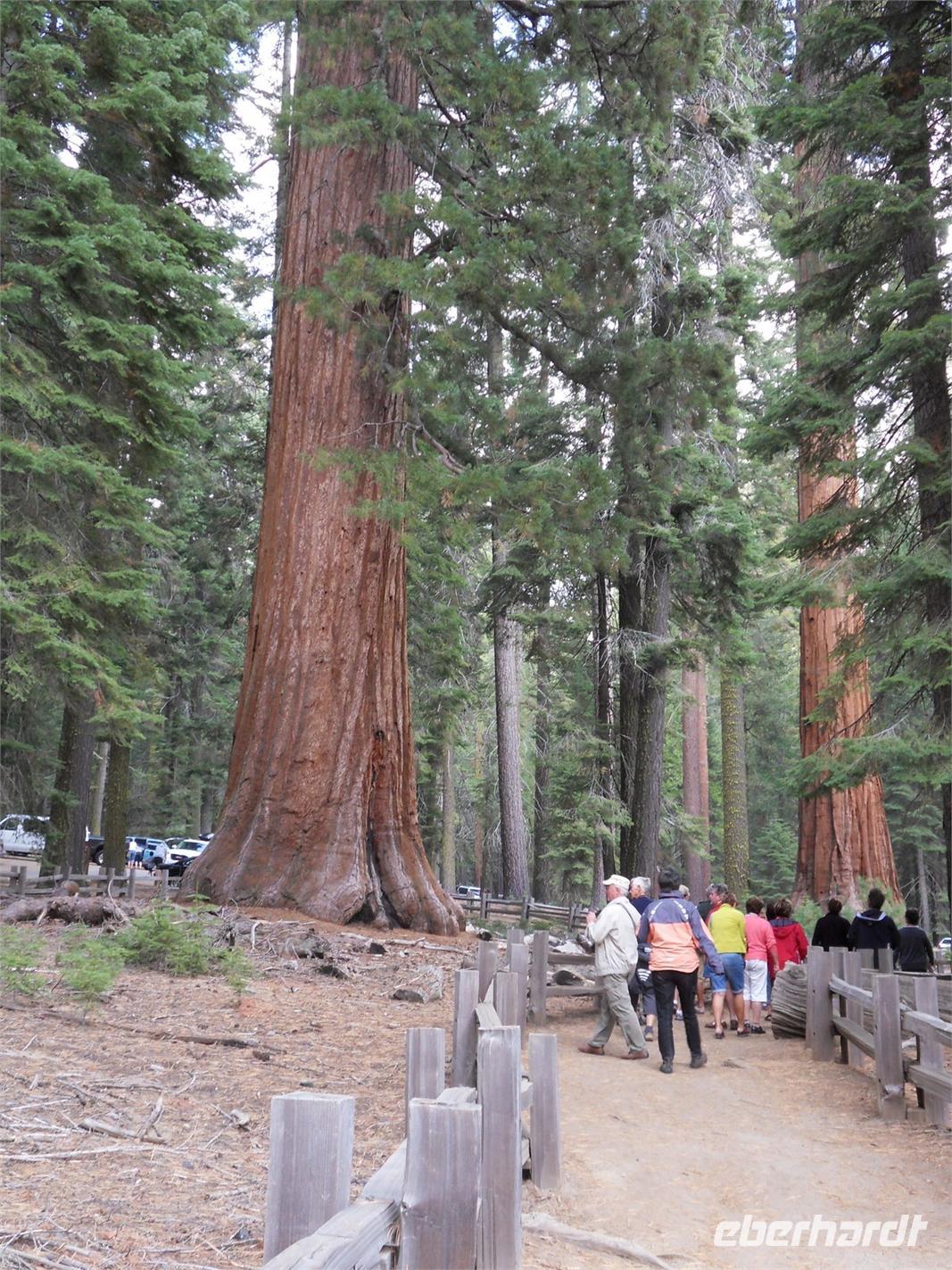 Das Frühstück fand heute für uns ungewöhnlich in einer Art Konferenzsaal statt. Dank Marguerite gab es aber keine Eier und Speck, sondern zur Abwechslung verschiedene Käsesorten und Obst sowie Toast. Dann ging es los in Richtung des nächsten und letzten Nationalparks auf unserer Liste - es wartete der Yosemite-Nationalpark. Auf dem Weg dahin erzählt uns Marguerite mehr über die Landwirtschaft in Kalifornien, aber auch über die Bürgerrechtsbewegung in den USA. An einer kleinen Käsefabrik (Bravo Farms) legen wir eine kleine Pause ein. Gegen Mittag erreichen wir den Supermarkt Raley’s, wo Dennis und Marguerite alles Nötige für ein leckeres Picknick im Yosemite-Nationalpark einkaufen. Im Nationalpark angekommen nehmen wir einen örtlichen Shuttlebus, der uns in die Nähe der Mammutbäume bringt, von wo aus es noch ein ganzes Stück bergauf geht, doch auch unterwegs sind immer wieder noch stehende oder schon umgestürzte Mammutbäume zu bestaunen. Am Nachmittag sind wir wieder da, wo wir unseren Bus verlassen hatten, doch es war nicht wiederzuerkennen. In unserer Abwesenheit hatte Dennis, unser Busfahrer, alles für ein unvergessliches Picknick ausgepackt und die Grills angeworfen. So konnten wir mitten in der Natur, aber doch an Tischen und auf Bänken sitzend, ein grandioses Picknick mit Steaks, frischem Salat, leckerem Baguette und Wein genießen. Nach dem Picknick fuhren wir dann weiter durch den Nationalpark und machten noch Fotostopps, so dass wir z.B. den „Kapitän“, oder den Wasserfall „Brautschleier“ sehen und festhalten konnten. Im Dunkeln erreichten wir unser Hotel, das Cedar Lodge Resort, wo man den Abend zum Ausruhen, für einen kleinen Spaziergang oder für ein Getränk im Haupthaus nutzen konnte.