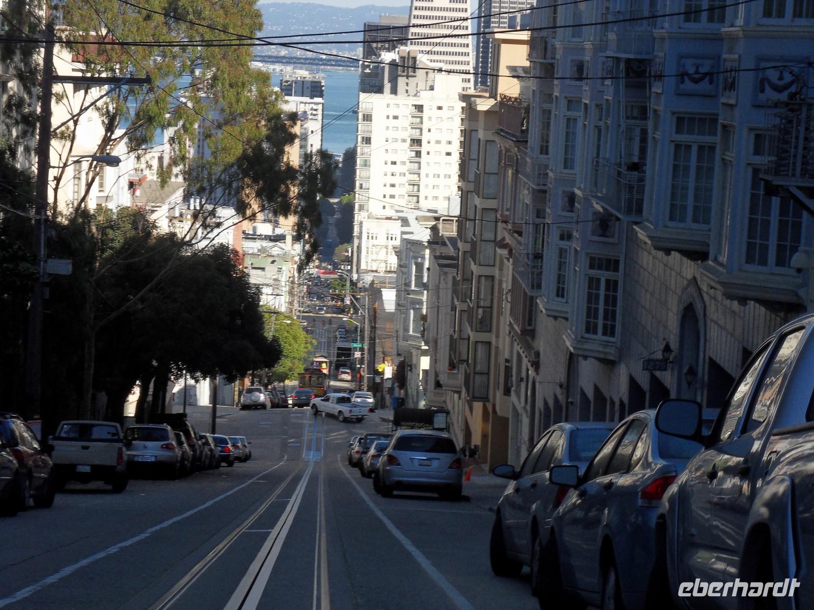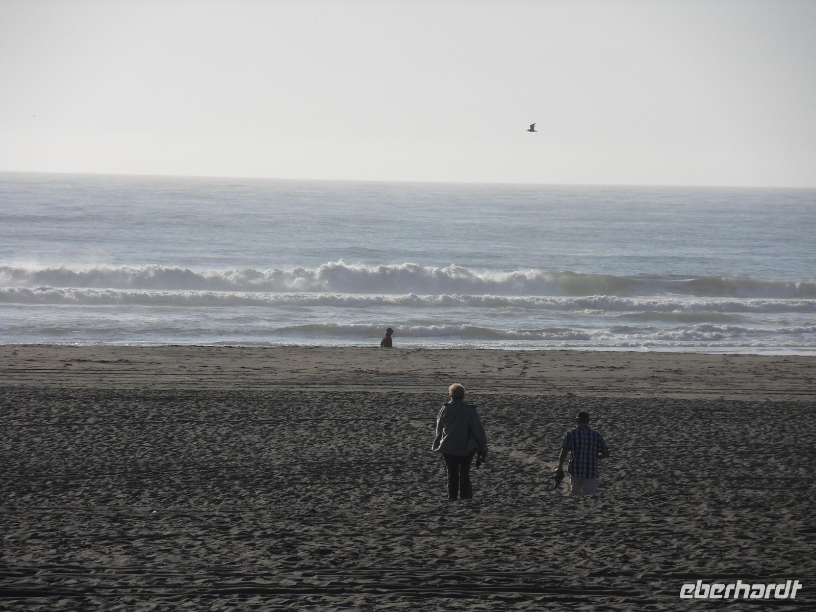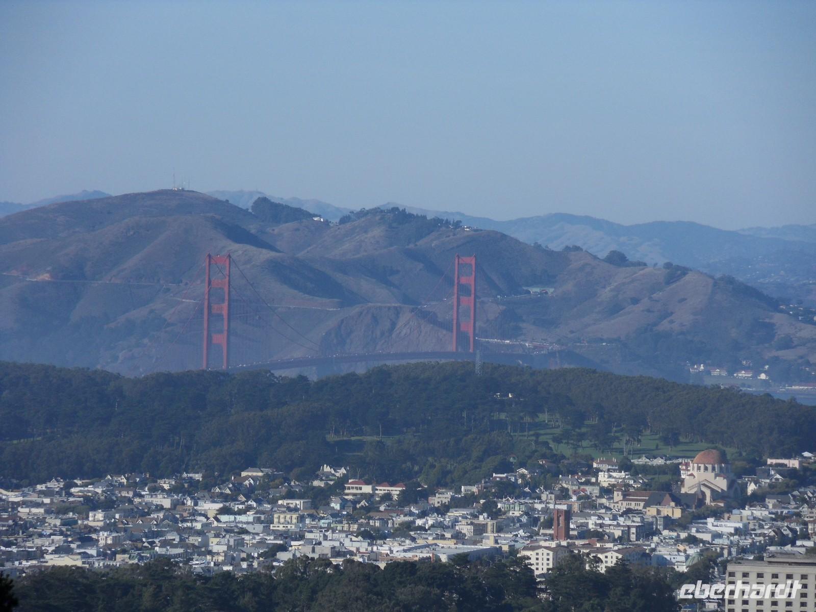 Nach dem Frühstück und einem tollen Blick auf die sonnenangestrahlten Bergkuppen machten wir uns am Morgen auf den Weg nach San Francisco, der letzten Station unserer Rundreise. Marguerite erzählt uns schon unterwegs über die erste Besiedlung des Gebietes, den Goldrausch 1849 und auch die allen bekannte und für San Francisco sehr prägende Hippie-Zeit. Schließlich ist es soweit: wir fahren über die 13 km lange Oakland Bay Bridge nach San Francisco und haben von der Brücke einen tollen Blick sowohl auf die Bucht, auf die Stadt selbst und auch auf die Gefängnisinsel Alcatraz. Am Fährgebäude (Ferry Building) neben Pier 2 machen wir unsere Mittagspause und können hier frisches Brot oder ein Sandwich kaufen, dass bei frischer Meeresluft und in der Sonne gleich noch viel besser schmeckt. Danach beginnen wir mit der Stadtrundfahrt. So sehen wir das Geschäftsviertel mit den Banken und der Trans-Amerika-Pyramide, den Alamo Square mit den „Painted Ladies“ sowie Teile des Hippieviertels „Haight-Ashbury“. Weiter geht es auf die Twin Peaks - die Zwillingsspitzen, von wo aus wir eine tolle Aussicht über die ganze Stadt bis zur Golden Gate Brücke und darüber hinaus haben. Der letzte Punkt der Stadtrundfahrt ist ein Stopp am Pazifikstrand, wo wir nicht nur die Strandpatrouille sehen, sondern einige mutige Gäste auch ihre Zehen ins kalte Wasser halten. Dann geht es zunächst einmal zum Hotel, wo wir in Ruhe unsere Zimmer beziehen und uns frisch machen konnten, bevor wir zum Abendessen nach Chinatown fuhren. Hier wurden uns verschiedenste Speisen auf einer Drehplatte serviert, die uns sehr gut schmeckten. Zum Nachtisch gab es für jeden Gast auch einen Glückskeks. Nach dem Essen unternahmen wir einen kleinen Spaziergang - zum Glück bergab - bis zum Bus, der uns dann nach einem weiteren Tag voller Eindrücke wieder zu unserem Hotel brachte.