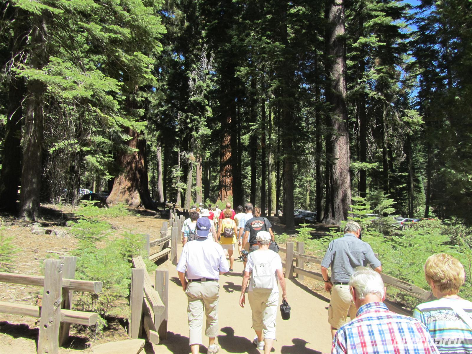 Kurz nach 8 Uhr startet unsere nächste Etappe zum Yosemite Nationalpark. Auf der 3stündigen kaufen wir in einem riesigen Supermarkt für unser heutiges Picknick ein. Kurze Zeit später passieren wir den Eingang des Parks. Wir steigen in einen anderen Bus um, der uns zu den gigantischen teilweise 3000 Jahre alten Mammutbäumen bringt. Angekommen bewundern wir während eines 1stündigen Spazierganges diese Riesen. Zurück am Bus hat unser fleissiger Ted bereits die Tische für unser Picknick hergerichtet. Wir tragen noch die restlichen Kisten zu den Tischen und nun wir das Grill angeheizt. In einer lustigen Runde bei Bier und Wein lassen wir uns die selbstgegrillten Steaks mit frischem Brot schmecken. Später stoppen wir noch am Brautschleierwasserfall, der im Moment leider kaum Wasser hat und am Kapitän, dem Wahrzeichen des Parkes. Während die Sonne schon langsam untergeht, durchfahren wir das Yosemite Tal, welches ein UNESCO Weltkulturerbe ist. In der Dämmerung erreichen wir unsere Lodge und sitzen später noch gemütlich zusammen und verzehren die Rester des Picknicks.