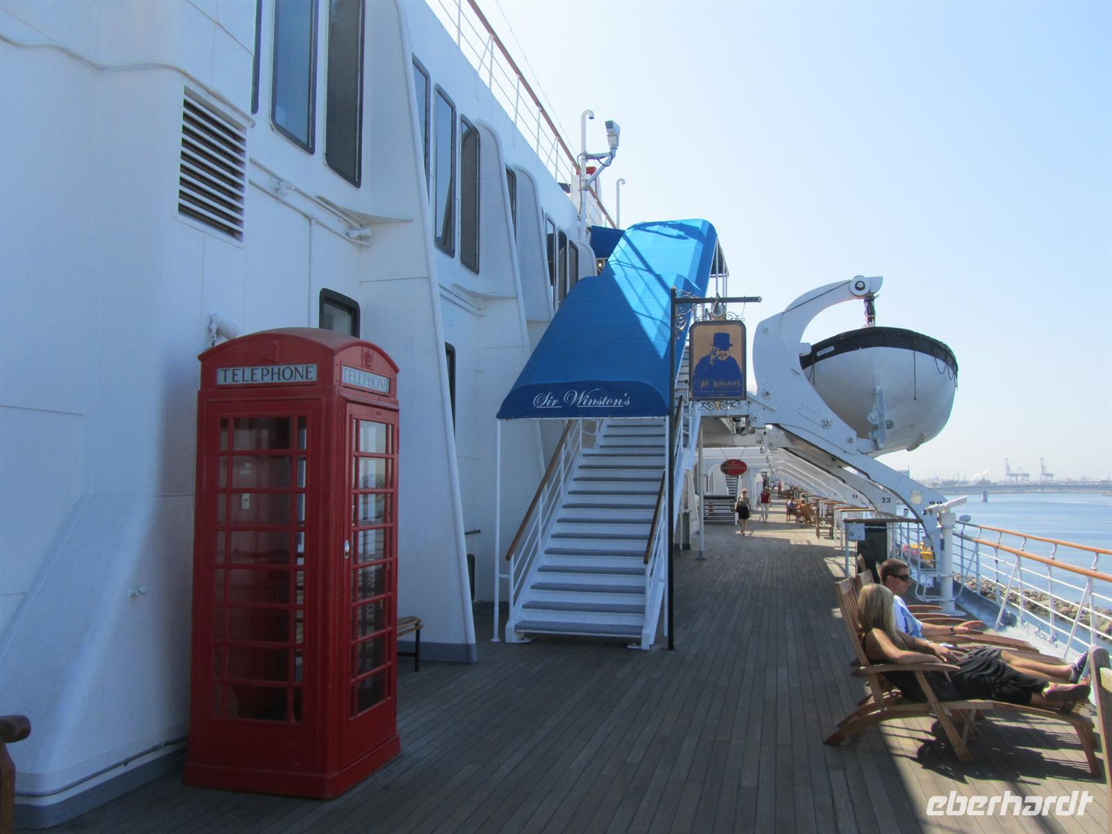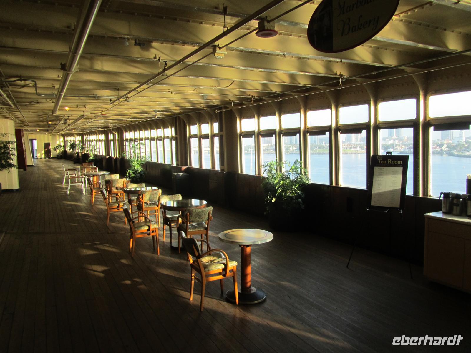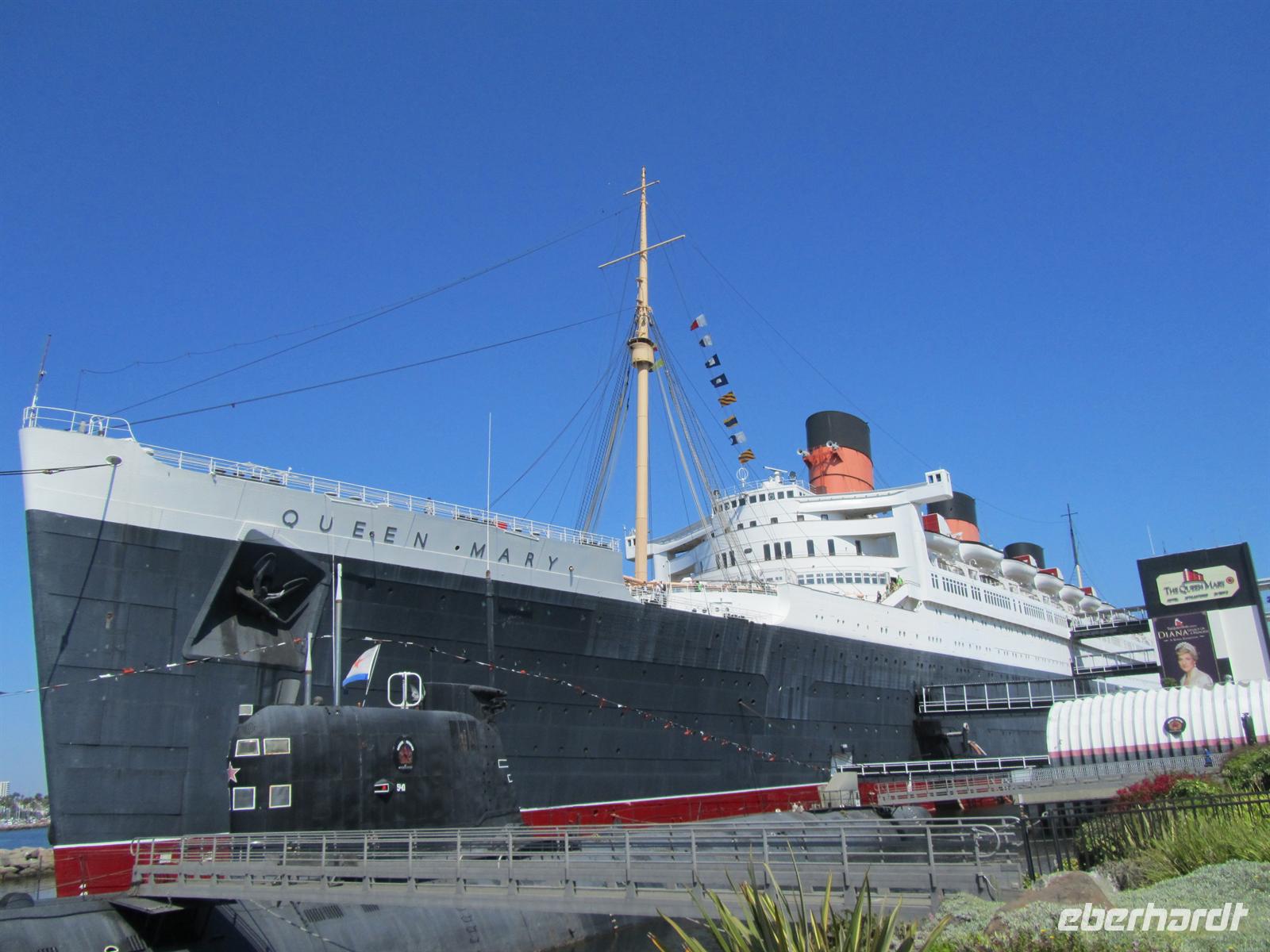 4.30 Uhr beginnt am Eberhardt Schalter unsere aufregende Reise. Wir 11 Dresdner geben schnell unsere Koffer ab und lernen uns bei einem gemeinsamen Frühstück im Restaurant Chilli schon etwas kennen. Pünktlich 6.10 Uhr hebt unsere Lufthansa Maschine Richtung Frankfurt ab. Das Abfluggate für unseren Flug nach Los Angeles ist schnell erreicht und somit haben wir noch genügend Zeit etwas auf dem Flughafen in Frankfurt zu bummeln. Die Leipziger Gäste sind unterdessen auch eingetroffen und somit ist unsere Reisegruppe komplett. Das Boarding zieht sich dann unerwartet in die Länge, da das automatische Boardingsystem ausgefallen ist und jede Bordkarte separat kontrolliert werden muss. Wir starten mit 30 Minuten Verspätung. Aber der Pilot holt die Zeit während eines angenehmen und ruhigen Fluges wieder heraus und somit landen wir überpünktlich in Los Angeles. Die Sicherheitskontrollen haben wir schnell und einfach hinter uns gebracht und Magerite unsere örtliche Reiseleiterin erwartet uns bereits. Auf der Fahrt Richtung Hotel bekommen wir einen ersten Eindruck von der Größe von Los Angeles und des gigantischen Straßennetzen mit teilweise 5 Spuren auf jeder Seite. Nach 40 Minuten erreichen wir die Queen Mary unser Domizil für die nächsten 2 Tage. Wir tauchen ein in die Welt der früheren Kreuzfahrtgeneration. Unsere Außenkabinen haben ihren Flair der 30er Jahre beibehalten und so glaubt man in der Zeit zurückversetzt worden zu sein. Wir erkunden am Nachmittag das Schiff, sehen die Kapitänskabine, flanieren auf dem Promenadendeck und genießen die Sonne auf dem Sonnendeck. Während des Abendessens genießen wir den Blick nach Long Beach. Rechtzeitig und müde von der langen Reise gehen alle ins Bett.