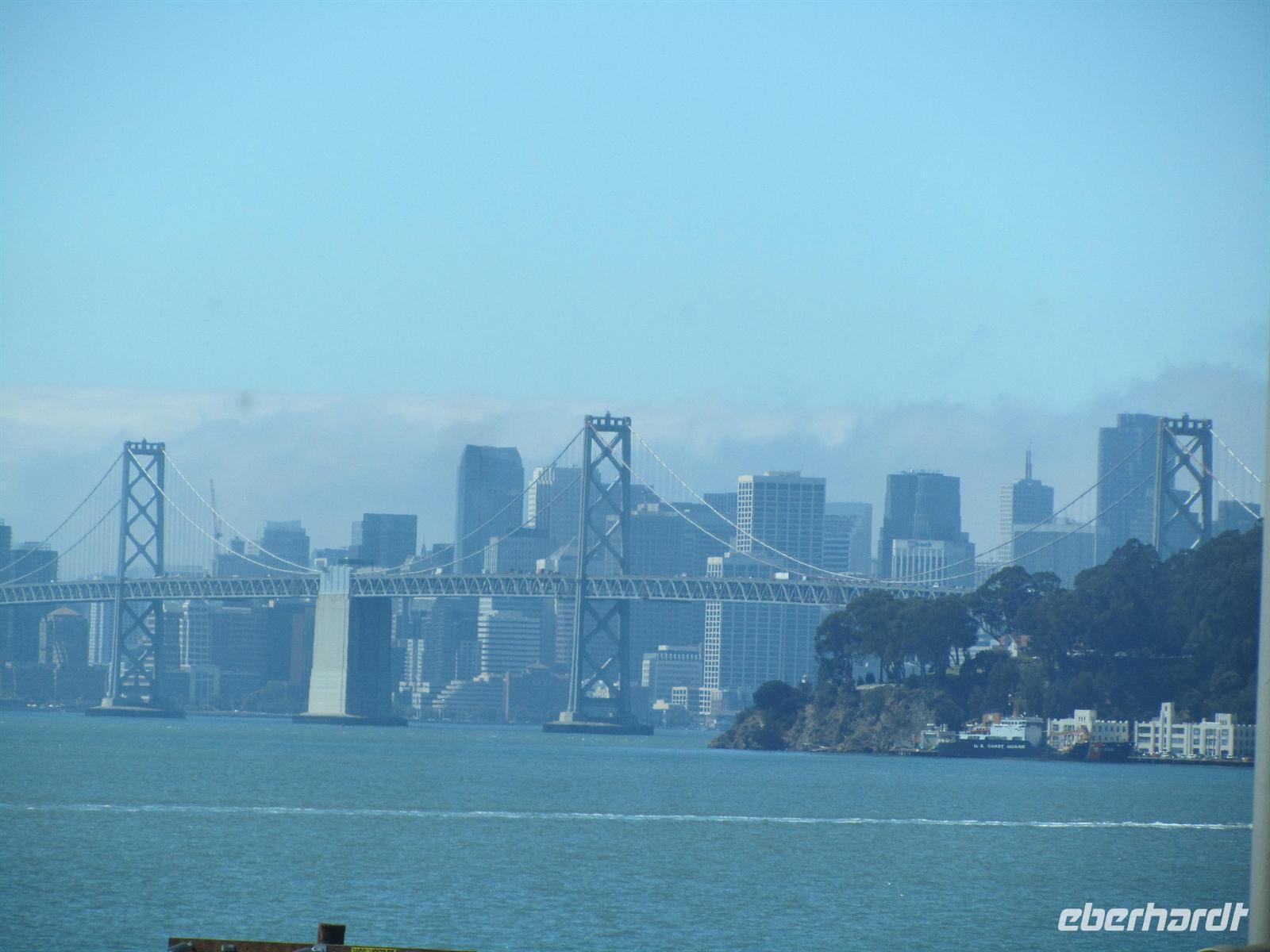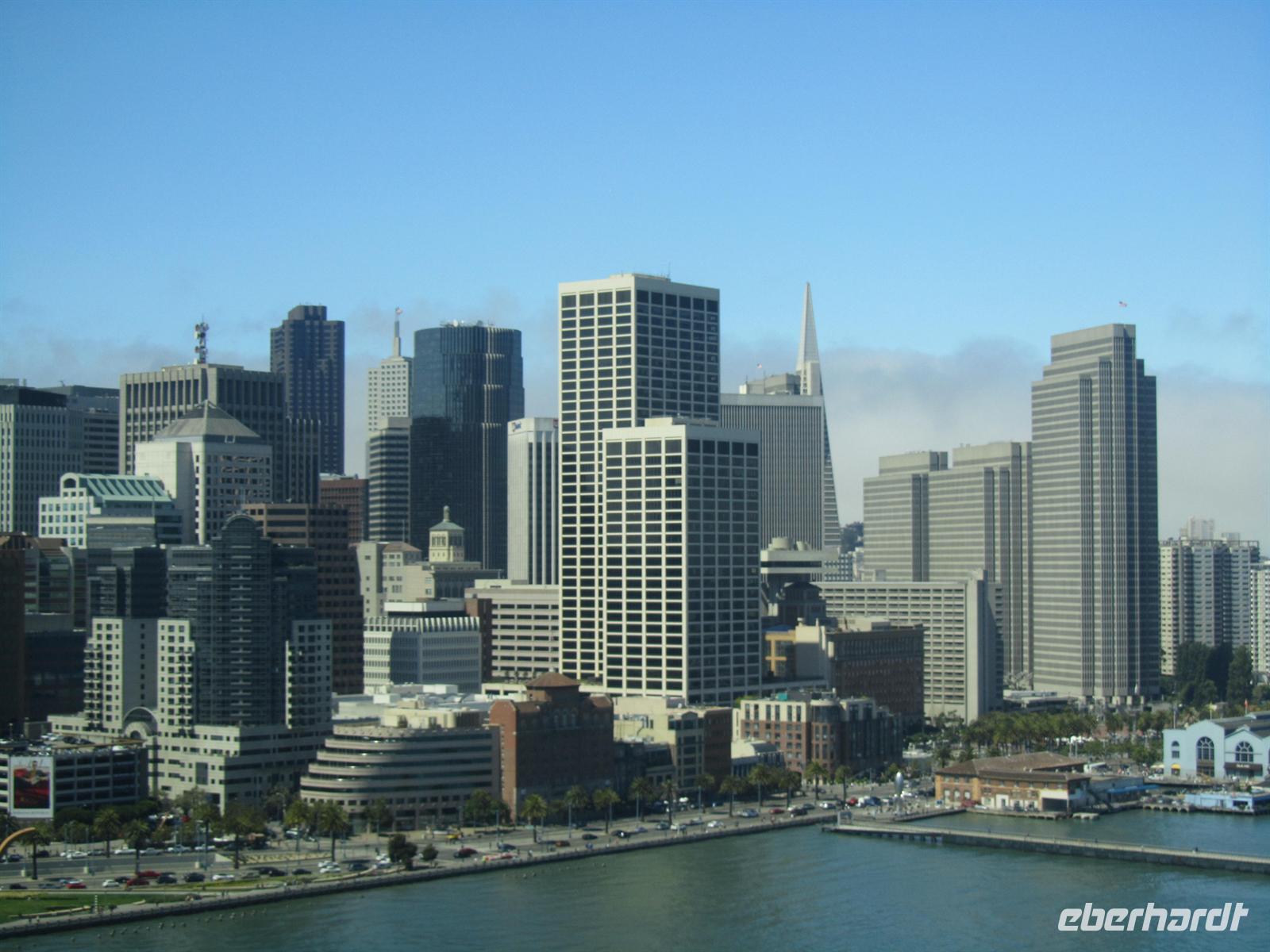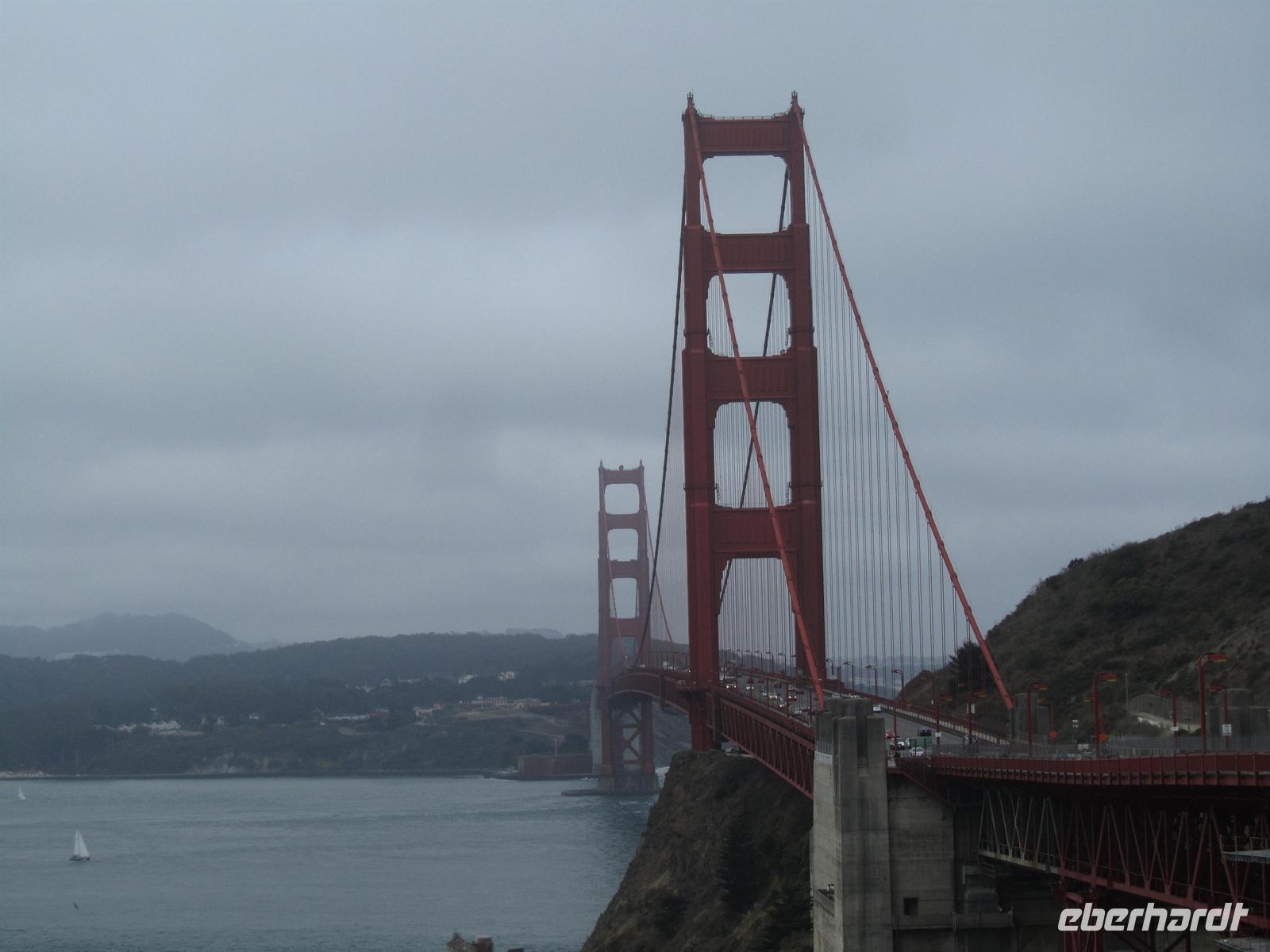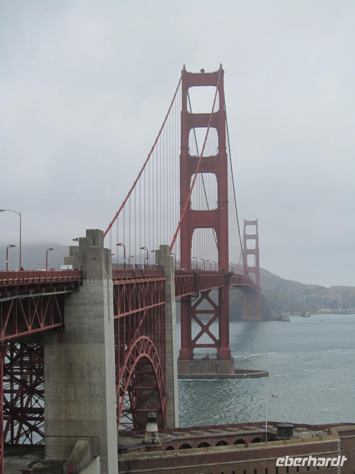 Beim Blick aus dem Fenster müssen wir leider Nebel und Nieselregen feststellen. Aber die Hoffnung bleibt und wir machen uns auf den Weg zur berühmte Golden Gate Bridge. Es ist zwar immer noch bedeckt, aber der Nebel hat sich gelegt. Somit haben wir einen schönen Blick auf die Brücke und starten unseren 45minütigen Spaziergang über die Brücke. Nach diesem tollen Erlebnis besuchen wir Sausolito. Hier haben wir Zeit für einen kleinen Spaziergang bevor uns die Fähre vorbei an Alcatraz zurück nach San Francisco bringt. Den Nachmittag verbringt dann jeder individuell bei Shoppen und Bummeln an der Fishermanns Wharf. Am Abend genießen wir bei unserem gemeinsamen Abendessen nochmal die Sicht zur Golden Gate Bridge.