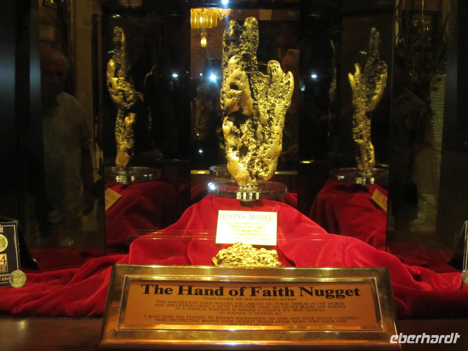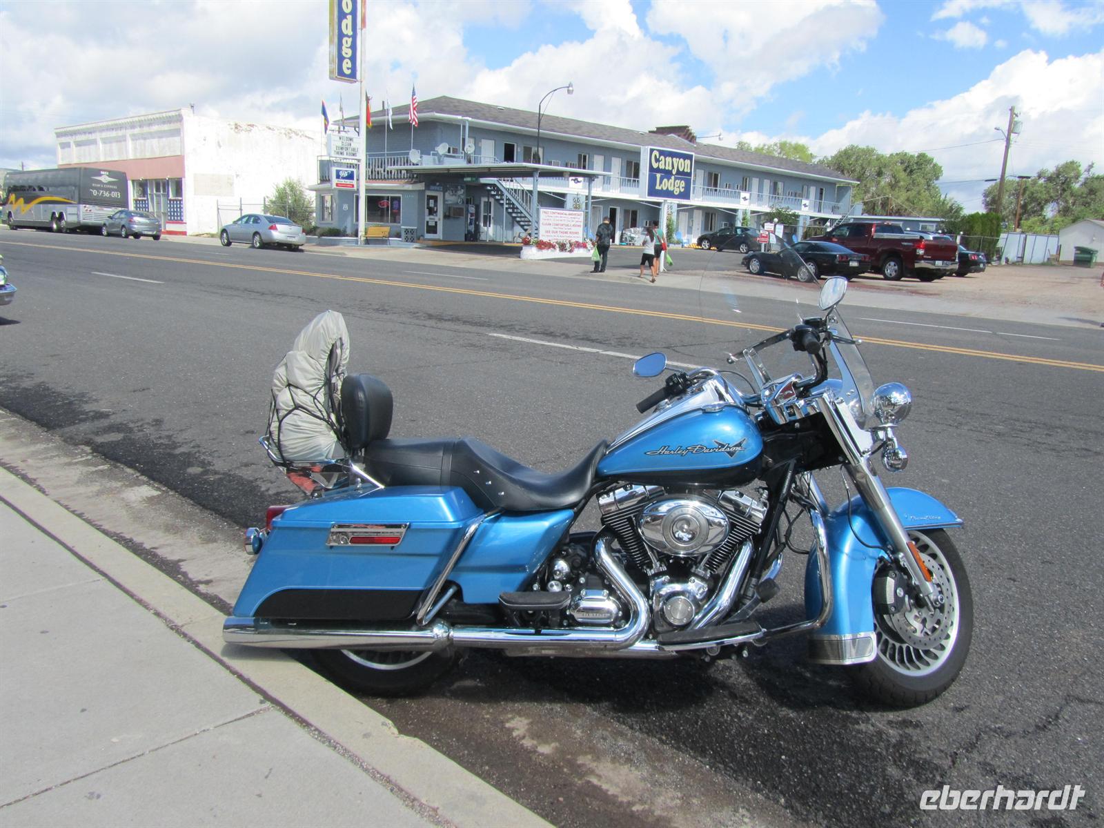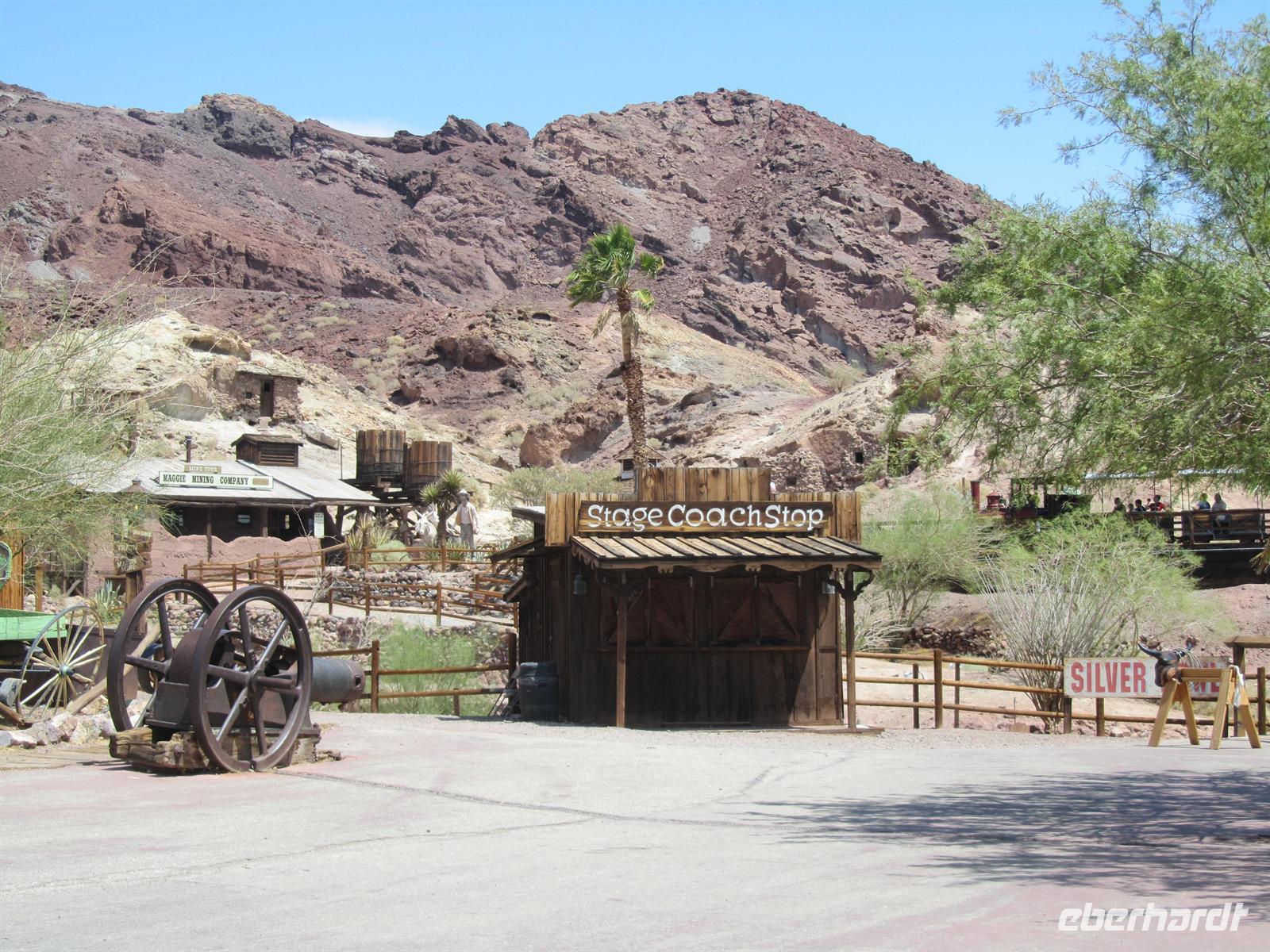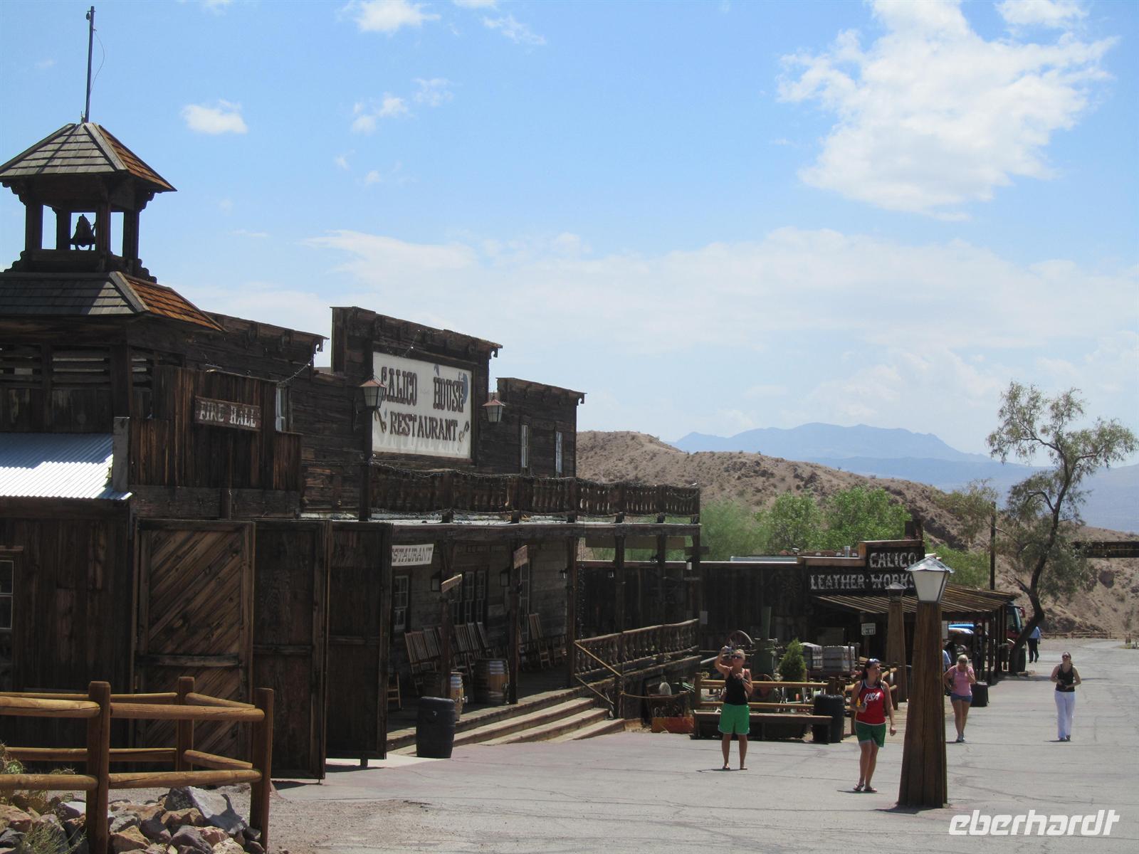 Am Morgen nehmen wir Abschied von der Queen Mary und Los Angeles und verlassen über den Freeway diese gigantische, riesige Stadt. Wir passieren sogenannte Schlafstädte, denn im Los Angeles wohnen ist sehr teuer. Magerite erzählt währenddessen viel über die Amerikaner und ihre Lebensweisen und bereitet uns auf unser Abenteuer „Wilder Westen" vor. Wir erfahren, dass die Wüstenratten keine Tiere sind, sondern die Menschen, die in der Wüste wohnen so genannt werden. Uns begleiten lange Züge, die die Rohstoffe durch die Wüste transportieren. Einen ersten, uns sehr tollen, Einblick in das Leben der Cowboys vermittelt uns die Geisterstadt Calico. Das ist ein verlassenes Silberminenstädtchen, welche liebevoll und originalgetreu für Touristen restauriert wurde. Weiter Richtung Laughlin erleben wir einen Sandsturm und für alle völlig unerwartet fängt es an zu regnen. Wir sind sehr erstaunt, aber unsere Reiseleiterin erklärt uns, dass diese Monsunregengüsse im August durchaus vorkommen können. Am späten Nachmittag passieren wir die Grenze nach Nevada und schon sehen wir die ersten leuchtenden und schillernden Casinos. Gegen Abend erreichen wir die Spielerstadt Laughlin, unsere nächste Übernachtungsstation. Bereits in der Lobby sehen wir die ersten Spielautomaten. Nach dem Abendessen versuchen auch einige Gäste ihr Glück, aber leider haben wir nicht gewonnen.
