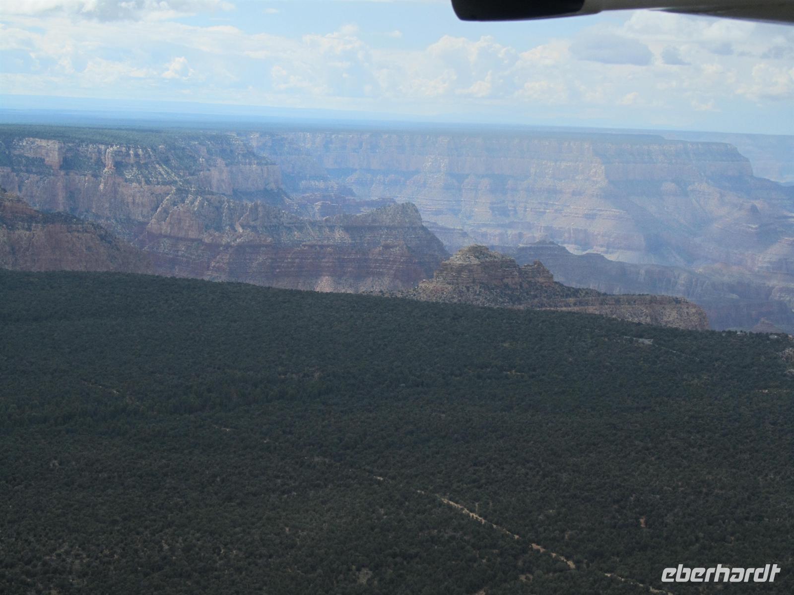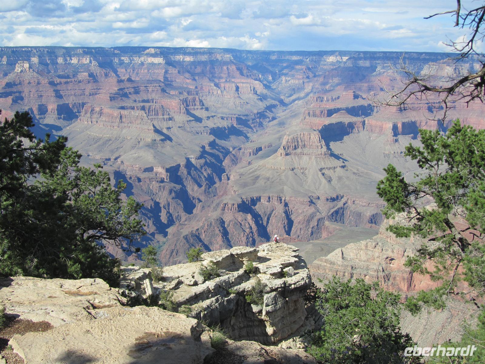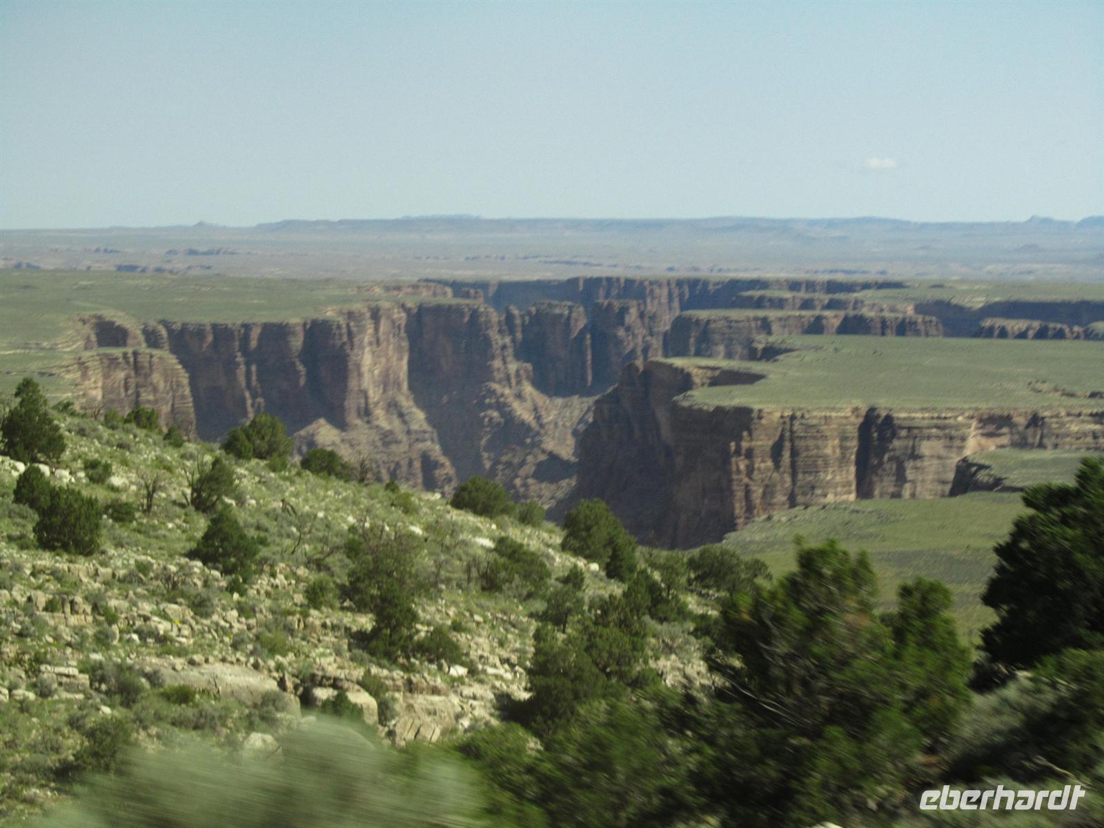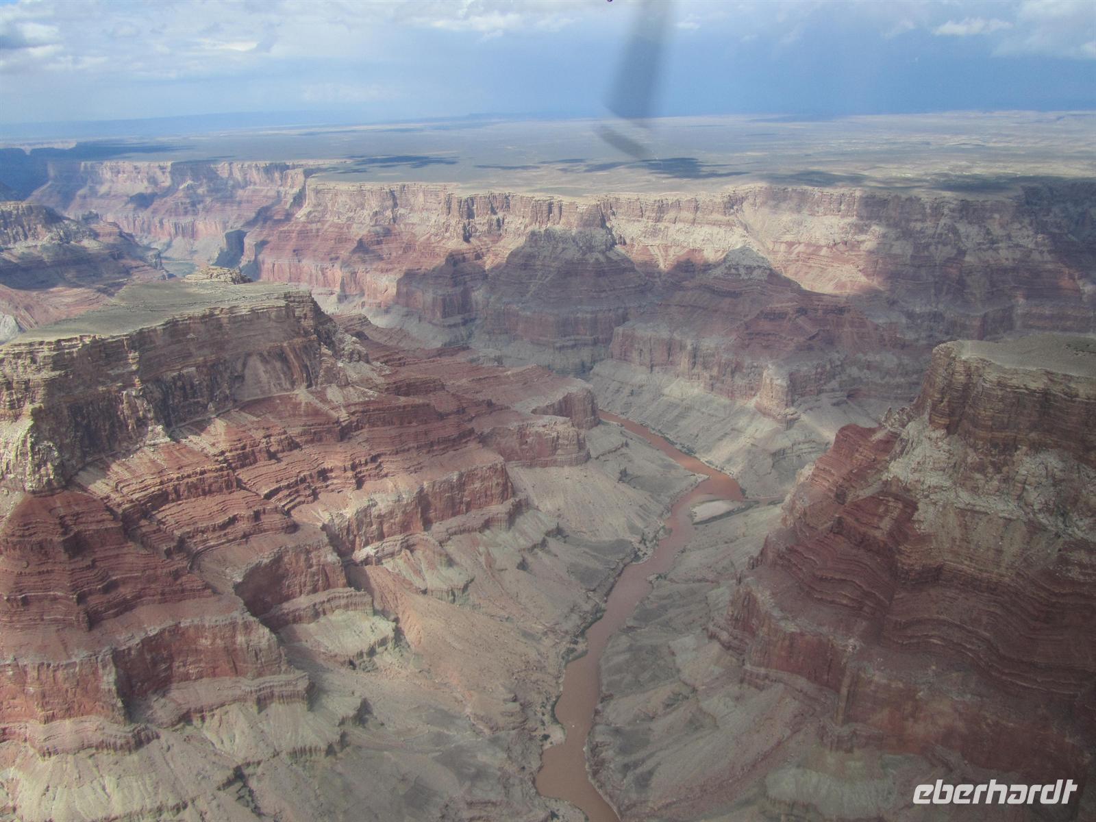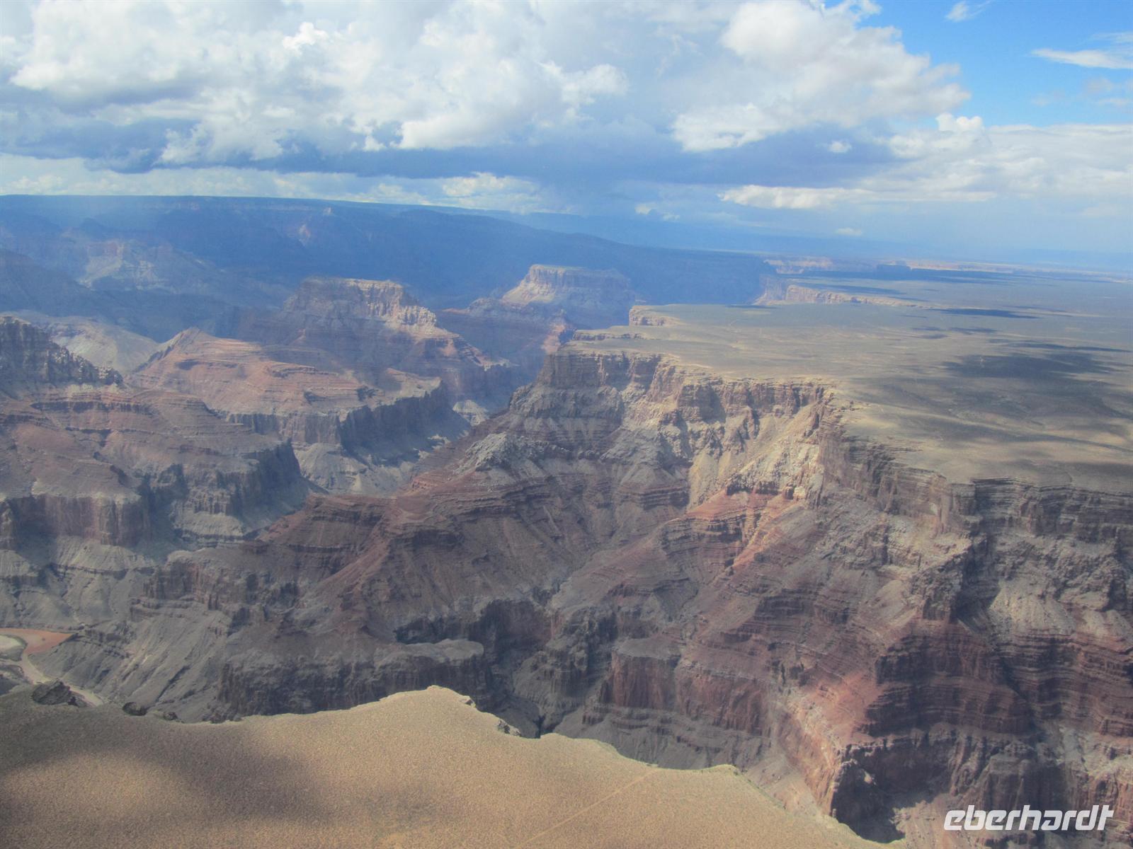 Heute Morgen starten wir zu einem der Höhepunkte der Reise, dem Grand Canyon. Wir passieren die Grenzen zum Canyon State Arizona, bekannt auch als Land der 3 Seelen (Kupfer, Kühe, Baumwolle). Hauptstadt von Arizona ist Phoenix. Je näher wir dem Grand Canyon kommen umso schlechter wird das Wetter und es fängt an zu regnen. Es geht ständig bergauf zum Coloradoplateau. Wir stoppen in Seligman, einen Ort an der Route 66. Hier erleben wir kurz das Flair der legendären Straße. Überall stehen Cadillacs und alte Pickups. Weiter geht die Fahrt und der Himmel wir immer dunkler. Bange Blicke aus den Fenstern... Unser Flug über den Canyon ist für 14 Uhr gebucht. Wir fahren zum Flughafen und suchen am Himmel blaue Flecken. Uns wird mitgeteilt, dass definitiv geflogen wird. Nun diskutieren wir kurz, ob wir auch ohne Sonne das Abenteuer wagen. Einheitlich entscheiden wir uns dafür. Und es ist eine gute Entscheidung. Kaum gestartet bricht die Wolkendecke auf und wir erleben einen unvergesslichen und tief beeindruckenden Flug, untermalt von teils dramatischer Musik, über den Canyon. Später spazieren wir noch 2 Stunden an der Kante entlang und staunen und fotografieren ununterbrochen... Der Grand Canyon Nationalpark wurde 1919 gegründet und hat jährlich 4 Mio. Besucher.