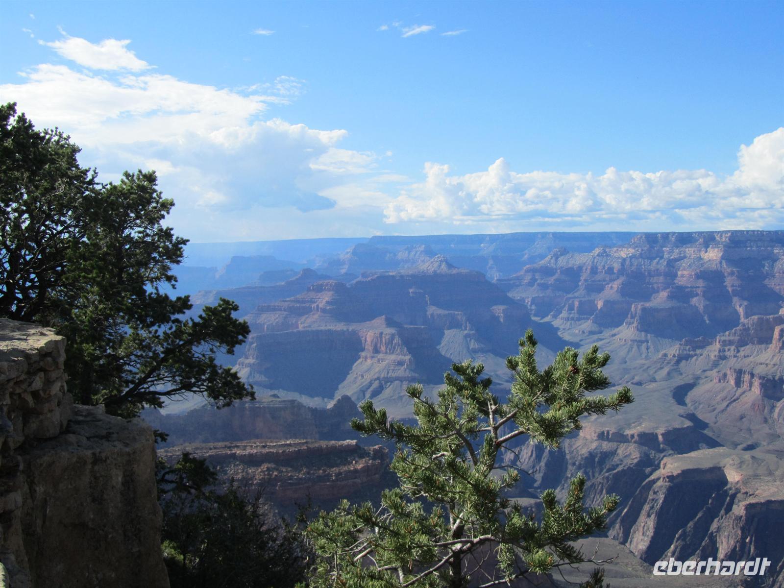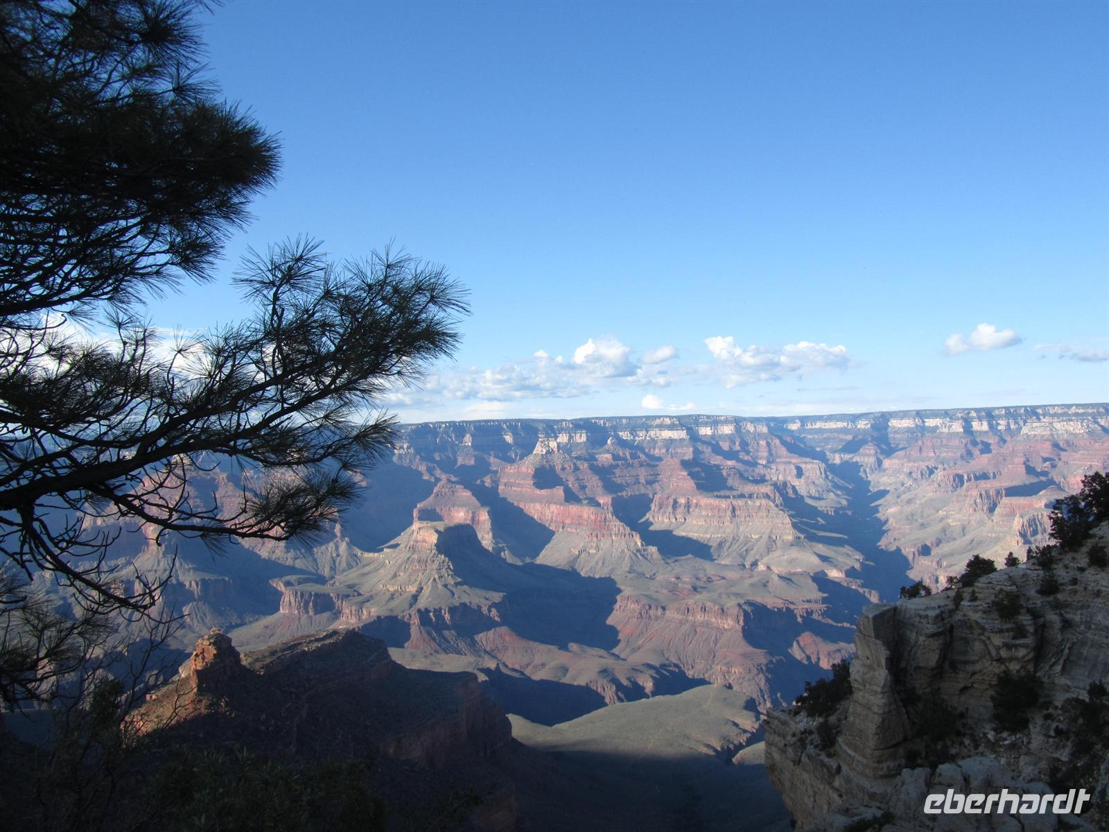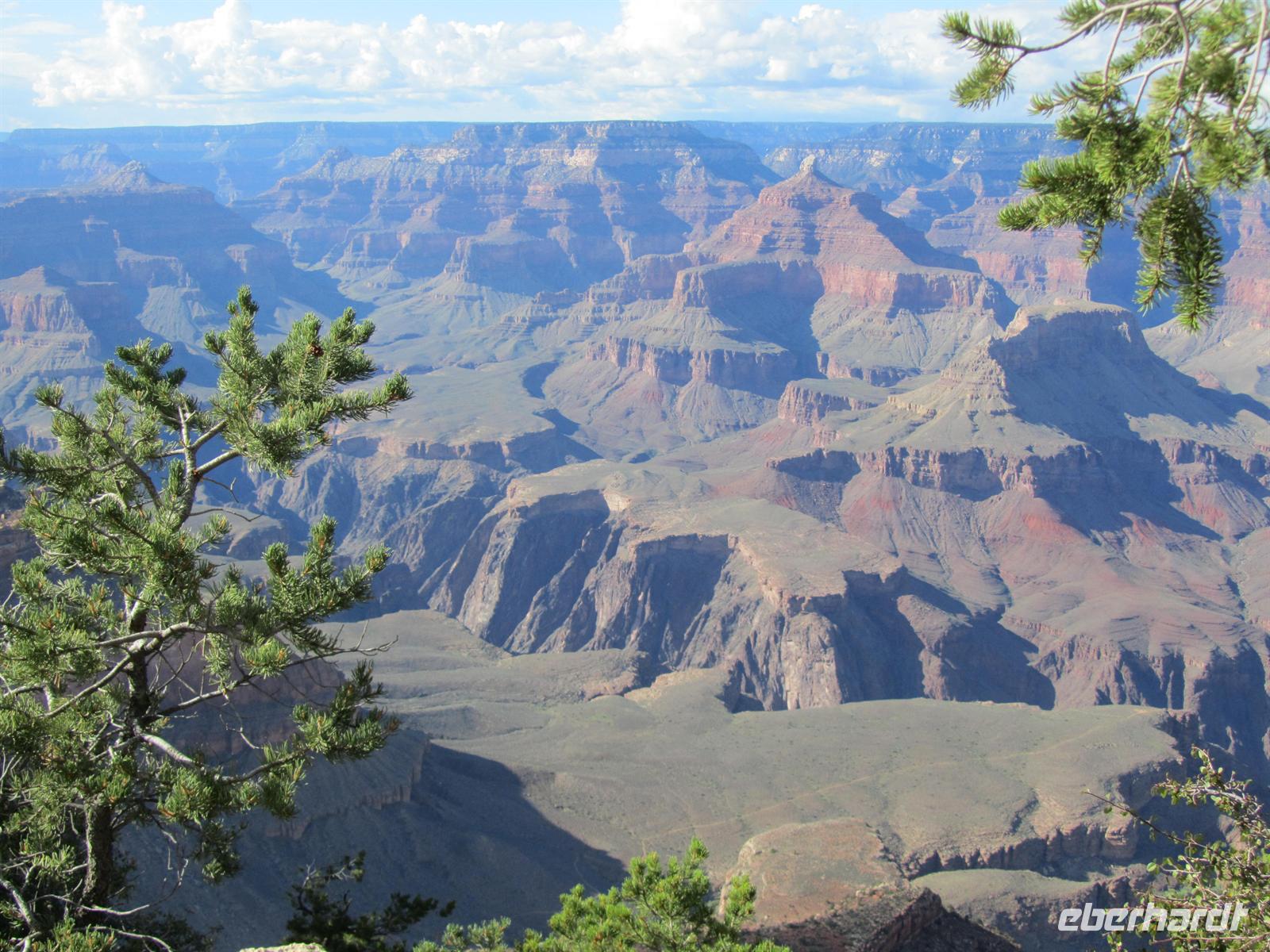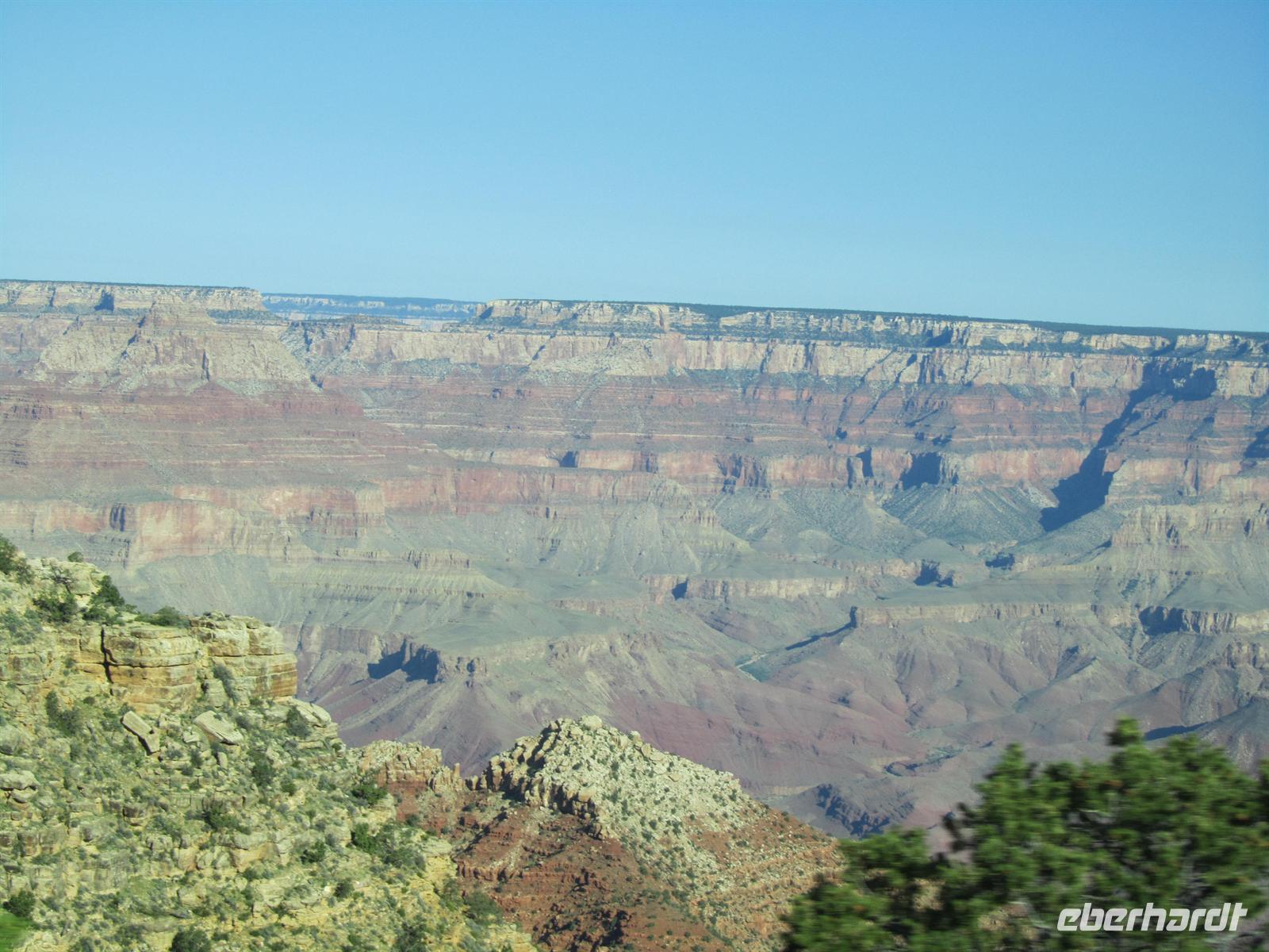 Heute Morgen starten wir zu einem der Höhepunkte der Reise, dem Grand Canyon. Wir passieren die Grenzen zum Canyon State Arizona, bekannt auch als Land der 3 Seelen (Kupfer, Kühe, Baumwolle). Hauptstadt von Arizona ist Phoenix. Je näher wir dem Grand Canyon kommen umso schlechter wird das Wetter und es fängt an zu regnen. Es geht ständig bergauf zum Coloradoplateau. Wir stoppen in Seligman, einen Ort an der Route 66. Hier erleben wir kurz das Flair der legendären Straße. Überall stehen Cadillacs und alte Pickups. Weiter geht die Fahrt und der Himmel wir immer dunkler. Bange Blicke aus den Fenstern... Unser Flug über den Canyon ist für 14 Uhr gebucht. Wir fahren zum Flughafen und suchen am Himmel blaue Flecken. Uns wird mitgeteilt, dass definitiv geflogen wird. Nun diskutieren wir kurz, ob wir auch ohne Sonne das Abenteuer wagen. Einheitlich entscheiden wir uns dafür. Und es ist eine gute Entscheidung. Kaum gestartet bricht die Wolkendecke auf und wir erleben einen unvergesslichen und tief beeindruckenden Flug, untermalt von teils dramatischer Musik, über den Canyon. Später spazieren wir noch 2 Stunden an der Kante entlang und staunen und fotografieren ununterbrochen... Der Grand Canyon Nationalpark wurde 1919 gegründet und hat jährlich 4 Mio. Besucher.