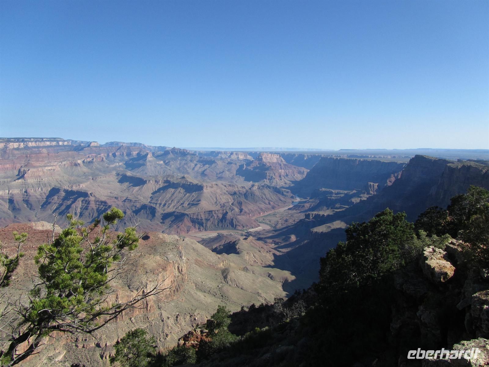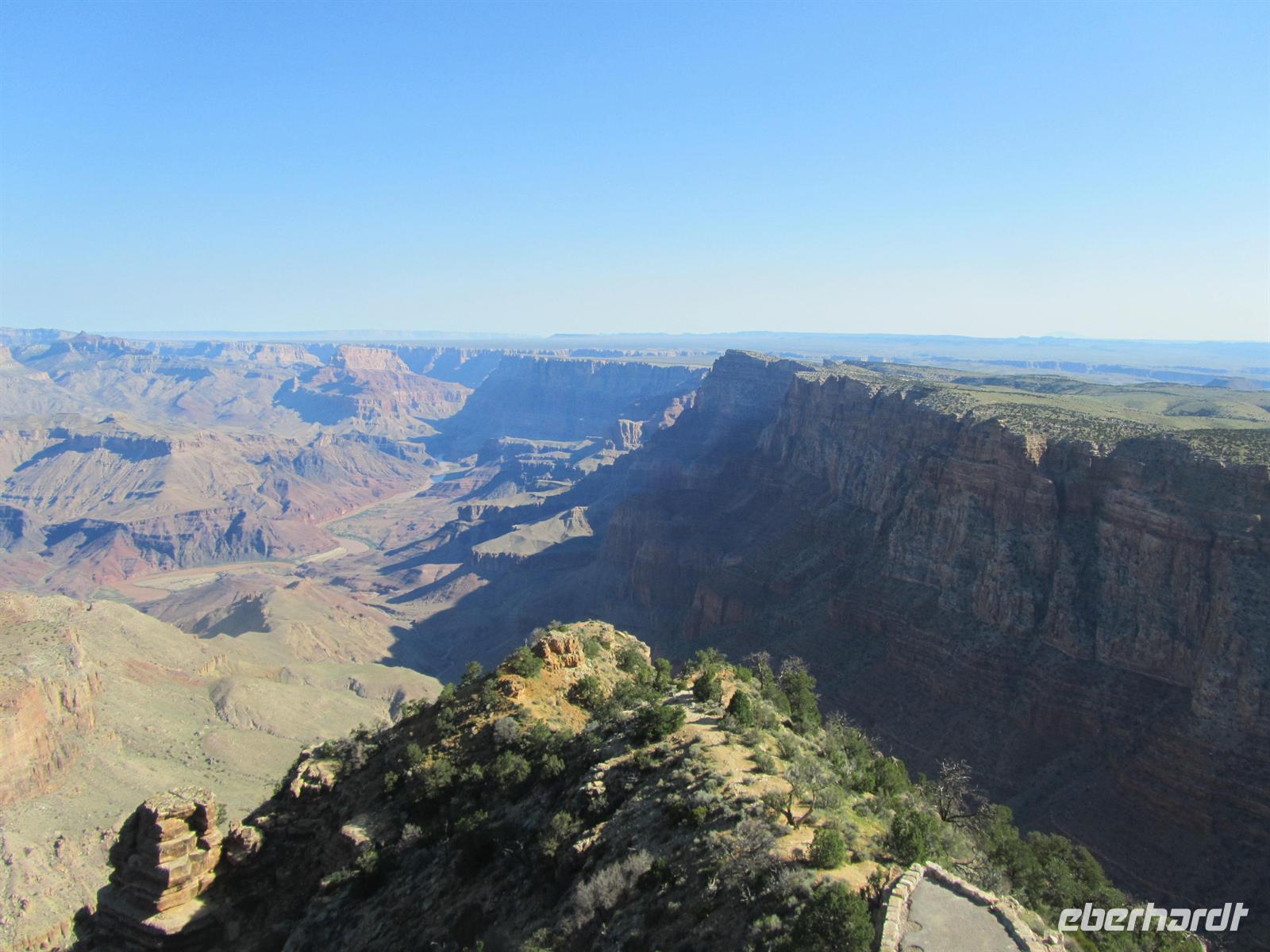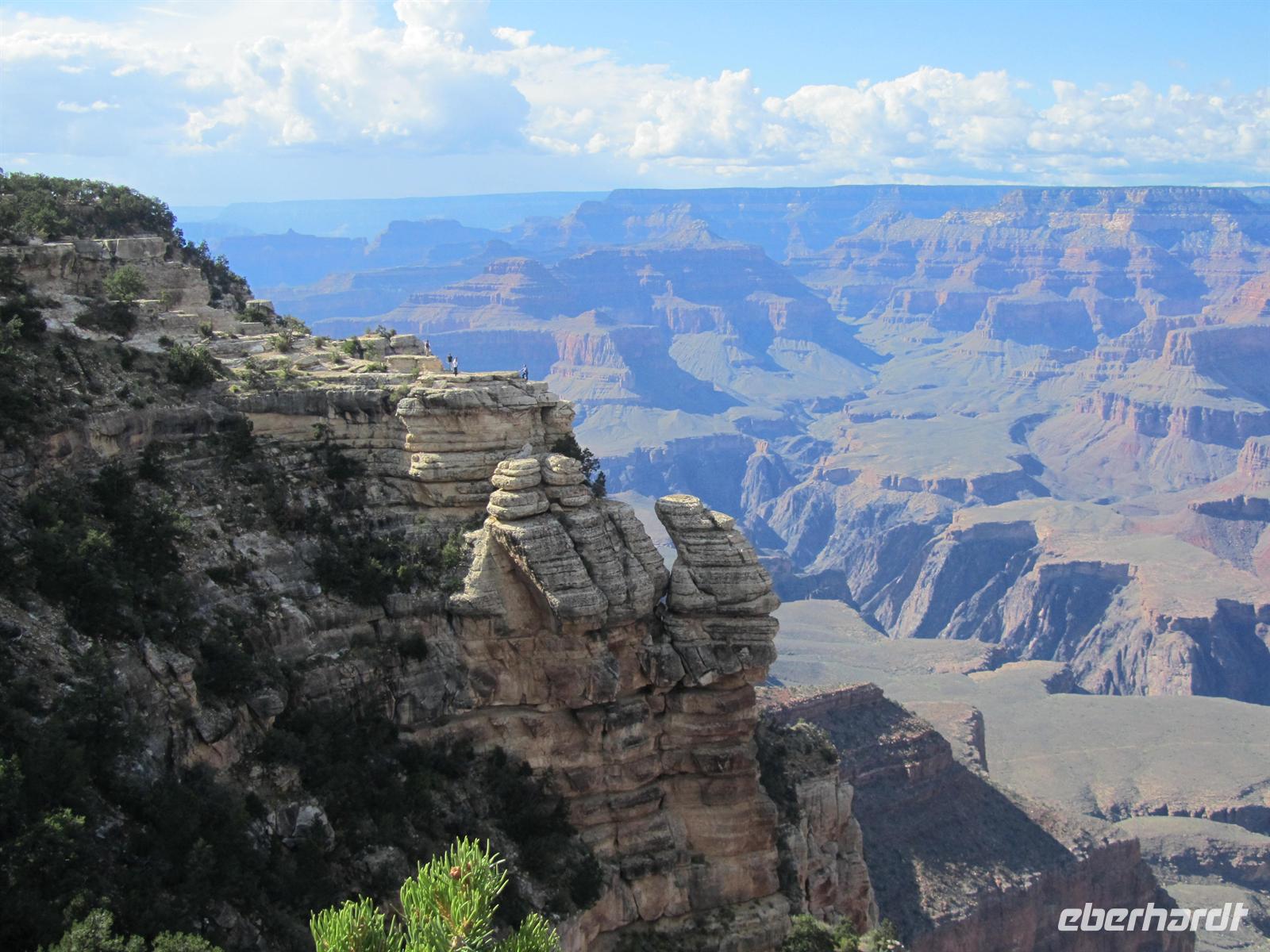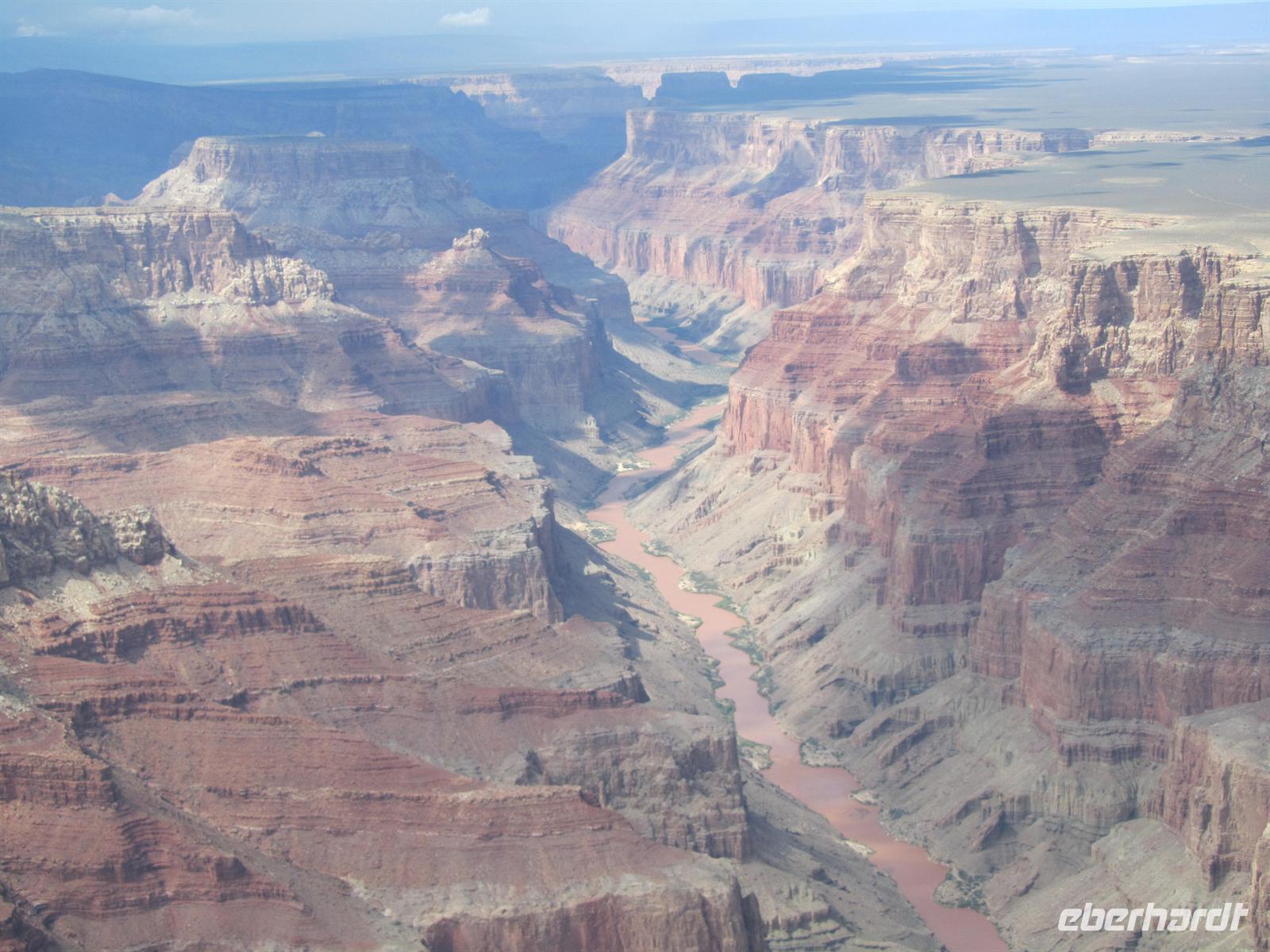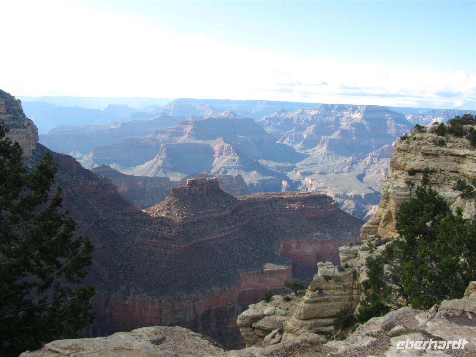 Heute Morgen starten wir zu einem der Höhepunkte der Reise, dem Grand Canyon. Wir passieren die Grenzen zum Canyon State Arizona, bekannt auch als Land der 3 Seelen (Kupfer, Kühe, Baumwolle). Hauptstadt von Arizona ist Phoenix. Je näher wir dem Grand Canyon kommen umso schlechter wird das Wetter und es fängt an zu regnen. Es geht ständig bergauf zum Coloradoplateau. Wir stoppen in Seligman, einen Ort an der Route 66. Hier erleben wir kurz das Flair der legendären Straße. Überall stehen Cadillacs und alte Pickups. Weiter geht die Fahrt und der Himmel wir immer dunkler. Bange Blicke aus den Fenstern... Unser Flug über den Canyon ist für 14 Uhr gebucht. Wir fahren zum Flughafen und suchen am Himmel blaue Flecken. Uns wird mitgeteilt, dass definitiv geflogen wird. Nun diskutieren wir kurz, ob wir auch ohne Sonne das Abenteuer wagen. Einheitlich entscheiden wir uns dafür. Und es ist eine gute Entscheidung. Kaum gestartet bricht die Wolkendecke auf und wir erleben einen unvergesslichen und tief beeindruckenden Flug, untermalt von teils dramatischer Musik, über den Canyon. Später spazieren wir noch 2 Stunden an der Kante entlang und staunen und fotografieren ununterbrochen... Der Grand Canyon Nationalpark wurde 1919 gegründet und hat jährlich 4 Mio. Besucher.