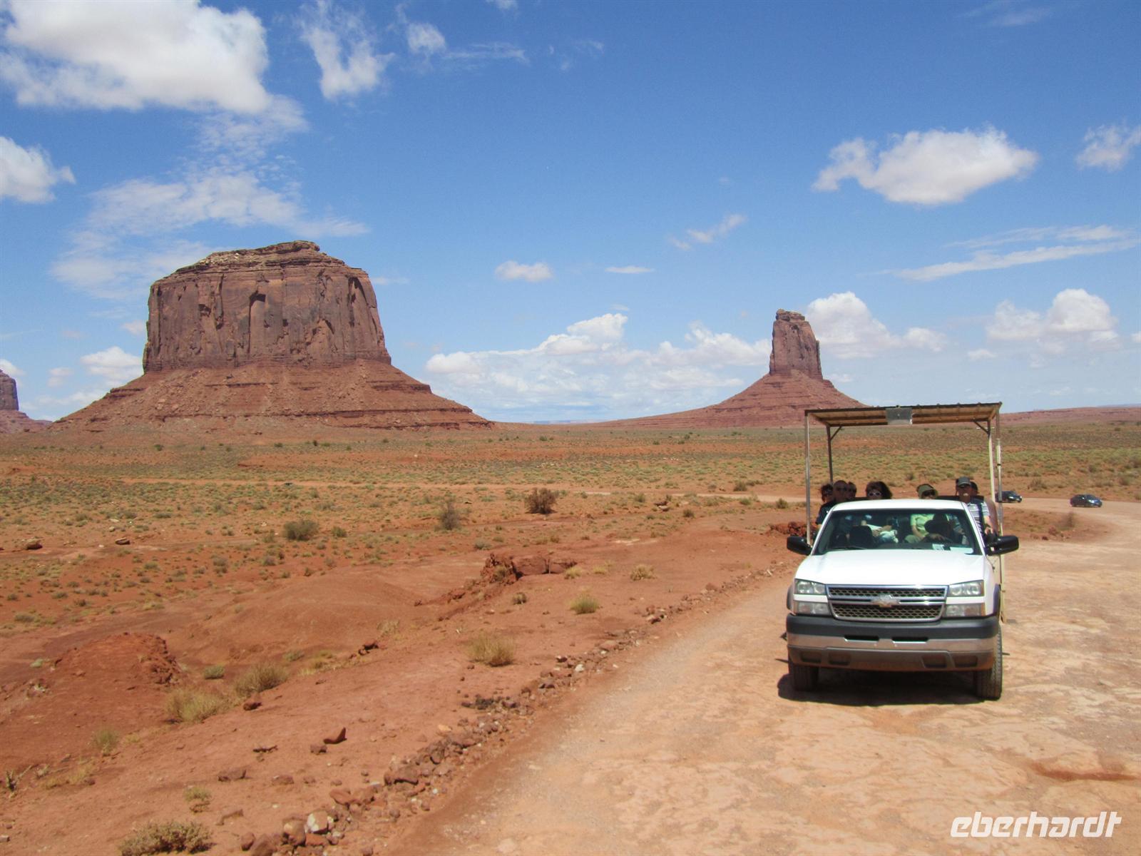 Das nächste Highlight steht auf den Programm. Am frühen Nachmittag erreichen wir Monument Valley. Wir steigen in 2 große Jeeps um und starten unsere Fahrt durch das Valley. Nach grandiosen Blicken und einigen Fotostopps stoppen wir direkt bei den Indianern, die uns ein köstliches Mittagessen servieren. Später stoppen wir am Platz der berühmten Marlboro Werbung. Ein "Cowboy" reitet für uns zu der Stelle und wir können die weltberühmten Fotos schießen. Nach 3 Stunden kehren wir zum Bus zurück und treten beeindruckt die Fahrt zu unserer nächsten Übernachtung an. Heute übernachten wir in Moab. Am Abend sind wir in einer Brauerei und essen dort zu Abend. Alle Gäste probieren das eigene Bier und wir lassen uns das Steak schmecken.