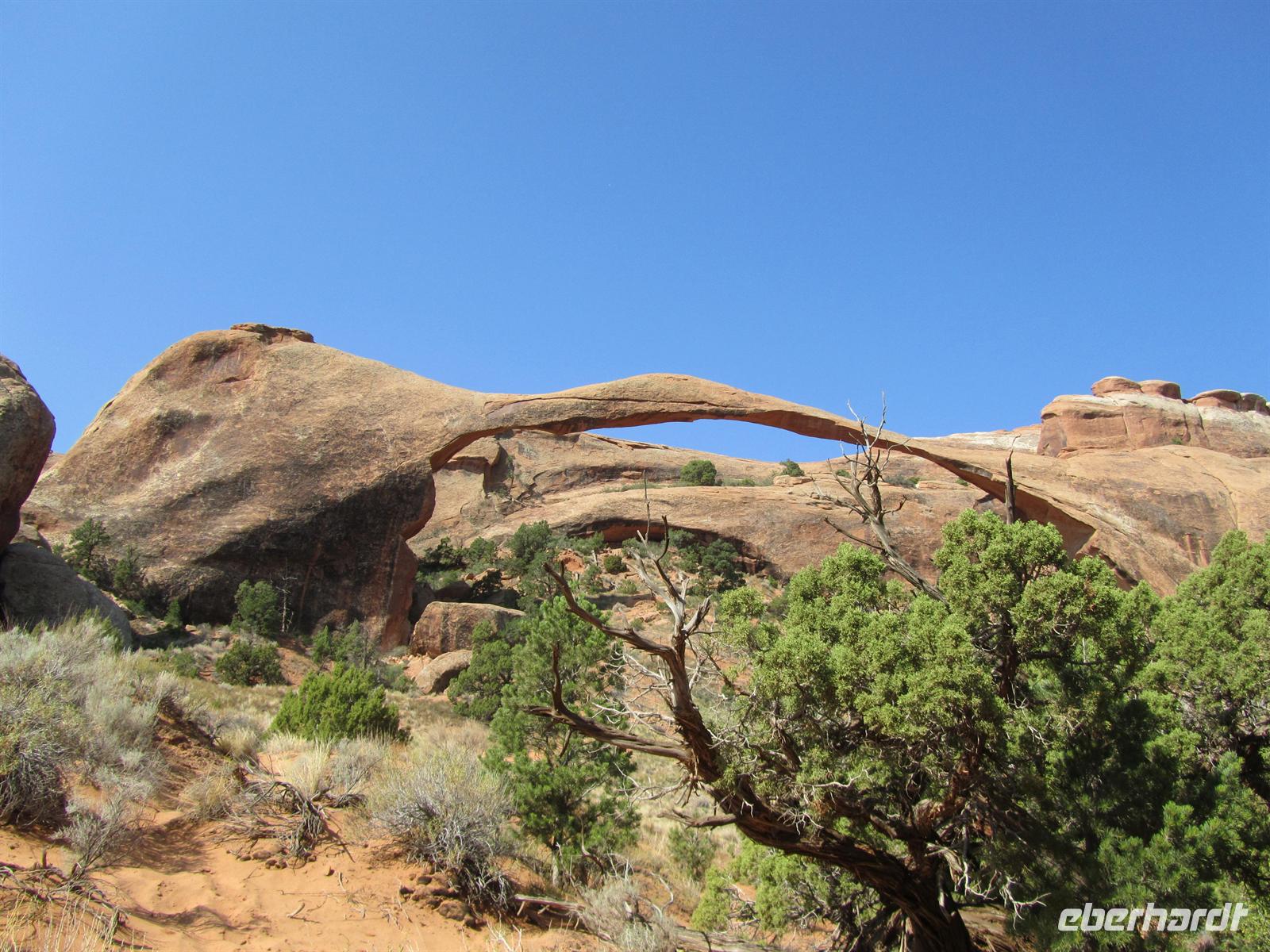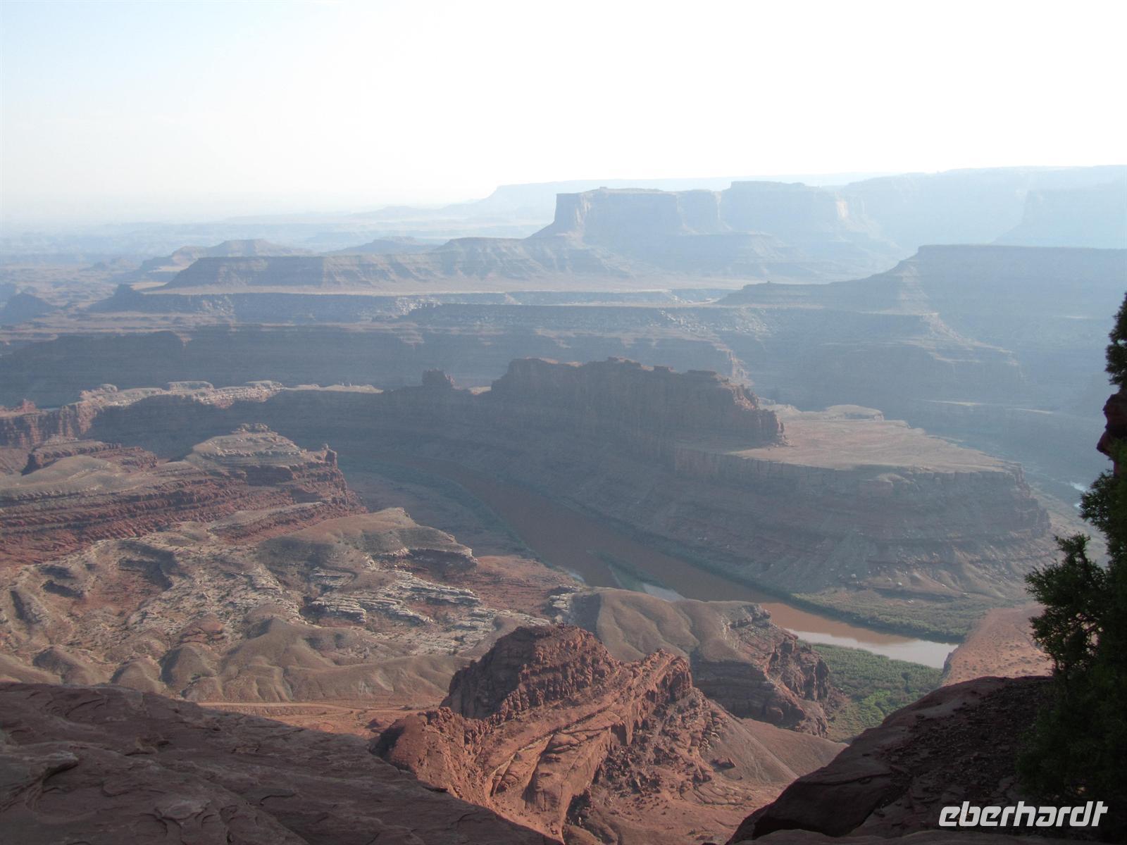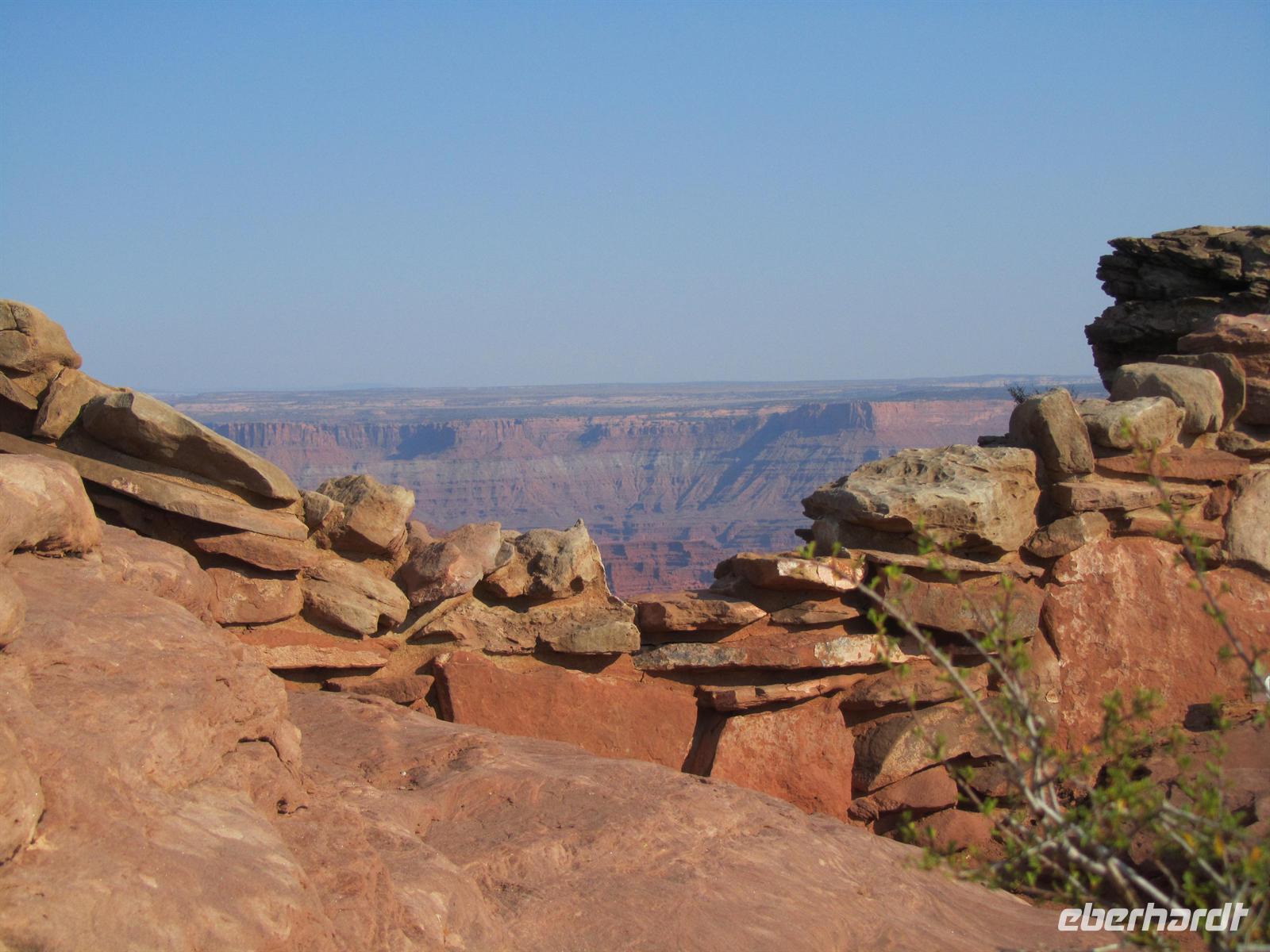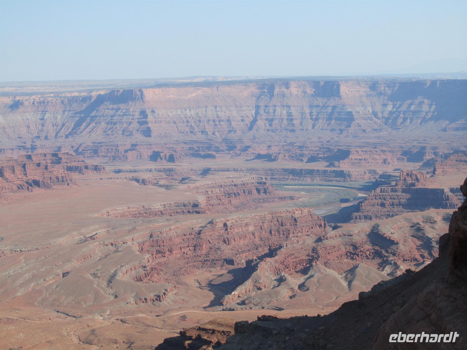 Heute erwartet uns ein weiteres Highlight, die Bögen und Fester des Arche Nationalparks. Unser erster Stopp ist der Balanced Rock. Knapp 50 Meter hoch, kann man kaum verstehen, wie sich dieser schiefe Koloss überhaupt aufrecht halten kann. Die Auslöser der Fotoapparate klicken und weiter gehts zum nächsten Highlight. Wir wandern ca. 30 Minuten zum Landscape Arche. Aber den schönsten Blick haben wir auf den Doppelbogen. Hier spazieren wir ganz nah heran und einige wagemutige Gäste klettern sogar in die Bögen hinein. Nach diesem tollen Erlebnis fahren wir zurück nach Moab und kaufen für ein kleines Picknick ein. Im tollen Hotelgarten unter einem Olivenbaum lassen wir uns Brot, Wurst, Käse, Bier, Weintrauben und Wasser schmecken. Da es heute sehr heiß ist, ist dieses Päuschen während der Mittagszeit eine willkommene Erholung. Einige Gäste nutzen die Gelegenheit um sich im Pool zu erfrischen. Gegen Abend fahren wir in die Canyon Lands. Hier erwartet uns wieder eine grandiose Landschaft und unfassbare Weite und Ruhe. Unseren Tag beschließen wir in einer Westernshow. Bei einer kleinen Show wird kurz etwas geschossen und die Cowboys stehen wenig später an der Bar und bedienen uns. Auf Blechtellern und aus Blechtassen wird uns typischen Essen und Zitronenlimo serviert. Nach dem Essen lauschen wir noch Cowboymusik, die sehr gut dargeboten wird. Ein toller Tag findet einen sehr schönen Abschluss.