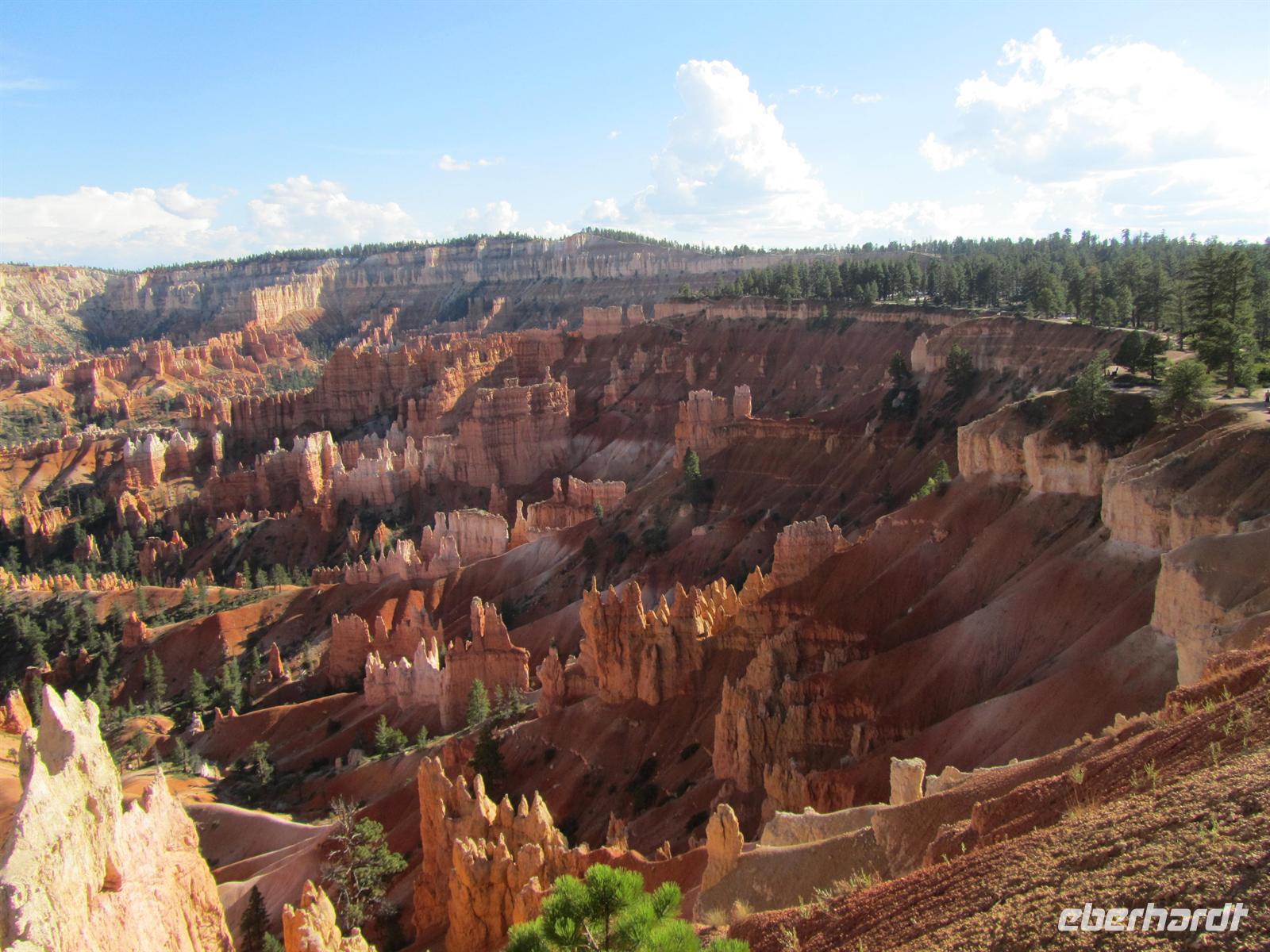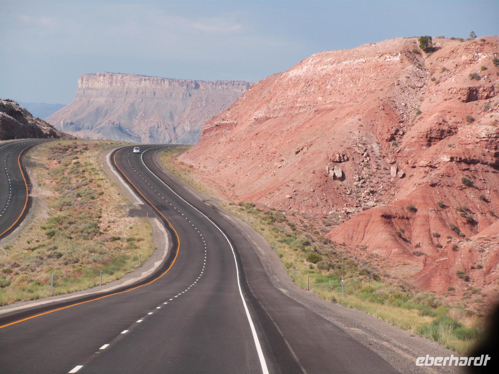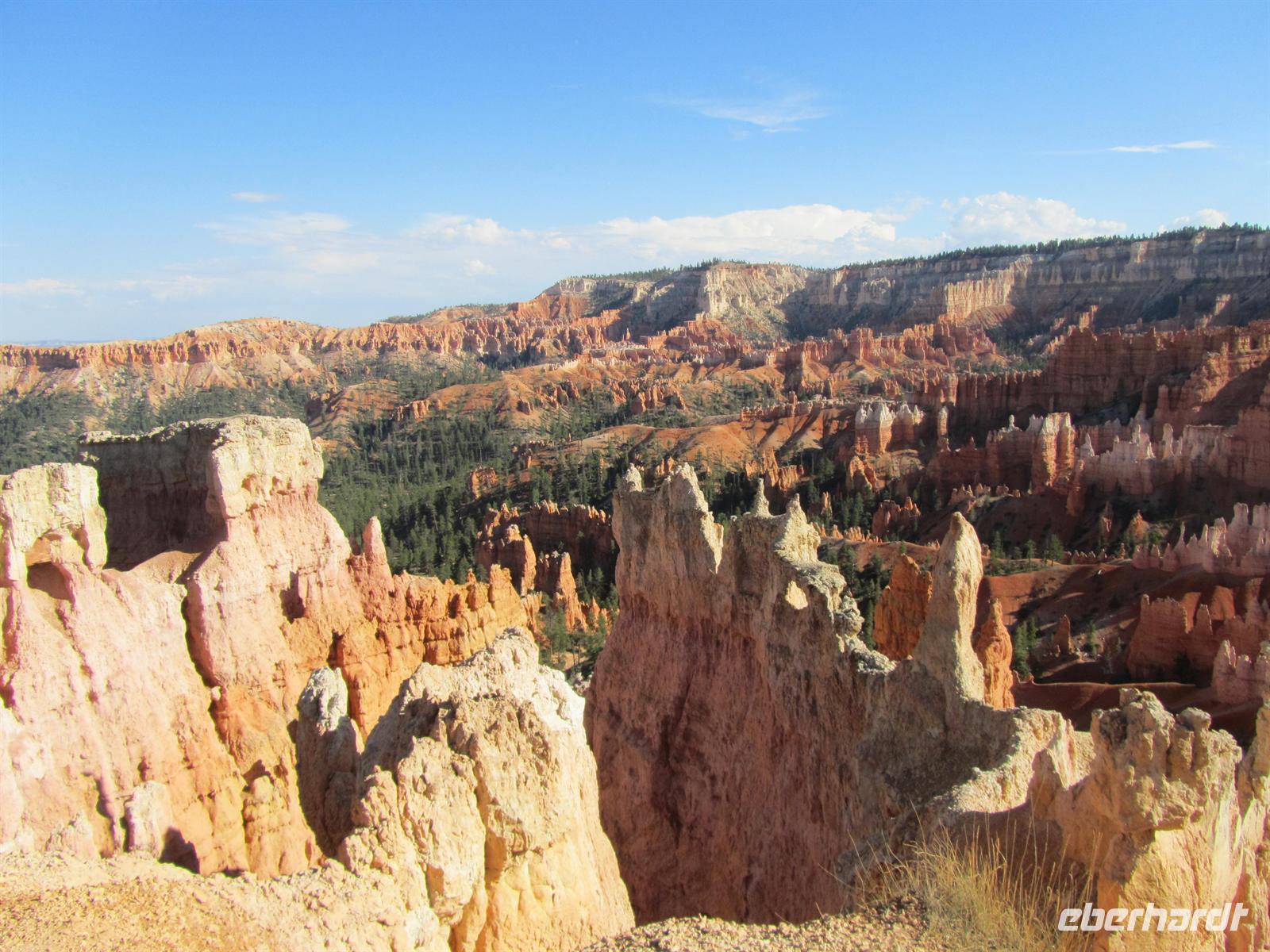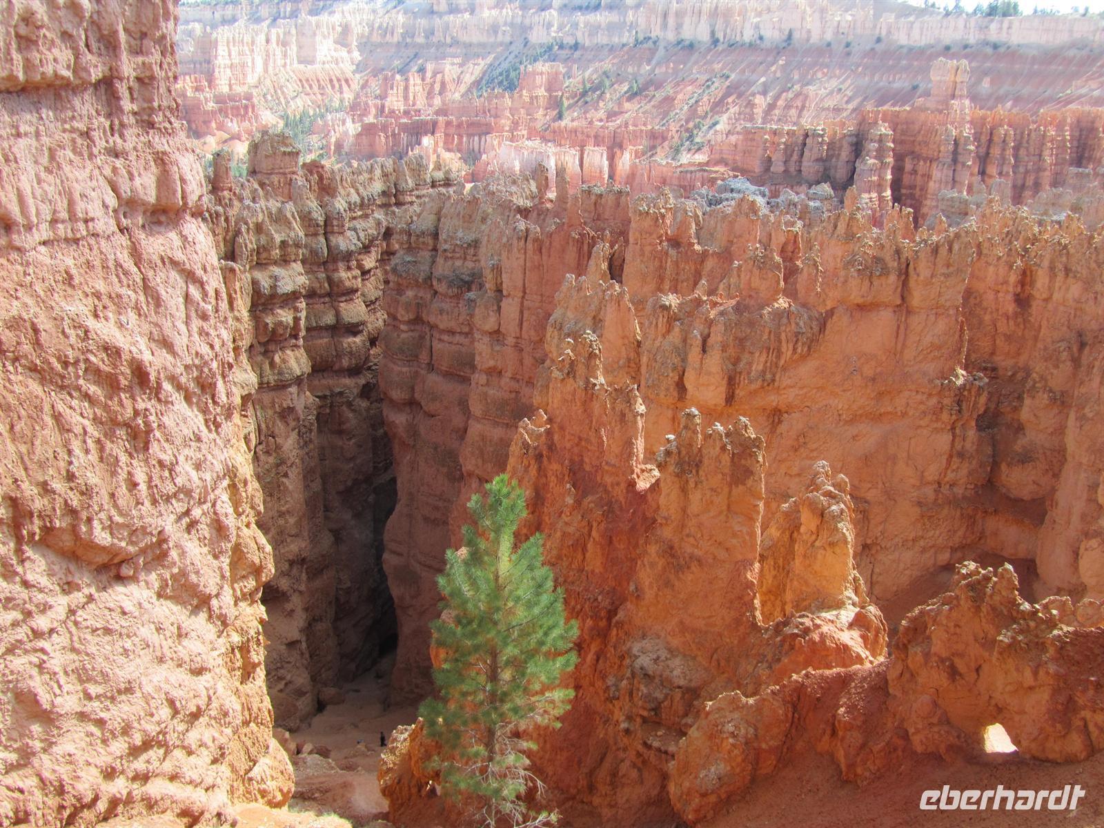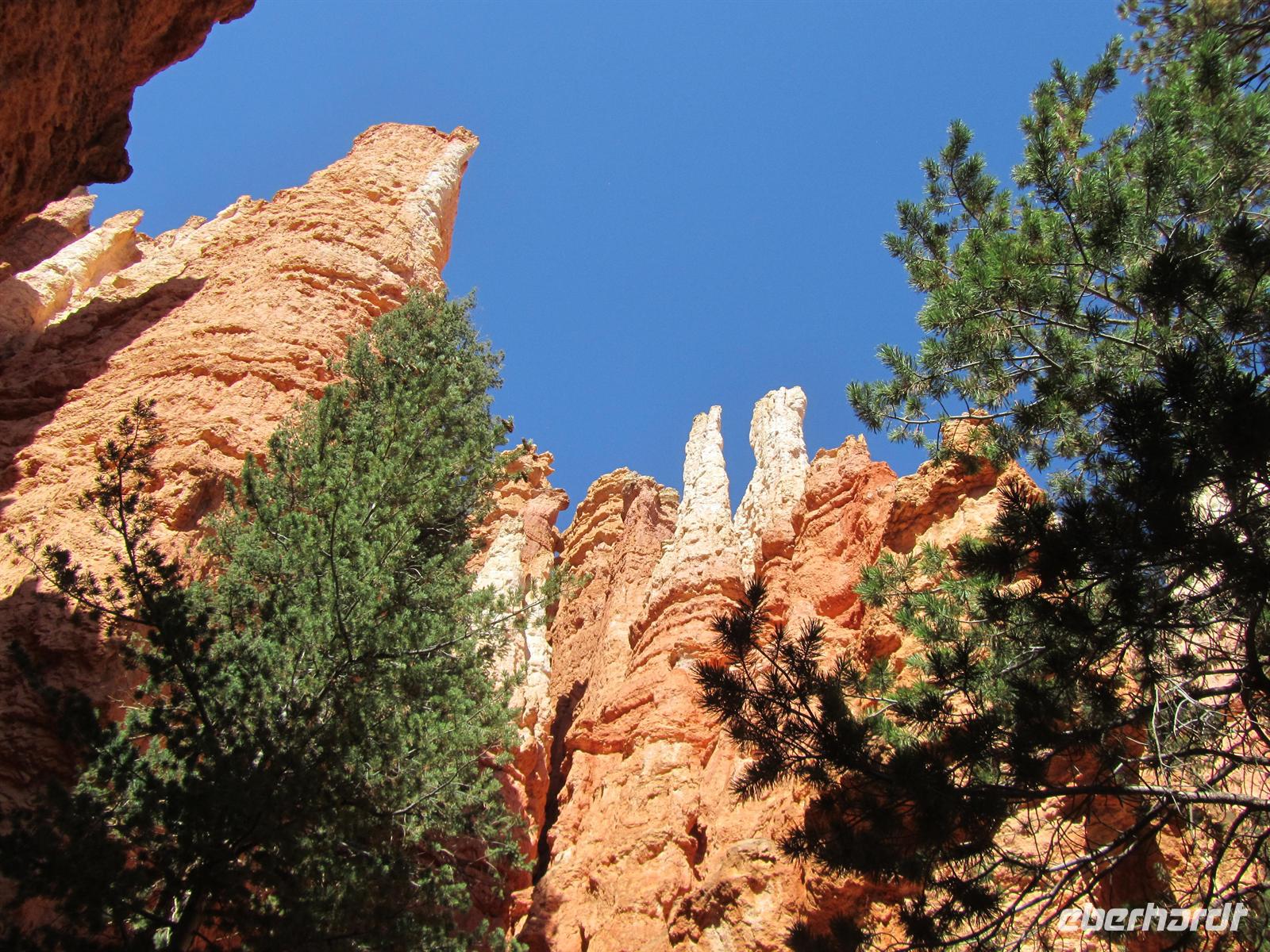 Wieder startet unser Tag mit strahlend blauem Himmel. Wir verspeisen die Reste unseres Picknicks und auf geht es Richtung Brice Canyon. Wir passieren den Green River, welches als Melonenanbaugebiet bekannt ist. Musik von Jonny Cash begleitet uns vorbei an grandiosen Gesteinsformationen. Angekommen am Canyon sind wir tief beeindruckt von der tollen Aussicht. Keiner hat dies erwartet. Danach starten wir unsere Wanderung hinein den Canyon. Ausgerüstet mit festem Schuhwerk, Kopfbedeckung und Wasser steigen wir hinab. 2 Stunden wandern wir entlang des Tals.