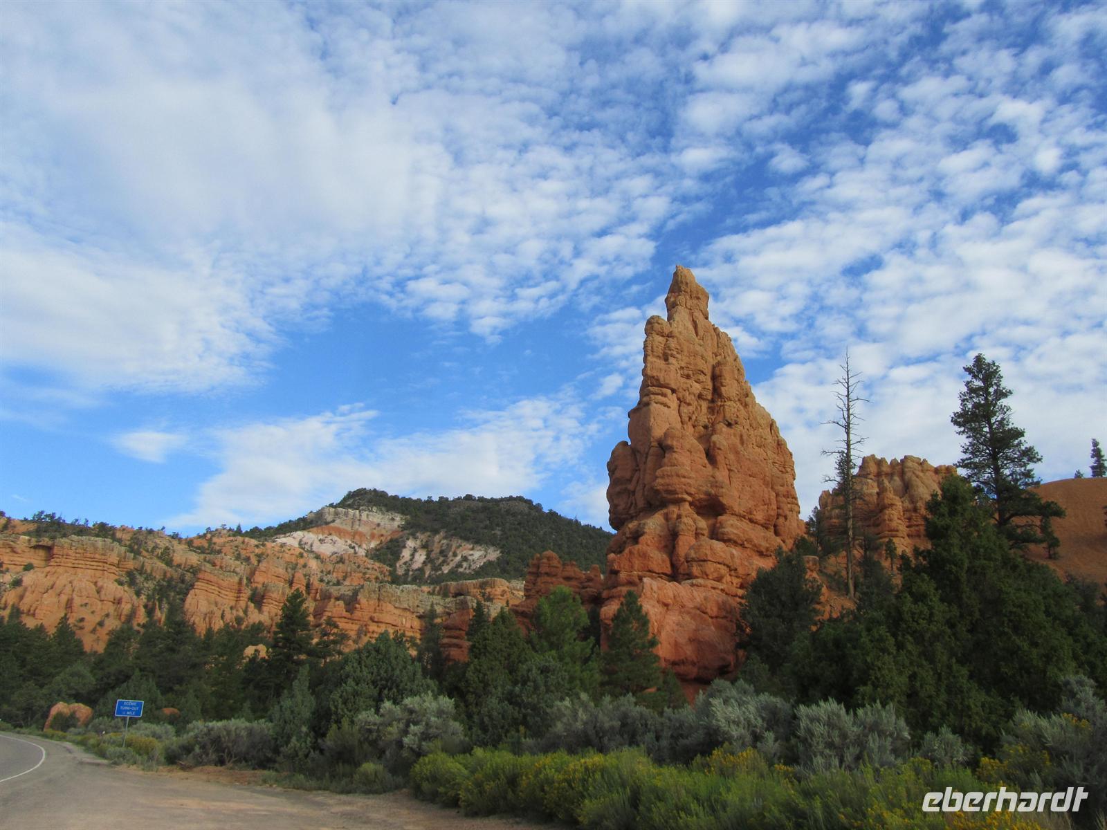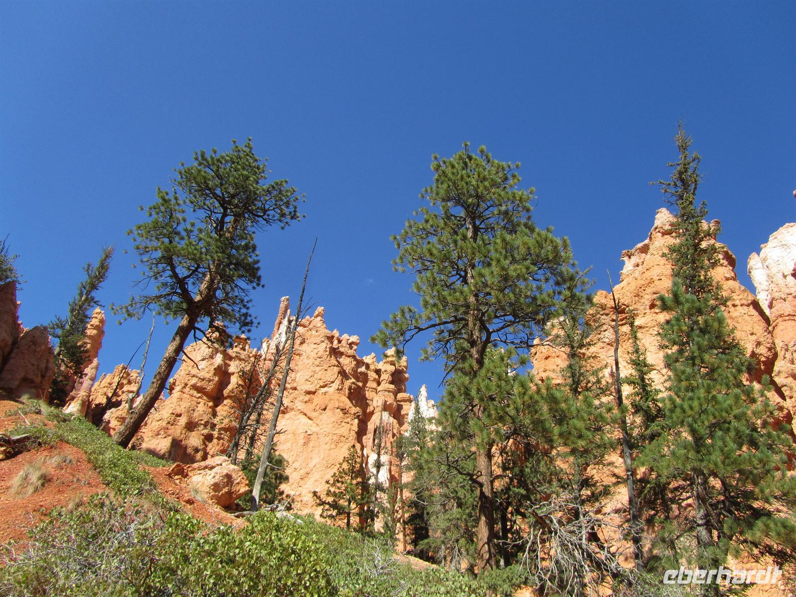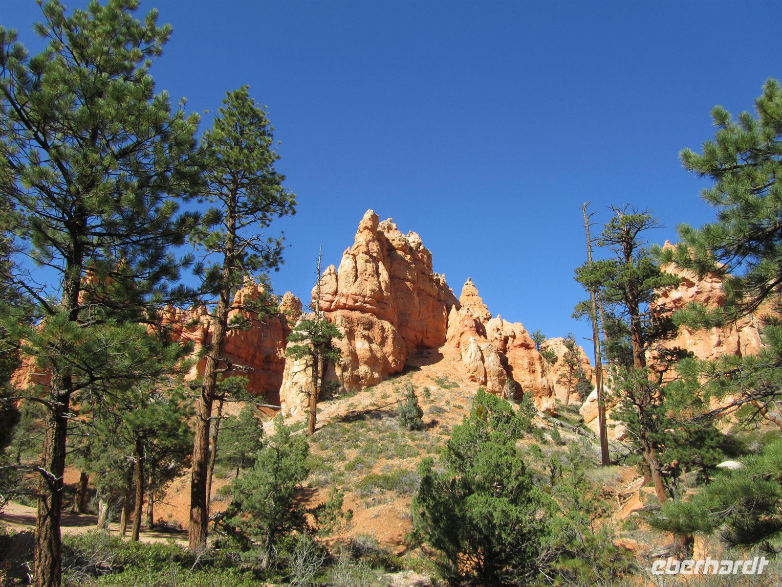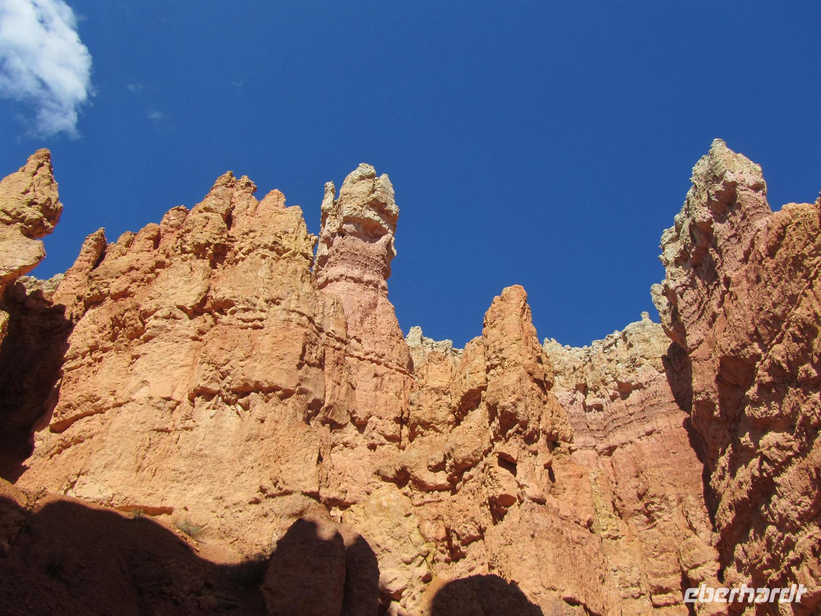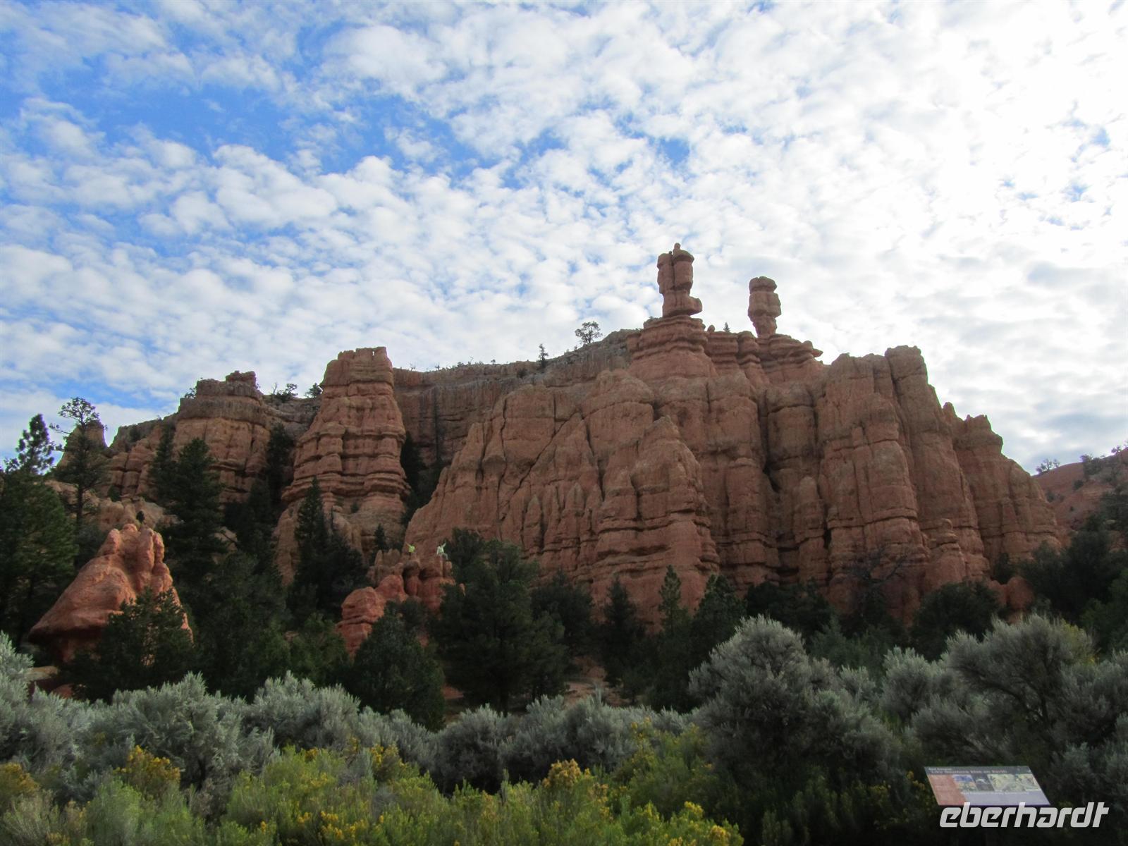 Wieder startet unser Tag mit strahlend blauem Himmel. Wir verspeisen die Reste unseres Picknicks und auf geht es Richtung Brice Canyon. Wir passieren den Green River, welches als Melonenanbaugebiet bekannt ist. Musik von Jonny Cash begleitet uns vorbei an grandiosen Gesteinsformationen. Angekommen am Canyon sind wir tief beeindruckt von der tollen Aussicht. Keiner hat dies erwartet. Danach starten wir unsere Wanderung hinein den Canyon. Ausgerüstet mit festem Schuhwerk, Kopfbedeckung und Wasser steigen wir hinab. 2 Stunden wandern wir entlang des Tals.