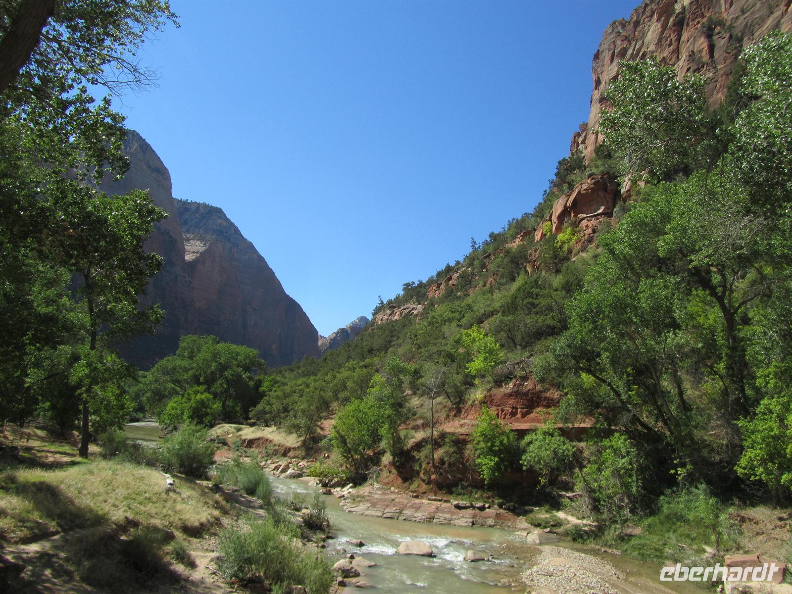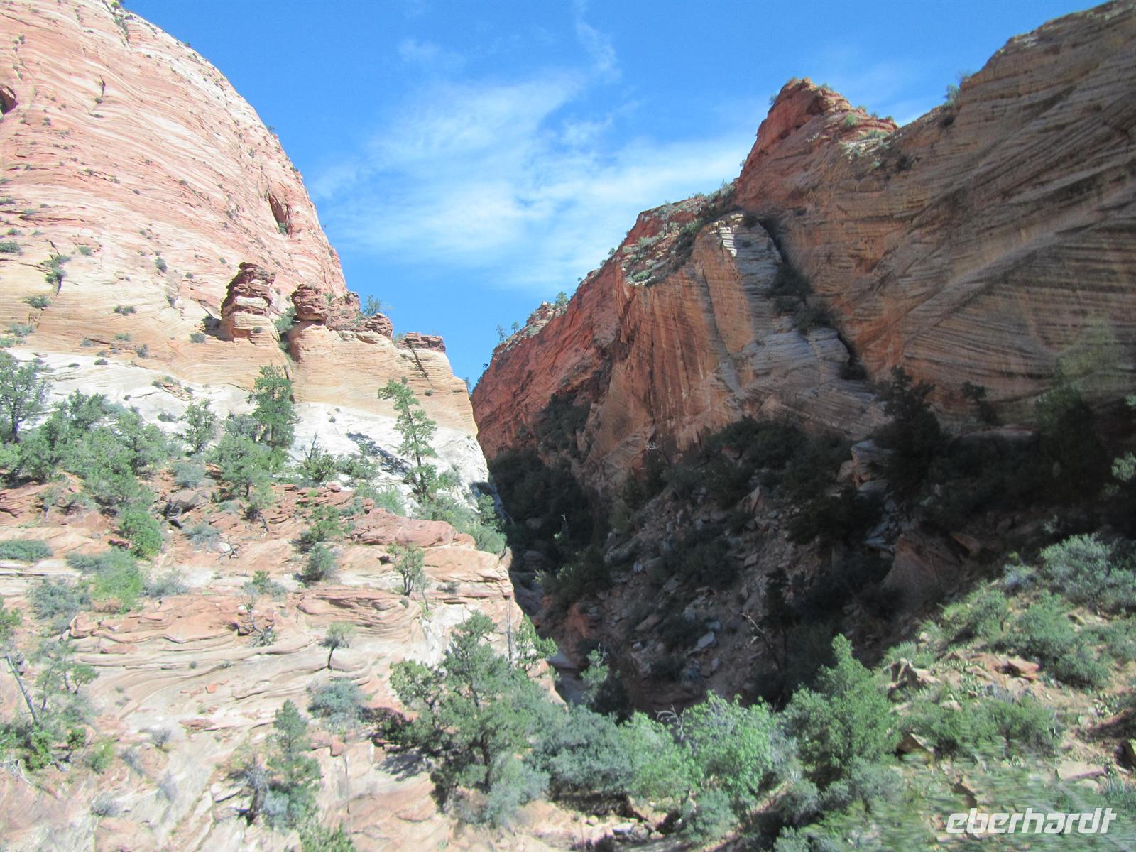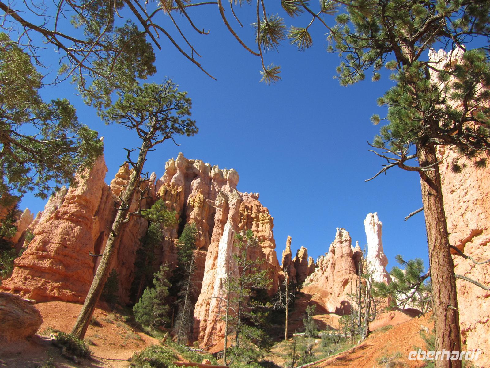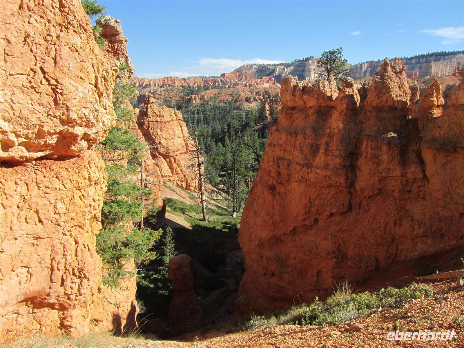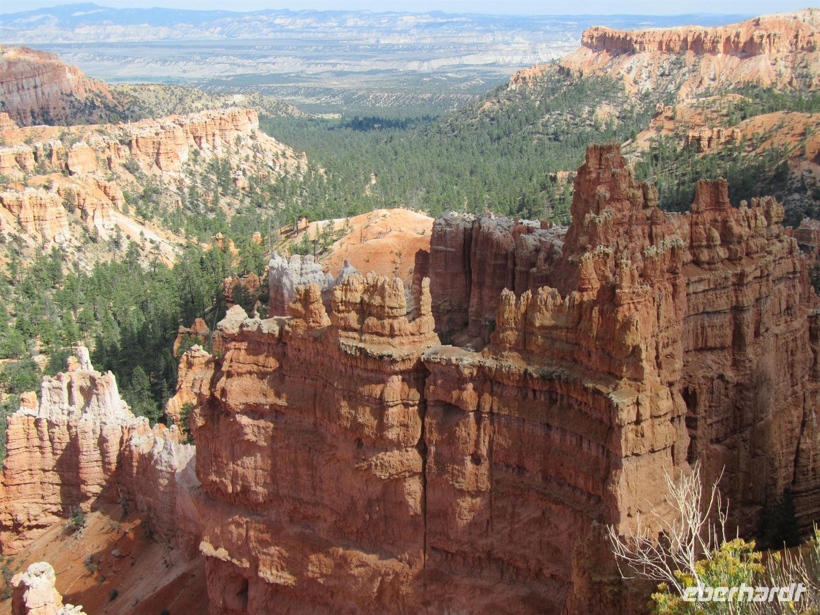 Wieder startet unser Tag mit strahlend blauem Himmel. Wir verspeisen die Reste unseres Picknicks und auf geht es Richtung Brice Canyon. Wir passieren den Green River, welches als Melonenanbaugebiet bekannt ist. Musik von Jonny Cash begleitet uns vorbei an grandiosen Gesteinsformationen. Angekommen am Canyon sind wir tief beeindruckt von der tollen Aussicht. Keiner hat dies erwartet. Danach starten wir unsere Wanderung hinein den Canyon. Ausgerüstet mit festem Schuhwerk, Kopfbedeckung und Wasser steigen wir hinab. 2 Stunden wandern wir entlang des Tals.